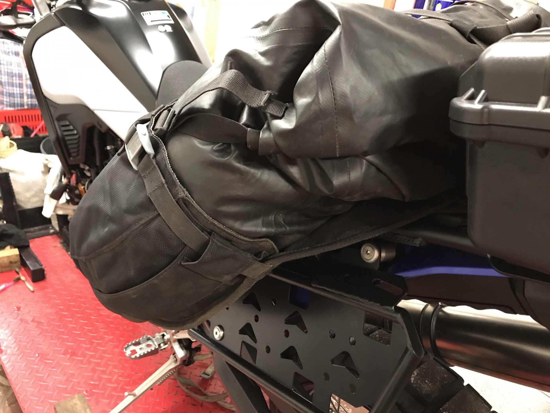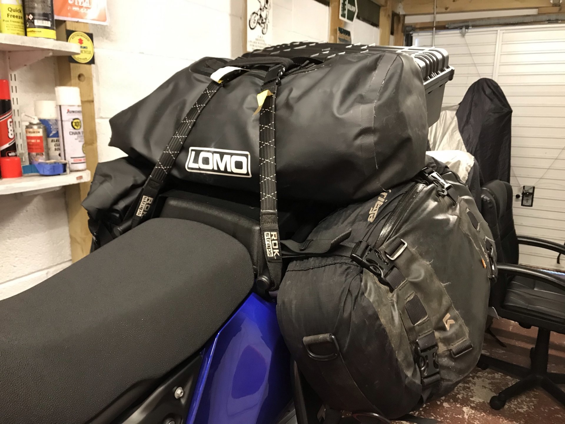 I've been out in the garage weighing up my luggage options for the T700. I've used an Altrider bag on at least four previous bikes so I tried that first, I got it secured but it just doesn't quite sit right on the side racks........... So I tried a couple of other options. First off a Lomo soft pannier, sits nice but not enough capacity....... So I tried the old faithful Kriega US20 ............. fits nice and decent capicity so I think that's what I'll use with a Lomo roll bag on the top. I Just need to buy another US20 now as I only have one at the moment.