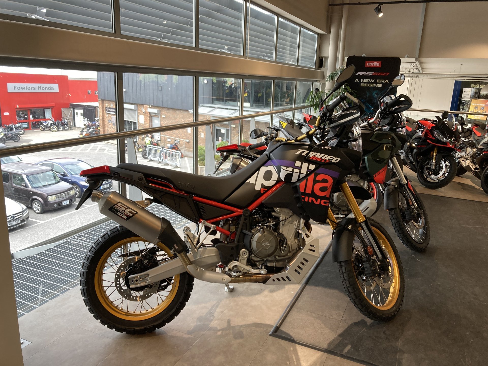 I’m in Fowlers now , I can’t believe the price of everything in here. It’s not just the bikes but the apparel as well is eye watering They must have over 300 bikes for sale in here but only this one takes my fancy. Nice car in the car park as well