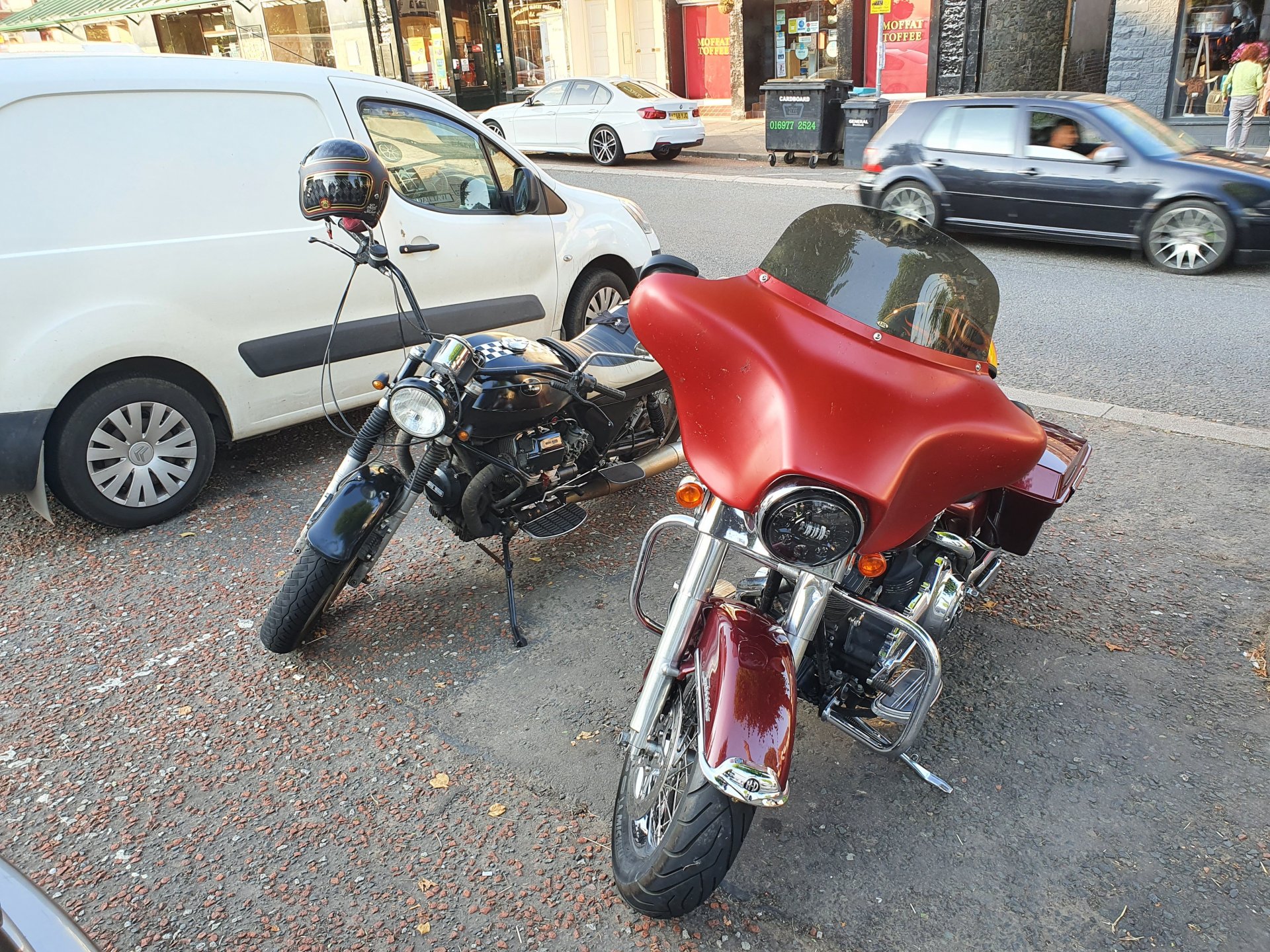 Took a ride out with the neighbour this evening, headed down to Moffat in the borders on the A701 which runs through amazing countryside. Then headed through the valley floor on the A708 past St. Mary's Loch to Selkirk before heading back on the A7. Even managed to get a pic of a van so Six could feel included. Countryside in the borders is stunning but we had limited time so did not stop other than in Moffat. 145 miles in 3.5 hours. Roads I will visit again when I have more time. Also seriously considering an action cam as you fuckers could use a dose of proper countryside.