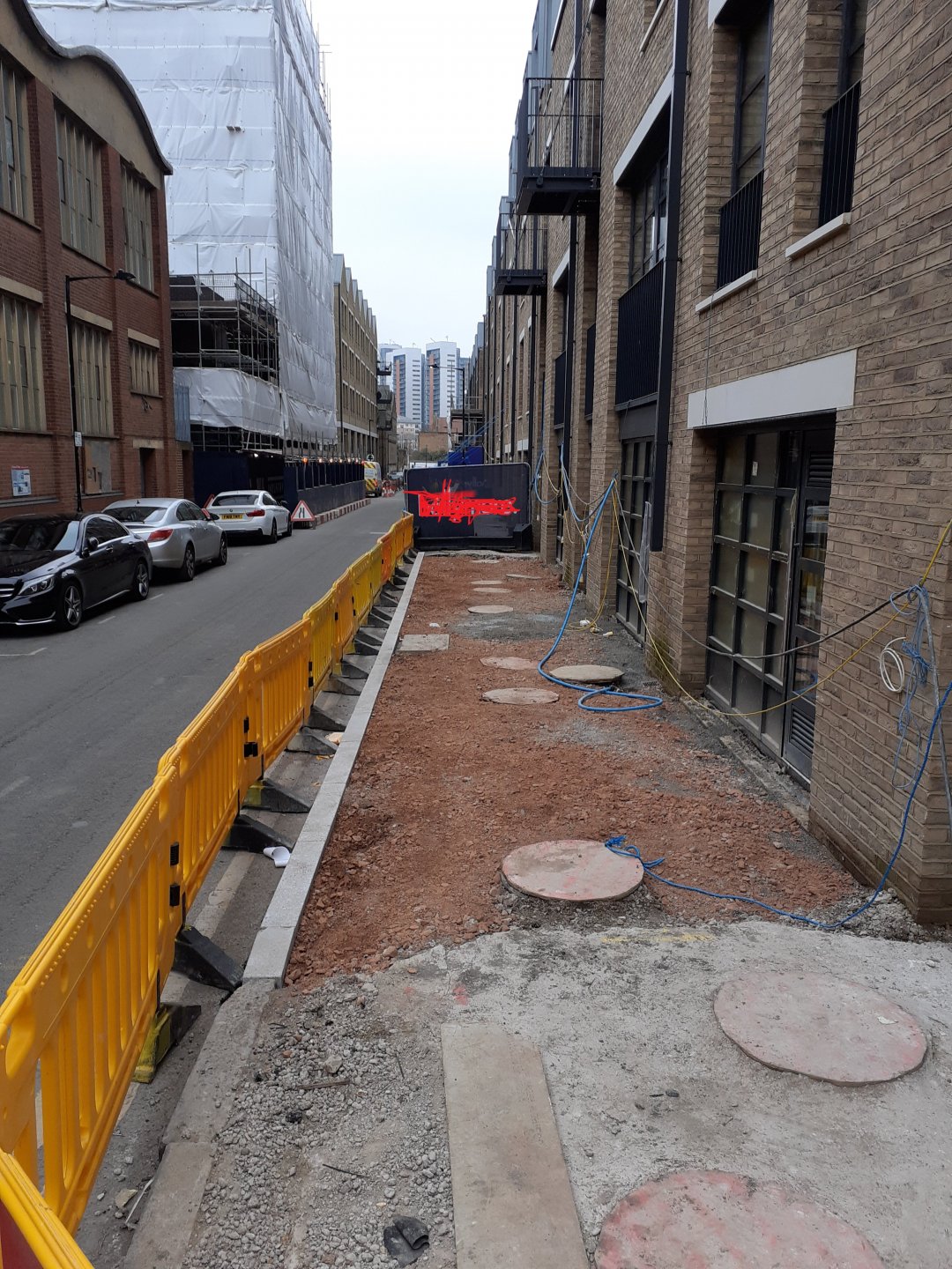 They asked my mate in street lighting to move a lamp column because the root was in the way of their drain run. I asked them 'what drain run?' and that's how I found out about it. I reported it then (November) to the people that are supposed to care about that sort of thing, nothing happened. Then when the hoarding came down I couldn't believe how many lids there were. I was in meetings all day on day 1, so by the time I got in to the borough the next day excavation had started which was when I called a halt to the work and reported it all over again to the same people as before who are rushing about now to sort it all out.