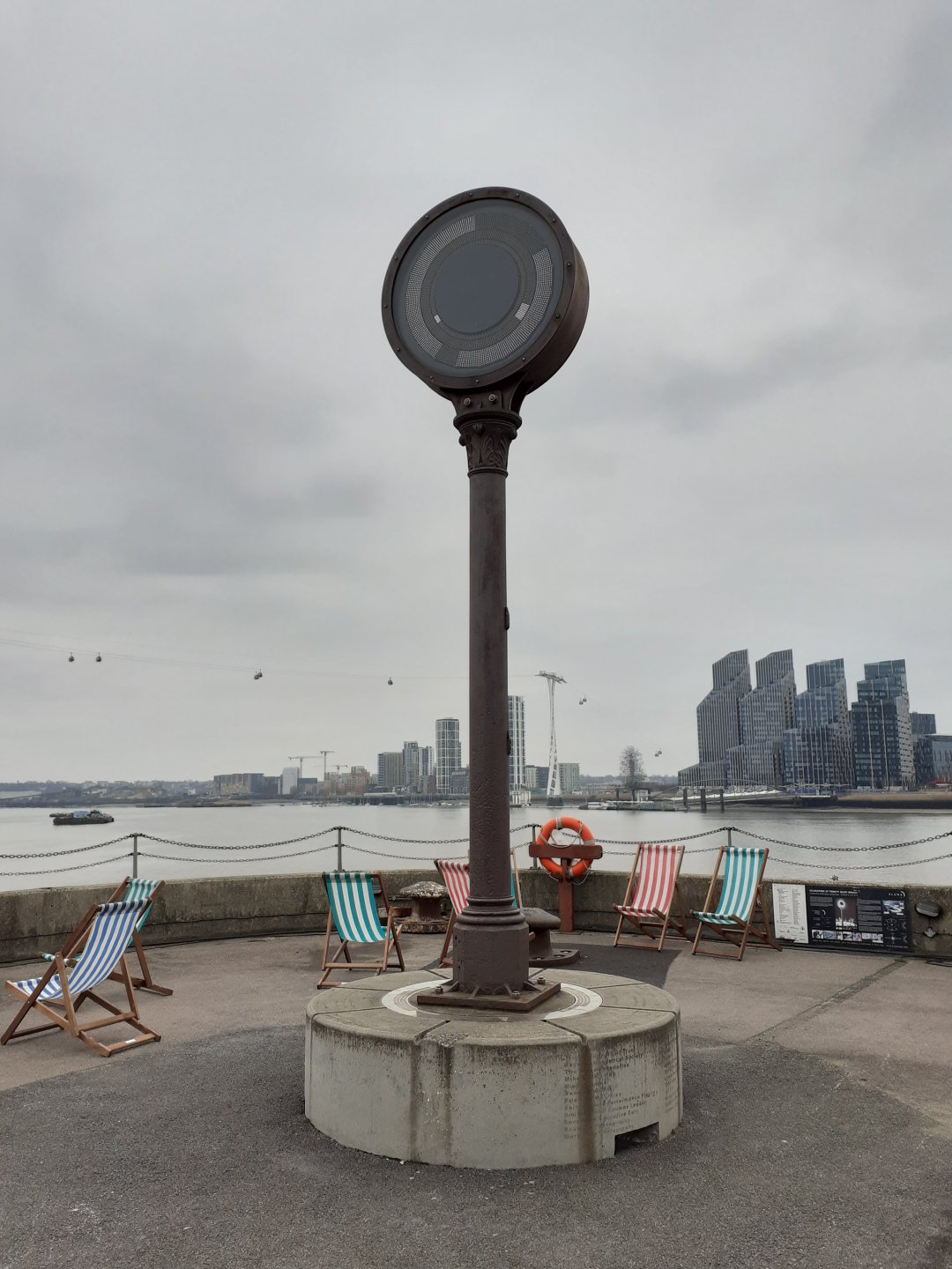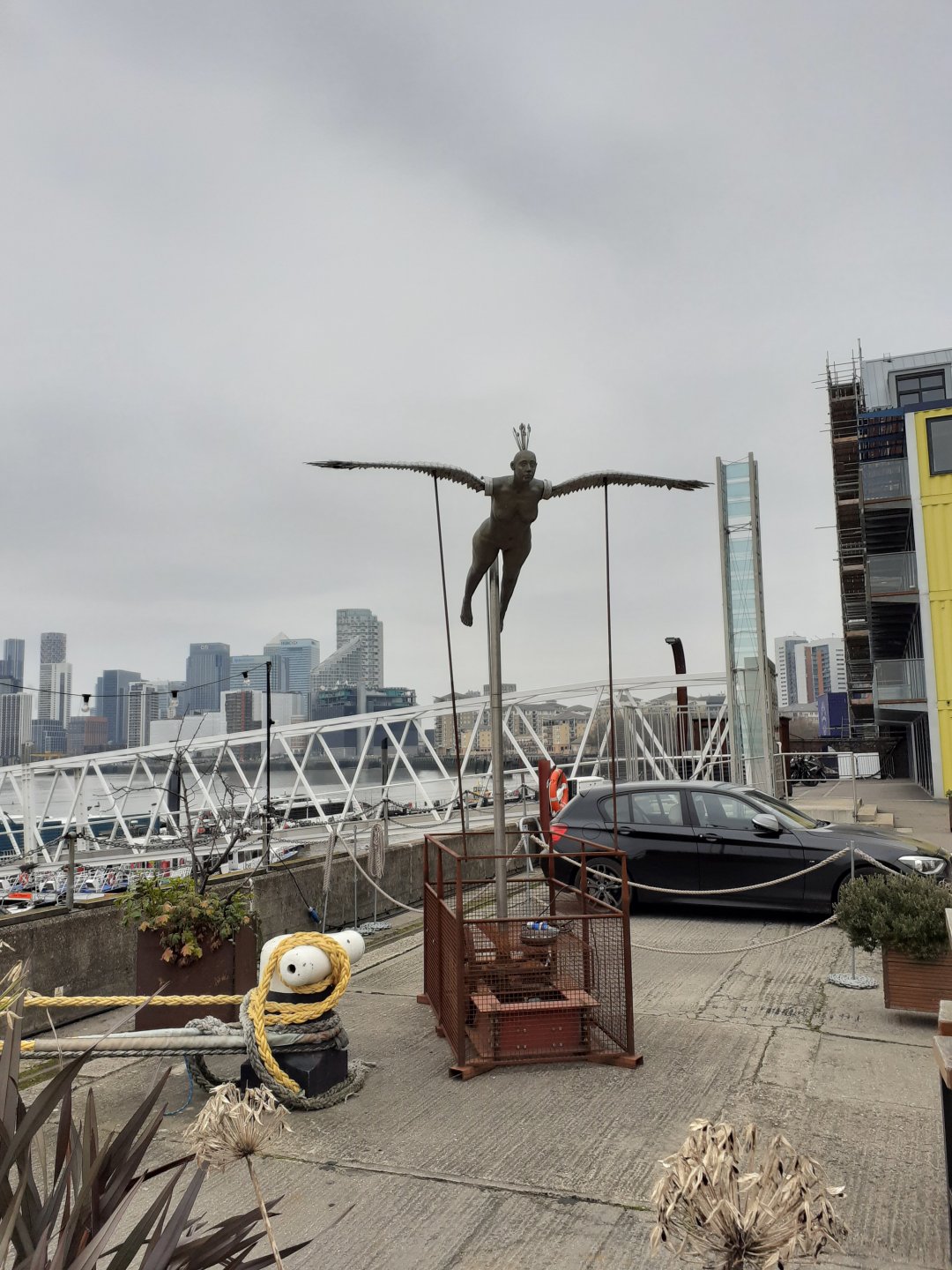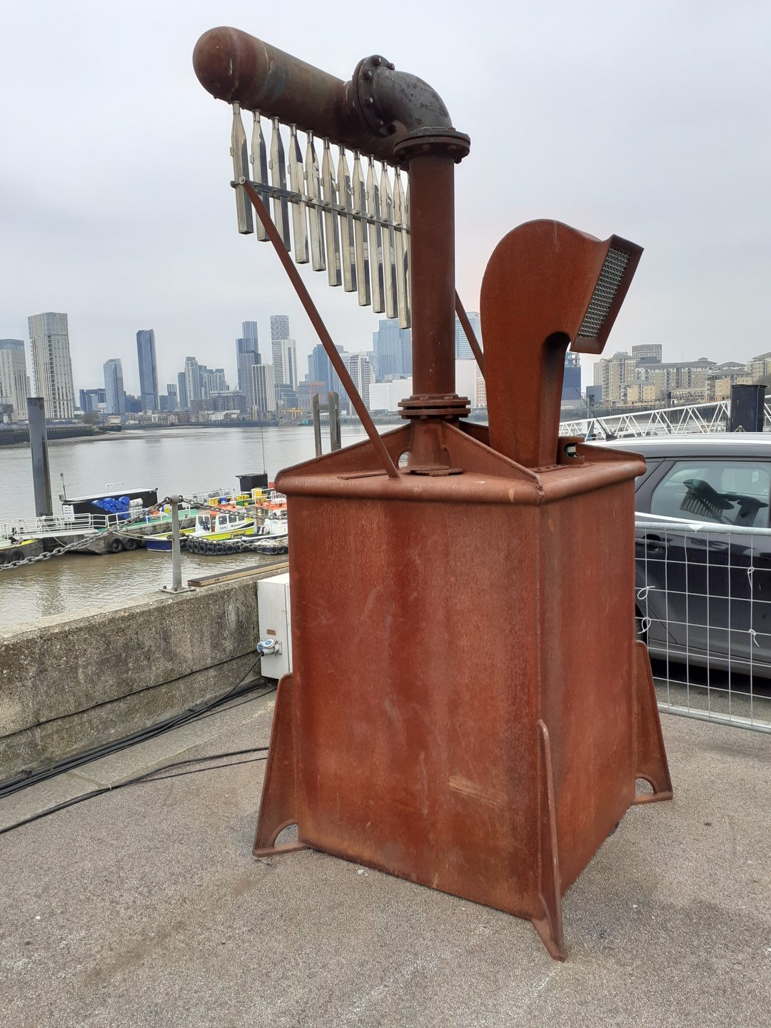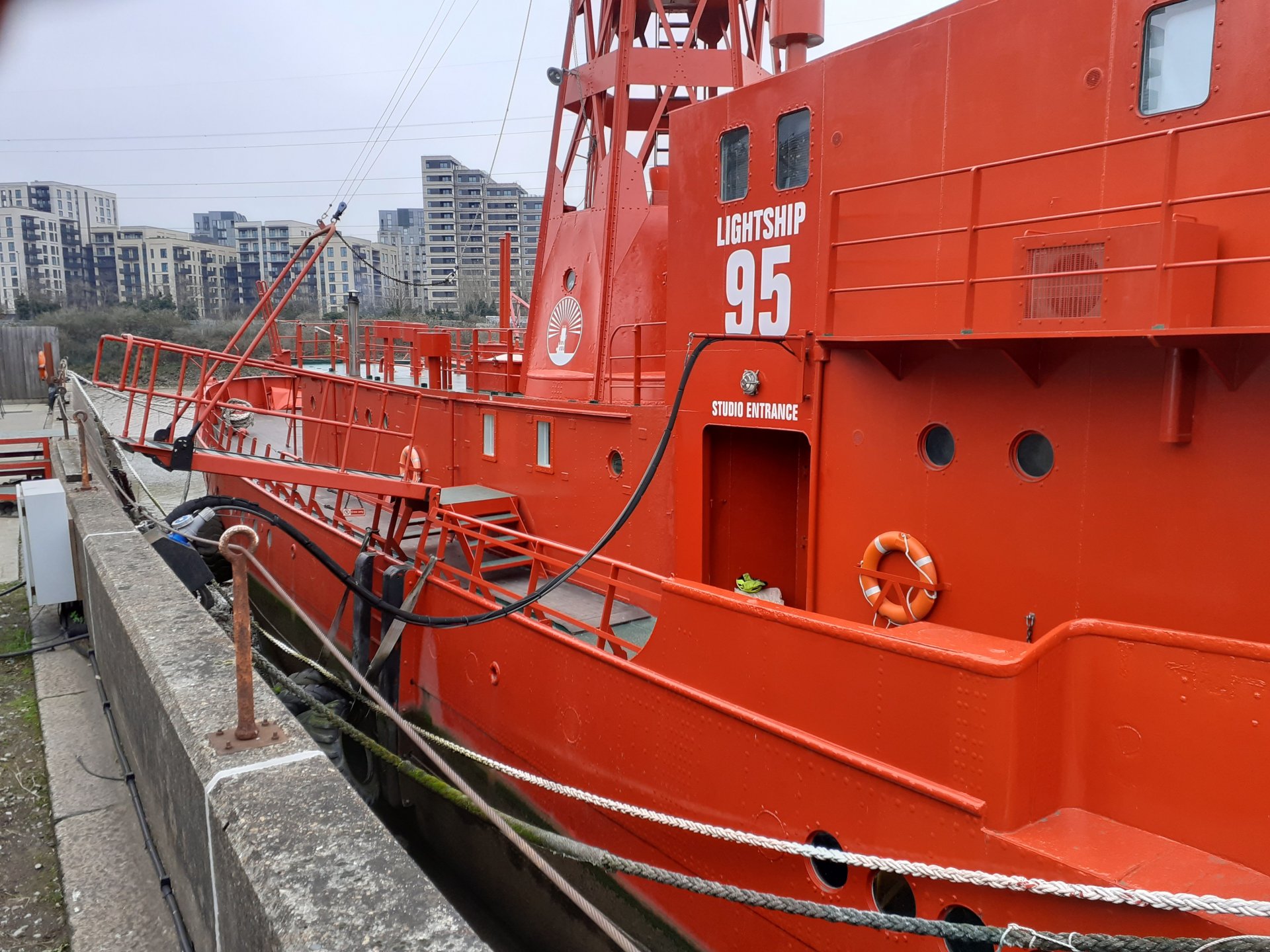 In the car today. Tucked away in Blackwall is Trinity Bouy Wharf. Today it was cold and empty. After a Mini Fat Boy, (a breakfast consisting of pancakes, syrup, fried egg, sausage, bacon, hashbrown and a mug of tea) in the old American diner I saw that the lighthouse was open so popped up to take some pics. The dark blue grandad estate car is mine, known as Moby Dick due to its length and slow speed.