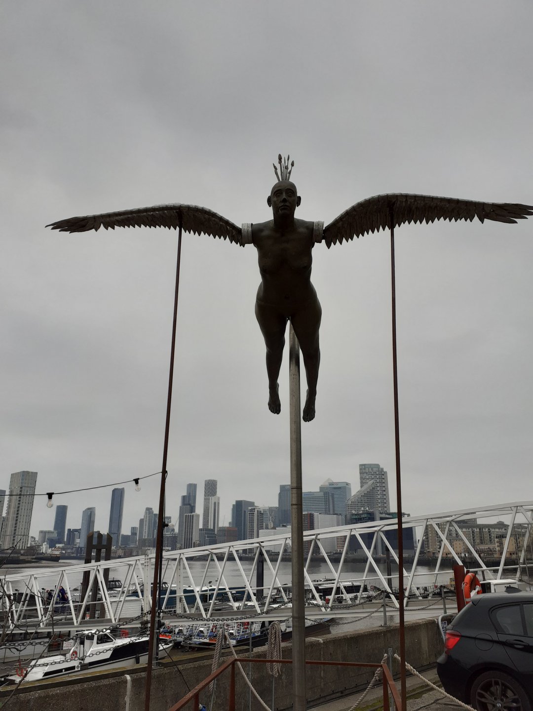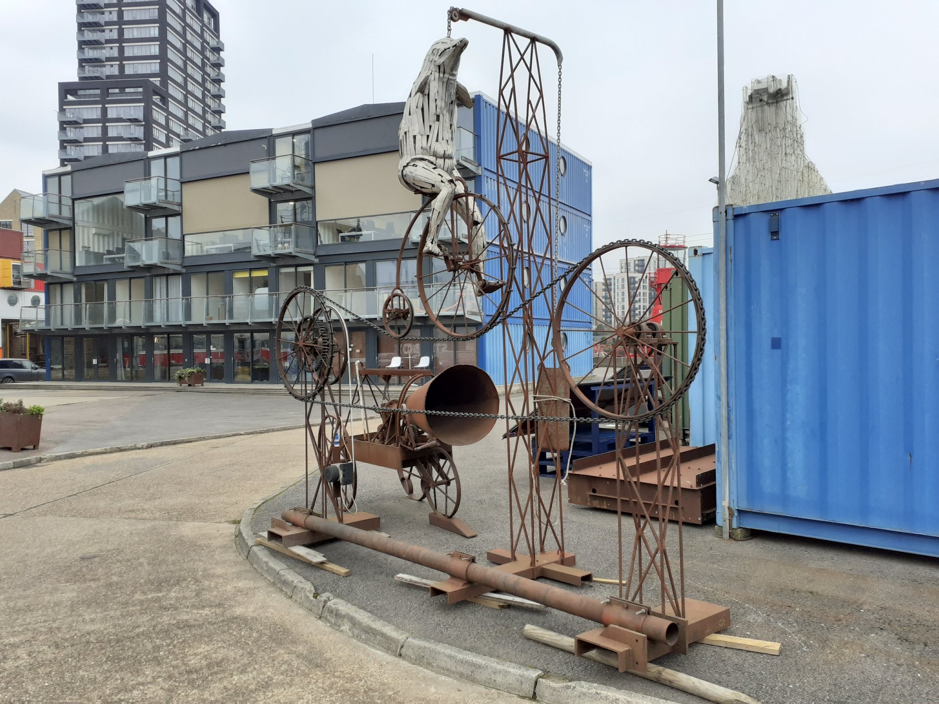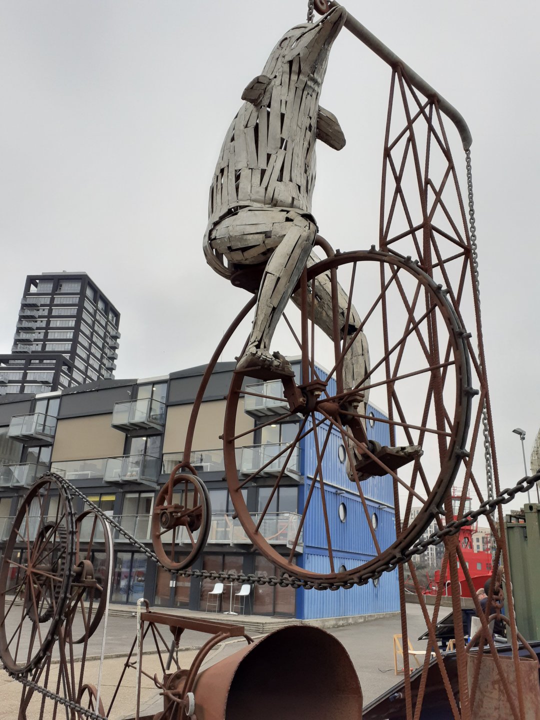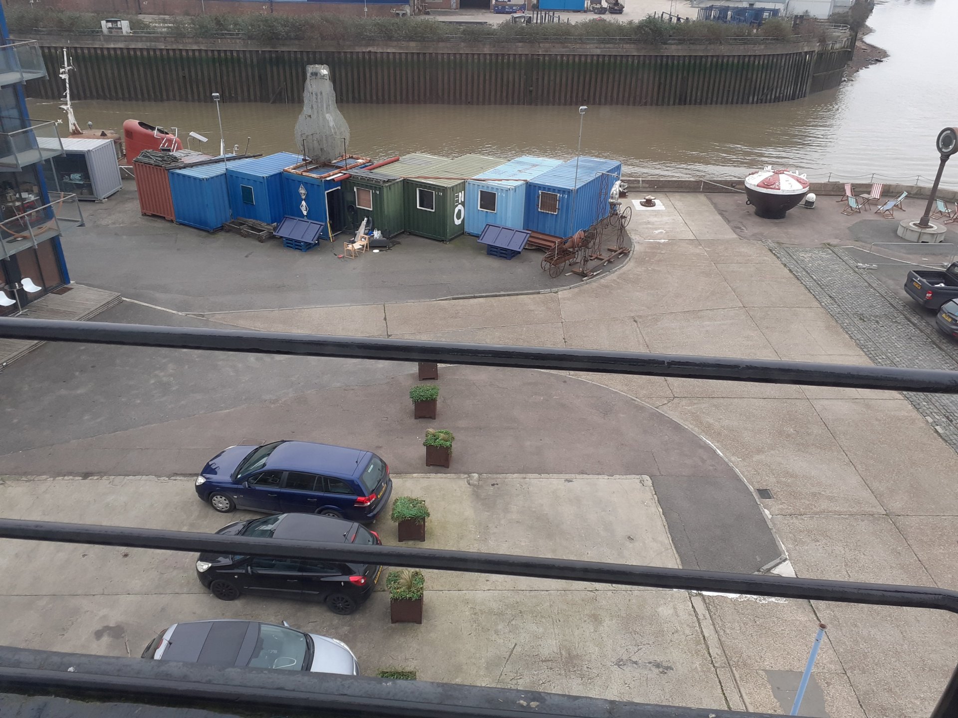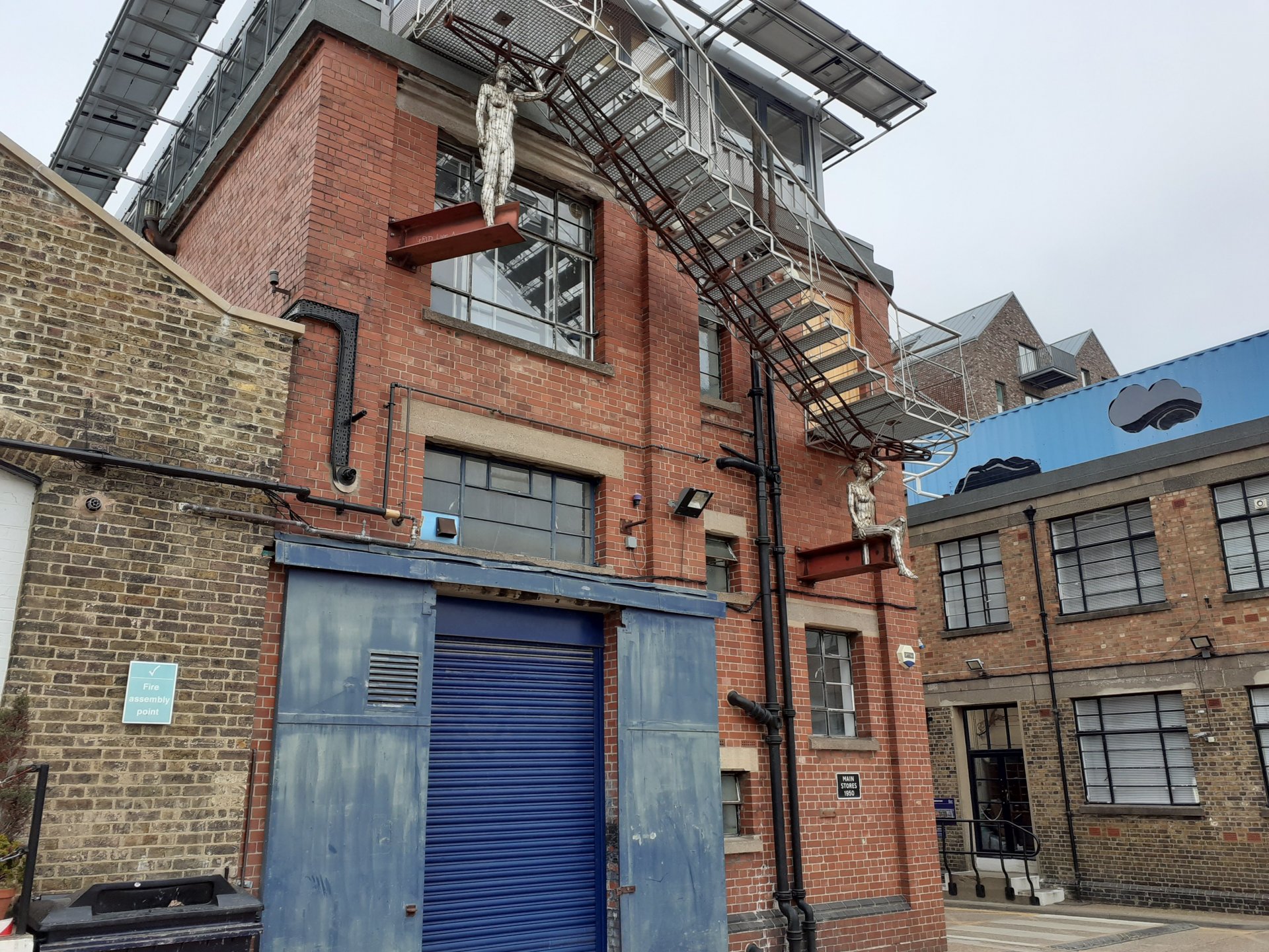 In the car today. Tucked away in Blackwall is Trinity Bouy Wharf. Today it was cold and empty. After a Mini Fat Boy, (a breakfast consisting of pancakes, syrup, fried egg, sausage, bacon, hashbrown and a mug of tea) in the old American diner I saw that the lighthouse was open so popped up to take some pics. The dark blue grandad estate car is mine, known as Moby Dick due to its length and slow speed.