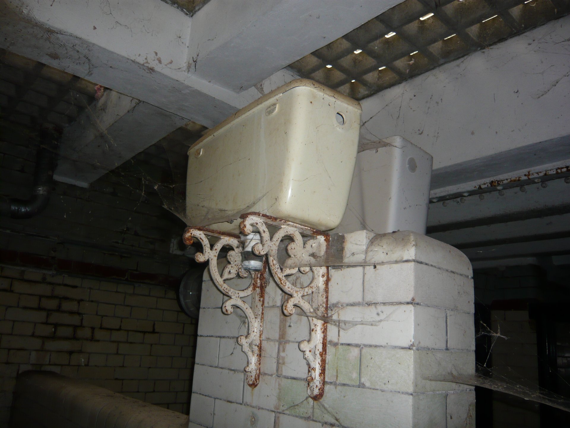 Looking for the pictures of the Norfolk rally on my back up drives and found the toilet pictures Pete keeps mentioning. Everyone should have a hobby and mine is old toilets. This is Leyden Street toilets, built circa 1910 according to the drawings I have on my garage wall. It's been closed up since about 1970, but I persuaded my mate to let me have a look round. They don't build them like this any more. It used to have urinettes in the ladies according to my drawings. This is for ladies in Edwardian dresses to wee standing up by standing with a leg either side. Unfortunately even the local prostitutes the area is famous for refused to do this as they considered it unladylike and they spent a penny instead and used the normal cubicles. The urinettes were removed after a few years.