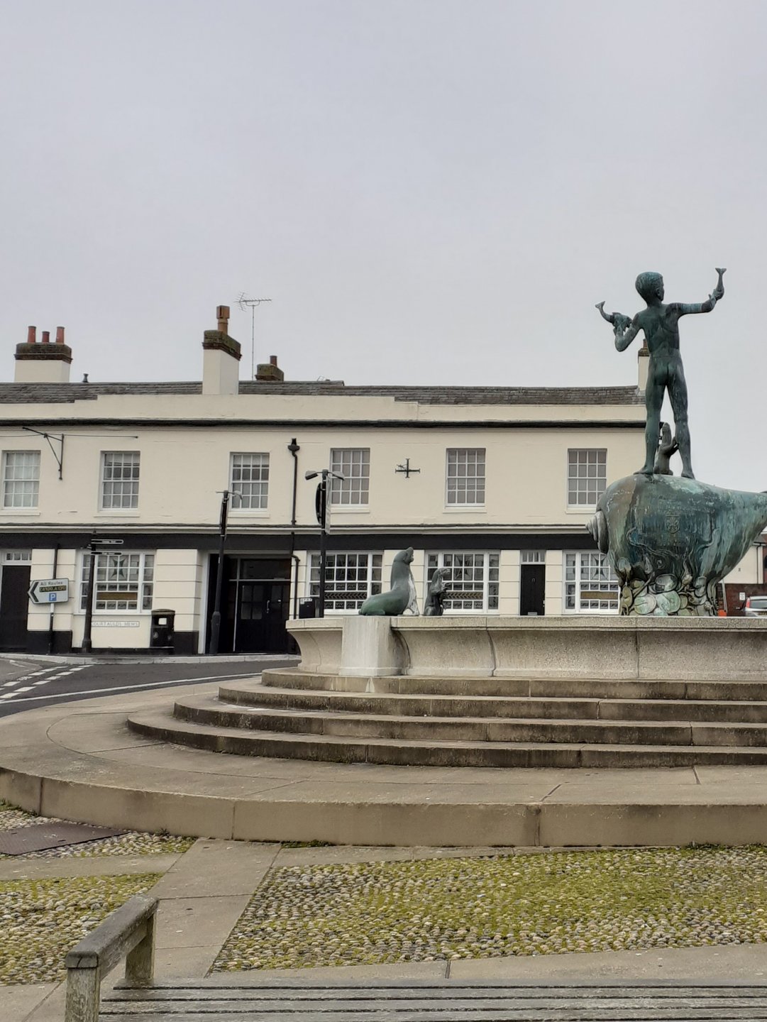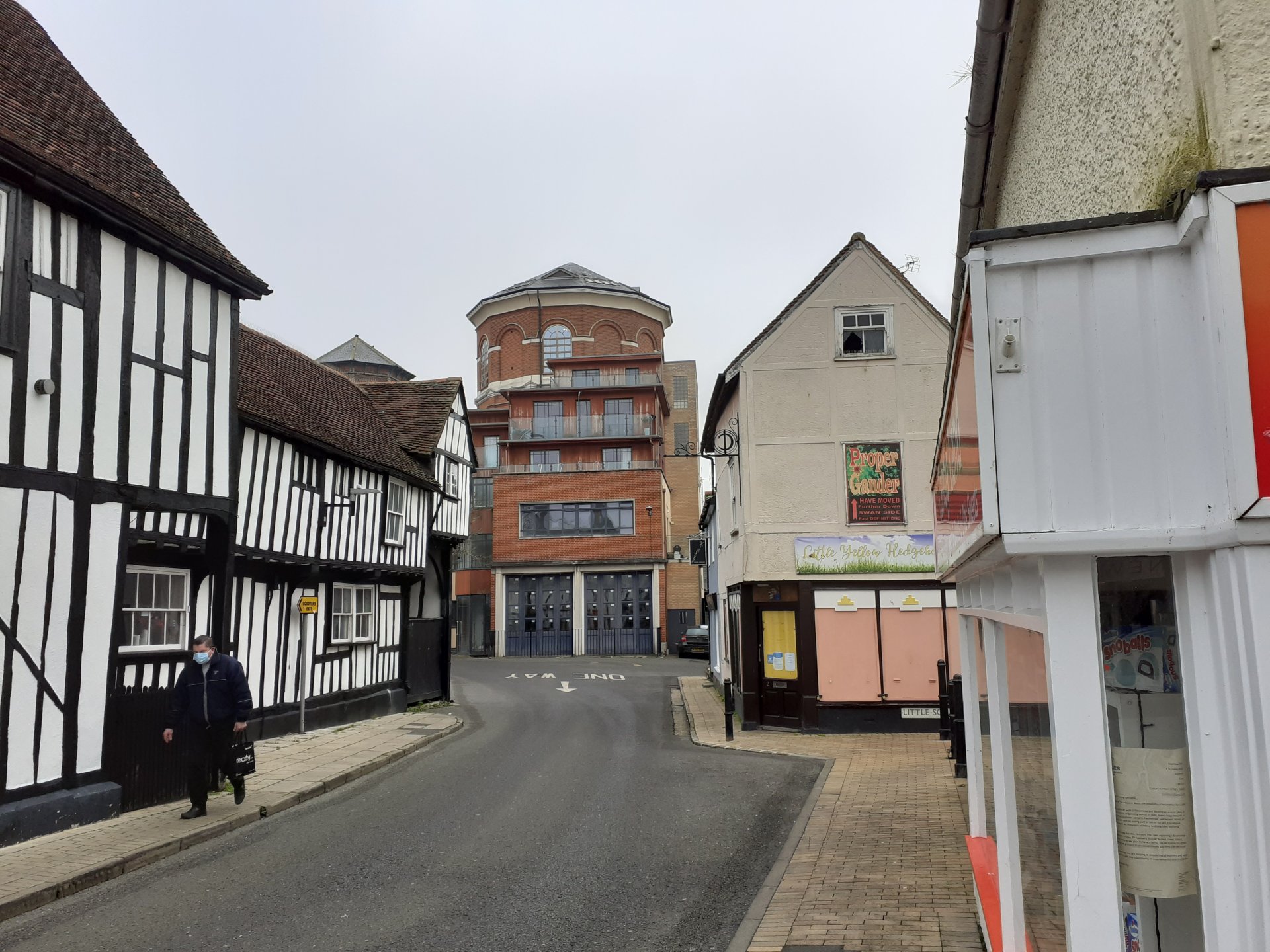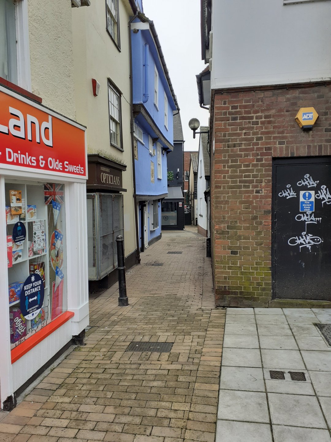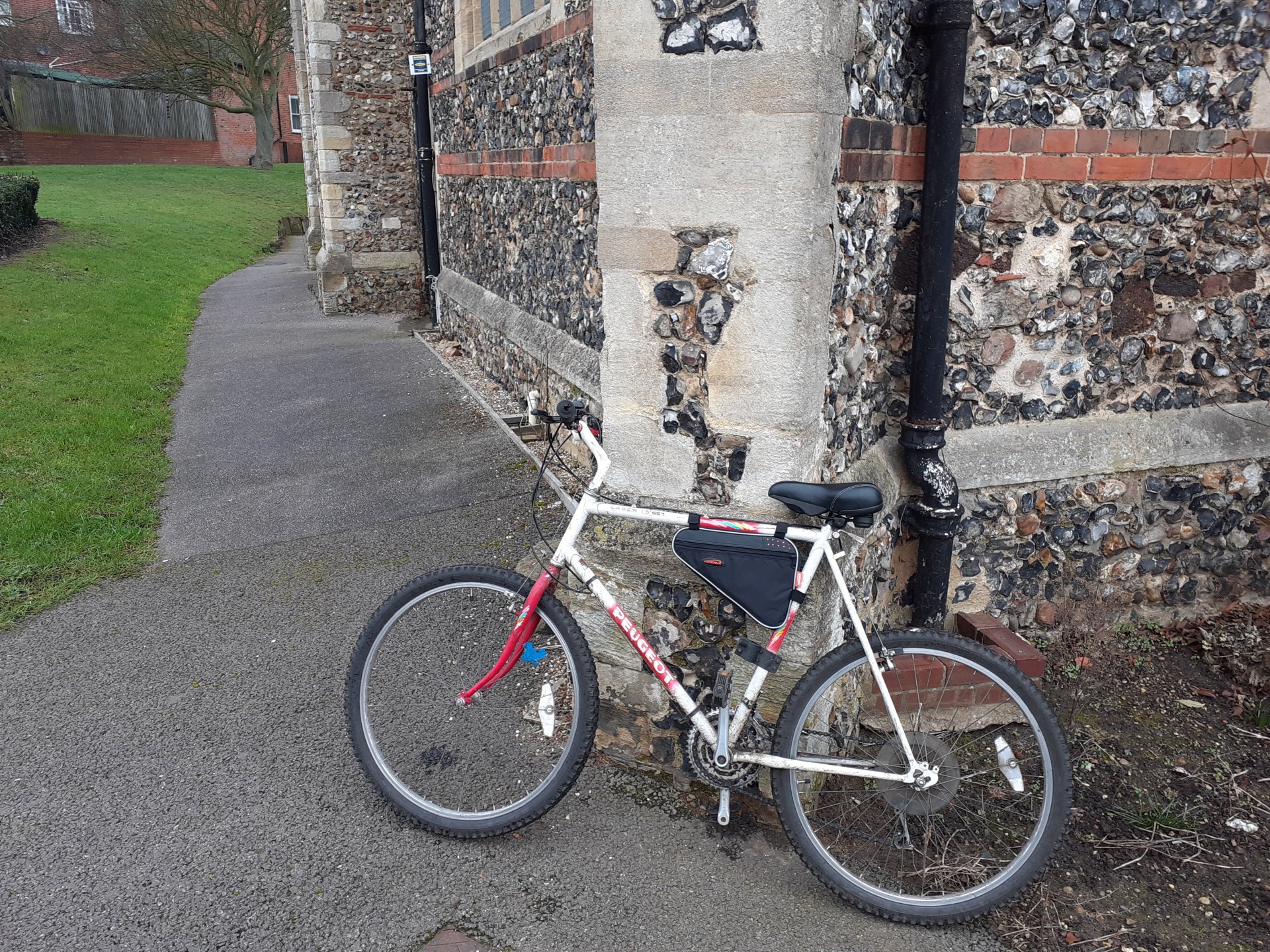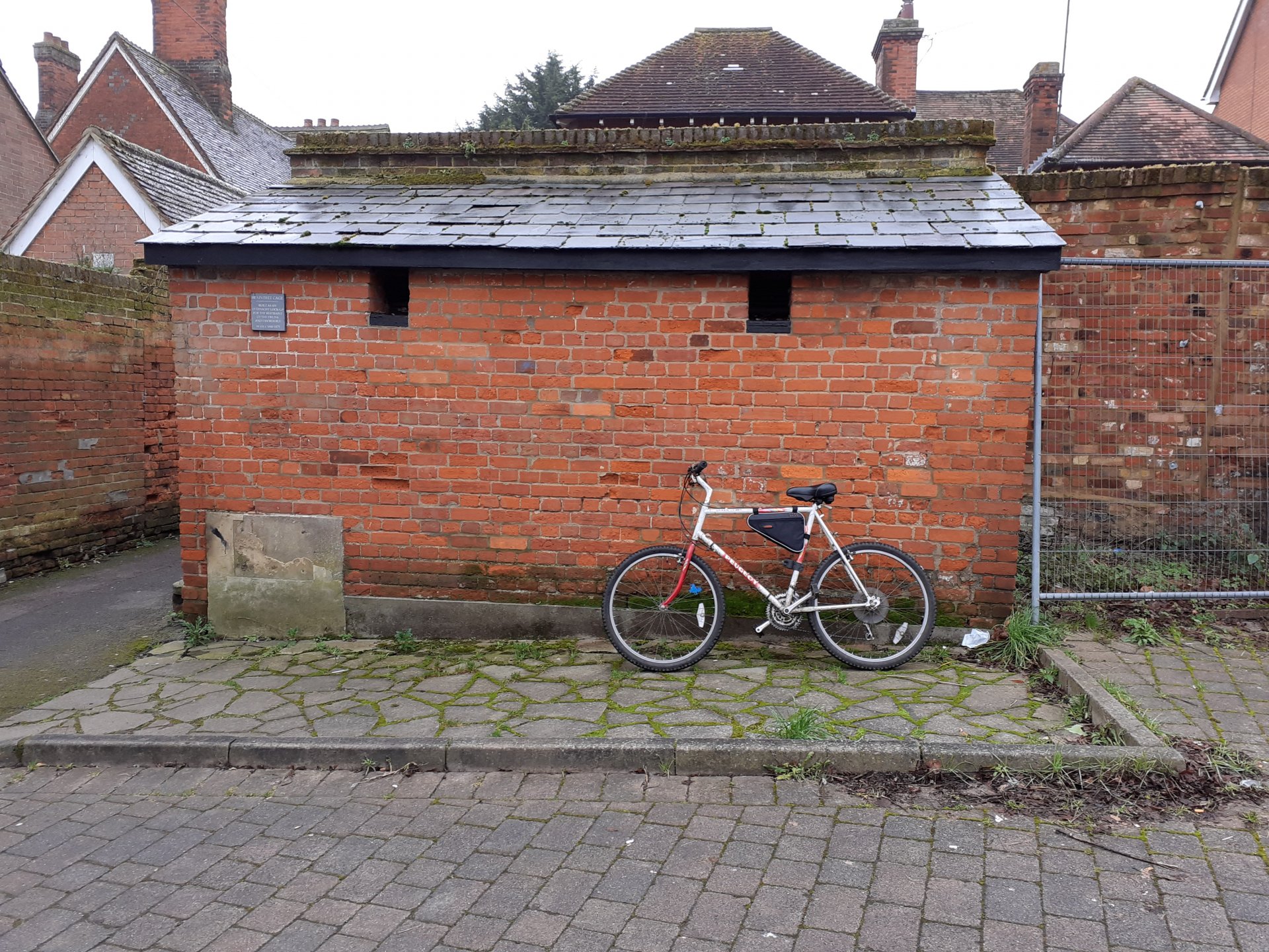 I walked on my state sanctioned exercise period yesterday, thought I'd pump up the tyres on my push bike and take that today. I've not been out on a push bike since Augustish when my fiendish mate tricked me into riding too bloody far along the old railway line to Great Dunmow and back. My legs had stopped aching by about November and my bum had stopped feeling like the saddle was permanently inserted into my arse by early December. I thought I'd have a little ride over my local park but ended up riding into the town centre. It was bloody freezing, especially on my fingers and ears. Maybe a hat and gloves next time, which should be about June ate current rates. Took some pictures of my old heap of a push bike, a water tower turned into a house, the old Victorian town lock up for drunkards, some of the old silk mills, a statue showing its bum, the town church, our Famous Five type railway station (one train an hour if you're lucky) and working my way through one of the town centre 'gants' which are small alleyways squeezed between various houses and shops. Apparently they are only called gants in Braintree. https://www.atlasobscura.com/places/gants-of-braintree