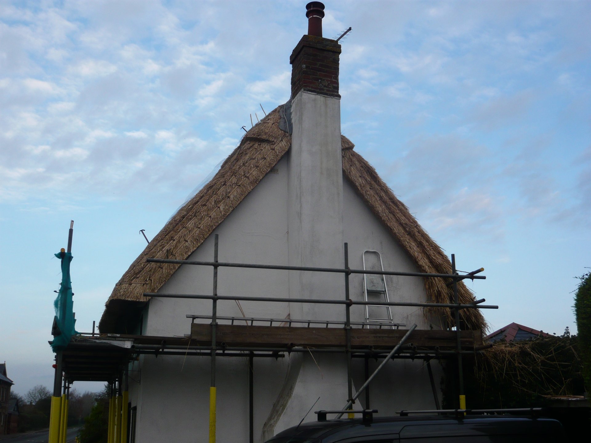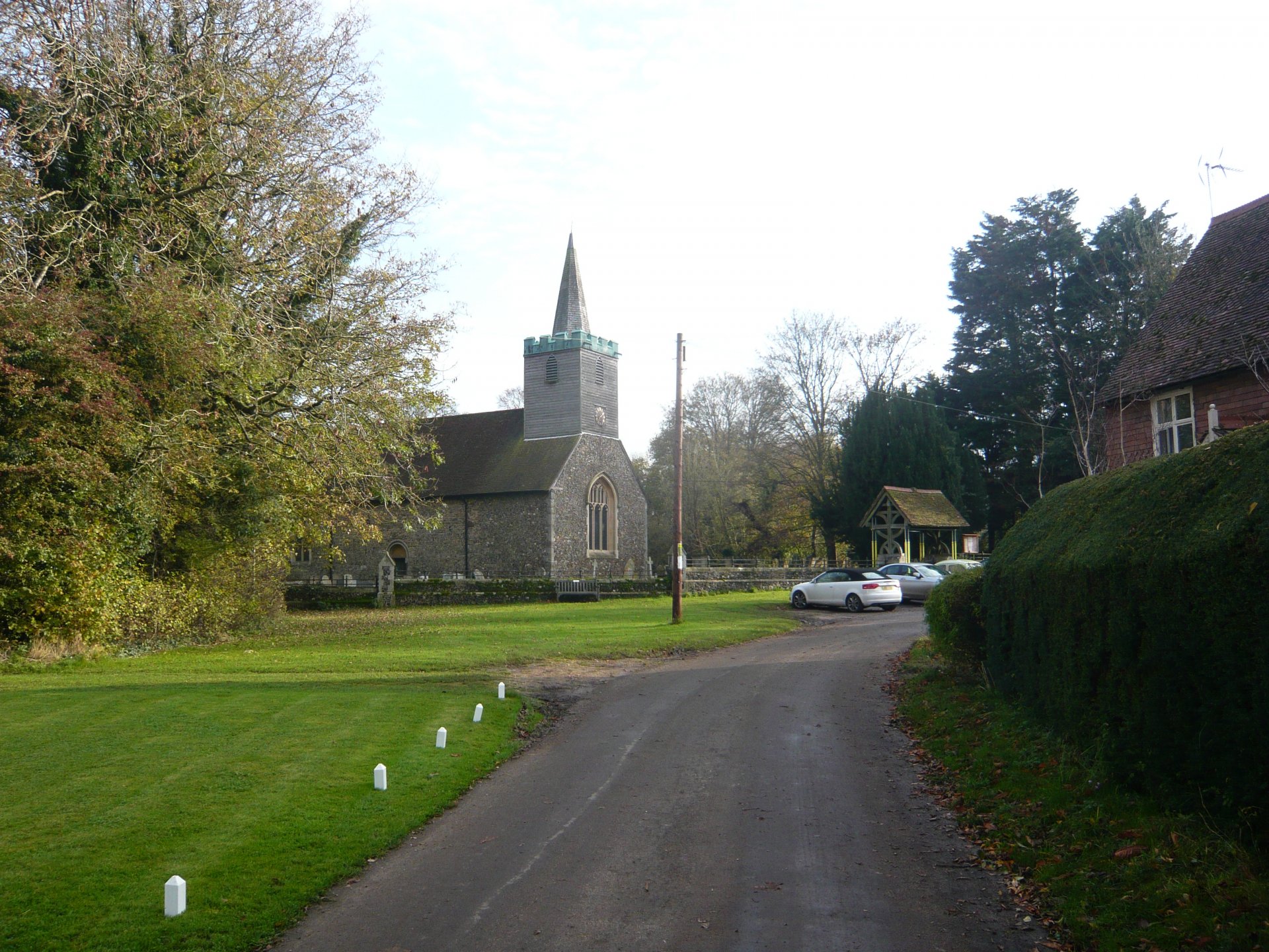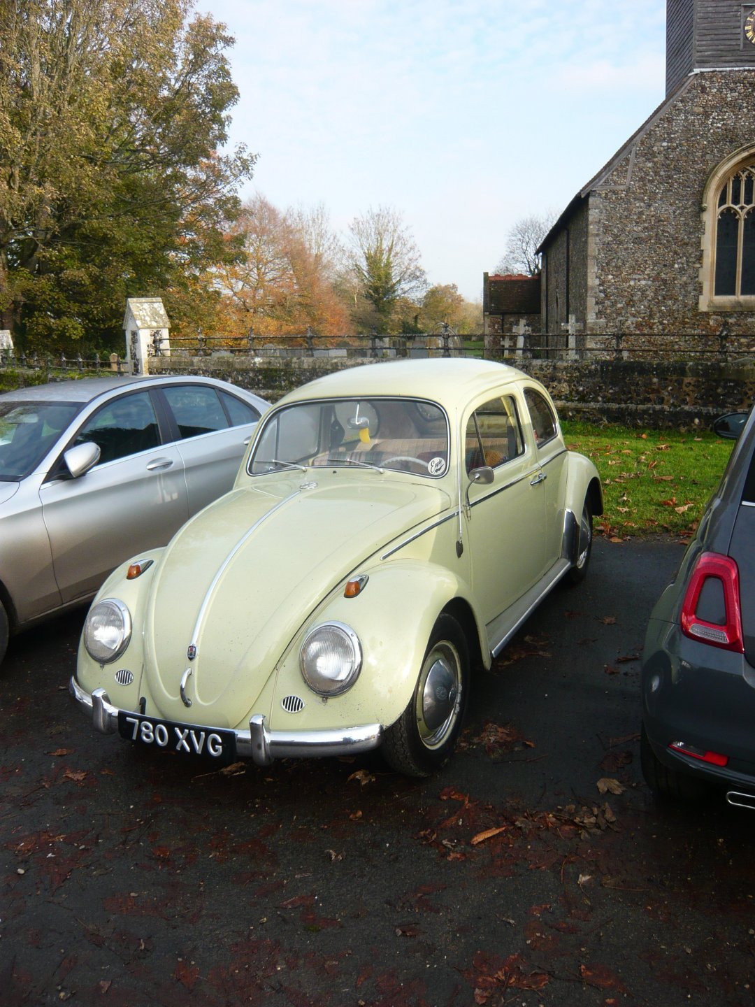 Bit of a walk today to look at an old Motte and Bailey. That was totally hidden by trees and I couldn't get very close to it, so no pictures of that. The stream is the River Roding. I could hear some bloke huffing and puffing whilst thatching a roof but couldn't see him. Took the picture of the Beetle because I had one the same once. The straw fox caught me by surprise. Just liked the sunlight on some but not all of the grave stones. Is this God's way of telling you who was good and who was naughty during life? I'm colour blind but could see the Sloes a way off. Liked the stocks on the village sign.