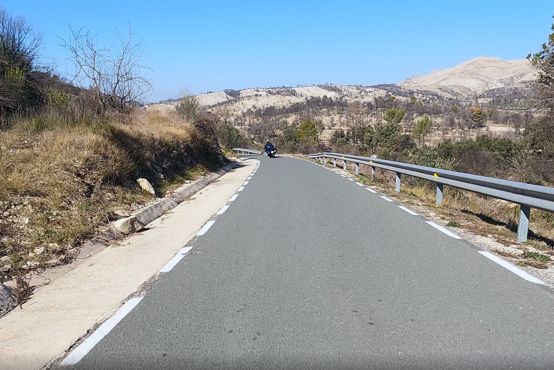 I really feel for all of you in England at the moment with al that cold wet freezing weather, here in Spain we have had some gorgeous weather lately I personally feel that temperatures in the low 20s are the perfect riding conditions LOL. So last Tuesday evening I got a message asking if I fancied a little ride the next day. I said yes of course. The following morning I set off for Castalla met up with a few friends and off we went around the mountains of Alicante and into the Valencia region. We stopped off for a coffee on the way and eventually we found ourselves not too far from where I live and we rode through the devastated landscape of what is left after the massive wild fire from last year. The fire that got so close to my village we were put on standby to evacuate the neighbouring village and already been emptied. I was amazed at how much land had gone up in flames we rode for miles and it was burnt trees all t he way. We eventually stopped for a lunch just outside Pego and headed for the coast and some sunny twisties.