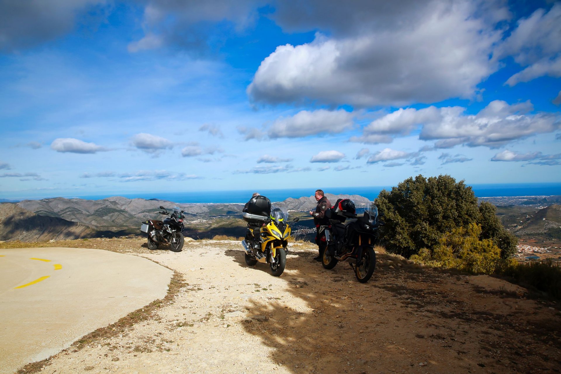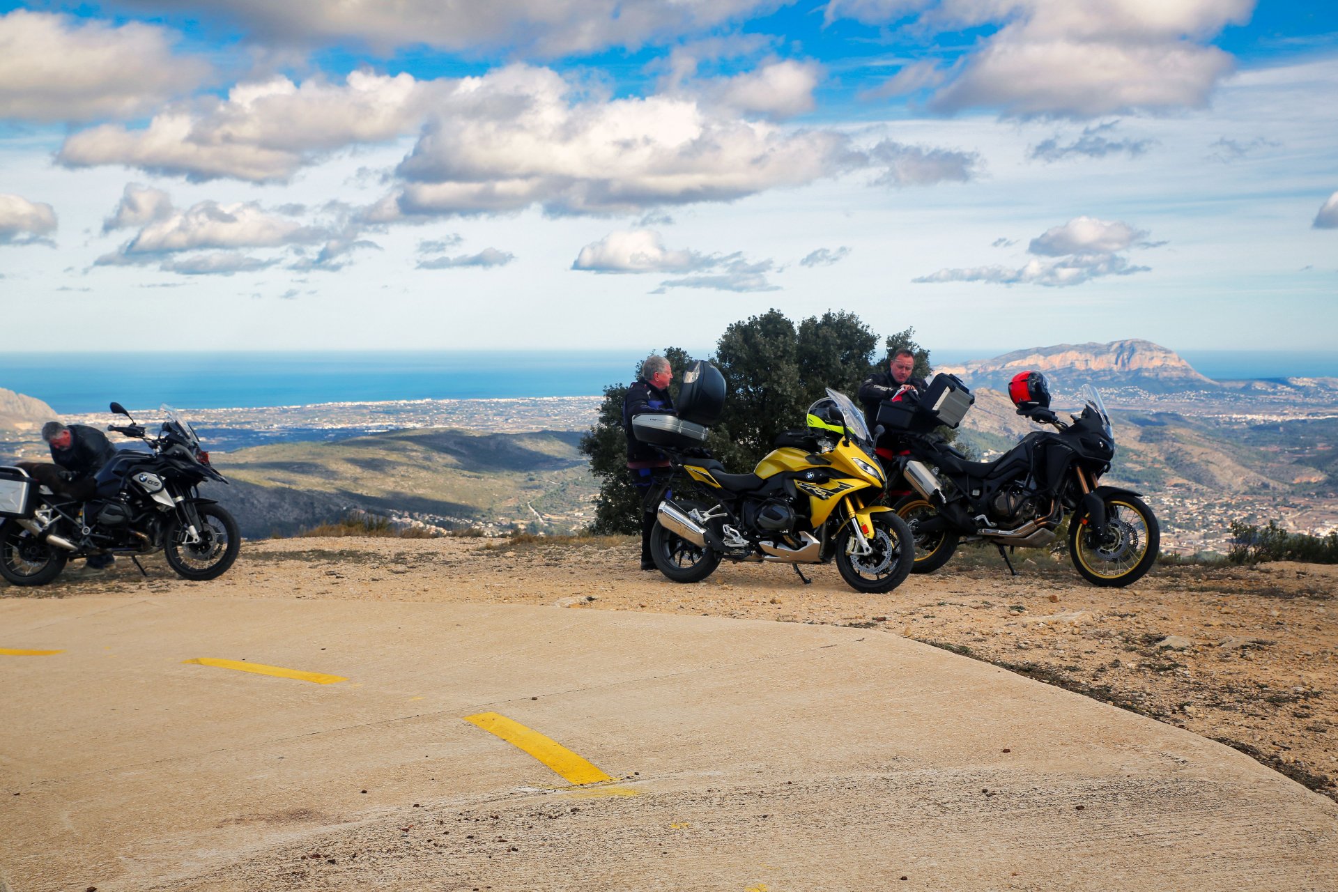 I haven't contributed much recently as I haven't done a dam thing for ages but last Thursday I was contacted by one of the local motorcycle groups that I belong to here in Spain called the PD Riders Group and asked if I fancy I ride out to the mountains...how could I say no! We were to meet at a petrol station just outside a town called Castalla which is in the mountains about 20 miles north west of Alicante some 60 miles from where I live near Gandia. Had to be there around 10am so left just after 8am to be on the safe side the weather was ok but a bit blustery as I rode past Alcoy I notice snow on the mountains, the first time I have seen snow in four years.. I made it in time and met up with 3 other intrepid souls we left a few minutes later. We made our way up and over mountains down passes and ended up at our first stop near Guadalest where we stopped for a bit and had a drink and a sandwich as all the cafes and bars etc ae closed in our region at the moment. From there we wound our way up and up to the Coll De Rates one of the if not the highest point in the region where we took lots of photos and ate more sandwiches. We parted ways at the bottom of the hill and I made my home I had to drop off at a car wash and give the bike a good soaking to get rid of road salt I had ridden a little over 300km and the next morning I knew I had ridden a fair few miles LOL