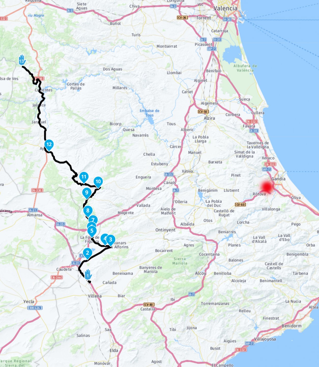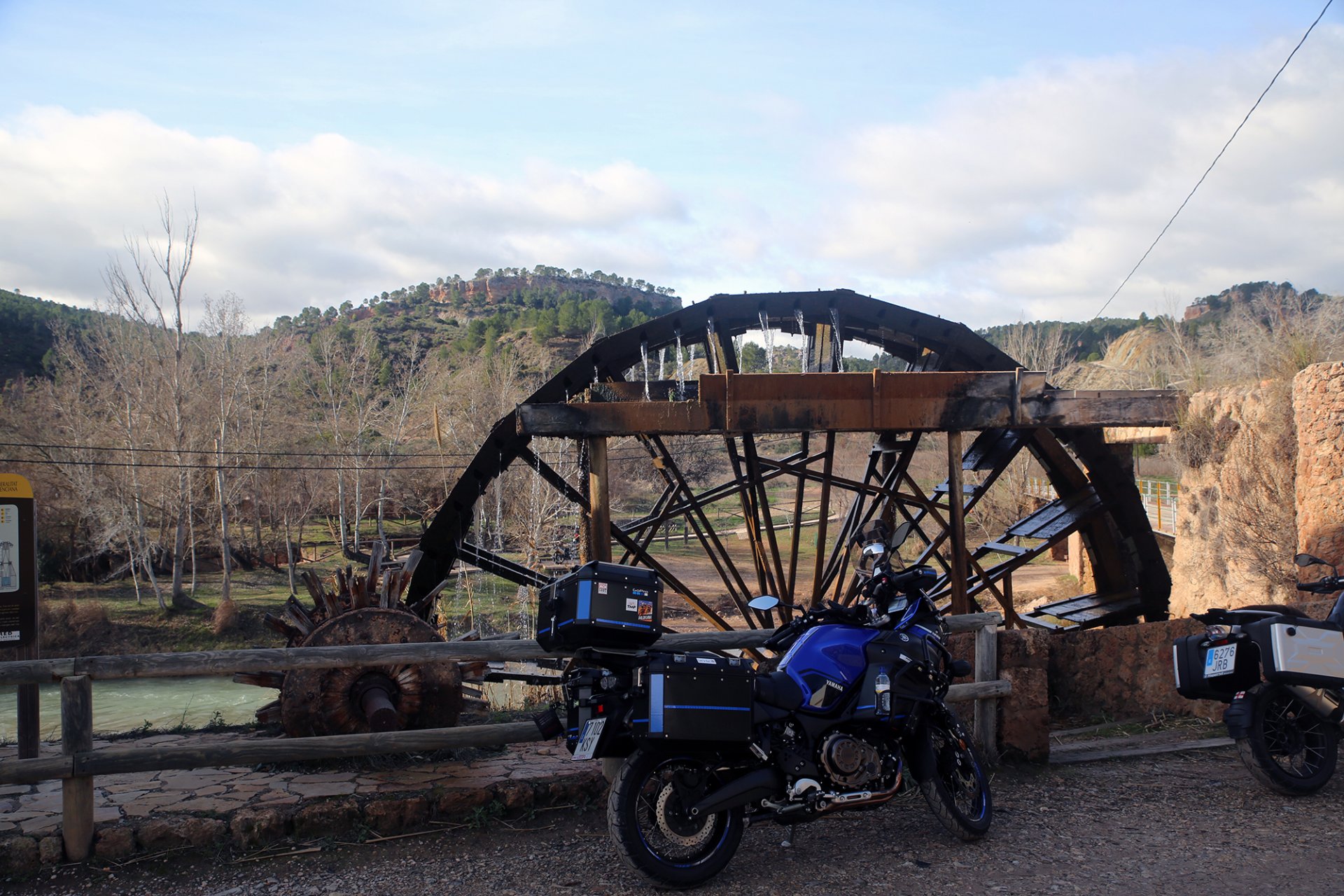 Last Wednesday I went on another organised ride out of around 420km..when I say organised well because of the new restrictions here you can only have a "meeting" with two people so three of us got together for a little bimble in the mountains. the problem I have is I live a fair way from the meeting place if you look at the map the red blob near the coast is where I live. Now not far from the meeting place there are some roadworks, new roads being built new roundabouts and even though I keep my sat nav up to date these particular road improvements hadn't yet made the update page. anyway I was sent up what was once the correct road but now nothing more than a mud track then a gravel track and in the middle of it all new tarmac...go figure! I followed this a for a couple of clicks then realised that because of a fence between the roads the only options was to turn around and back track which is where i got things a little wrong LOL. We eventually ended up in a place called Noria Hidraulica in the mountains which is where the oldest still in use wooden water wheel is located. On the way to the meeting place I was using my SJ cam I have been having trouble with high pitch screaming on the audio track, this time I had no sound at all so please excuse incidental music. I am putting together another vid of the trip where I used my go pro but that's for later.