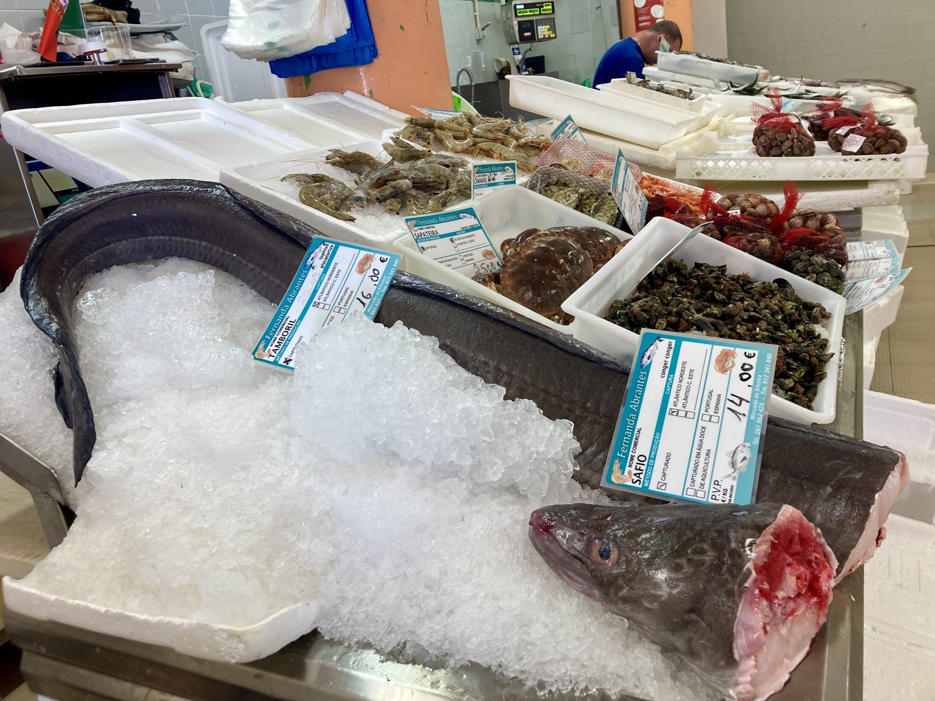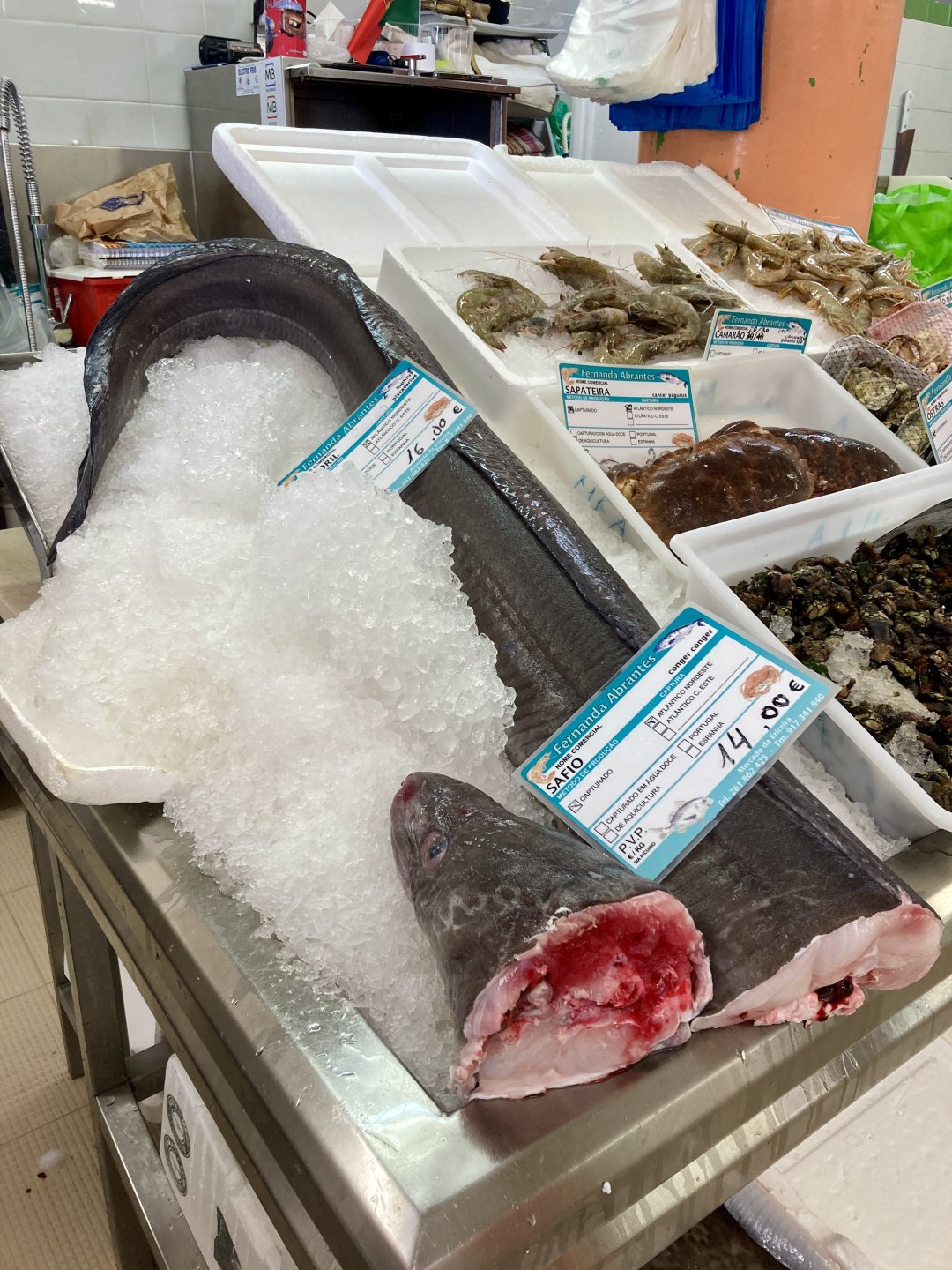 Went to the market today, to buy some grouper for dinner tonight. Took pictures while waiting for my fish because I know @boboneleg appreciates a nice market. A nice looking conger, I had to look up the name as we call them Safio. Black swordfish from the deepest waters of Madeira, and mackerels: Sardines are great this year, sadly too smelly to cook inside at home and ray