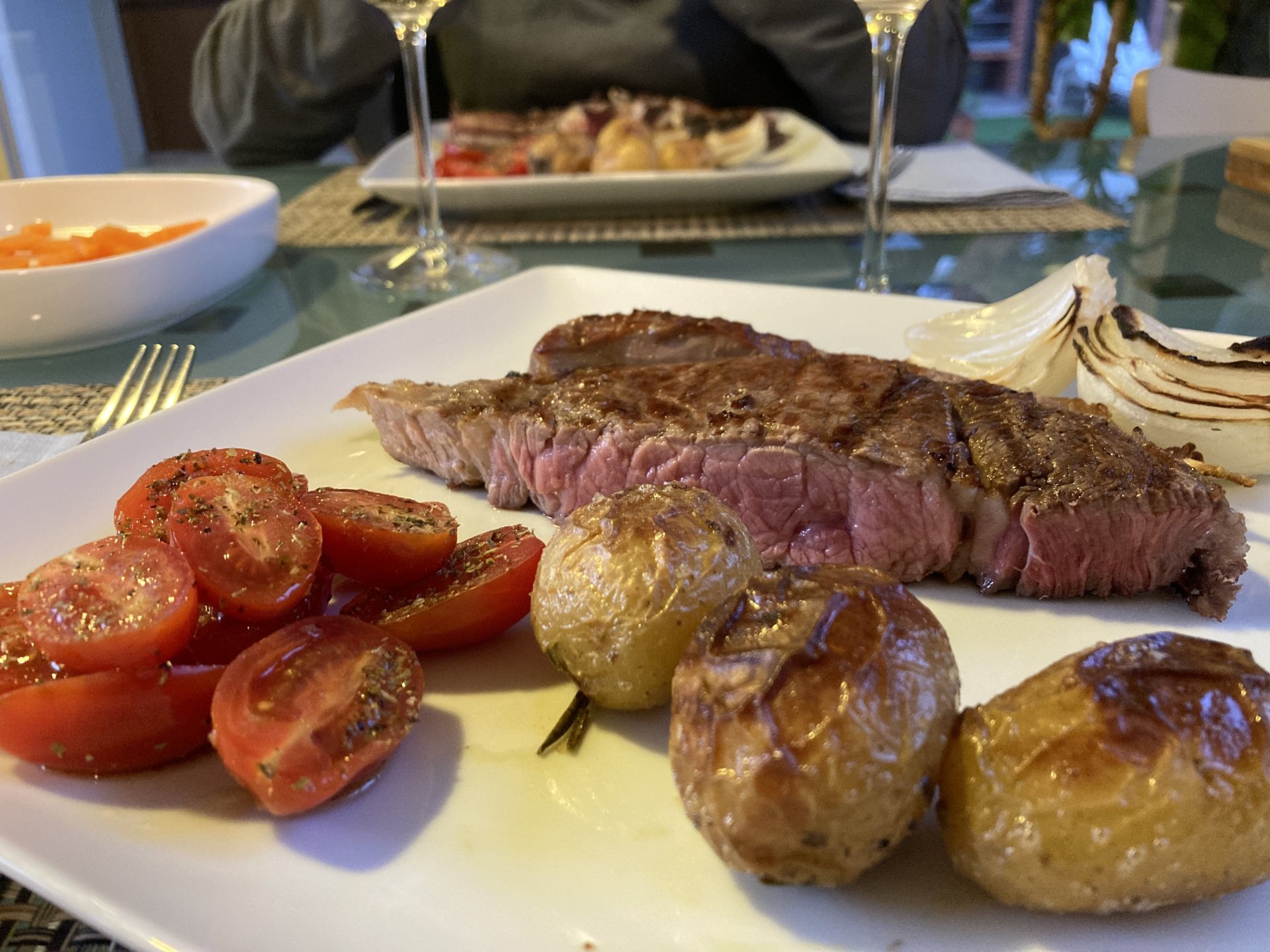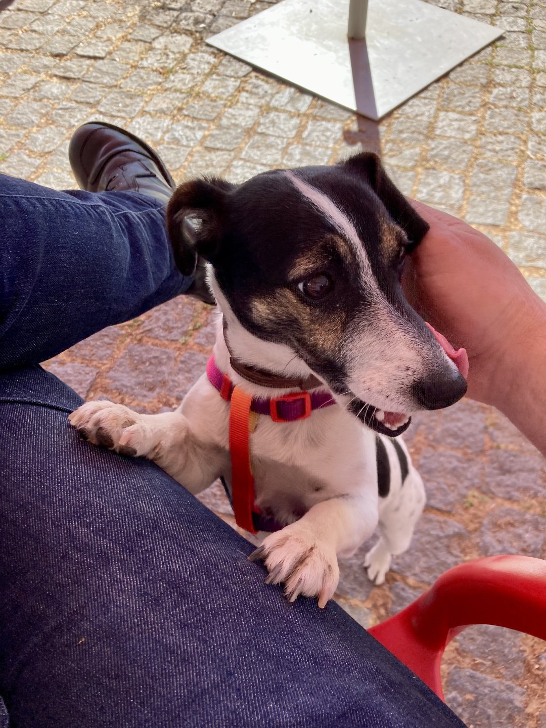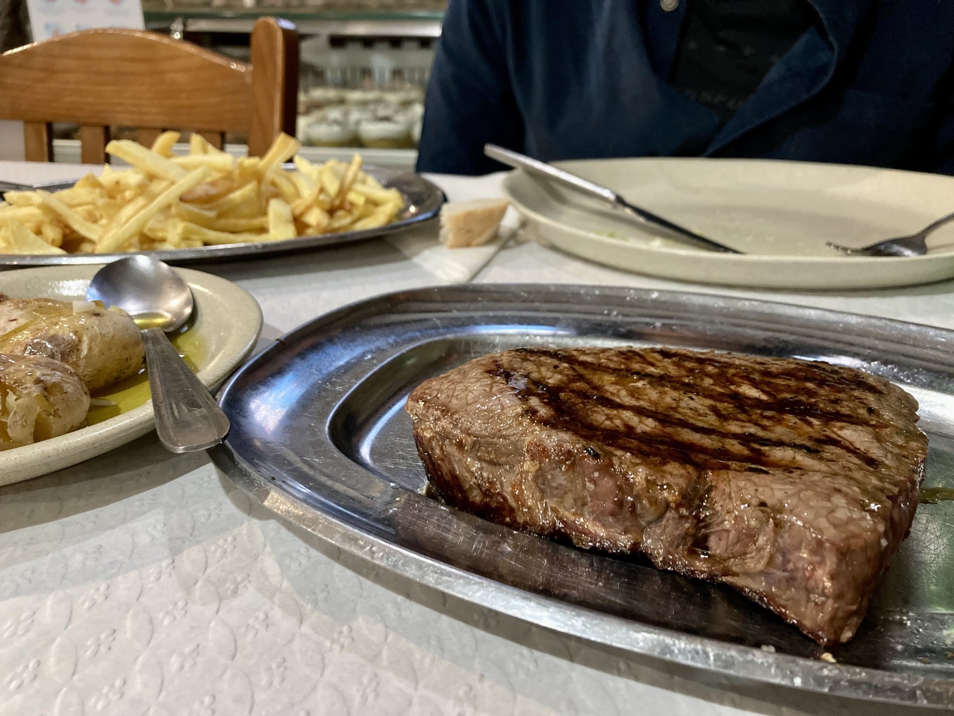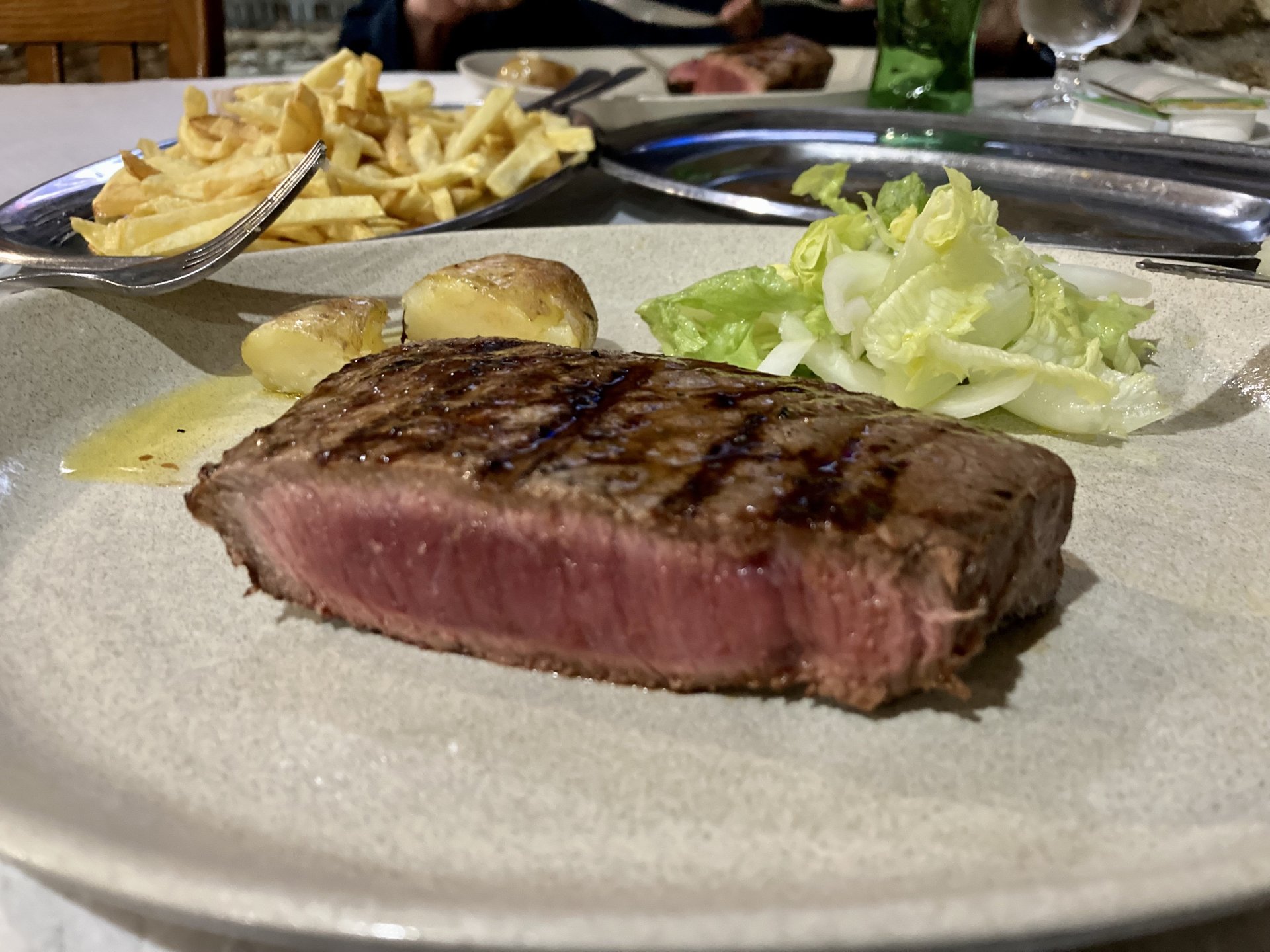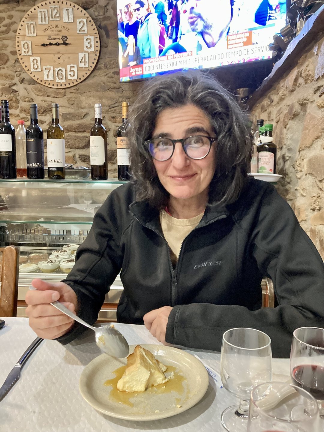 We almost took no pictures at all on this day. We had a not so early start as intent on not breaking my puppy's heart, we took him for a proper walk in the woods before setting off. We rode about one hour on the motorway through Porto's traffic and north to Braga, and from there got on a smaller road that would take us to our destination for the day except with a couple of detours for scenic reasons. The weather forecast had changed over the last couple of days, the warmth and sunshine of previous days to be delayed for a few days, there was a rain front coming from the Atlantic and heading East, and it was supposed to pass by this afternoon and evening. Turns out we saw the sky turn grey as we left and as we passed Braga it got darker and darker. As we left Braga a breakfast stop was made. As we bought a couple of sandwiches for take away for a lunch picnic and enjoyed breakfast, rain started to come down. Sofia has got a serious sweet tooth: As we left breakfast after 11:00, rain was slowly starting to fall, it increased in density and got colder as well. It then continued through the rest of the day, we rode through twisty roads, hills, proper nice scenery all day long without being able to see any of it. Mid afternoon it got proper cold and rain got heavy, made for a not pleasant motorcycling day, but we made it through it. We settled into the old farm house I stayed in a few days ago, and went on a walk to have dinner: On the menu was the typical beef cut of the region, which we call "Posta". It´s a leg cut so leaner and less soft than a rib or something like that, but very flavourful and full of texture, cooked over coal of course. Some wine was had, coupled with a fireplace heated restaurant and good food made for a cozy end to a pretty uncomfortable day. We decided to use the next day to ride around that area and stay at the same place again, weather being less shit would give us a chance to see some of the views we lost with the rain and fog, plus the chance to explore the Parque de Montesinho, which was new to Sofia. Morning didn't completely take rain clouds away, but made for a different mood. We set off to enjoy the area: Small typical villages are gorgeous places to see, and some of the unrestored crumbling houses convey the harshness of the environment: Rain did make an appearance though: We stopped for a coffee at Bragança's small airfield. Here starts an air bus service that crosses Portugal with three stops from this northern spot all the way down to Portimão in the Algarve. The small propeller driven aircraft probably makes for an interesting experience, I might go for a trip one of these days just for fun. We made it back to the hotel early in the afternoon, with plenty of time for a shower and then a nice walk around the fields before another rest before the walk up to the restaurant for dinner. I love the old wooden floors on some parts of the house: Bikes parked safe from the weather, too: I was feeling tired, a very light and disappointing lunch plus maybe some hay allergies. We made it to the restaurant early with plenty of daylight to spare, had a little red wine outside and snacked on a little bit of cheese. All energies returned as the sun started to go down. Food was superb. I have no proper pictures of it though, as I was too delighted that my special request made on the previous night was tended to. The nice lady running the restaurant made me very happy with a special vegetable rice to go along with the local grilled meat, the whole dinner was a show of great northern hospitality, and left me with a great desire to return and happy to end the day like that. Sofia, the sweet tooth: The next day will see us crossing amazing northern landscapes as we start to head back south, the best views of the trip. Will try and post that tomorrow.