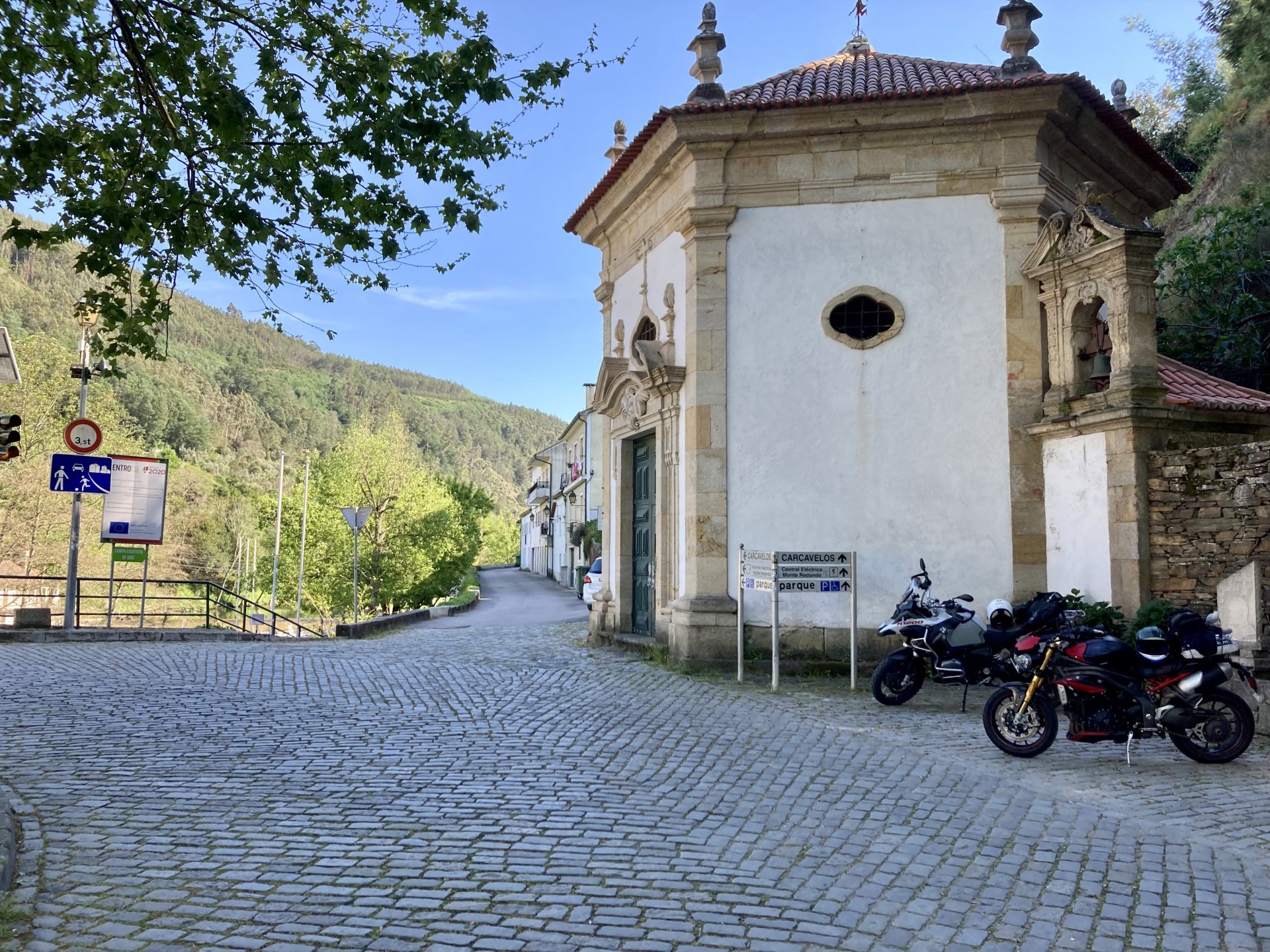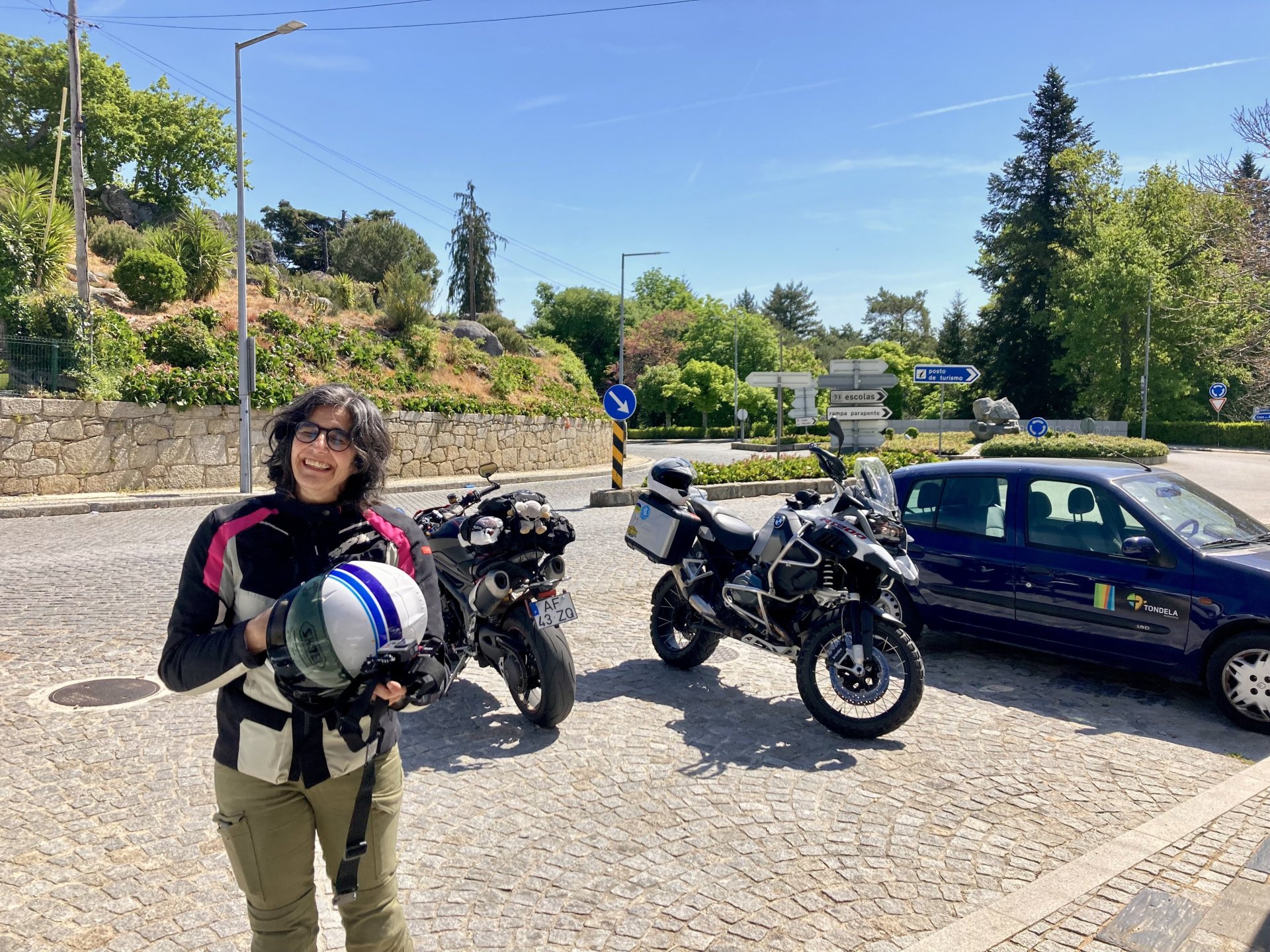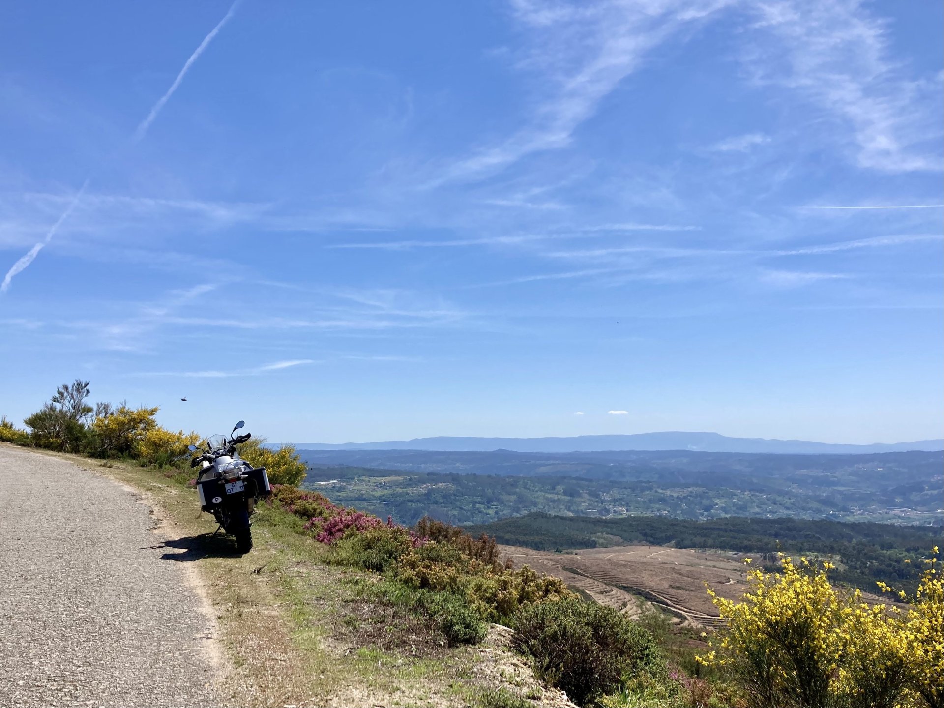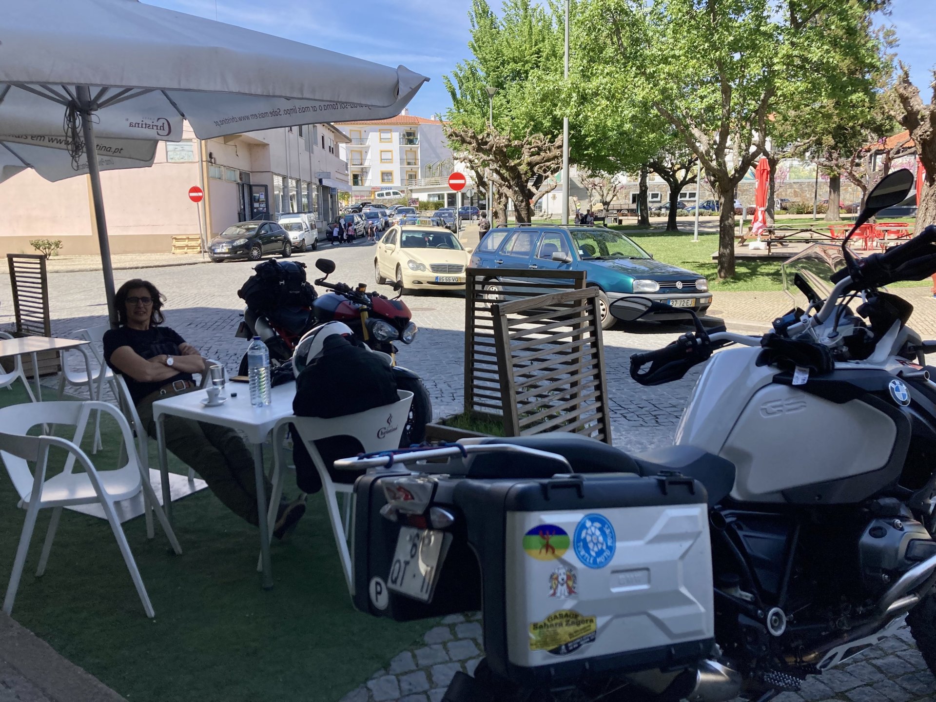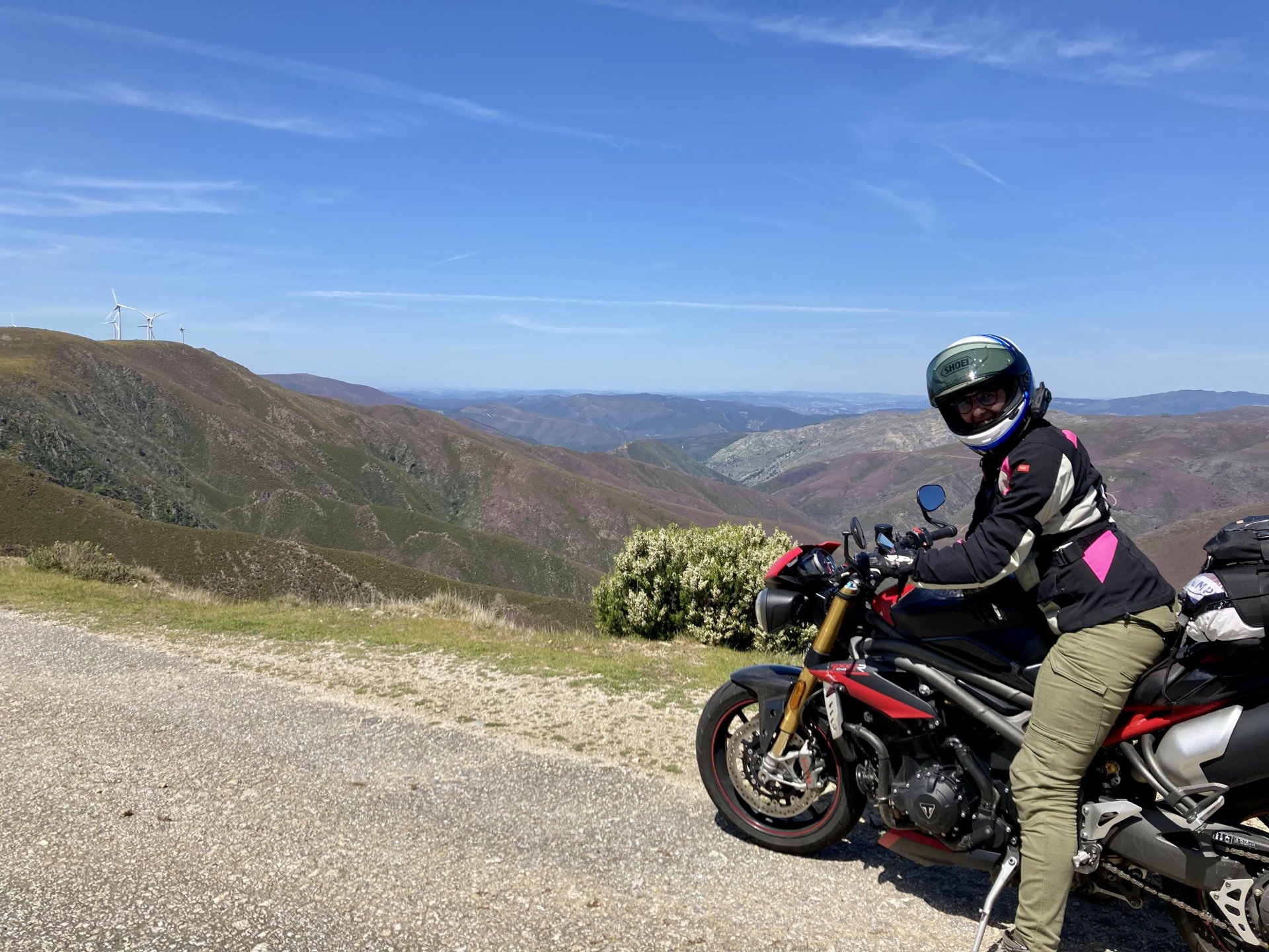 After my previous solo ride to Tras os Montes, Sofia had a few days to get away from being a vet and felt like going and checking the place out too, so that's what we did. Tras os Montes is sadly ignored by most tourists and even most portuguese tourists don't know the place. On one side this is bad, on the other it's very cool because it's a land of harsh climates, harsh landscape (that I've been told sometimes looks like Scotland), and authentic people and places, a lot of this is usually lost with bigger volume tourism. The aim was to go north, spend a couple of days at my parent's to keep my dog company, and then head north and inland in search of amazing old landscapes and good rustic meals. Tras os Montes reminds me of a time of kings, with it's abundant sweet chestnut trees, old castles, and stone walls that endure time. First, starting from the south / center of Portugal: I set of from my home near Lisbon on a monday morning, the sun was out and the day was to be sunny and plenty warm. I was early getting out, had already cleaned my place the day before so after taking out the trash the blinds were shut and the place left until my next stay. When I see that house closed I better leave quick or my emotional side takes over and I end up staying a few days more. I take only small roads, after a while I stop by a dam for breakfast at a cafe and a few work calls to get a few issues done for the day: Quickly made a friend, that abandoned her owner and came to check out my last bit of toast: Arrived at Constancia, quaint small town by the Tejo river with the claim of fame that very important historic poet Luis de Camões once lived here for a while. I stopped, had an espresso, and proceeded to wait for @Sofia, at the time setting off from Ericeira via motorways to catch up, she made it in illegally quick fashion but still gave me an hour to sit around watching country town life unfold. Posto de Turismo is where you get information about museums, tour guides, etc, and it's set up in the old jail house. Cool stuff, I did go up there to see the inside but it was closed. The sky was amazingly blue, and the warmth was arriving, it was supposed to be 30º that day. A contrast to the following days. At almost midday, Sofia arrived after her motorway blast, ready to take off a layer or two of warm clothing, and head into smaller slower roads heading up through the center of Portugal. We managed to eat a cheese and ham toast for lunch, which was a pleasant surprise, and continued north through dense forrests, here starting to look back from the first noticeable hills Not many pictures were taken, here's another friend that popped up while stopped for refreshments: Pampilhosa da Serra, roads around here are just underrated, this is hill and forrest country and the roads just seem to be well maintained, and fun enough to enjoy in all sorts of bikes. We stopped at a lookout over the town for a breath, and for me to think of the following roads. We had already settled on a historic hotel for the night so the general destination was set, just not the specific road to get there. I struck a pose: Brief stop at Gois, where I frequently get lost and exit on the wrong direction. Gois hosts Portugal's second biggest bike rally, after Faro. This is more of a portuguese thing, deep in the center of the country and away from touristy Algarve beaches. As we approach our hotel, which is deep in a forrest nature park, I stop for a bucolic pee and to enjoy the coolness the dense forest provides after a warm day on the bike. We park the bikes for the night, and quickly have a shower in time for a stroll around the property. Hour hotel is Palacio do Bussaco, a proper palace built for a real king. Rooms are run down and severely overvalued, but the building itself is amazingly characterful and the gardens and special forest around it are breathtaking. I never heard so many bees around, flowers are in bloom but we were later on having a glass of wine outside and you could hear the millions of bees in the background, like if a distant natural white noise. Sofia knows all about the story of the place, I am a little bit more of a simpleton and just enjoy the trees and birds and some (overpriced) wine. After a lovely dinner, we enjoy a walk around the gardens (like you do), before turning in. Tomorrow I have mountains and twisty roads planned! Before checking out, we walk a little around the forrest / garden surrounding the hotel, I learn that we have a special kind of cedar that only exists in this place. Cool stuff! ced Adequate parking location for the GS, although to be fair if I had my choice I would have left it under cover. I think the artisans that sculpted those pillars wouldn't have minded. From Bussaco and Luso, we set of to Serra do Caramulo for a coffee, some amazingly twisty roads up the hill have Sofia in a good mood after a little more than an hour to get there. Again, we set off, down the other side of Serra do Caramulo, and up Serra da Arada, we ride up a road I used to be very familiar with back when I used to race up here on the Transalp almost every weekend. The road twists up the hill with gravel and dirt thrown in on some bends, luckily for the Speed Triple it was better kept now but still a little out of spec for the sports bike like chassis of that bike. I forgot how harsh that road was, but it does make up for it with amazing views once you make it up there. BOTM: We ride through a few Serras, heading north, and I really put the Speed Triple and Sofia through some harsh roads, temperatures also reach 29º which doesn't bother me much but we were going slowly and it taxes you. A brief stop with a view After a longish day we reach the Douro river, which is just 40 minutes away from my parents' place. We take a breath of fresh riverside air. My dad was called in for a surprise visit to the doctor in Lisbon, so we made a two day stop in Espinho to hang out with Costa while they went away. It was a c