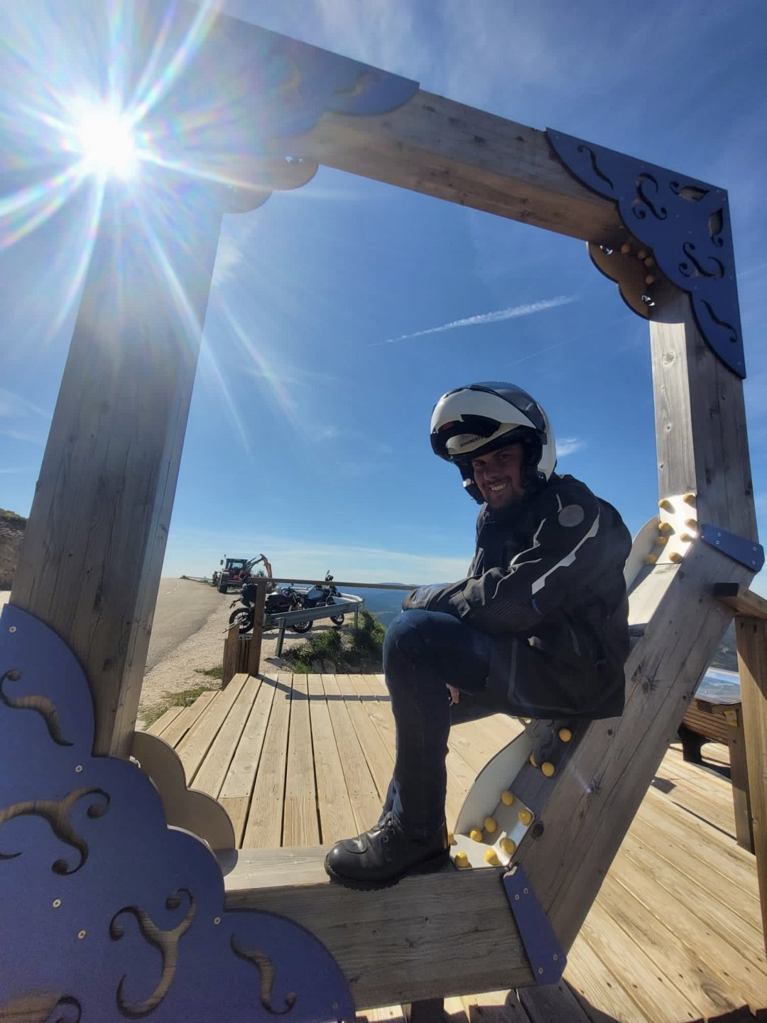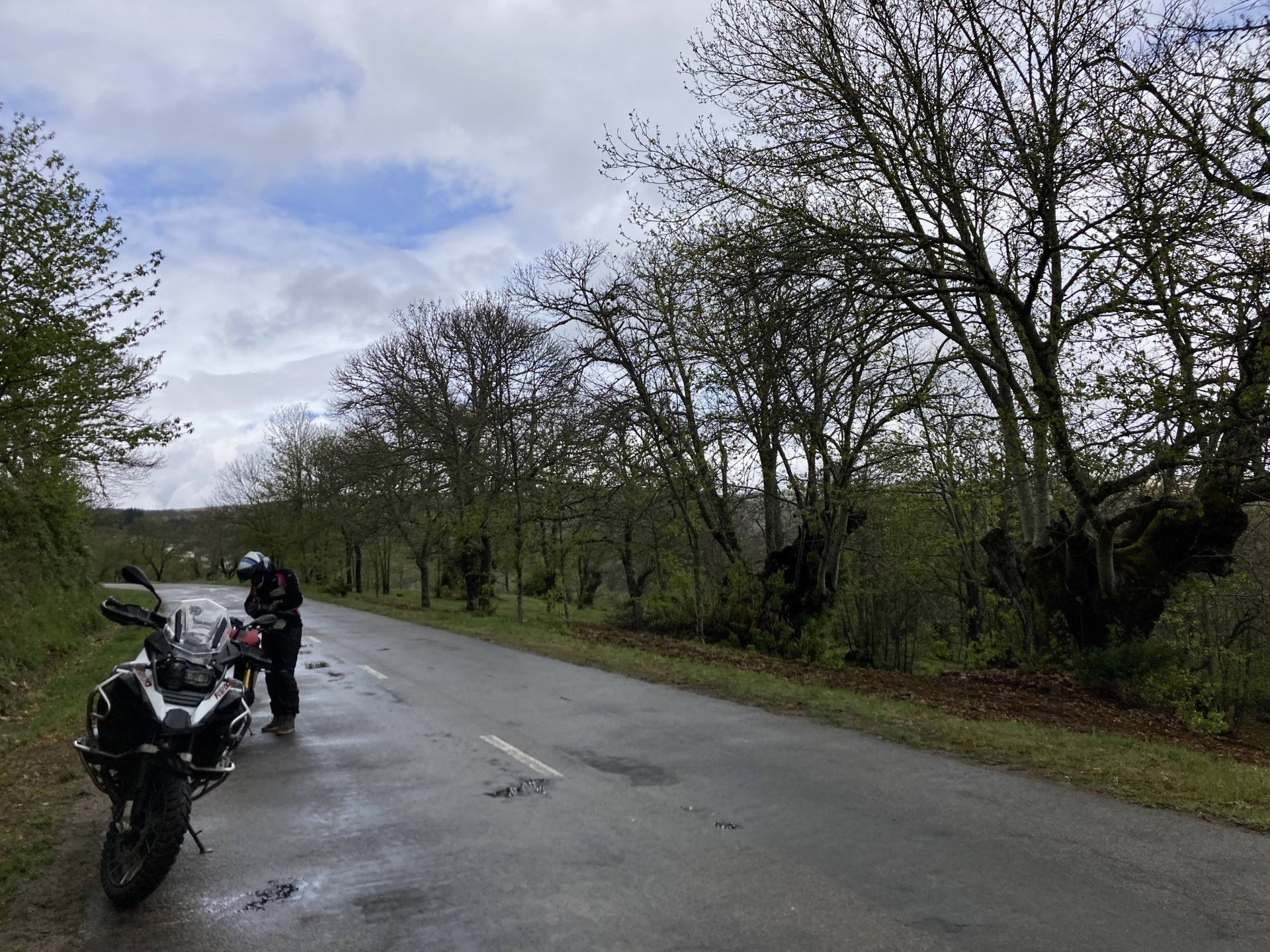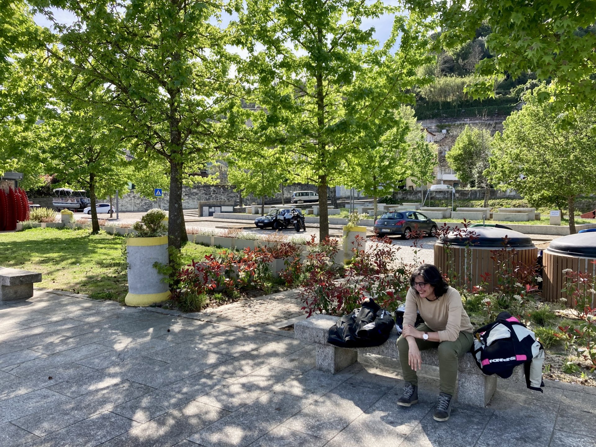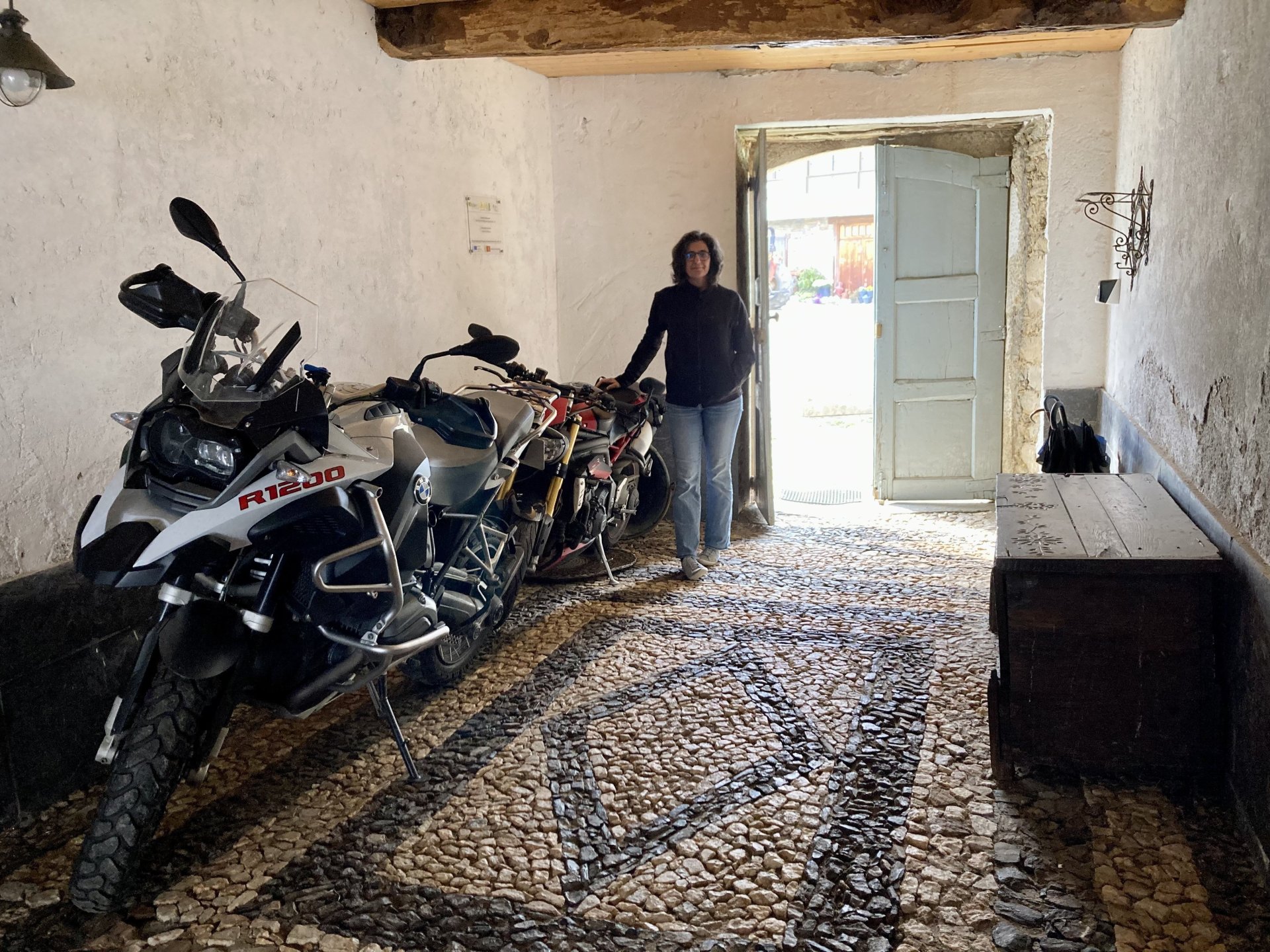 After my previous solo ride to Tras os Montes, Sofia had a few days to get away from being a vet and felt like going and checking the place out too, so that's what we did. Tras os Montes is sadly ignored by most tourists and even most portuguese tourists don't know the place. On one side this is bad, on the other it's very cool because it's a land of harsh climates, harsh landscape (that I've been told sometimes looks like Scotland), and authentic people and places, a lot of this is usually lost with bigger volume tourism. The aim was to go north, spend a couple of days at my parent's to keep my dog company, and then head north and inland in search of amazing old landscapes and good rustic meals. Tras os Montes reminds me of a time of kings, with it's abundant sweet chestnut trees, old castles, and stone walls that endure time. First, starting from the south / center of Portugal: I set of from my home near Lisbon on a monday morning, the sun was out and the day was to be sunny and plenty warm. I was early getting out, had already cleaned my place the day before so after taking out the trash the blinds were shut and the place left until my next stay. When I see that house closed I better leave quick or my emotional side takes over and I end up staying a few days more. I take only small roads, after a while I stop by a dam for breakfast at a cafe and a few work calls to get a few issues done for the day: Quickly made a friend, that abandoned her owner and came to check out my last bit of toast: Arrived at Constancia, quaint small town by the Tejo river with the claim of fame that very important historic poet Luis de Camões once lived here for a while. I stopped, had an espresso, and proceeded to wait for @Sofia, at the time setting off from Ericeira via motorways to catch up, she made it in illegally quick fashion but still gave me an hour to sit around watching country town life unfold. Posto de Turismo is where you get information about museums, tour guides, etc, and it's set up in the old jail house. Cool stuff, I did go up there to see the inside but it was closed. The sky was amazingly blue, and the warmth was arriving, it was supposed to be 30º that day. A contrast to the following days. At almost midday, Sofia arrived after her motorway blast, ready to take off a layer or two of warm clothing, and head into smaller slower roads heading up through the center of Portugal. We managed to eat a cheese and ham toast for lunch, which was a pleasant surprise, and continued north through dense forrests, here starting to look back from the first noticeable hills Not many pictures were taken, here's another friend that popped up while stopped for refreshments: Pampilhosa da Serra, roads around here are just underrated, this is hill and forrest country and the roads just seem to be well maintained, and fun enough to enjoy in all sorts of bikes. We stopped at a lookout over the town for a breath, and for me to think of the following roads. We had already settled on a historic hotel for the night so the general destination was set, just not the specific road to get there. I struck a pose: Brief stop at Gois, where I frequently get lost and exit on the wrong direction. Gois hosts Portugal's second biggest bike rally, after Faro. This is more of a portuguese thing, deep in the center of the country and away from touristy Algarve beaches. As we approach our hotel, which is deep in a forrest nature park, I stop for a bucolic pee and to enjoy the coolness the dense forest provides after a warm day on the bike. We park the bikes for the night, and quickly have a shower in time for a stroll around the property. Hour hotel is Palacio do Bussaco, a proper palace built for a real king. Rooms are run down and severely overvalued, but the building itself is amazingly characterful and the gardens and special forest around it are breathtaking. I never heard so many bees around, flowers are in bloom but we were later on having a glass of wine outside and you could hear the millions of bees in the background, like if a distant natural white noise. Sofia knows all about the story of the place, I am a little bit more of a simpleton and just enjoy the trees and birds and some (overpriced) wine. After a lovely dinner, we enjoy a walk around the gardens (like you do), before turning in. Tomorrow I have mountains and twisty roads planned! Before checking out, we walk a little around the forrest / garden surrounding the hotel, I learn that we have a special kind of cedar that only exists in this place. Cool stuff! ced Adequate parking location for the GS, although to be fair if I had my choice I would have left it under cover. I think the artisans that sculpted those pillars wouldn't have minded. From Bussaco and Luso, we set of to Serra do Caramulo for a coffee, some amazingly twisty roads up the hill have Sofia in a good mood after a little more than an hour to get there. Again, we set off, down the other side of Serra do Caramulo, and up Serra da Arada, we ride up a road I used to be very familiar with back when I used to race up here on the Transalp almost every weekend. The road twists up the hill with gravel and dirt thrown in on some bends, luckily for the Speed Triple it was better kept now but still a little out of spec for the sports bike like chassis of that bike. I forgot how harsh that road was, but it does make up for it with amazing views once you make it up there. BOTM: We ride through a few Serras, heading north, and I really put the Speed Triple and Sofia through some harsh roads, temperatures also reach 29º which doesn't bother me much but we were going slowly and it taxes you. A brief stop with a view After a longish day we reach the Douro river, which is just 40 minutes away from my parents' place. We take a breath of fresh riverside air. My dad was called in for a surprise visit to the doctor in Lisbon, so we made a two day stop in Espinho to hang out with Costa while they went away. It was a c