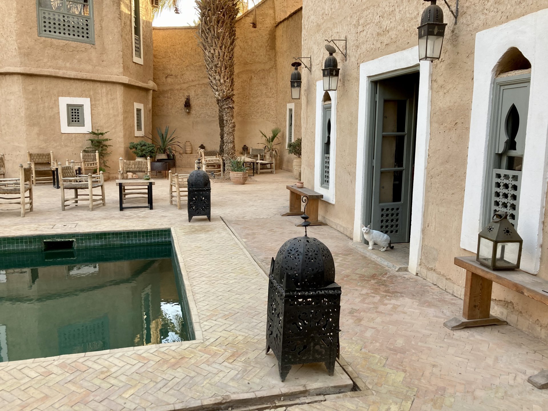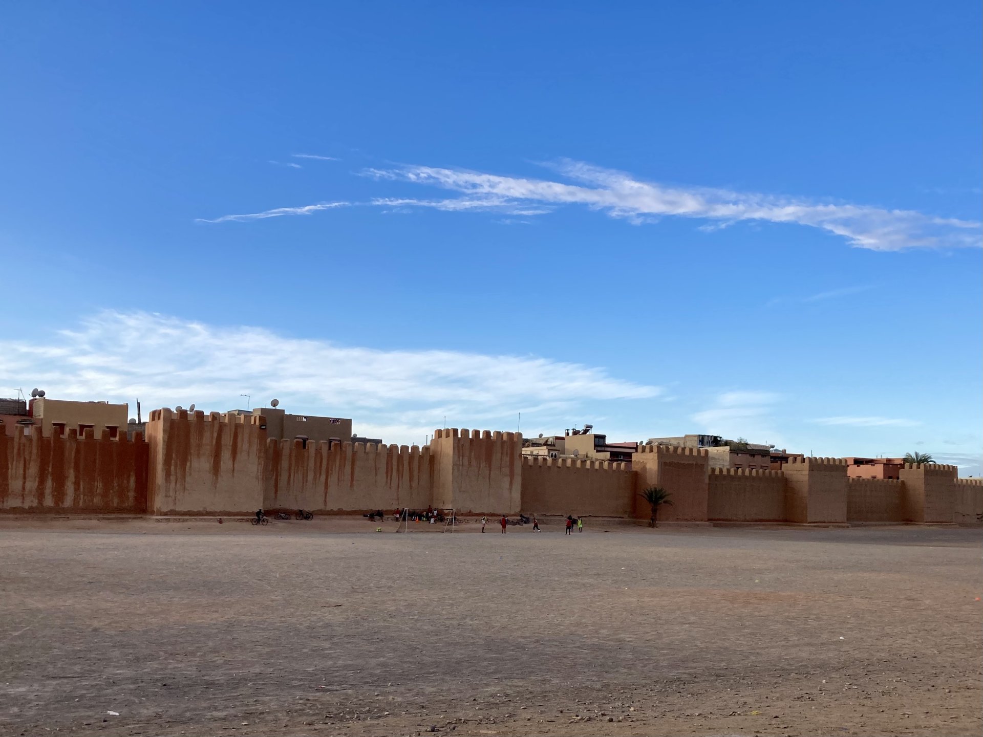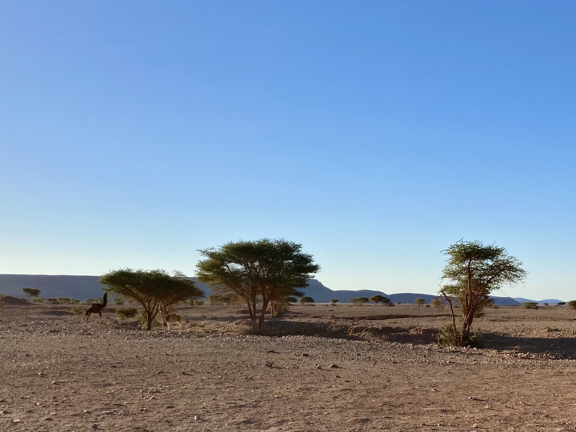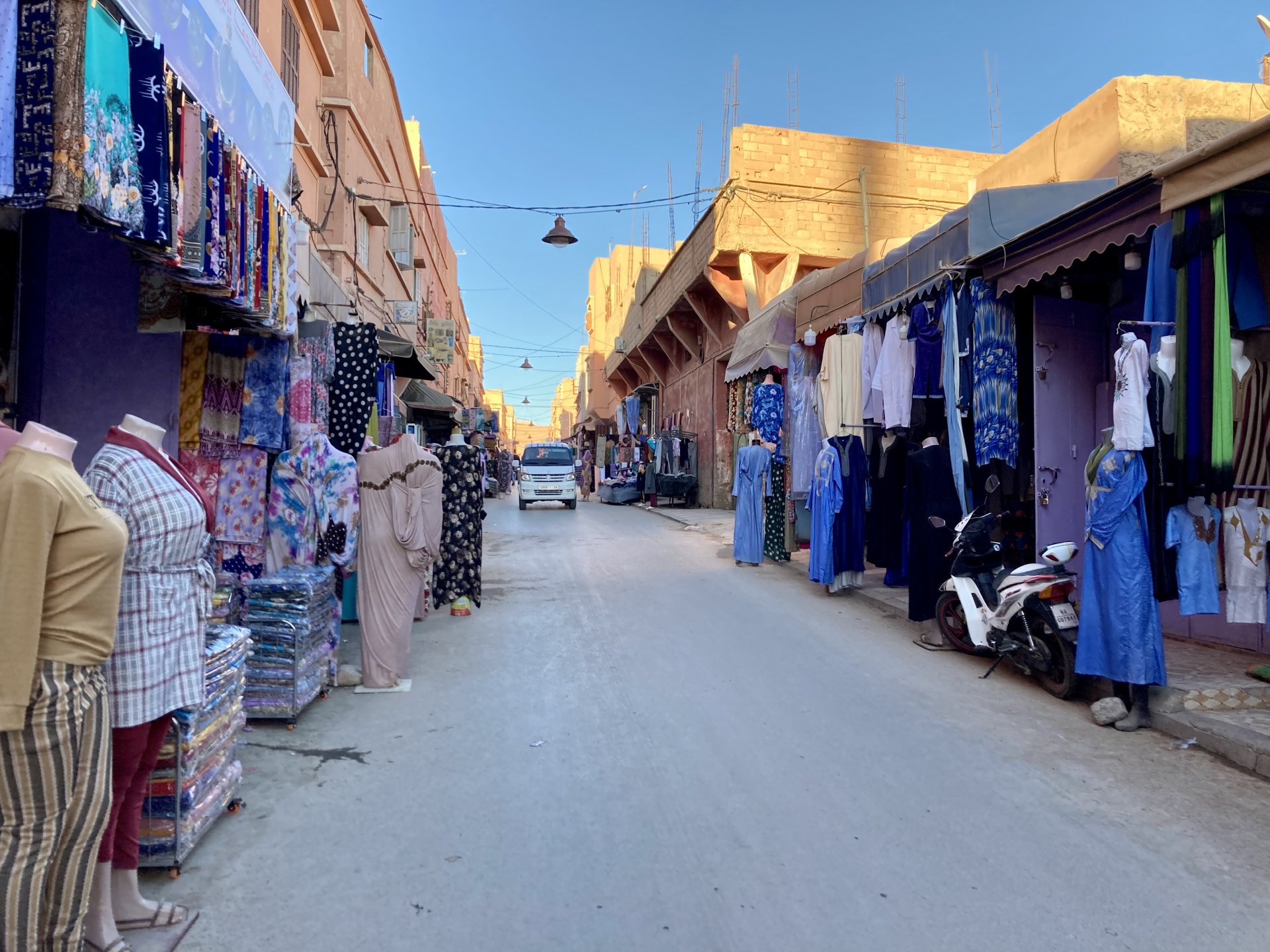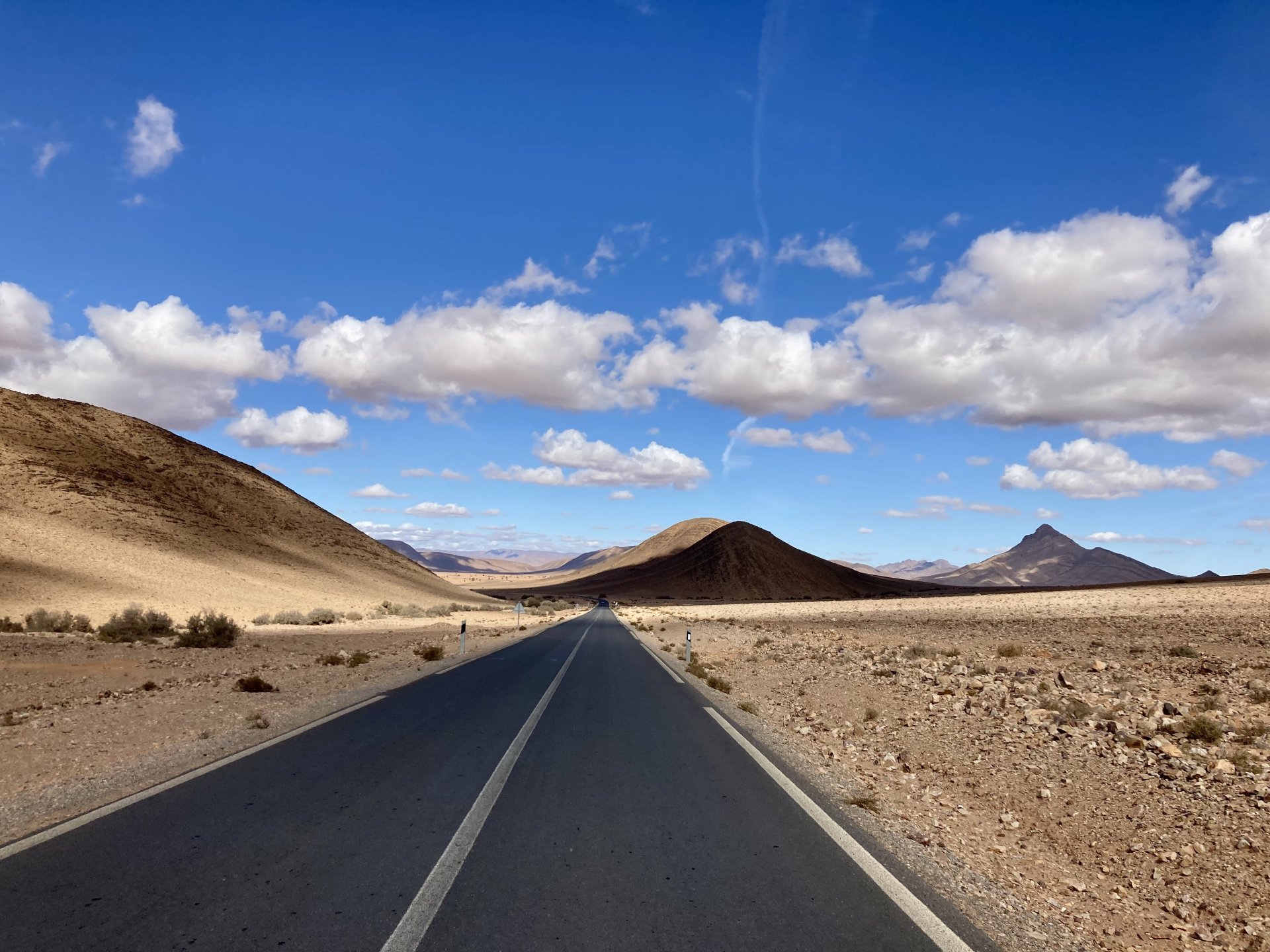 02nd December, Friday, woke up at dawn as soon as the sun cast sufficient light to hit me while still in bed, it's a lovely way to wake up also because here there is no TV, and very little internet to get distracted so you are forced to sleep early taking full advantage of the desert night silence. The previous night I talked a little with the hotel owner, and he told me about an oasis about 6 or 8km into the desert reachable only through proper sand dunes. Some hotels and tour guides have a few tents there and do overnight stays, there is no showers and limited use of water to prevent contamination of the excellent water quality they have there. It takes 1 to 1,5 hours to walk there with camels but only 15 minutes with quads. The silence of the desert night there must be deafening, I am eager to try that, and from what Hassan told me watching the stars there is amazing, extra amazing only though, because right on the edge of the dunes where I was staying you already get more of a clear picture of the universe than anywhere else I've been to. I was tempted to stay another couple of nights, on the night of the 02nd they had no other occupants other than maybe some surprise visitors but then on the 03rd they would be getting a 50 people group, if I were to stay that meant two more nights, and honestly I was worried that might push me too much into December and bad weather. Since I had been getting very lucky with the weather, I made a plan to visit again and next time go on the proper desert on foot or quads, now it's time to go back on the road. Waking up with the Saharan dawn, you can also appreciate desert style insulation on those doors : Bike packed up before breakfast, And again my favourite msmen and coffee for breakfast, while leisurely allowing the sun to rise a little and kill off some of that sand chill that seems to hit you right in the bones. The desert cold feels different than normal cold, during the previous days it got up about 15 and 18º in the afternoon and all the other tourists were freezing as soon as it got near sunset. Considering a group consisting of two Canadians, one Germans, two Swiss, some having flown directly from snow covered locations all exclaimed through an almost hearable teeth rattle that they didn't expect to feel so cold, there must be some truth to that. It does feel colder here. By 08:45 or 9, I rode off with a satisfying wheelspin, now feeling very confident with my surrounding terrain. My newly found confidence made me feel ecstatic and almost unwilling to leave the area, but it was the right thing to do as too much of that confidence would surely end up with an unpleasant event reminding me I am no Stephane Peterhansel. I decided to take only tarmac roads from here on, the bike having had a pretty good workout already, and also I realized that my luggage is the source of most of the unpleasant rattles I hear when riding on corrugations and proper offroad, I did not feel like carrying a broken luggage case in duct taped plastic bags. Next visit to the desert I will be carrying a different luggage arrangement if indeed the plan is to take more offroad pistes. My eyes were definitely teared up when leaving, it's a special location and I WILL return, I get a very similar feeling here than I used to get at the Nurburgring, both being motorsport locations and both with their own very special ways of biting back if you think you got things covered. After Rissani I stop as soon as the landscape becomes spectacular, and one last time try to find a fossil to take home. After 10 minutes looking I give up, say my farewells to Erg Chebbi and move on. I had a big day ahead, and from then on almost didn't stop through the day. I was headed southwest and planned on going past Zagora, to Tata an then Guelmim. Look it up on google maps, it's interesting terrain of wide open landscapes and mountains. No plan where to sleep, that would be tended to by mid afternoon depending on where I got to, riding at night with this cold wasn't on the plans. Acacia trees start to dot the landscape, and it definitely feels like Africa now. Stopped to have a sip of water, and ended up taking my knife to the plastic water bottle to cut it in half and provide three skinny dogs with some refreshment. They were cautious of me but as soon as I walked to a safe distance they slurped it down, no more water with me now, but I knew there would be plenty of towns ahead. Tissint is a pretty location, I remember that on a previous trip I was also surprised at how much water there was there. Stopped just enough to get a couple of pictures, and made way, this was a day for covering distance. Went past Zagora with just one stop to fuel up the bike, and rode on making it to Tata at around 16:00. I had passed by where before me and Maria had reached to stay for the night, but that was riding at much more of a leisurely pace, now I had a conundrum, either ride on and get cold in one or one and a half hours, or stay here and relax. Tata has an authentic vibe to it, no tourists, no Europeans either it seemed, and no touts. In fact nobody seemed to give a shit about me except for kids who always wave at a big motorcycle, so I stayed. Stopped on town entrance to eat something, a croissant and some yogurt, and check on booking.com and arrange for shelter. Don't know how to name that sweet by the croissant on the picture, but if you're ever in Morocco do ask for them by pointing, they're very cinnamony inside and absolutely decadent. I found a comfy and cheap place to stay, in a one single person bed bedroom, something I haven't seen in ages anywhere, but it had just been renovated and had amazing water pressure in the hot shower, something you really value after staying in the desert. By 17:30 I go to the bar to get a bottle of water and notice people are watching the world cup and drinking beer, not being my first choice on a regular day I promptly order a Heineken, and the bar tender is a little shoc