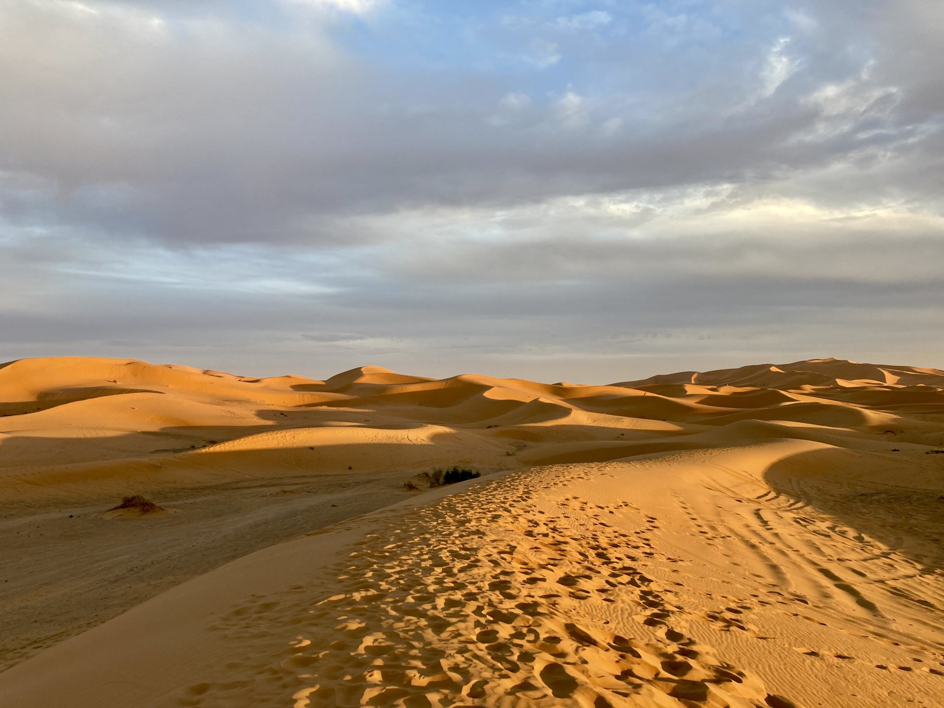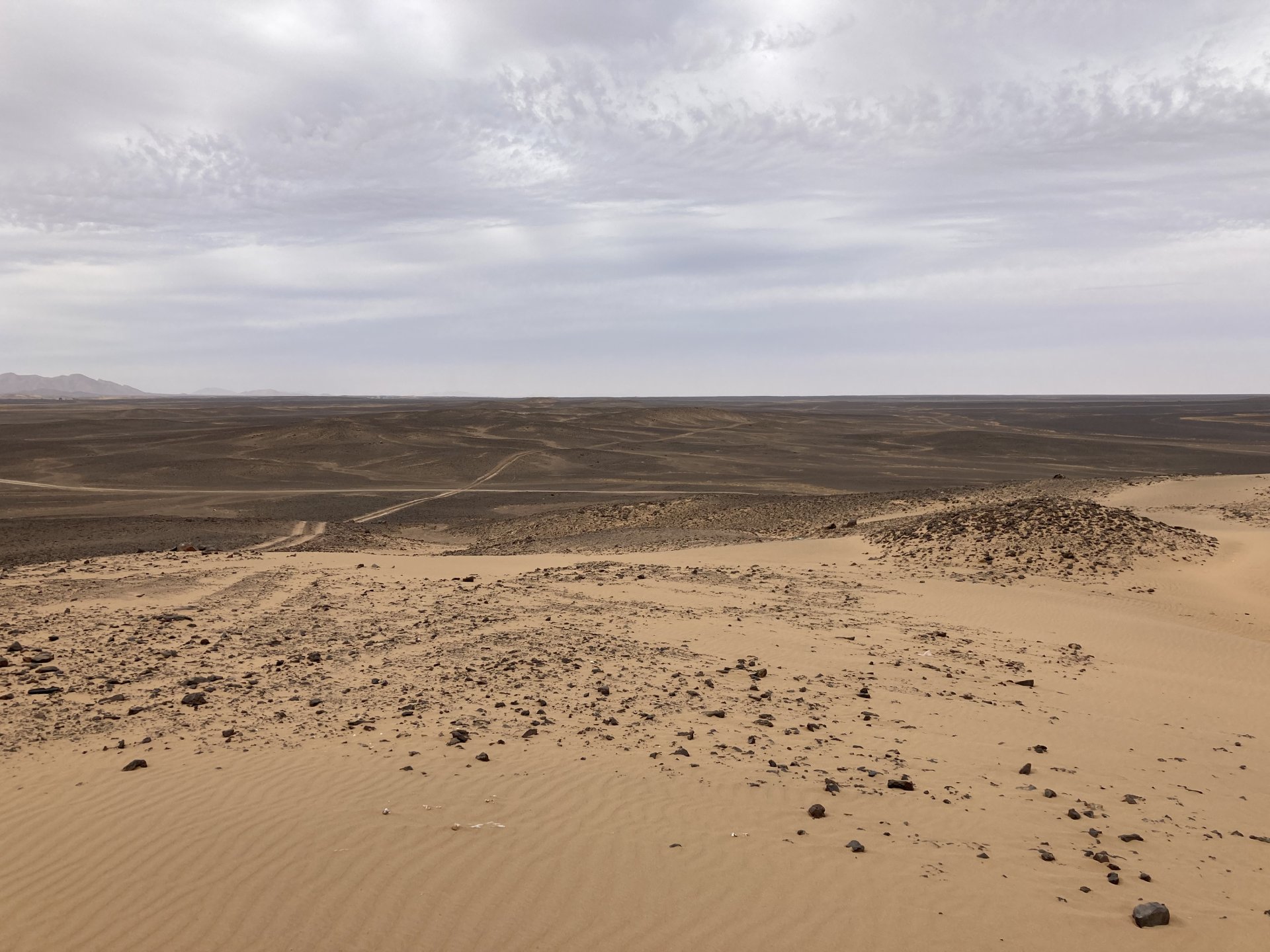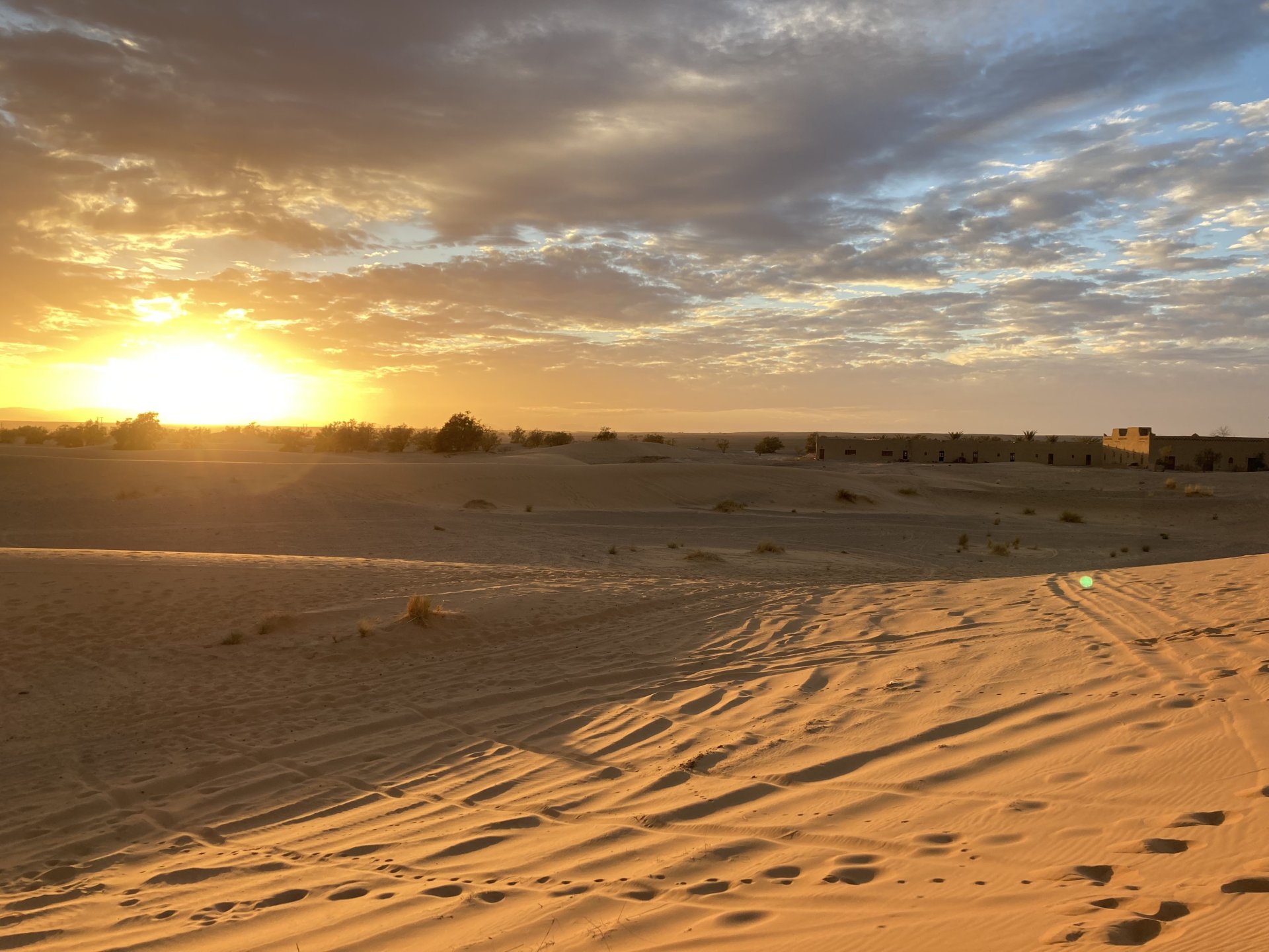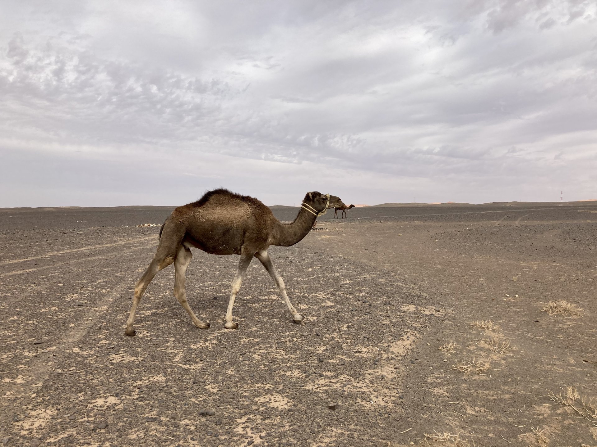 01st December is a national holiday in Portugal, it celebrates the restoration of independence following a period of union between Spain and Portugal. This happened in 1640 and is a pretty big deal for the History of Portugal as a country. This also means that all my clients are closed, and to me that meant that very little had to be done and very little surprise calls arrived. It contributes immensely to letting go of the real world. The day started with my usual berber breakfast of msmen and hot coffee, looking out into the dunes. With nowhere specific to go, I left with the task to ride around enjoying myself and then have lunch somewhere. Not a bad plan to have! The bike was started and traction control turned off, doing that to be able to easily move off from the overnight parking location is something that greatly appeals to me, also the 6 or 7km commute to Merzouga to buy Sofia a souvenir from Morocco without touching tarmac just reinforces that I could live with nice sandy roads instead of tarmac, on my way to Merzouga in the morning: Having done my shopping, I simply went out with a clear heading, away from town and in the general direction of some hills in the distance, I've never been there so as good a destination as any when all you want is to ride around a little. What happened next left me ecstatic, the bike now had a third of it's fuel load and my confidence had increased, this meant I confidently rode through soft sand sections like this oued below, here stopping to choose if taking the left or right paths right it was, and a little further on stopped to look at camels. Camels out roaming by themselves are great, they will completely disregard you as a thing of no importance to their day, and almost in a royal manner glide away with their smooth but effective stride. A later stop to drink water had me spend a few moments looking for fossils, Maria had a neck for finding them right there on the ground whenever we stopped, and I've got a small collection in my kitchen. I, however, am useless at stopping in the right location and managed to not find a single one on this trip, despite a few tries to look around for lost things whenever I stopped in a rocky area. As I am looking around, a curious desert bird decided to inspect my bike, on the pictures below you'll see it firstly floating around the right of the bike and then giving the bmw heated grips a try on the left hand grip: The little bird was scared away when a pickup drove to me and stopped, the driver quickly inviting me for tea at his mine with a big smile, and I accepted, as is only polite to do so. Followed the pickup at a distance so not to eat all of it's dust, and parked up the hill, they were most impressed but then I noticed the chinese bike one of them rode there. The mine owner was driving over with a big pot of stew for the guys' lunch or dinner, and oranges for dessert. At least a few of them sleep there during the week, it is a hard life! Always with a smile and a sense of pride, they showed me their labour, taking out rocks from the holes deep into the rocky hills and then sending them to a plant for extracting the minerals that were after used all over the world I don't know what for. Safety conditions seemed dire, and work was obviously very hard, I was treated to some great mint tea though. With an open invitation to pop by for tea whenever I pleased, I rode away. This time not stopping on any of the locations I previously took pictures of, gliding by with not a single foot on the ground through soft sand and phesh phesh felt great. That fine desert silt feels almost like water sometimes and you can feel it splashing onto the back of your legs like if riding through a deep water puddle. The bike is dragged down and you have to keep powering a little up to not be bogged down. Power too much and you'll gain too much speed and your acceleration is no longer sustainable, power too little and you'll be pulled down, you'll lose momentum and eventually the heavy mass becomes too heavy to control. The GS's boxer is an amazing help to dealing with the bike's weight, at anything over 2500/3000 rpm a quick throttle blip in second/third/fourth in soft sand and you'll power out of mosts things with a smooth amount of wheelspin. It all feels very controlable and confidence inducing, and it's a great high to be on that fine balance. I become lost and go up a hill to find my way back, even on trails it's very easy for me to lose my way around this open terrain. I ride back to Merzouga and stop at an edge of town café for lunch. The turkey grilled was amazingly seasoned, it was a lovely plate of food that I scoffed down at 13:30 after a hunger inducing morning on the bike. The bike was parked under it's cover facing out until the next morning and after a shower I spent the rest of the afternoon looking at the dunes with my sparrow friends. Couldn't bring myself to go up the dune, though, it was just too hard of a thing to do. The next day, I would ride off in the morning.