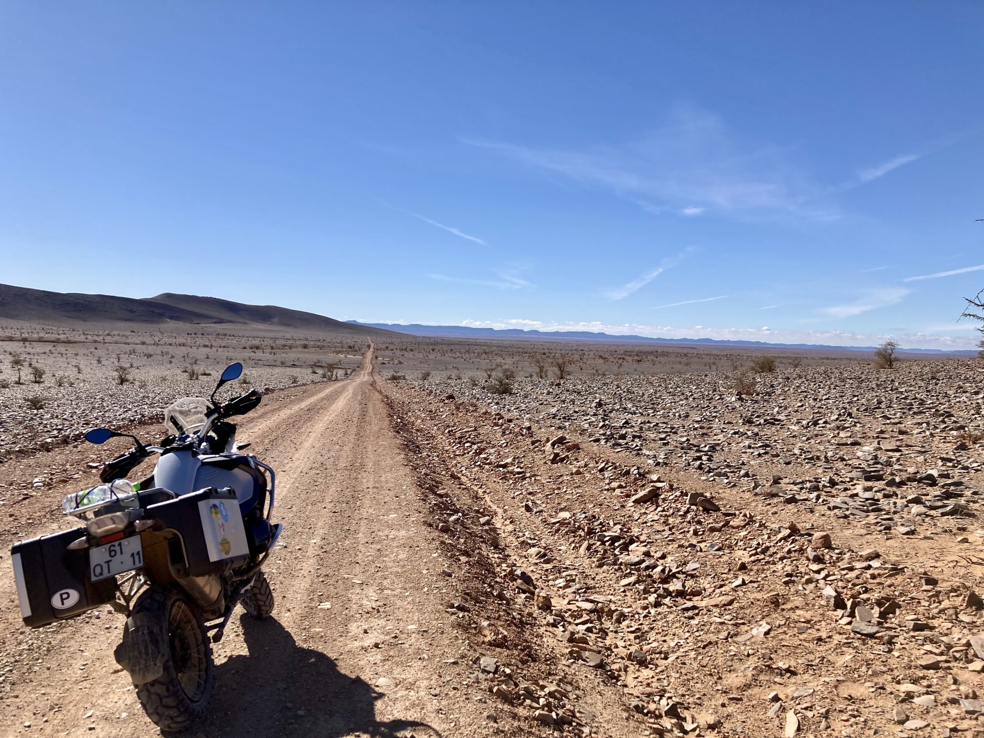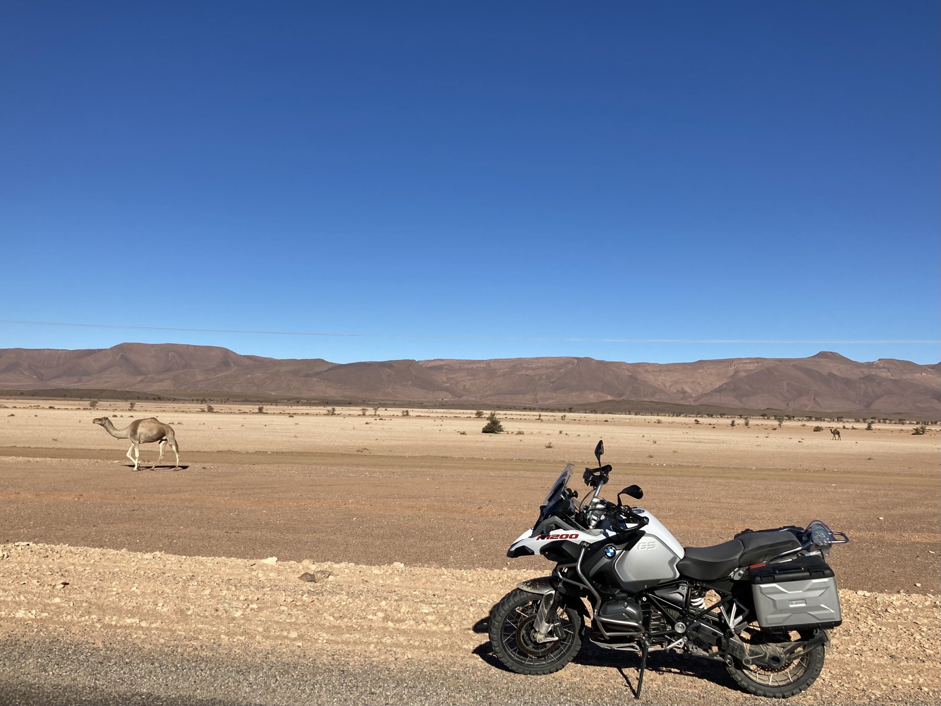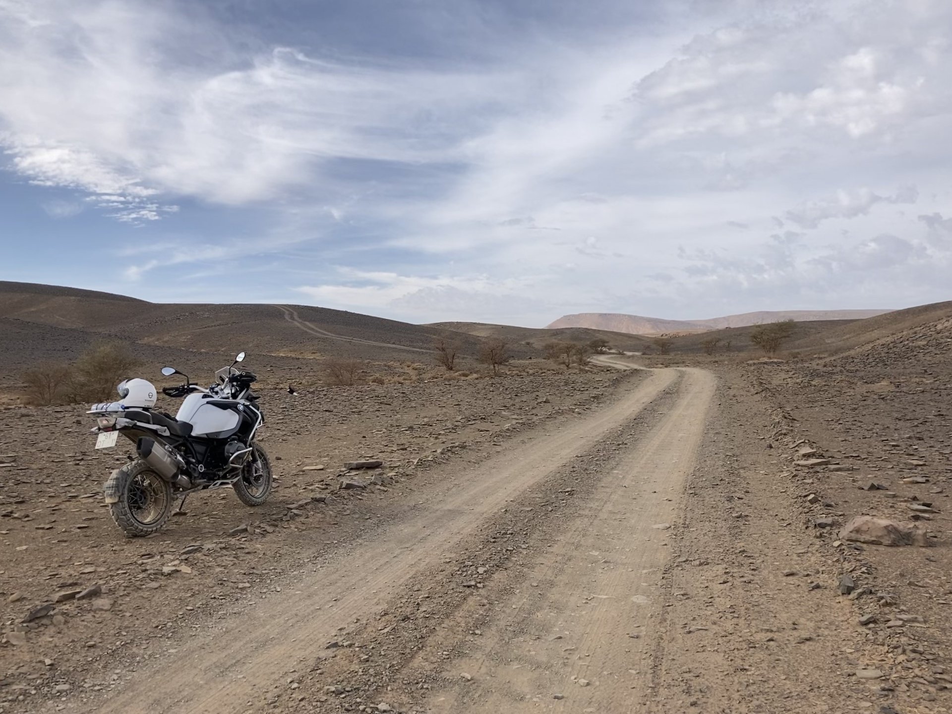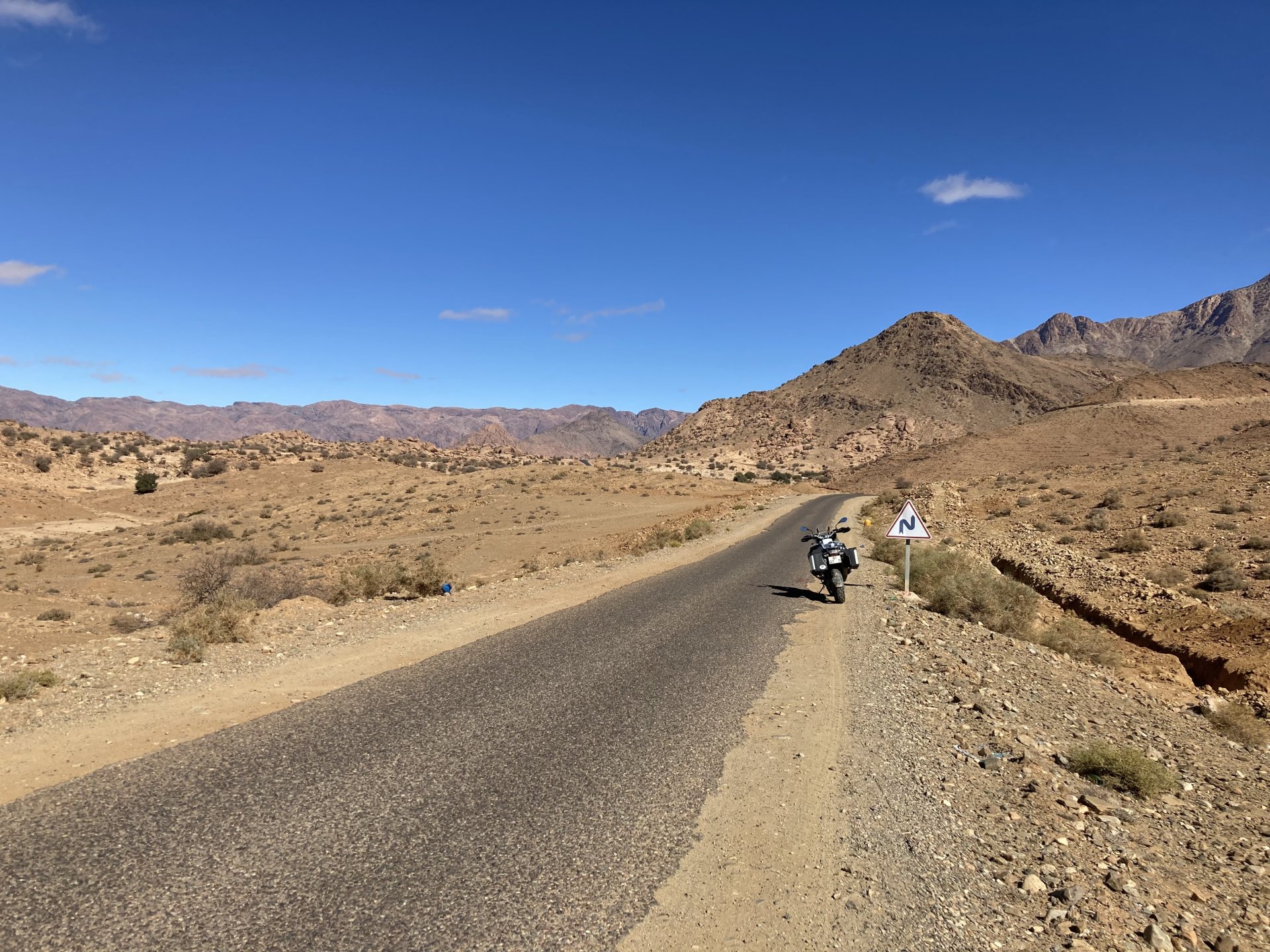 03rd December, Saturday. I wake up with an email I receive every saturday at 7:10 to 7:30, usually that annoys me, but here it means it's a Saturday so an early wake up call and absolutely no calls or work stuff for two days. Being able to get away like this during work is a great privilege, and I am aware and appreciative of that, but never being completely off from getting a surprise call even if being out on an adventure does take it's toll and you end up never enjoying things the same. I miss that hugely, in my previous trips with Maria I would leave my phone with my brother who would take over completely for a couple of weeks, that is no longer an option so I take my phone and my portuguese number works just like at home. Also take my laptop, which has proved amazingly resilient over the last few years, but it's a weight I would rather leave behind. Today I can leave it all behind, it's Saturday, so let's go! I ride the full 1km to one of Tata's bakeries and have an amazingly unhealthy breakfast, along with a big mug of delicious orange juice. I ride south-west, past Akka and heading to Foam El Hisn. Back in Merzouga you felt like you're in the Desert, but here you do feel like you're in a remote country and heading to proper Africa. It's not everyday I'm here so I did stop a few times to enjoy it, I was still undecided if going all the way to Guelmim or if turning back north at Four El Hisn. This is an Acacia branch, and what camels will chew on, each one of those thorns is properly sharp and tough. Tizounine, a clear example of a grand avenue crossing the town, with expensive light fixtures for miles before and after town, but walk 10 meters out of that grand avenue's sidewalks and it's dirt streets and mud homes, can't help but notice there's a little imbalance. Plastic trash is a problem, and along with touts thing to squeeze money out of tourists in big cities, this is what will shock you the most in Morocco, in some places it is a shocking problem that nobody obviously knows how to deal with. I preferred to not document it in this report because I felt uneasy taking my phone out for a picture in front of someone's home to document how disgusting their street looks like. Those are real people living there, and the lack of a trash management structure is something that they will eventually be hurt by. Here, this is just a casual reminder you're still in society even though you feel like you're out by yourself looking at camels. Now this was a little bit of a cool moment, I am enjoying the solitude of the place and a true rock garden, I talked to Sofia and had just said that from now on it'll be wide open spaces but safe roads, tarmac, mostly wide roads until I turn back on and get north to the Anti Atlas and then the Atlas, I get on the bike to ride about 2km and stop, look to my left as a nice dirt road goes perfectly over the hills to the left. It's not everyday I'm here, so I ride up to see what's on the other side of those hills, and soon enough find myself in fifth gear on the most perfect dirt road ever made heading to the horizon. It's heading south kind of towards Algeria, it's not really clear where it goes, but it's so perfect I'm keen on finding out, I've got time and it's Saturday so the fact that I've got no phone signal at all is less of a concern. Sadly, a few minutes into it the perfect dirt road from heaven and it ends into this. This is not on google marked as anything, but it's around here: https://goo.gl/maps/wbrCcWvPmykJzQns7 and a little bit of a @XTreme ride report. It ends in what looks like a small abandoned fortified building, now in ruins. I had decided to make the most of it and go to Guelmim, so suddenly I had plenty of time as it was still 12:30. I ride down there and go exploring a little. From the top I see another building in ruins, and go see that too: Upon closer inspection the tiny building's remaining really stink! I start spotting a lot of animal dung and a minute later the probable culprits! Wild donkeys use this as their bathroom, they jump up from their sleep in the shade and get ready to run away. Makes sense that this place has a well near it, before roads this is a little out there, there's a river a few kms away so this well probably never runs dry either. Nowadays there's solar powered pumps keeping water available for animals, I decided not to try it out even though the sun was strong and this was the warmest it's been in this whole trip. And just like that, I'm back on the perfect dirt road, quickly getting back to the N12, and head south to Assa for a lunch stop. I stop on an empty snack place, and order a turkey grillade sandwich. While I wait my bike attracts the attention of three kids, who come to look at it and say hello. It turns into a photo shoot and even the guy from the cafe next door comes to have his picture taken on the mighty GS The grillade Panini arrived and it was delicious, turns out turkey can be delicious too. This plus a coca cola went for 24 dirhams, which sometimes makes me think that something must be wrong with some places in Portugal and the prices I'm charged for stuff that takes less effort than this. As I paid and said farewell it turned into a photoshoot for purposes of internet publicity in their google maps thing, that up until now looked rather poor. If you want go and post a like or a 5 stars rating: https://goo.gl/maps/GgDwhS3d8h7pFGWz7 The three kids that had previously came by did ask for one dirham, and I didn't have the heart to say no. I gave them a 5 or 10 dirham coin but told them to split between the three, as I was riding off I saw them come running back to show me the three big candy bars they got, with huge grins. It made me really happy, that, the wrappers are probably flying around the sahara now, but I chose to focus on their smiles instead. Again, Assa shows off with extravagant street lighting when most streets inside are dirt. I've been riding on the N12 since morning, it's a Nat