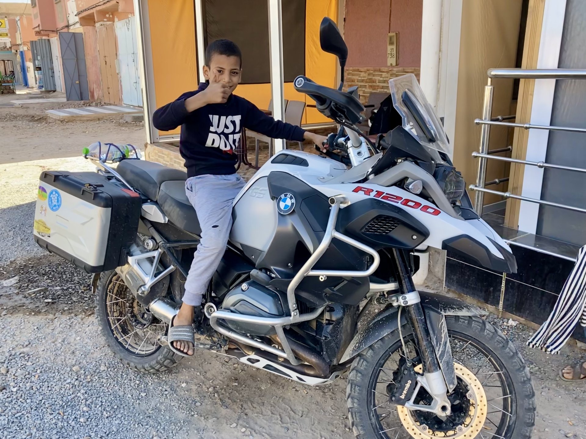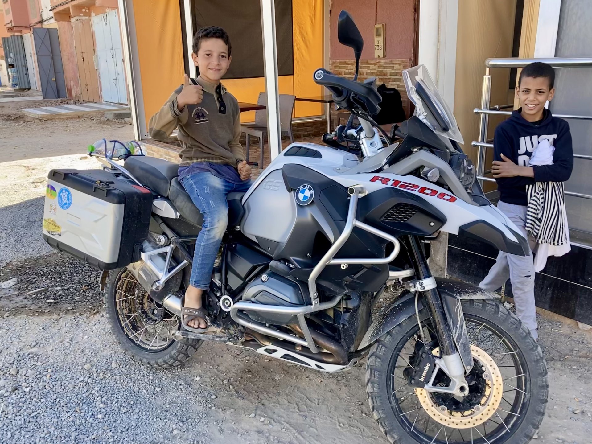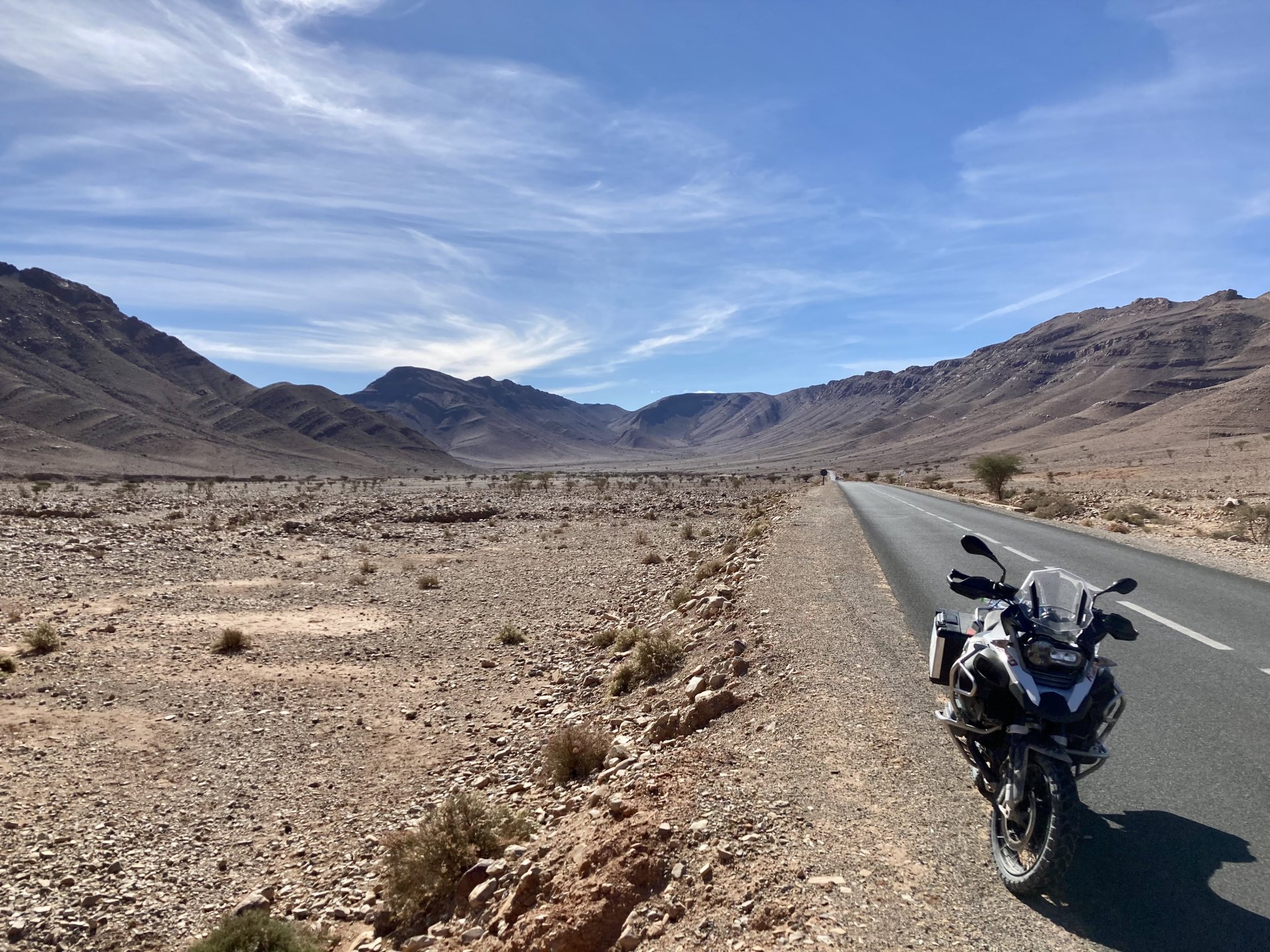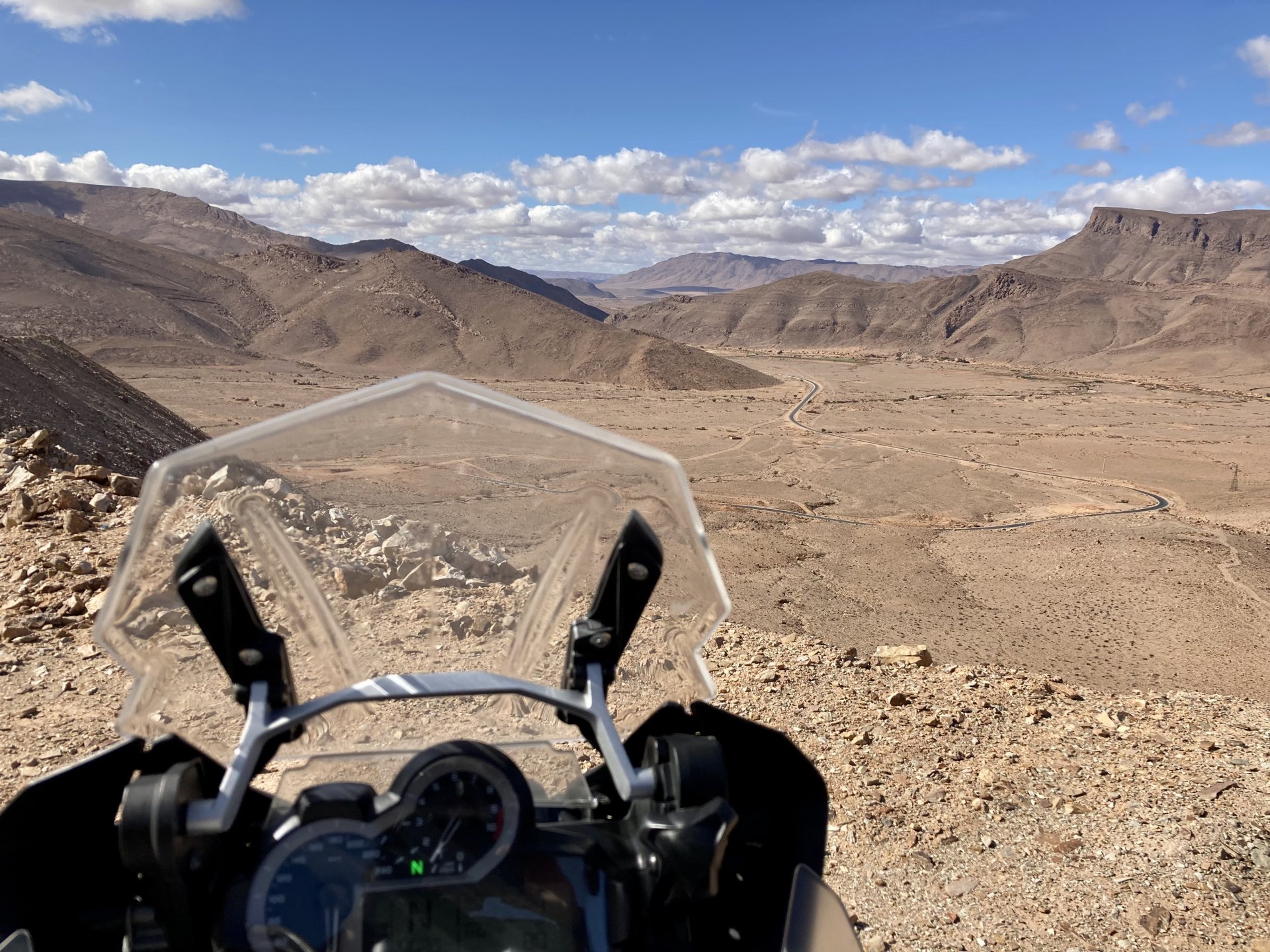 03rd December, Saturday. I wake up with an email I receive every saturday at 7:10 to 7:30, usually that annoys me, but here it means it's a Saturday so an early wake up call and absolutely no calls or work stuff for two days. Being able to get away like this during work is a great privilege, and I am aware and appreciative of that, but never being completely off from getting a surprise call even if being out on an adventure does take it's toll and you end up never enjoying things the same. I miss that hugely, in my previous trips with Maria I would leave my phone with my brother who would take over completely for a couple of weeks, that is no longer an option so I take my phone and my portuguese number works just like at home. Also take my laptop, which has proved amazingly resilient over the last few years, but it's a weight I would rather leave behind. Today I can leave it all behind, it's Saturday, so let's go! I ride the full 1km to one of Tata's bakeries and have an amazingly unhealthy breakfast, along with a big mug of delicious orange juice. I ride south-west, past Akka and heading to Foam El Hisn. Back in Merzouga you felt like you're in the Desert, but here you do feel like you're in a remote country and heading to proper Africa. It's not everyday I'm here so I did stop a few times to enjoy it, I was still undecided if going all the way to Guelmim or if turning back north at Four El Hisn. This is an Acacia branch, and what camels will chew on, each one of those thorns is properly sharp and tough. Tizounine, a clear example of a grand avenue crossing the town, with expensive light fixtures for miles before and after town, but walk 10 meters out of that grand avenue's sidewalks and it's dirt streets and mud homes, can't help but notice there's a little imbalance. Plastic trash is a problem, and along with touts thing to squeeze money out of tourists in big cities, this is what will shock you the most in Morocco, in some places it is a shocking problem that nobody obviously knows how to deal with. I preferred to not document it in this report because I felt uneasy taking my phone out for a picture in front of someone's home to document how disgusting their street looks like. Those are real people living there, and the lack of a trash management structure is something that they will eventually be hurt by. Here, this is just a casual reminder you're still in society even though you feel like you're out by yourself looking at camels. Now this was a little bit of a cool moment, I am enjoying the solitude of the place and a true rock garden, I talked to Sofia and had just said that from now on it'll be wide open spaces but safe roads, tarmac, mostly wide roads until I turn back on and get north to the Anti Atlas and then the Atlas, I get on the bike to ride about 2km and stop, look to my left as a nice dirt road goes perfectly over the hills to the left. It's not everyday I'm here, so I ride up to see what's on the other side of those hills, and soon enough find myself in fifth gear on the most perfect dirt road ever made heading to the horizon. It's heading south kind of towards Algeria, it's not really clear where it goes, but it's so perfect I'm keen on finding out, I've got time and it's Saturday so the fact that I've got no phone signal at all is less of a concern. Sadly, a few minutes into it the perfect dirt road from heaven and it ends into this. This is not on google marked as anything, but it's around here: https://goo.gl/maps/wbrCcWvPmykJzQns7 and a little bit of a @XTreme ride report. It ends in what looks like a small abandoned fortified building, now in ruins. I had decided to make the most of it and go to Guelmim, so suddenly I had plenty of time as it was still 12:30. I ride down there and go exploring a little. From the top I see another building in ruins, and go see that too: Upon closer inspection the tiny building's remaining really stink! I start spotting a lot of animal dung and a minute later the probable culprits! Wild donkeys use this as their bathroom, they jump up from their sleep in the shade and get ready to run away. Makes sense that this place has a well near it, before roads this is a little out there, there's a river a few kms away so this well probably never runs dry either. Nowadays there's solar powered pumps keeping water available for animals, I decided not to try it out even though the sun was strong and this was the warmest it's been in this whole trip. And just like that, I'm back on the perfect dirt road, quickly getting back to the N12, and head south to Assa for a lunch stop. I stop on an empty snack place, and order a turkey grillade sandwich. While I wait my bike attracts the attention of three kids, who come to look at it and say hello. It turns into a photo shoot and even the guy from the cafe next door comes to have his picture taken on the mighty GS The grillade Panini arrived and it was delicious, turns out turkey can be delicious too. This plus a coca cola went for 24 dirhams, which sometimes makes me think that something must be wrong with some places in Portugal and the prices I'm charged for stuff that takes less effort than this. As I paid and said farewell it turned into a photoshoot for purposes of internet publicity in their google maps thing, that up until now looked rather poor. If you want go and post a like or a 5 stars rating: https://goo.gl/maps/GgDwhS3d8h7pFGWz7 The three kids that had previously came by did ask for one dirham, and I didn't have the heart to say no. I gave them a 5 or 10 dirham coin but told them to split between the three, as I was riding off I saw them come running back to show me the three big candy bars they got, with huge grins. It made me really happy, that, the wrappers are probably flying around the sahara now, but I chose to focus on their smiles instead. Again, Assa shows off with extravagant street lighting when most streets inside are dirt. I've been riding on the N12 since morning, it's a Nat
