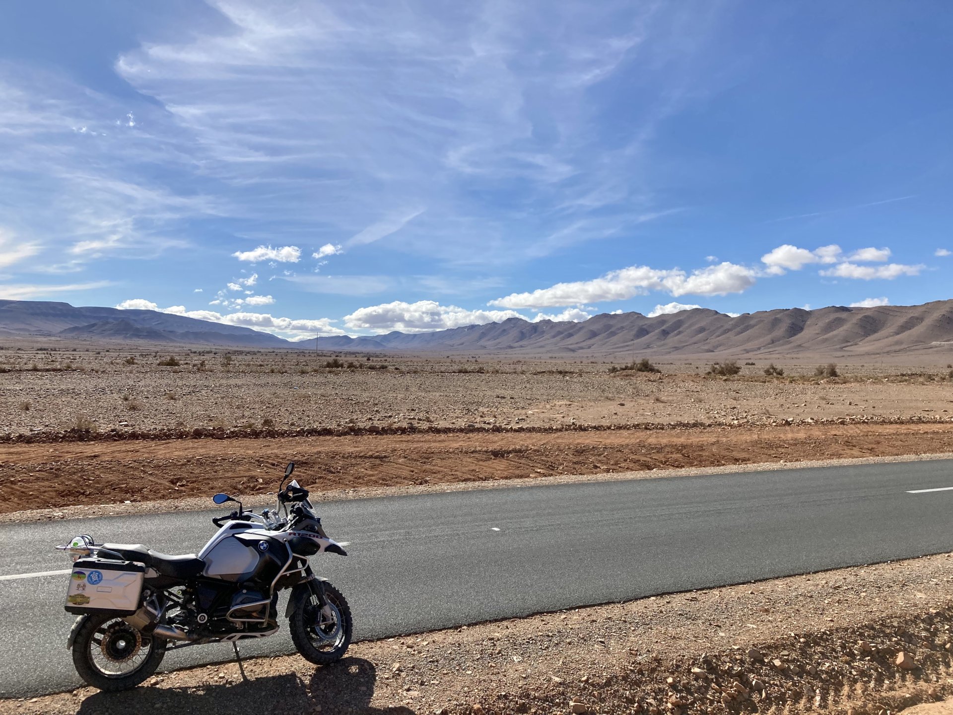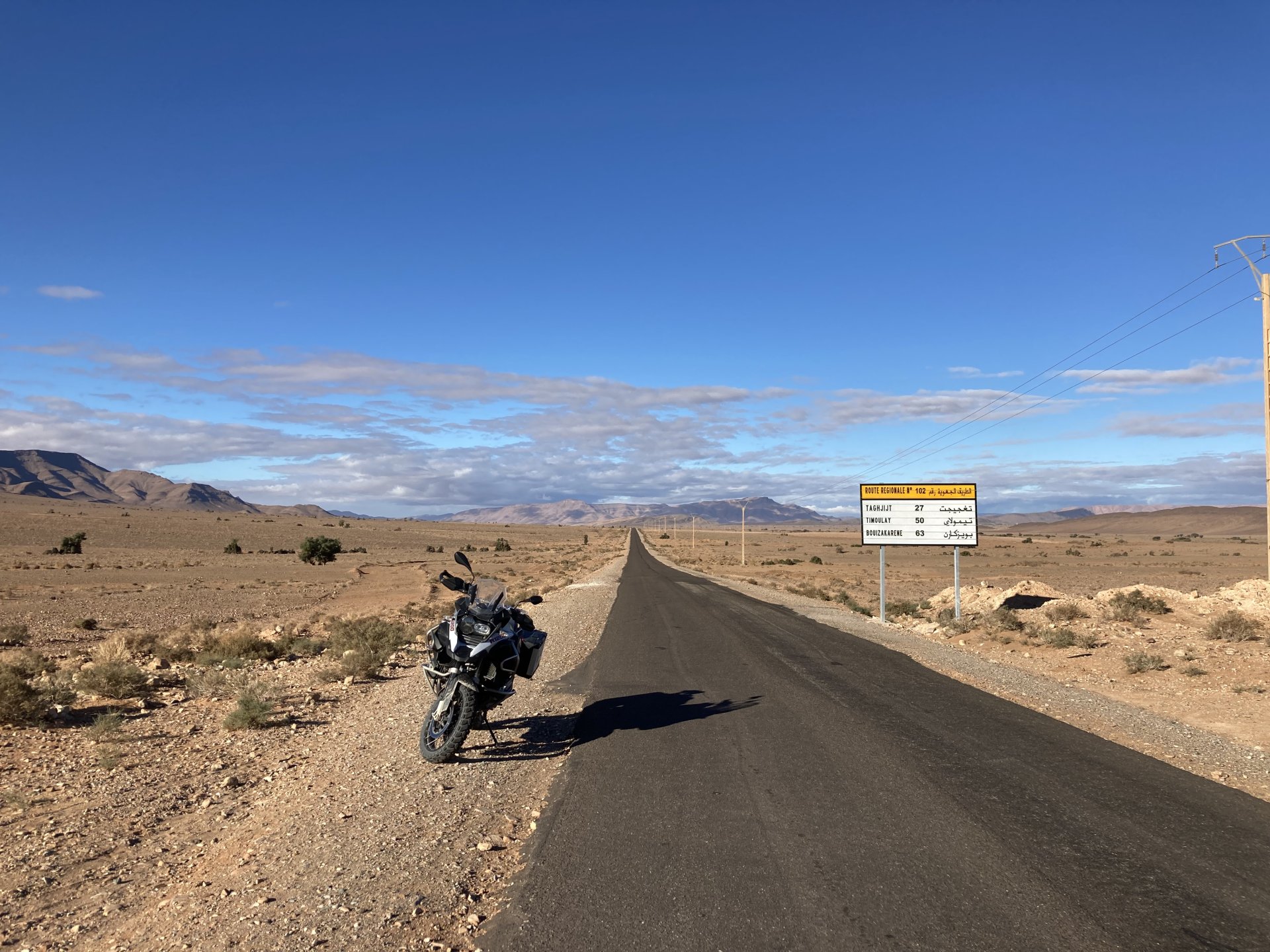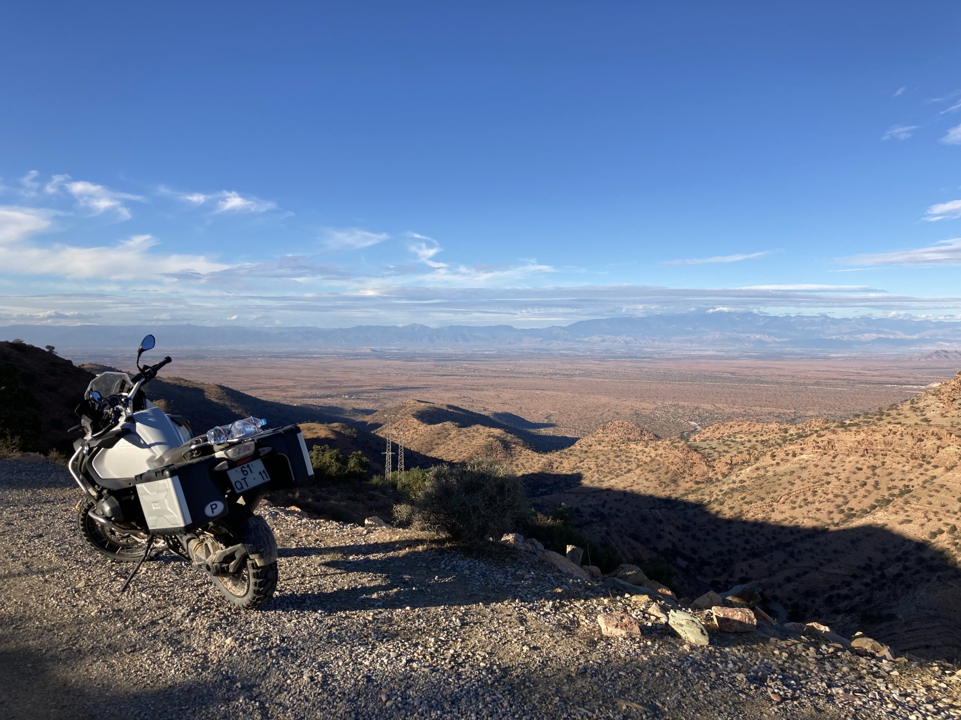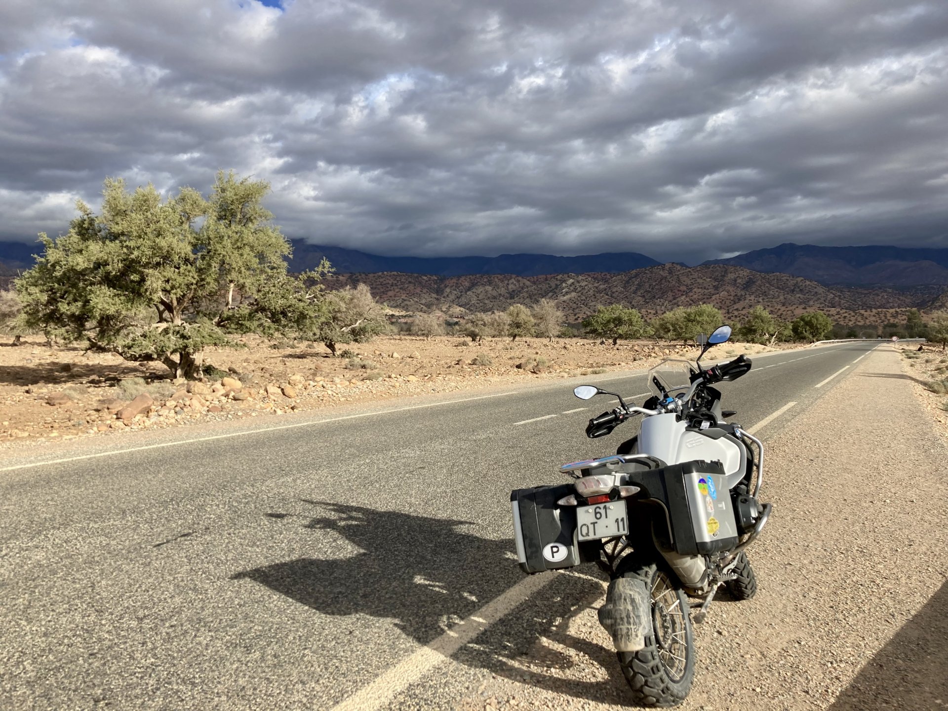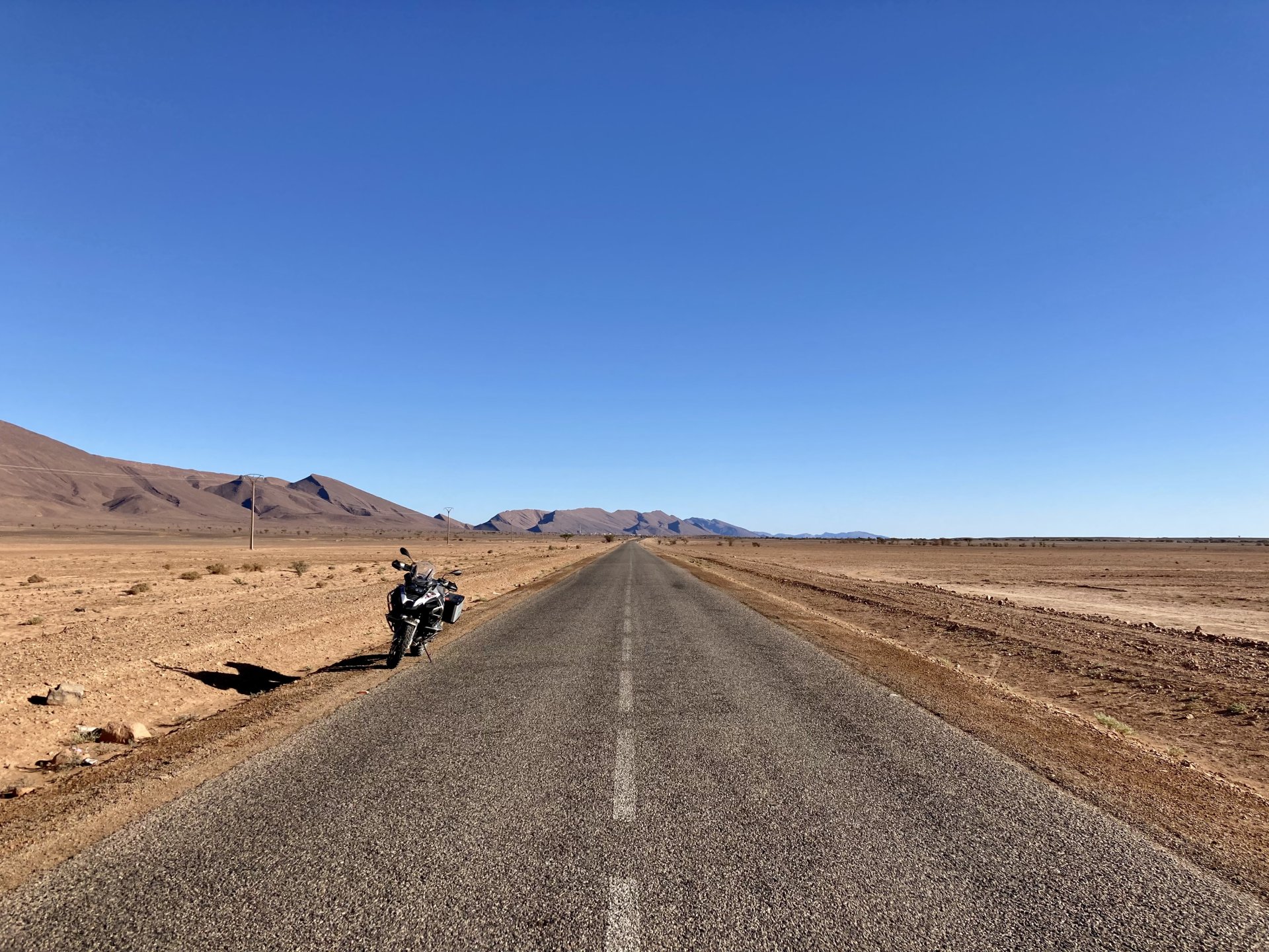 03rd December, Saturday. I wake up with an email I receive every saturday at 7:10 to 7:30, usually that annoys me, but here it means it's a Saturday so an early wake up call and absolutely no calls or work stuff for two days. Being able to get away like this during work is a great privilege, and I am aware and appreciative of that, but never being completely off from getting a surprise call even if being out on an adventure does take it's toll and you end up never enjoying things the same. I miss that hugely, in my previous trips with Maria I would leave my phone with my brother who would take over completely for a couple of weeks, that is no longer an option so I take my phone and my portuguese number works just like at home. Also take my laptop, which has proved amazingly resilient over the last few years, but it's a weight I would rather leave behind. Today I can leave it all behind, it's Saturday, so let's go! I ride the full 1km to one of Tata's bakeries and have an amazingly unhealthy breakfast, along with a big mug of delicious orange juice. I ride south-west, past Akka and heading to Foam El Hisn. Back in Merzouga you felt like you're in the Desert, but here you do feel like you're in a remote country and heading to proper Africa. It's not everyday I'm here so I did stop a few times to enjoy it, I was still undecided if going all the way to Guelmim or if turning back north at Four El Hisn. This is an Acacia branch, and what camels will chew on, each one of those thorns is properly sharp and tough. Tizounine, a clear example of a grand avenue crossing the town, with expensive light fixtures for miles before and after town, but walk 10 meters out of that grand avenue's sidewalks and it's dirt streets and mud homes, can't help but notice there's a little imbalance. Plastic trash is a problem, and along with touts thing to squeeze money out of tourists in big cities, this is what will shock you the most in Morocco, in some places it is a shocking problem that nobody obviously knows how to deal with. I preferred to not document it in this report because I felt uneasy taking my phone out for a picture in front of someone's home to document how disgusting their street looks like. Those are real people living there, and the lack of a trash management structure is something that they will eventually be hurt by. Here, this is just a casual reminder you're still in society even though you feel like you're out by yourself looking at camels. Now this was a little bit of a cool moment, I am enjoying the solitude of the place and a true rock garden, I talked to Sofia and had just said that from now on it'll be wide open spaces but safe roads, tarmac, mostly wide roads until I turn back on and get north to the Anti Atlas and then the Atlas, I get on the bike to ride about 2km and stop, look to my left as a nice dirt road goes perfectly over the hills to the left. It's not everyday I'm here, so I ride up to see what's on the other side of those hills, and soon enough find myself in fifth gear on the most perfect dirt road ever made heading to the horizon. It's heading south kind of towards Algeria, it's not really clear where it goes, but it's so perfect I'm keen on finding out, I've got time and it's Saturday so the fact that I've got no phone signal at all is less of a concern. Sadly, a few minutes into it the perfect dirt road from heaven and it ends into this. This is not on google marked as anything, but it's around here: https://goo.gl/maps/wbrCcWvPmykJzQns7 and a little bit of a @XTreme ride report. It ends in what looks like a small abandoned fortified building, now in ruins. I had decided to make the most of it and go to Guelmim, so suddenly I had plenty of time as it was still 12:30. I ride down there and go exploring a little. From the top I see another building in ruins, and go see that too: Upon closer inspection the tiny building's remaining really stink! I start spotting a lot of animal dung and a minute later the probable culprits! Wild donkeys use this as their bathroom, they jump up from their sleep in the shade and get ready to run away. Makes sense that this place has a well near it, before roads this is a little out there, there's a river a few kms away so this well probably never runs dry either. Nowadays there's solar powered pumps keeping water available for animals, I decided not to try it out even though the sun was strong and this was the warmest it's been in this whole trip. And just like that, I'm back on the perfect dirt road, quickly getting back to the N12, and head south to Assa for a lunch stop. I stop on an empty snack place, and order a turkey grillade sandwich. While I wait my bike attracts the attention of three kids, who come to look at it and say hello. It turns into a photo shoot and even the guy from the cafe next door comes to have his picture taken on the mighty GS The grillade Panini arrived and it was delicious, turns out turkey can be delicious too. This plus a coca cola went for 24 dirhams, which sometimes makes me think that something must be wrong with some places in Portugal and the prices I'm charged for stuff that takes less effort than this. As I paid and said farewell it turned into a photoshoot for purposes of internet publicity in their google maps thing, that up until now looked rather poor. If you want go and post a like or a 5 stars rating: https://goo.gl/maps/GgDwhS3d8h7pFGWz7 The three kids that had previously came by did ask for one dirham, and I didn't have the heart to say no. I gave them a 5 or 10 dirham coin but told them to split between the three, as I was riding off I saw them come running back to show me the three big candy bars they got, with huge grins. It made me really happy, that, the wrappers are probably flying around the sahara now, but I chose to focus on their smiles instead. Again, Assa shows off with extravagant street lighting when most streets inside are dirt. I've been riding on the N12 since morning, it's a Nat