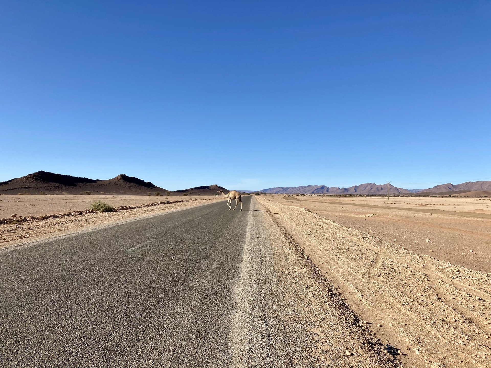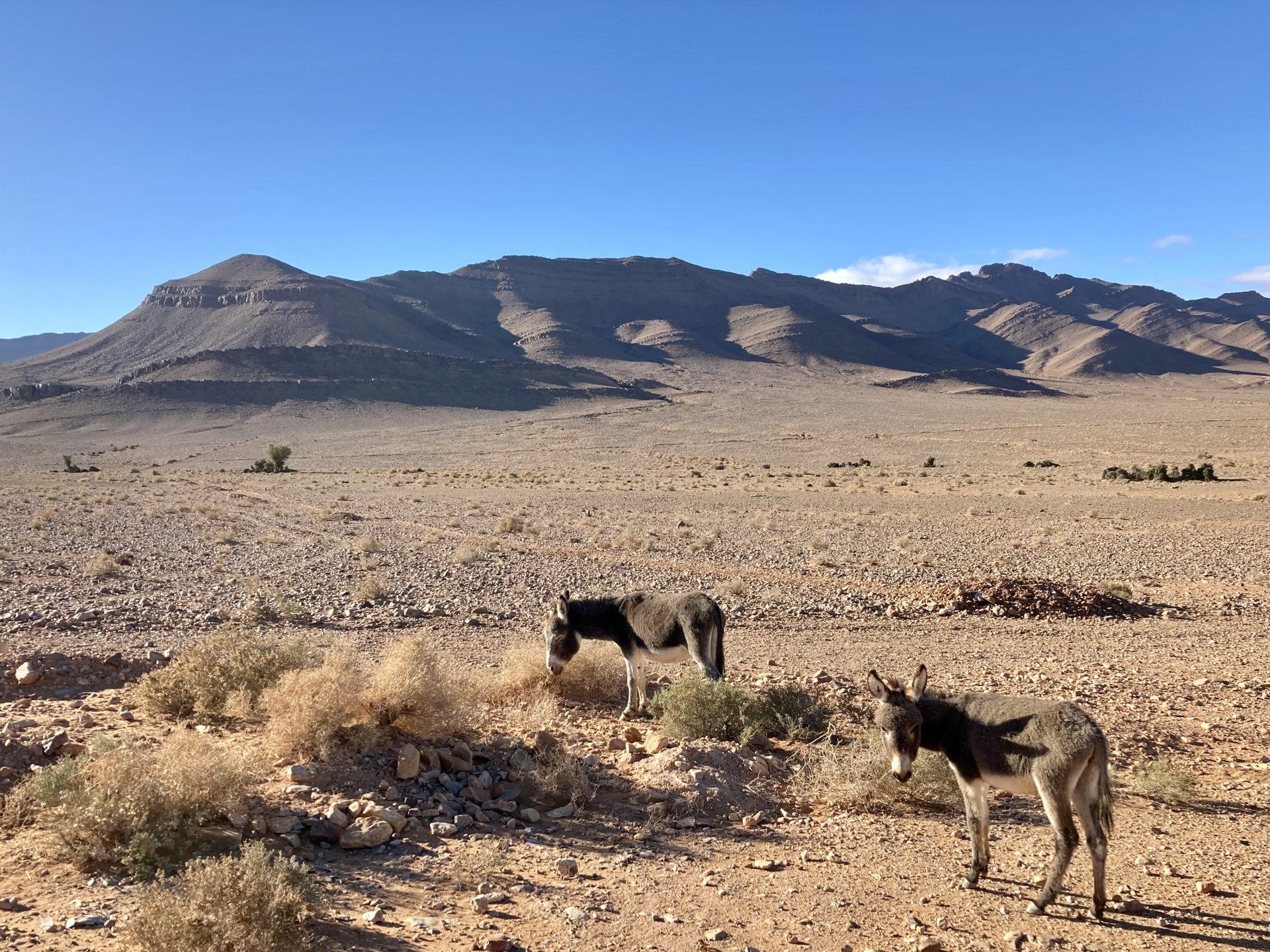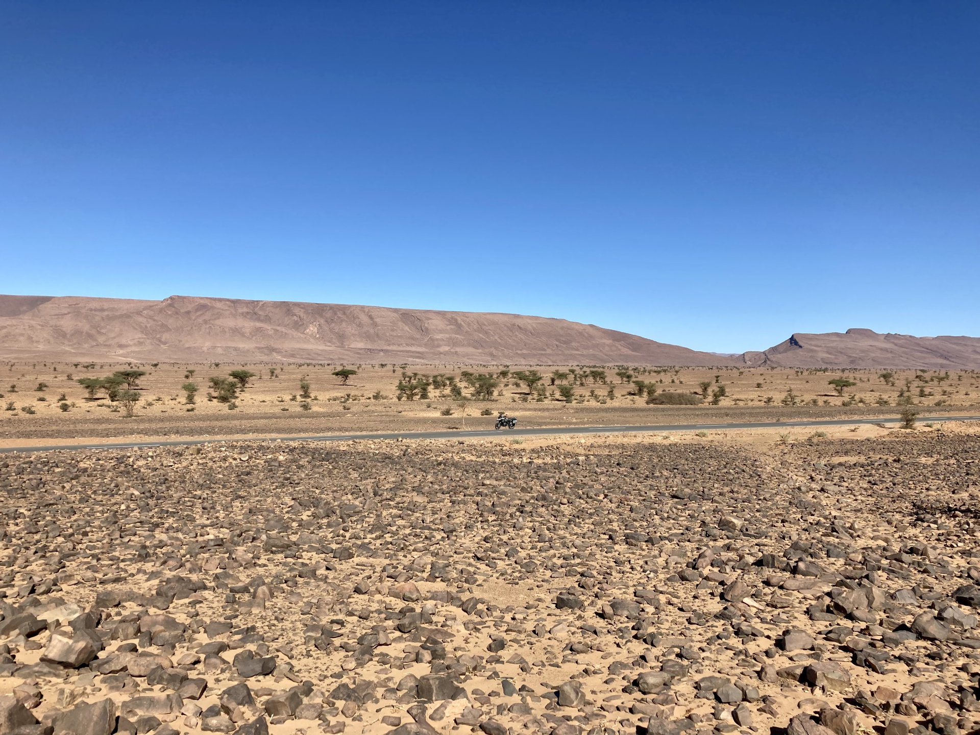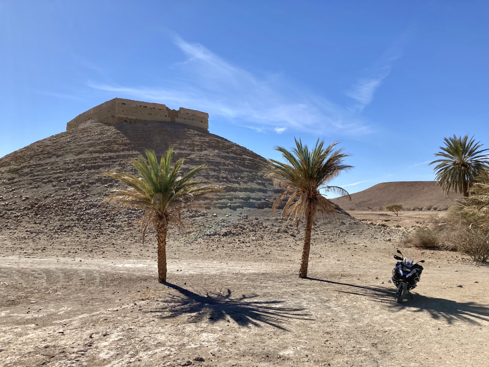 03rd December, Saturday. I wake up with an email I receive every saturday at 7:10 to 7:30, usually that annoys me, but here it means it's a Saturday so an early wake up call and absolutely no calls or work stuff for two days. Being able to get away like this during work is a great privilege, and I am aware and appreciative of that, but never being completely off from getting a surprise call even if being out on an adventure does take it's toll and you end up never enjoying things the same. I miss that hugely, in my previous trips with Maria I would leave my phone with my brother who would take over completely for a couple of weeks, that is no longer an option so I take my phone and my portuguese number works just like at home. Also take my laptop, which has proved amazingly resilient over the last few years, but it's a weight I would rather leave behind. Today I can leave it all behind, it's Saturday, so let's go! I ride the full 1km to one of Tata's bakeries and have an amazingly unhealthy breakfast, along with a big mug of delicious orange juice. I ride south-west, past Akka and heading to Foam El Hisn. Back in Merzouga you felt like you're in the Desert, but here you do feel like you're in a remote country and heading to proper Africa. It's not everyday I'm here so I did stop a few times to enjoy it, I was still undecided if going all the way to Guelmim or if turning back north at Four El Hisn. This is an Acacia branch, and what camels will chew on, each one of those thorns is properly sharp and tough. Tizounine, a clear example of a grand avenue crossing the town, with expensive light fixtures for miles before and after town, but walk 10 meters out of that grand avenue's sidewalks and it's dirt streets and mud homes, can't help but notice there's a little imbalance. Plastic trash is a problem, and along with touts thing to squeeze money out of tourists in big cities, this is what will shock you the most in Morocco, in some places it is a shocking problem that nobody obviously knows how to deal with. I preferred to not document it in this report because I felt uneasy taking my phone out for a picture in front of someone's home to document how disgusting their street looks like. Those are real people living there, and the lack of a trash management structure is something that they will eventually be hurt by. Here, this is just a casual reminder you're still in society even though you feel like you're out by yourself looking at camels. Now this was a little bit of a cool moment, I am enjoying the solitude of the place and a true rock garden, I talked to Sofia and had just said that from now on it'll be wide open spaces but safe roads, tarmac, mostly wide roads until I turn back on and get north to the Anti Atlas and then the Atlas, I get on the bike to ride about 2km and stop, look to my left as a nice dirt road goes perfectly over the hills to the left. It's not everyday I'm here, so I ride up to see what's on the other side of those hills, and soon enough find myself in fifth gear on the most perfect dirt road ever made heading to the horizon. It's heading south kind of towards Algeria, it's not really clear where it goes, but it's so perfect I'm keen on finding out, I've got time and it's Saturday so the fact that I've got no phone signal at all is less of a concern. Sadly, a few minutes into it the perfect dirt road from heaven and it ends into this. This is not on google marked as anything, but it's around here: https://goo.gl/maps/wbrCcWvPmykJzQns7 and a little bit of a @XTreme ride report. It ends in what looks like a small abandoned fortified building, now in ruins. I had decided to make the most of it and go to Guelmim, so suddenly I had plenty of time as it was still 12:30. I ride down there and go exploring a little. From the top I see another building in ruins, and go see that too: Upon closer inspection the tiny building's remaining really stink! I start spotting a lot of animal dung and a minute later the probable culprits! Wild donkeys use this as their bathroom, they jump up from their sleep in the shade and get ready to run away. Makes sense that this place has a well near it, before roads this is a little out there, there's a river a few kms away so this well probably never runs dry either. Nowadays there's solar powered pumps keeping water available for animals, I decided not to try it out even though the sun was strong and this was the warmest it's been in this whole trip. And just like that, I'm back on the perfect dirt road, quickly getting back to the N12, and head south to Assa for a lunch stop. I stop on an empty snack place, and order a turkey grillade sandwich. While I wait my bike attracts the attention of three kids, who come to look at it and say hello. It turns into a photo shoot and even the guy from the cafe next door comes to have his picture taken on the mighty GS The grillade Panini arrived and it was delicious, turns out turkey can be delicious too. This plus a coca cola went for 24 dirhams, which sometimes makes me think that something must be wrong with some places in Portugal and the prices I'm charged for stuff that takes less effort than this. As I paid and said farewell it turned into a photoshoot for purposes of internet publicity in their google maps thing, that up until now looked rather poor. If you want go and post a like or a 5 stars rating: https://goo.gl/maps/GgDwhS3d8h7pFGWz7 The three kids that had previously came by did ask for one dirham, and I didn't have the heart to say no. I gave them a 5 or 10 dirham coin but told them to split between the three, as I was riding off I saw them come running back to show me the three big candy bars they got, with huge grins. It made me really happy, that, the wrappers are probably flying around the sahara now, but I chose to focus on their smiles instead. Again, Assa shows off with extravagant street lighting when most streets inside are dirt. I've been riding on the N12 since morning, it's a Nat