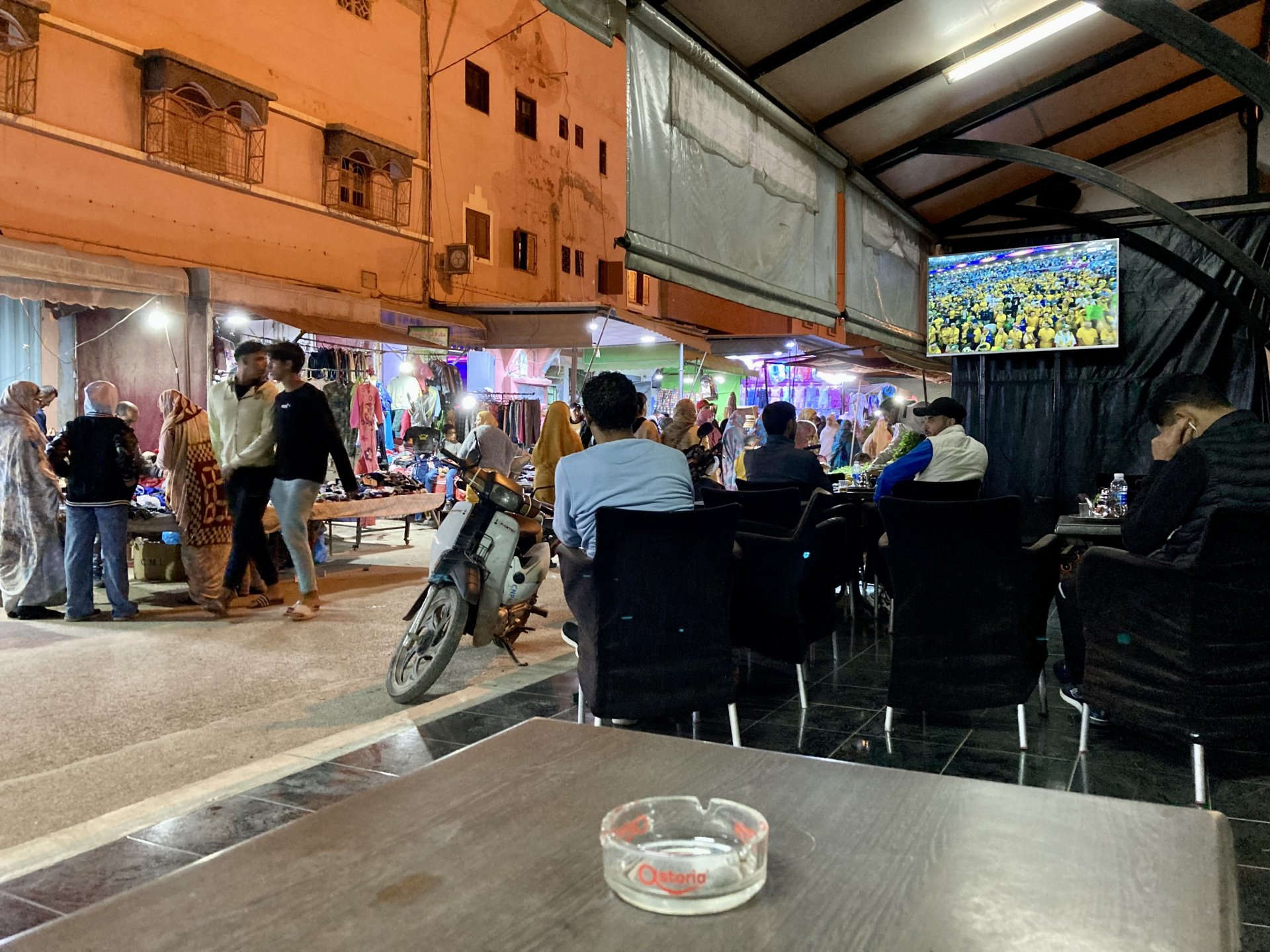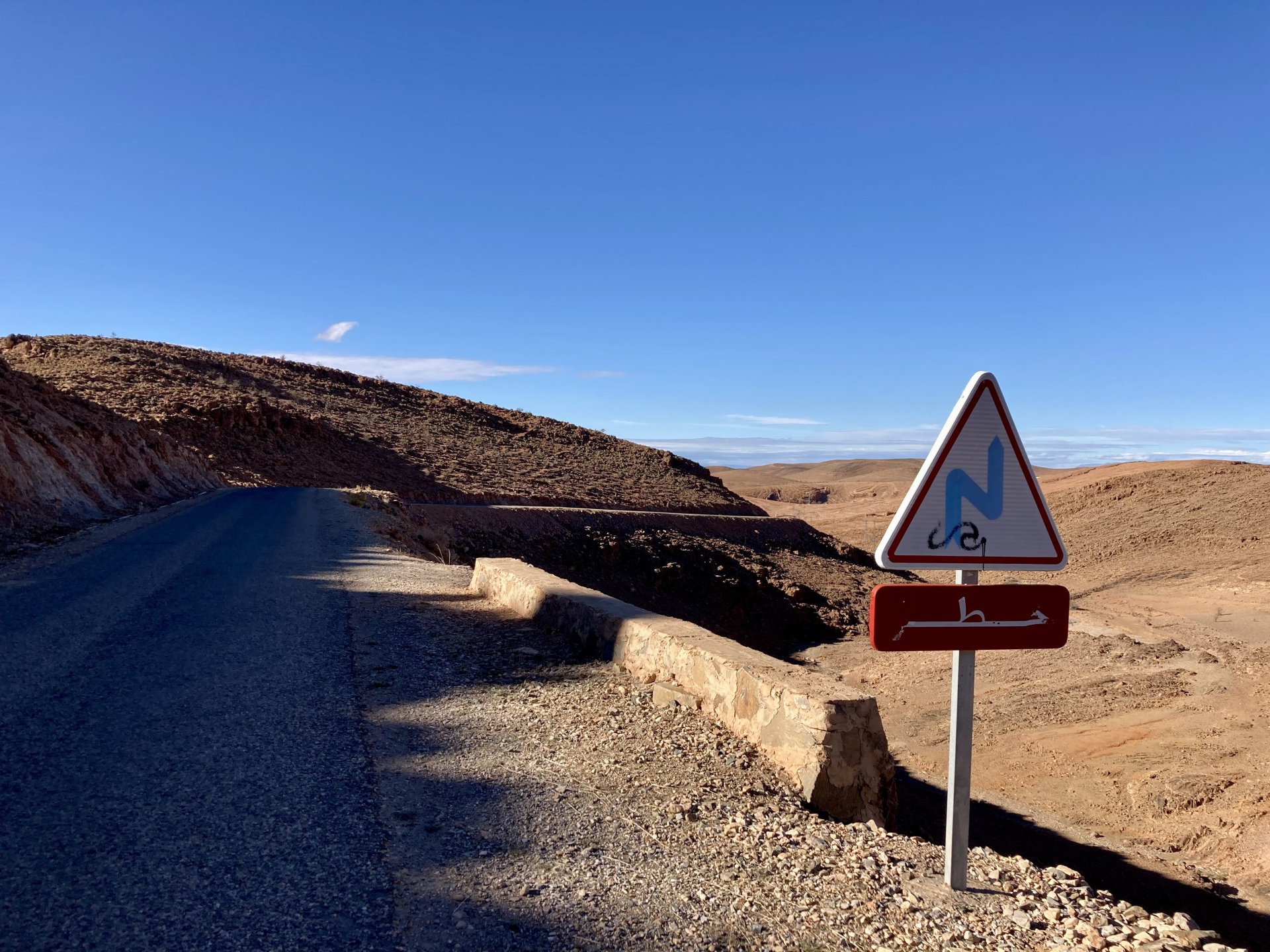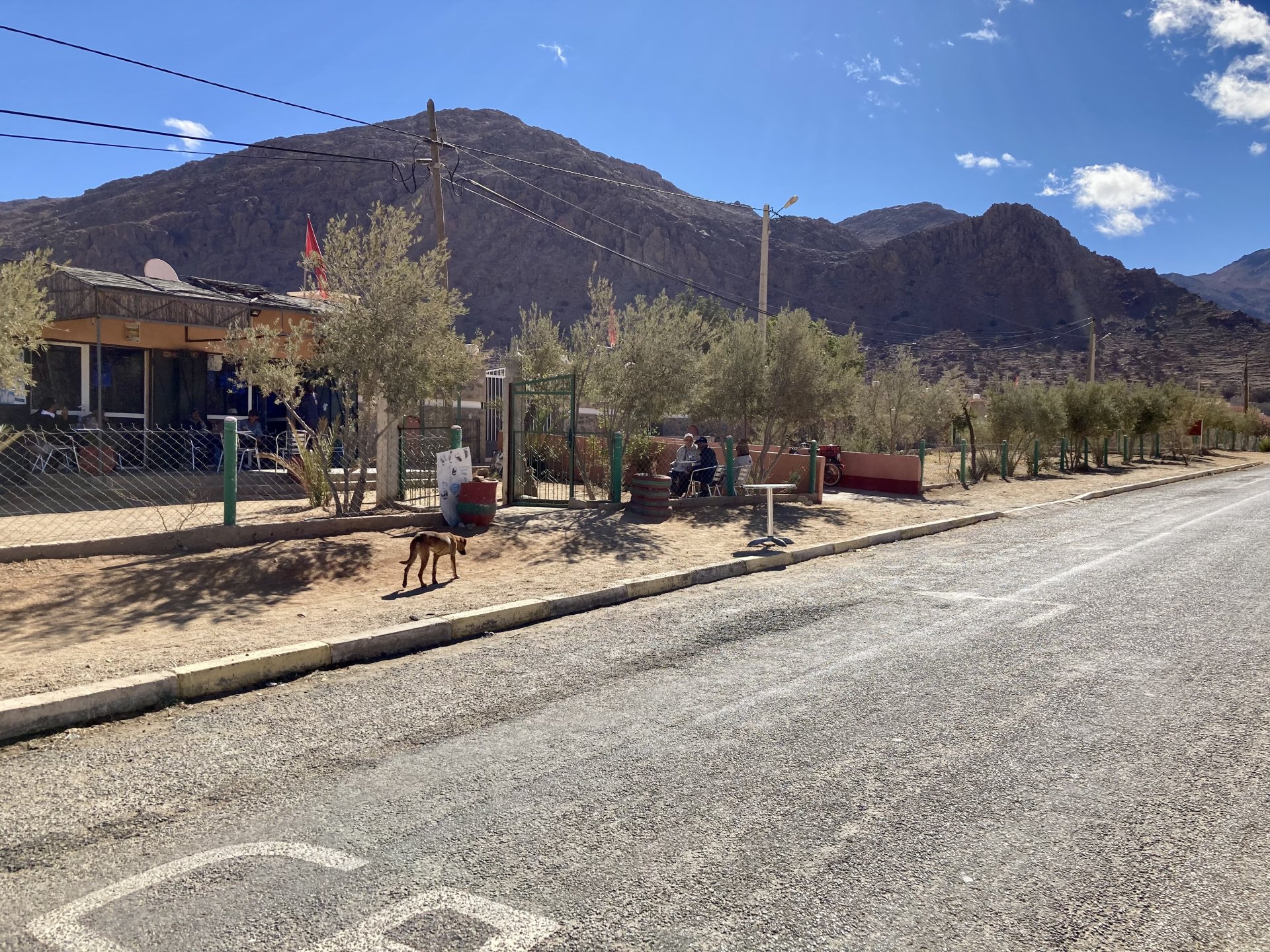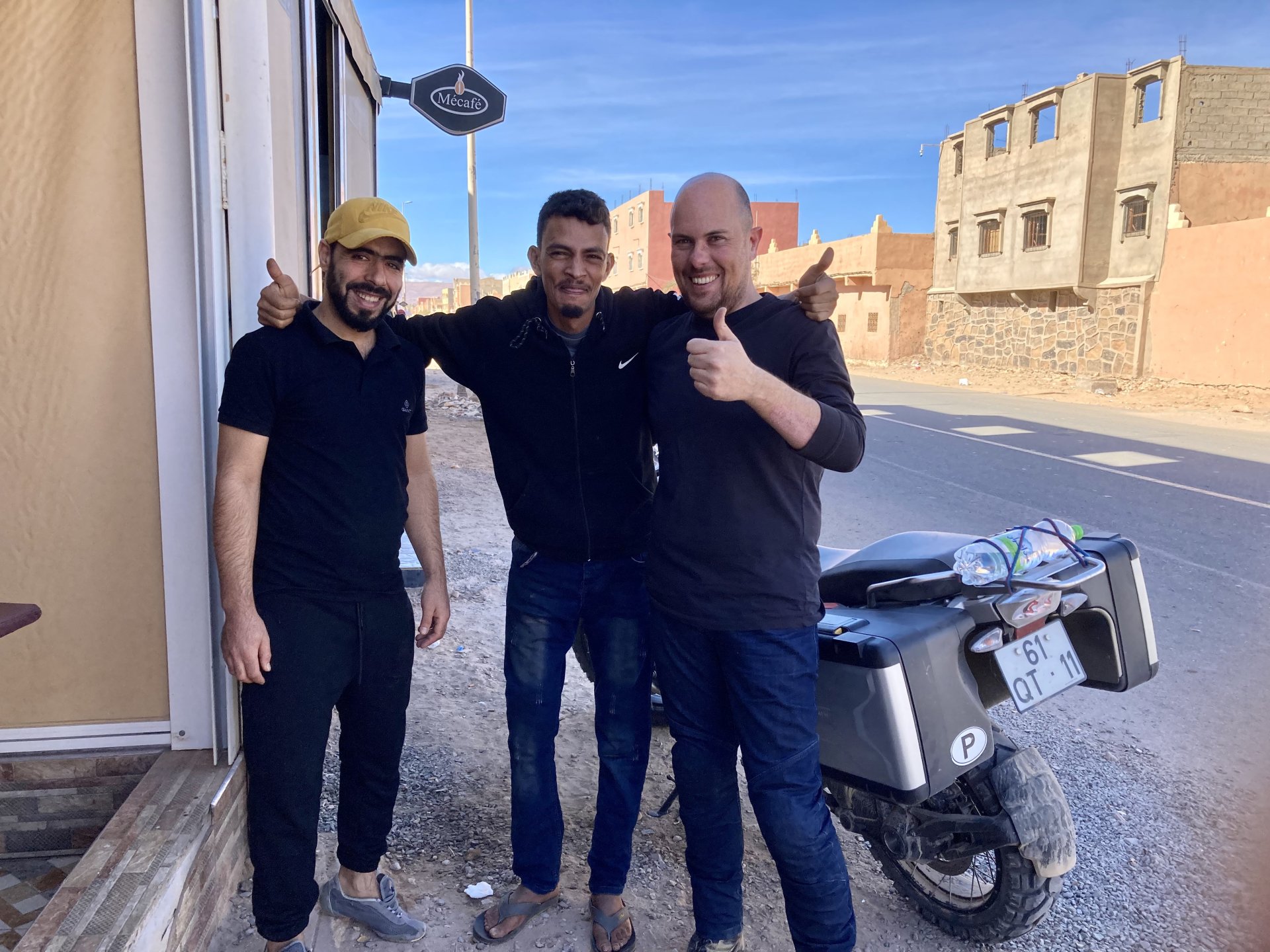 06th December, Tuesday Dawn at 08:05 from my hotel room. Breakfast my hotel was not included in the room price I paid, and I didn't feel at all captivated by it either, too international and I'm feeling like an adventure. The plan was to swiftly ride out of Marrakech and through the Atlas heading East. Roads are cool, views are cool, weather seems to be behaving, all's cool. I ride out heading to Azilal. Already out of town I am not missing breakfast, but I am missing something to start the day comfortably instead of just water, so stop by a Café Mobile. The quality of the expresso these guys put out from the back of a small van is amazing, 10 times better than the best you can get in most Europe except Portugal and Italy, and even then there might be a case for Morocco's roadside café. The guy is surprised I take pictures of his car, but I tell him that's not very common in Portugal. He quickly says that if I plan on making a Portuguese business he is available as a partner , but being no fool quickly says that in Portugal you probably need fees and permits and taxes, there you just set it up and go. At 6 net dirhams per expresso it IS pretty good business. He did follow good practices on cleaning the stuff and preparing it for the next coffee using boiling water, more so than most cafes in Portugal, I was amazed. Maybe one of these days I'll start going for the more complicated coffees like milk and foams and sugars and all that stuff, maybe after going back to Taroudant and staying in the gay hotel too Azilal is a very civilized place, if I were to go live in Morocco for good and looking for a place to properly live this could well be it. I stop to send a postcard home Tagalf, just a village full of people living a hard mountain life, all the kids smiled and laughed though Donkeys, always stop for donkeys Riding out of Azilal, a young man is hitch hiking along, not a tourist but a kid on trainers and just jeans and a sweater walking along a road, he must have been 17 or 19, I wave back and he salutes me with their gesture of waving at you and then touching their hearts, so I ride back and offer him a ride. Carried him for maybe 30 or 40km in 7 or 8ºC, he should have been freezing but always with a smile and happy to not be walking. When I left him he said he was going up to Beni Melal, maybe another 30km but going north, he had no problems thanking for the ride and I watched as he walked away decidedly down the road, hope he got a ride instead of walking through the night as it's cold there. Stopped in Aghbala, it was 15:17 when this picture was taken. Aghbala has many qualities: it's got a kick ass adventure sounding name, it's busy in a Atlas exotic sort of adventure way instead of nasty city way, smoke from coal grills and woodburning chimneys was wafting through the air, streets were paved with mud covered tarmac, people couldn't give a shit about me being there except for kids, I spotted a little snack place with a hot metal plate, so stop the bike and walk in. The lady running the place didn't speak a word of french but we got along, I managed to get my favourite sardines served inside a bread long with diced tomatoes and onions, it was pretty fucking awesome and flavoured perfectly. Just the kind of thing to pick you up. Picture does not do it justice. Also had a kind of sausage, that feels like mostly paprika inside with little meat, it was quite spicy. I've no idea what it's made of. As I was eating, there was a lady with a child in the back. The little girl completely taken with curiosity came to investigate me from a safe distance. After a few winks she finally gave me the biggest smile, I didn't catch that on a picture though. Nothing like a silly traveller to make women put on a pretty smile for a crazy foreigner Feeling comforted from both a great meal and the warming smiles, I crack on! The plan was to make it back to Imilchil, the little mountain village I had passed through a few days before, and take the lovely mountain dirt pass again, going again to Boulmane and then coming back north up the Todra Gorge. This would add at least a day to my trip but who cares, I make progress... Temperatures drop substancially, it's now about 16:30 and it's been between 6 to 8ºC for the last hour or so, then it becomes clear the more mountain passes crossing the Atlas aren't a good idea, I'll let the pictures tell you why, that white stuff is where I'm heading. I've been to Imilchil and that area in days that saw me enduring 35º before and after, and still being sort of chilly there, it didn't sound like a half pleasant idea to go past there with snow on, so that plan was discarded and I fell back on plan B, Plan B was to go near Zaida, and stay back on the same place I did before. Funny enough that's what me and Maria did in 2017, stayed there once going South and once going North. I went, and about one hour later got there. It was now getting proper cold in the area. I tried the check in and nobody was there, the restaurant and you could go in and rob the place, nobody around, tried to see if the room I wanted was open and it wasn't, then tried everything again and found the TV room, everyone was watching the first half of the Morocco vs Spain match. I got my key and we left formalities for later, quickly had a hot shower and made it there to watch the end of the match. Morocco won on penalties, their goalkeeper "Bono" was gigantic and eliminated Spain. Most people lost their shit, the single one guy in front of the tv not jumping? He's a Spaniard: Now, Moroccans are insane about football, they will now way more about the portuguese league than I ever will, they'll know players names from the first 15 teams in Portugal, and that knowledge extends to Spain, France, Germany, England and Italy, it's amazing. They will watch most things with true enthusiasm, and that day Portugal was to play agains Switzerland. My new friend Mamoud proclaimed he would watch the match with me, so 