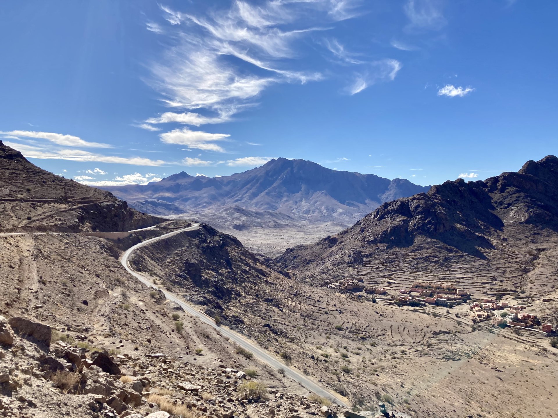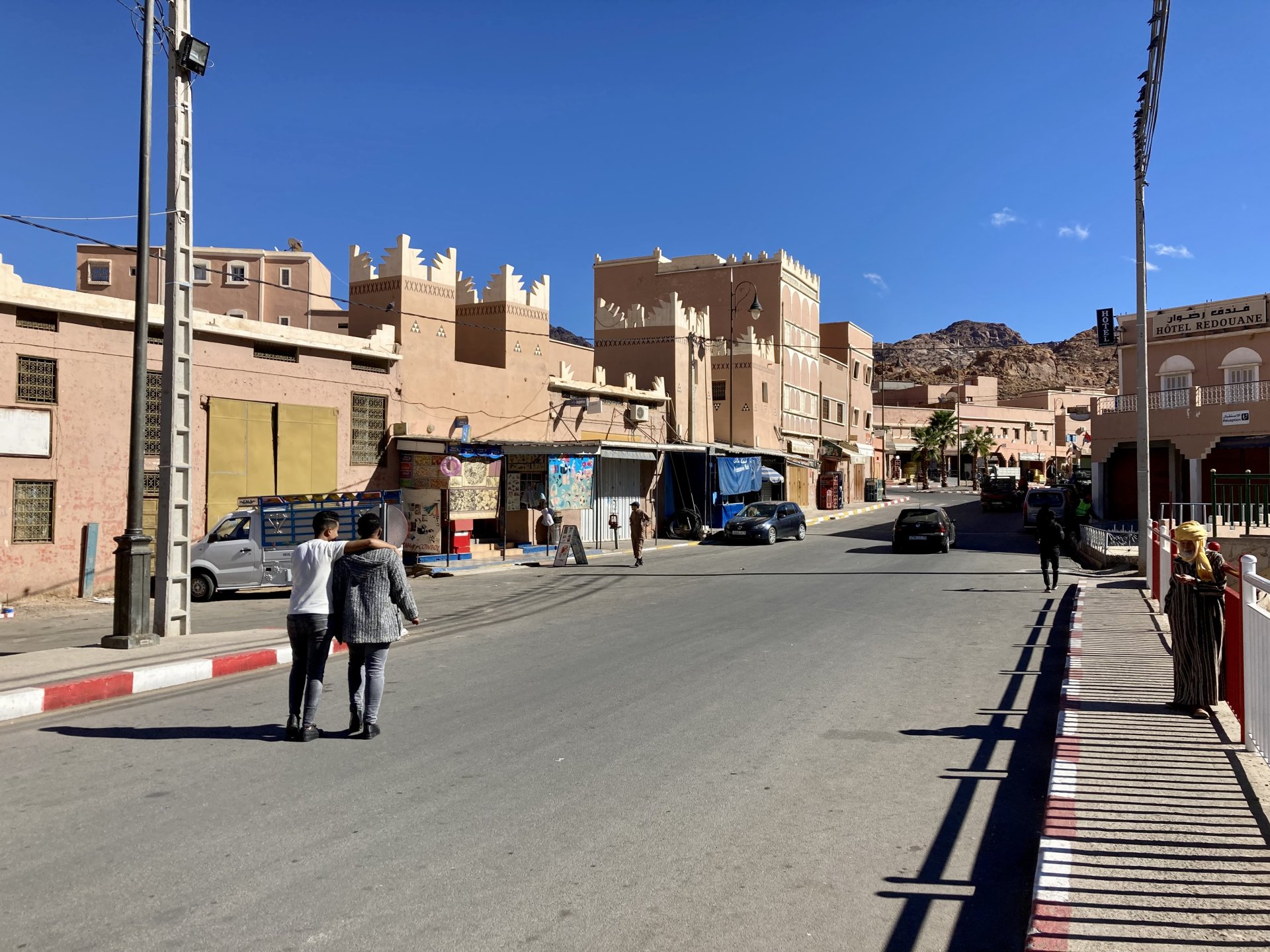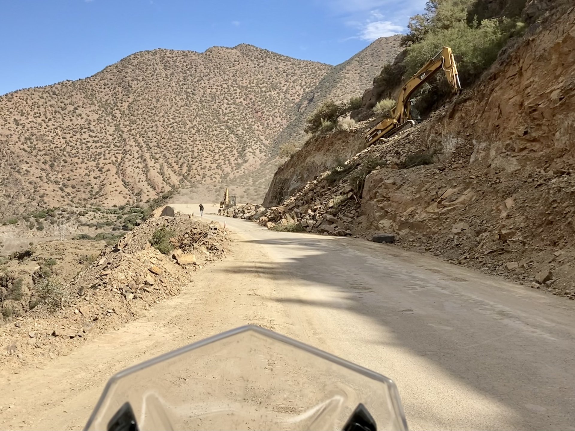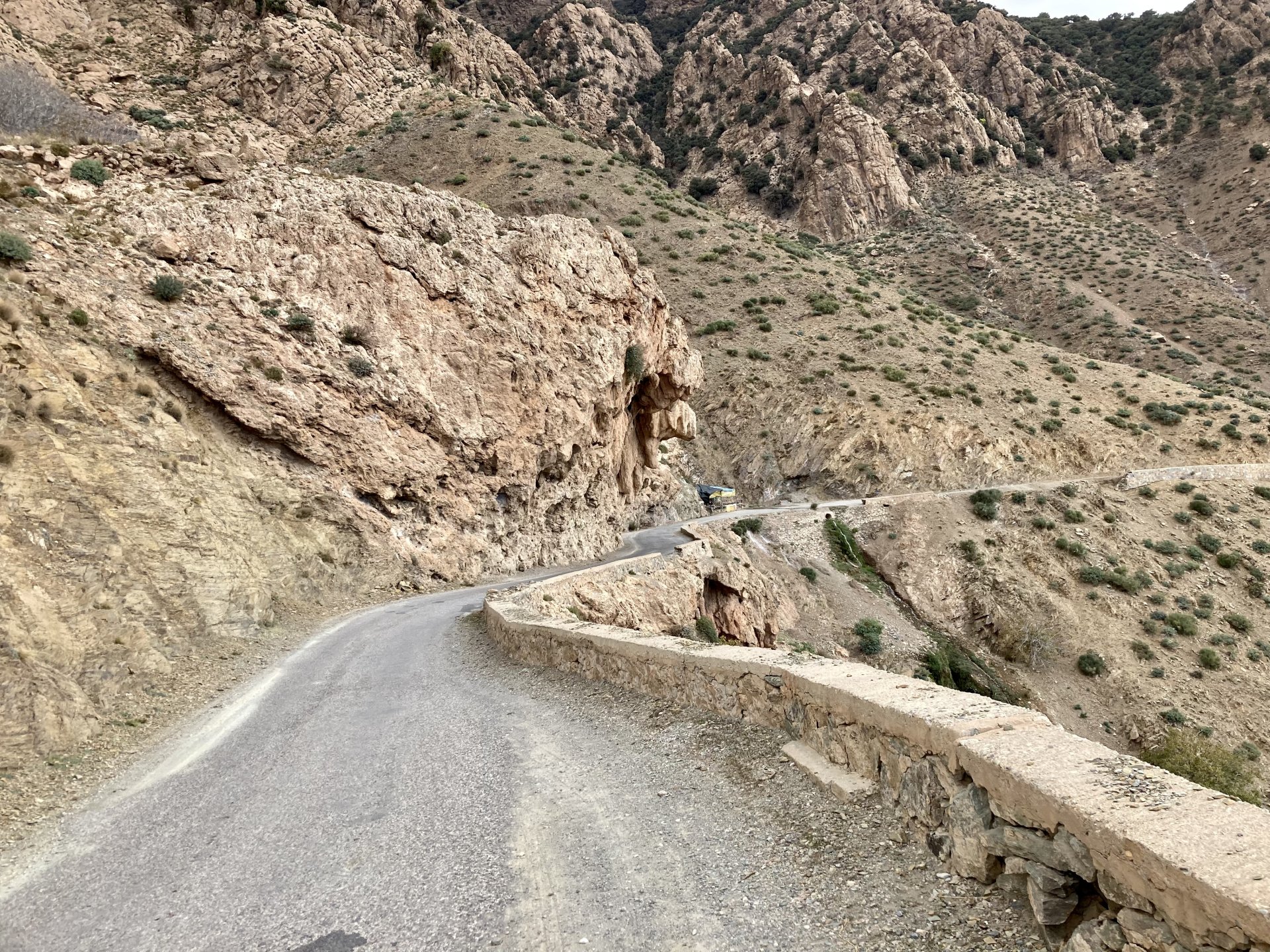 06th December, Tuesday Dawn at 08:05 from my hotel room. Breakfast my hotel was not included in the room price I paid, and I didn't feel at all captivated by it either, too international and I'm feeling like an adventure. The plan was to swiftly ride out of Marrakech and through the Atlas heading East. Roads are cool, views are cool, weather seems to be behaving, all's cool. I ride out heading to Azilal. Already out of town I am not missing breakfast, but I am missing something to start the day comfortably instead of just water, so stop by a Café Mobile. The quality of the expresso these guys put out from the back of a small van is amazing, 10 times better than the best you can get in most Europe except Portugal and Italy, and even then there might be a case for Morocco's roadside café. The guy is surprised I take pictures of his car, but I tell him that's not very common in Portugal. He quickly says that if I plan on making a Portuguese business he is available as a partner , but being no fool quickly says that in Portugal you probably need fees and permits and taxes, there you just set it up and go. At 6 net dirhams per expresso it IS pretty good business. He did follow good practices on cleaning the stuff and preparing it for the next coffee using boiling water, more so than most cafes in Portugal, I was amazed. Maybe one of these days I'll start going for the more complicated coffees like milk and foams and sugars and all that stuff, maybe after going back to Taroudant and staying in the gay hotel too Azilal is a very civilized place, if I were to go live in Morocco for good and looking for a place to properly live this could well be it. I stop to send a postcard home Tagalf, just a village full of people living a hard mountain life, all the kids smiled and laughed though Donkeys, always stop for donkeys Riding out of Azilal, a young man is hitch hiking along, not a tourist but a kid on trainers and just jeans and a sweater walking along a road, he must have been 17 or 19, I wave back and he salutes me with their gesture of waving at you and then touching their hearts, so I ride back and offer him a ride. Carried him for maybe 30 or 40km in 7 or 8ºC, he should have been freezing but always with a smile and happy to not be walking. When I left him he said he was going up to Beni Melal, maybe another 30km but going north, he had no problems thanking for the ride and I watched as he walked away decidedly down the road, hope he got a ride instead of walking through the night as it's cold there. Stopped in Aghbala, it was 15:17 when this picture was taken. Aghbala has many qualities: it's got a kick ass adventure sounding name, it's busy in a Atlas exotic sort of adventure way instead of nasty city way, smoke from coal grills and woodburning chimneys was wafting through the air, streets were paved with mud covered tarmac, people couldn't give a shit about me being there except for kids, I spotted a little snack place with a hot metal plate, so stop the bike and walk in. The lady running the place didn't speak a word of french but we got along, I managed to get my favourite sardines served inside a bread long with diced tomatoes and onions, it was pretty fucking awesome and flavoured perfectly. Just the kind of thing to pick you up. Picture does not do it justice. Also had a kind of sausage, that feels like mostly paprika inside with little meat, it was quite spicy. I've no idea what it's made of. As I was eating, there was a lady with a child in the back. The little girl completely taken with curiosity came to investigate me from a safe distance. After a few winks she finally gave me the biggest smile, I didn't catch that on a picture though. Nothing like a silly traveller to make women put on a pretty smile for a crazy foreigner Feeling comforted from both a great meal and the warming smiles, I crack on! The plan was to make it back to Imilchil, the little mountain village I had passed through a few days before, and take the lovely mountain dirt pass again, going again to Boulmane and then coming back north up the Todra Gorge. This would add at least a day to my trip but who cares, I make progress... Temperatures drop substancially, it's now about 16:30 and it's been between 6 to 8ºC for the last hour or so, then it becomes clear the more mountain passes crossing the Atlas aren't a good idea, I'll let the pictures tell you why, that white stuff is where I'm heading. I've been to Imilchil and that area in days that saw me enduring 35º before and after, and still being sort of chilly there, it didn't sound like a half pleasant idea to go past there with snow on, so that plan was discarded and I fell back on plan B, Plan B was to go near Zaida, and stay back on the same place I did before. Funny enough that's what me and Maria did in 2017, stayed there once going South and once going North. I went, and about one hour later got there. It was now getting proper cold in the area. I tried the check in and nobody was there, the restaurant and you could go in and rob the place, nobody around, tried to see if the room I wanted was open and it wasn't, then tried everything again and found the TV room, everyone was watching the first half of the Morocco vs Spain match. I got my key and we left formalities for later, quickly had a hot shower and made it there to watch the end of the match. Morocco won on penalties, their goalkeeper "Bono" was gigantic and eliminated Spain. Most people lost their shit, the single one guy in front of the tv not jumping? He's a Spaniard: Now, Moroccans are insane about football, they will now way more about the portuguese league than I ever will, they'll know players names from the first 15 teams in Portugal, and that knowledge extends to Spain, France, Germany, England and Italy, it's amazing. They will watch most things with true enthusiasm, and that day Portugal was to play agains Switzerland. My new friend Mamoud proclaimed he would watch the match with me, so 
