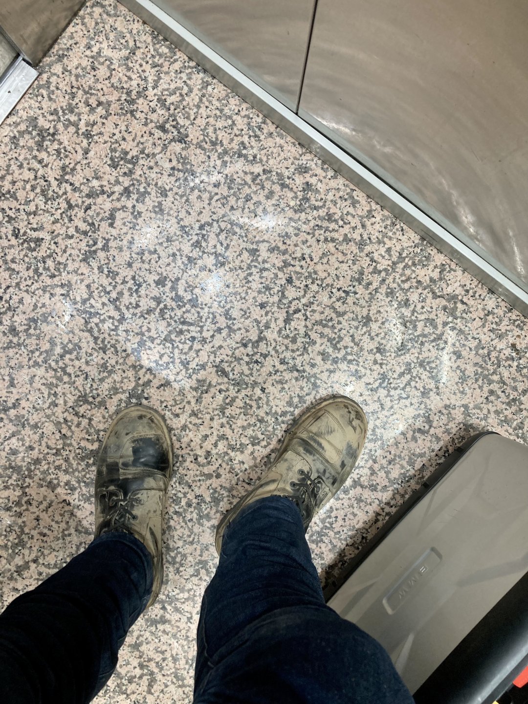I had went to bed early, and did set an alarm clock for the first time in weeks, to 06:30. That gave me time to enjoy waking up lazily in bed, procrastinating getting up while enjoying my own company. Breakfast was the only poor one I had this trip, that went nicely with the theme of this visit to Fes, croissants were stale and worthy of one single bite, orange juice hadn't seen an orange since an industrial factory somewhere once processed them, and coffee tasted like Nescafe. In Morocco there's no excuse for non fresh orange juice and shit coffee, but it made sense as that hotel didn't even offer a breakfast free stay, they had to push people to eat it I was ready to go a little after 7, but as I looked around the streets seemed really wet and it was going to be dark for a while after leaving, so grudgingly put my plastic rain pants and jacket on. By 07:25, I was ready to go: Put navigation on heading to Ain Dorij, and rode off, google maps took me out via tiny streets that seemed more complicated than needed, but the low traffic showed me a less seen side of Fes. It was interesting. Getting out of town and rain starts to steadily fall, at 08:15 I had had my only really challenging moment on the road and stopped to enjoy the sunrise a little, on a particularly muddy and poorly surfaced bit of road tilting to the right, I was forced to brake a little and basically slid off the road, I spotted the gravel bit outside the tarmac and simply pointed to that and rode it for a while. I am most impressed at the Mitas E07 + Dakar, they're sound tires even if the manufacturer warns that they have poor performance in rain and cold. 08:15: Rain properly starts to fall shortly later, my phone is now safe in my jacket and I stop for a moment's rest after spotting shelter. Someone takes my picture as for whatever reason I was enjoying it quite a bit. The above was at 08:55, I then put the phone back in my jacket pocket safe from the weather, and rode all the way to Tangier with no need for it. Navigation was easy and although I was riding on less than main roads I knew I had to go pass Ouezzane and then Chefchaouen, it proved easy. Rain didn't stop for the rest of the morning, averaging from hard to very hard and very windy at the same time. I got stopped at a checkpoint and after the initial small talk the officer told me I had been spotted at 95kmh on a 60, I got off the bike with the helmet open, got my right glove off and introduced myself, told him I would be more respectful from now on, but that I was intended on catching the Ferry and wanted to not miss it, all while putting my biggest possible good guy big smile attitude. Then he asked me for my papers while looking at the back of the bike, and asked where I was from as clearly I didn't have a French or German plate, upon the answer of "Portugaise" he enthusiastically shook my hand and after becoming friends sent me on my way with a big smile and a "ride safe" farewell. Portugal is a good nationality to be in Morocco, our national football team shares the same colours, and we both like beating the French and Spaniards. From there it was very smooth to Tangier, if plenty of wet. The last miles before Tangier were dry and windy, which allowed the overalls to dry on the outside. I had money with me so stopped to top up the bike at a Shell station, rode into Tangier feeling like a road worn adventurer, and quickly got lost in lunchtime traffic Stopped at a cafe with outside tables on a common street and ordered a sandwich. While it took forever to arrive I took the overalls off and made myself comfortable. Turns out my overall pants aren't really waterproof anymore, my jeans were wet on the outside all over the waterproof stitches, and my chest and upper back was fully wet too. Good stuff! The bike looked proper and had just proven to be a trusty friend, a true work beast or a war horse: It was good to ride to the port without the blasted rain suit, hang around for a little getting in line for the bike to be x-rayed, it all went easily as if hipotetically crossing between any European countries. The crossing was a little choppy, the storms seemed to have angered the Mediterranean and the boat rocked heavily the whole trip. At first it was funny like so, look at the water level in the horizon: But after a while people started to get a little tired of it, I felt like having a piss but sat firmly in my seat at the risk of falling over when walking or throwing up if standing, two guys started praying to Allah, and a few people had hands on their faces like trying to prevent eyes from popping out. We made it ok though, lack of paperwork on the boat was a bonus, I don't envy people crossing the other way and having to write stuff down, I would succumb to that for sure! Got out of the boat in my due time, and pushed the bike along with all the line of cars that got off the boat before I did. Tarifa looked stormy, so I put the rain stuff back on, the time at Tangier and on the boat had dried my clothes so I felt comfy and fresh. It was past 16:00 by the time I rode out of Tarifa, I had looked at hotels around there and also the weather forecasts, it was rain for the next few days, so feeling fresh after the ride from Fes I decided to go home for the night, Waze sent me via Badajoz which wouldn't have been my preferred route, but as it was raining through Sevilla (or was it Huelva already? I don't know...) I was lazy and followed it's guidance. Storms were littered all around, with orange warnings for heavy rain so I figured there must be a reason for the longer route. Right before entering Portugal I stopped for a snack after riding all the way from Tarifa in heavy rains. 20km into the trip a water barrier descended upon me with such violence that water pushed into my overalls with ease through my neck and wrists. This stop made sense, and the tiny jamon con queso bocadillho provided me with a little comfort from the belly outwards. The beer is 0% alcohol