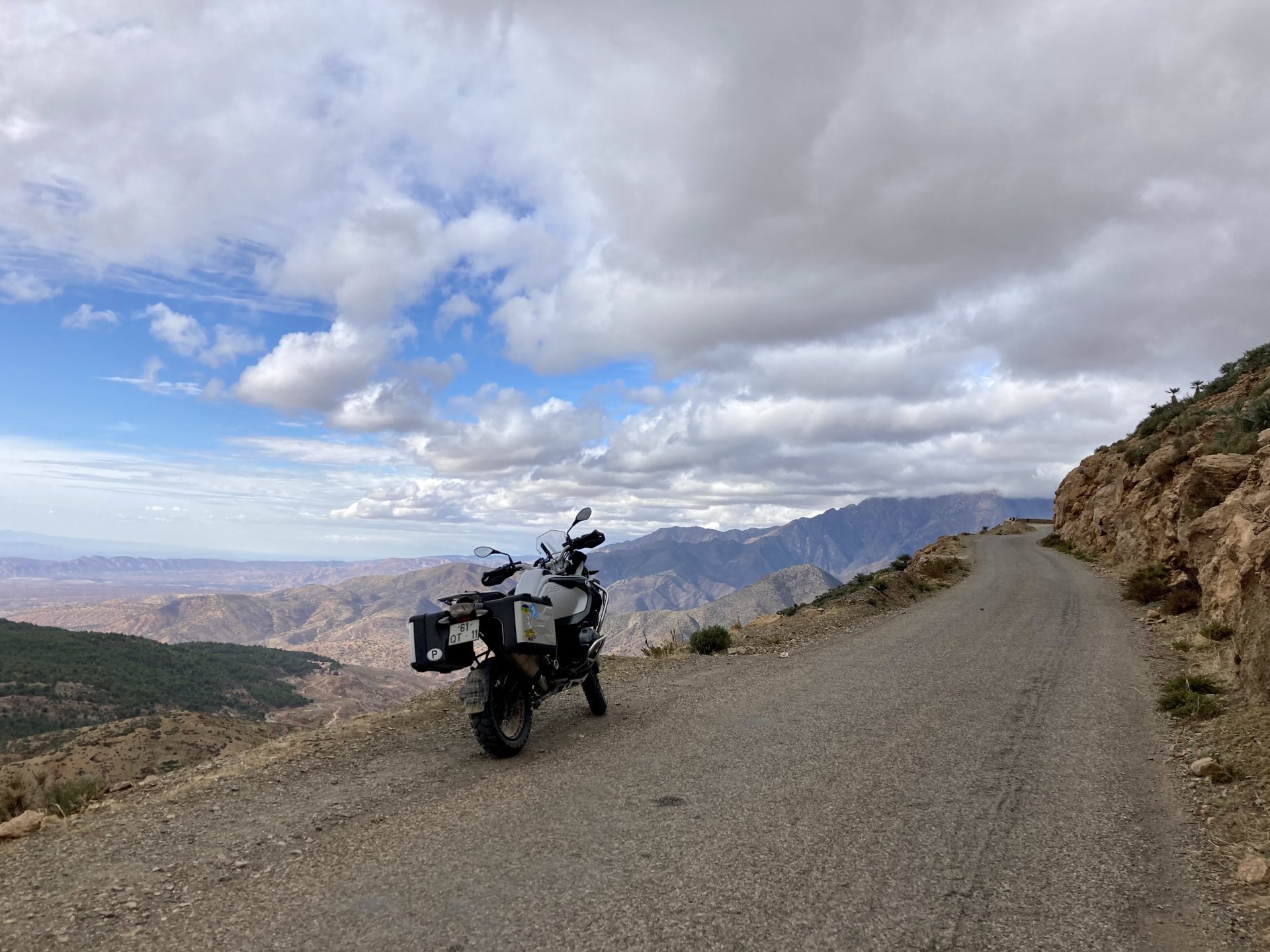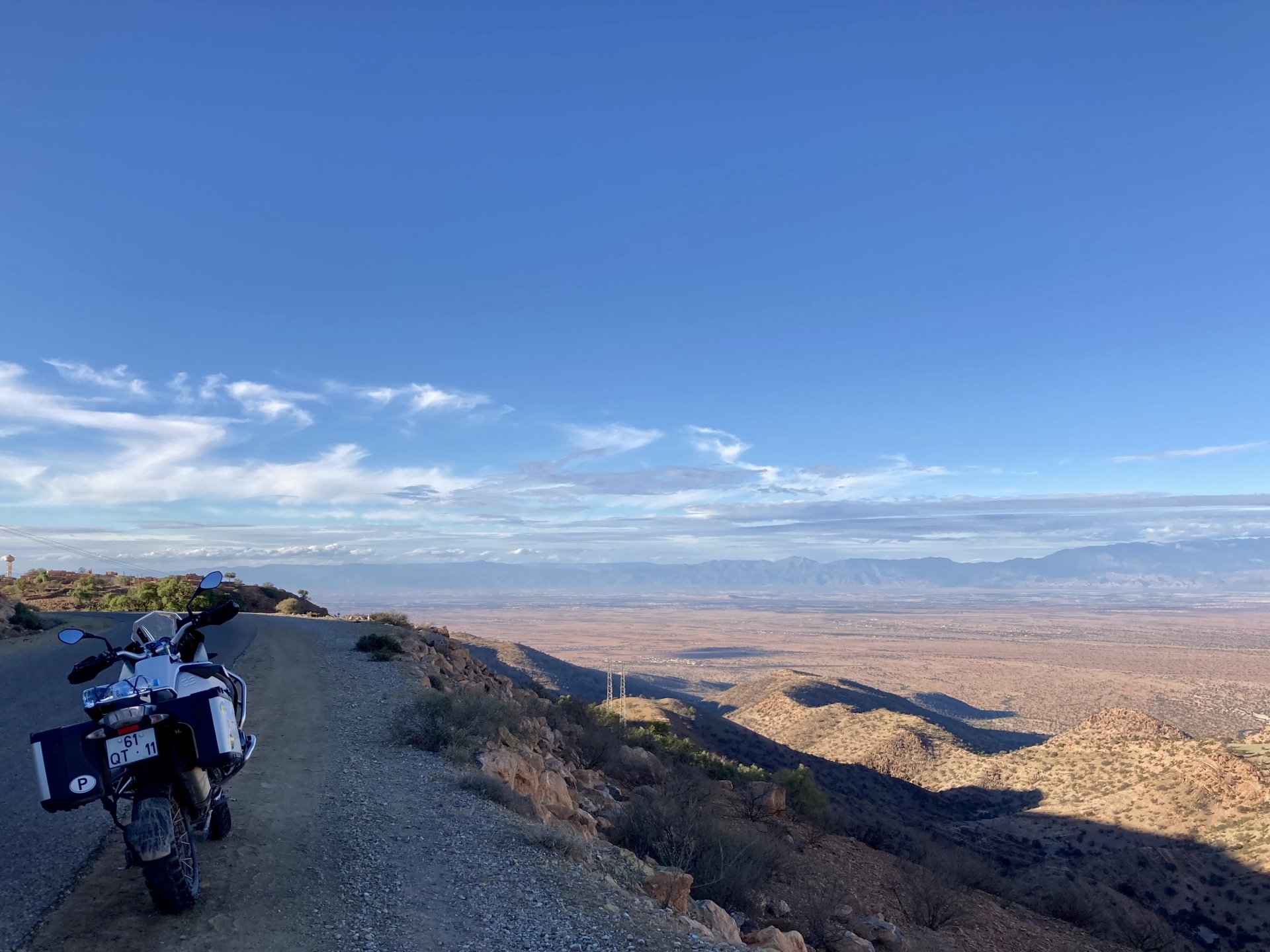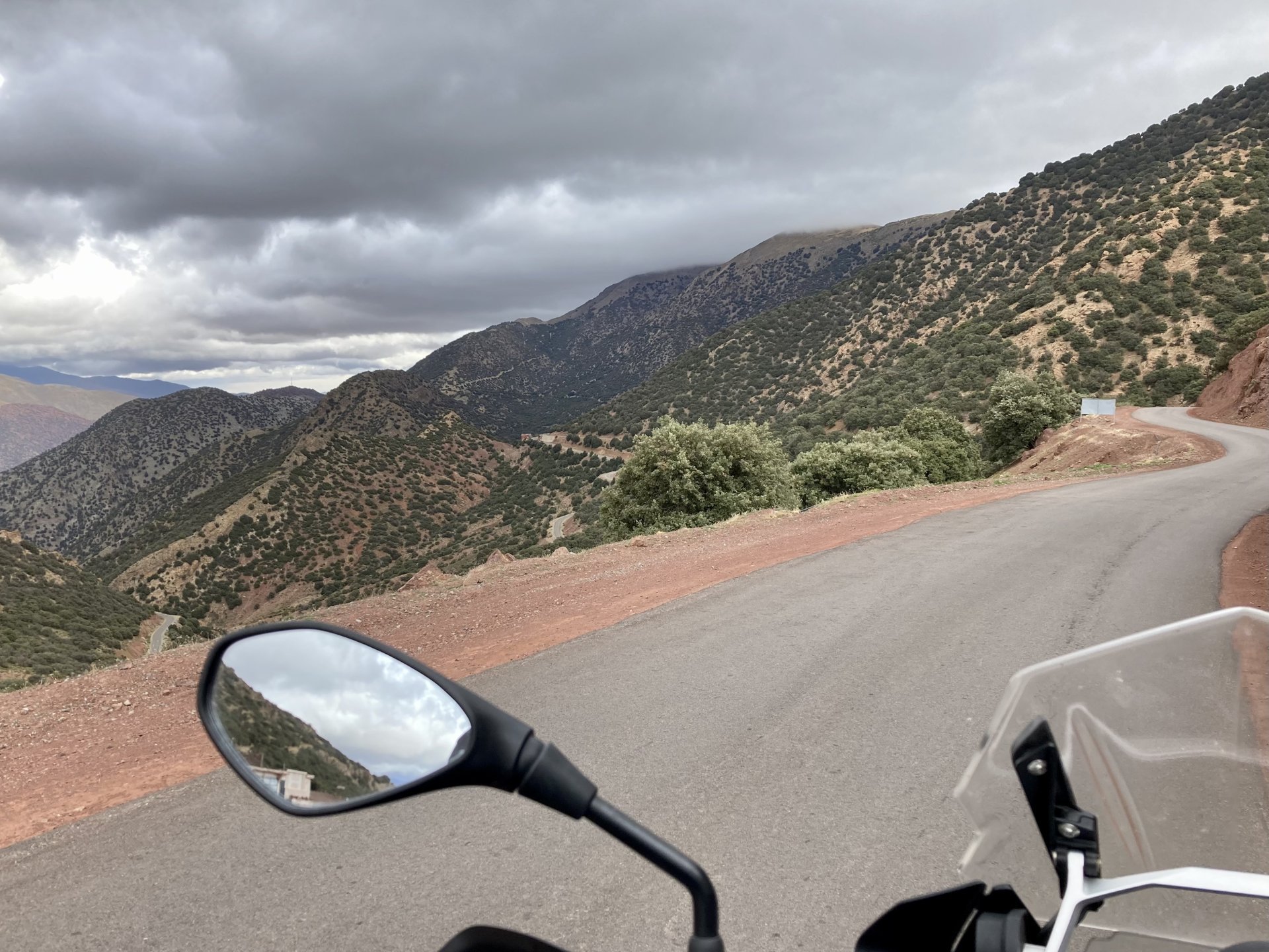 07th December, Wednesday It was the coldest night since I've been in Morocco, snow covered mountain tops were in sight of where I slept. I woke up with no alarm clock, as has been so for a couple of years except with unusually early work commitments. And since it was dark and still too cold, I laid in bed enjoying the warmth. Dawn was at a little past 8, this is 8:33, bike felt cold just from looking at it in the distance, minimum temperature that night had been 1ºC. It was the first time in this trip that it cranked slowly once before starting, maybe still sleepy! After slowly enjoying breakfast and double the usual amount of hot coffee to allow the sun to kill off some of the early morning cold, I get out and ride off with 4ºC showing on the dashboard. I am definitely heading north and back home, though, first heading is to Fes and then Tangier. Winter is firmly arriving and I am not equipped for it. A little later I stop on an open plain, this is the last wide open spot that I'll see on this trip, so decide to stop and enjoy it for a moment as I had done so before, in 2017. In 2017 it was decided that our next few trips wouldn't be to Morocco, and I distinctly remember passing this road, undergoing construction at the time, and realizing I wouldn't be doing this for a while. Fate proved cruel and I couldn't anticipate how right I was. The road to Sefrou is great, sometimes it almost feels European in a good way. My phone demanded my attention and I stopped for a while, right on the middle of some twisties. Moroccan police is strict with speed limit enforcements, they have just the few fixed cameras around major cities, but all around the country you can expect to find the odd police stopping point armed with a speed gun. For European vehicles some of the 60kmh seem too low, but they really aren't considering the state of some of their vehicles and the loads they carry. A little after the previous picture was taken I was warned by an oncoming car about the radar, and after it stopped by a couple having a cigarette by their motorcycle. They were a very cool couple, spaniards in their 60s, riding a grey and red R1250GSA also with Vario cases, the dude was surprised to see mine on the GSA and like geeks we bonded over how bikes look shit with the tubes required to carry aluminum cases when the cases are off. They frequently ride all over the Iberian Peninsula and Morocco, it was a nice meeting and one of those sort of short contacts with people that warm up your day. Cool bike they had, too! Street dog pack in Sefrou: I made it to Fes quite early, and decided to stay. The couple from before had told me that I would be facing rain storms in Spain and Portugal, and north Morocco as well, and that I should spend a couple of days to wait them out before going if not in a hurry. I'm no good in just waiting around like that and seemed to me I was going to ride through the rain regardless, it was a matter of choosing to do it in one or two days of heavy rain or 4 or 5 days of shit weather. I chose the least time regardless of intensity. Arriving at Fes I got hit with a big time nostalgia, having spent a few nice days here before. Fes gets really hot in the summertime and most of the year it's warmer than you would think considering it's almost northern location. Stoplights sometimes have little sun beaks to make lights easier to see in bright sunshine, here sometimes they melt over the lights from the heat! It's also a place where revolving outdoor publicity signs have airconditioning systems attached, so they don't burn out in summertime. I arrived sometime around after midday, and the temperature made me comfortable compared to the early morning cold. I went looking for a shop where I bought a carpet previously, they had reasonable prices and acted like a cooperative, the selection was immense and they had friendly people there. That shop was now extinct and replaced by a place that now works on the third story of an office building and sells mostly custom carpets to big hotels. They only had one Kilim rug there, it was pretty but the dude wanted 3200 dirhams for it, and I think that was too much, so didn't take it. He was immovable on price, so he can keep it. My hotel of choice made me smile when I rocked up at 13:00 and asked for a room. The dude proved what southern Moroccans think of people from the big cities of Casablanca, Rabat and Fes by being an altive twat and telling me to come back later since they had no rooms ready yet. Since it isn't summertime and I wouldn't miss their amazing swimming pool space, I went across the street and 20 minutes later was having my shower and getting ready to go for a walk. Fes' main avenue, ending at the royal palace's gold leafed doors. I stopped for a snack somewhere where me and Maria used to have dinner at, still the same guy but he was in a bad mood that day, lunch was cheap but completely forgettable, and not worthy of a picture either, and that's saying something considering this ride report 's picture intensity. I walked to the medina borders to see if I could find a rug shop and to walk off some of the afternoon. Getting to the medina was a few kms walk, and the noise, smells and pollution of Fes got me before that. I felt miserable and intoxicated, people had no space for a friendly smile towards a foreigner unless asking for a coin or trying to attract you towards a stand selling something. Cafes showed no hospitality and overall my nostalgia towards Fes was not returned. Next time I'll treat it the same way. Stopped by the hotel for a little, to organize some of the luggage and sit in my bed to relax a little. Went out to find something to eat at night, and sat down to eat some pretty average rotisserie chicken, not on pair at all with what you get in smaller places. I did smile at the table next to mine as I watched three older ladies in traditional but couture level clothings eat their chicken breasts with their fingers, to me that mom