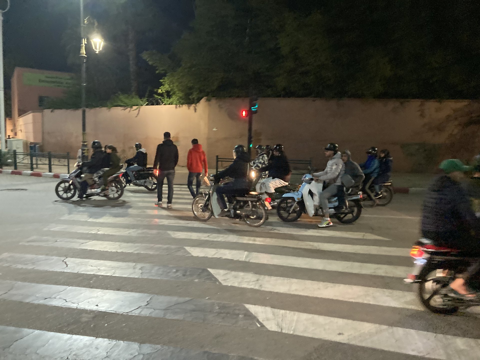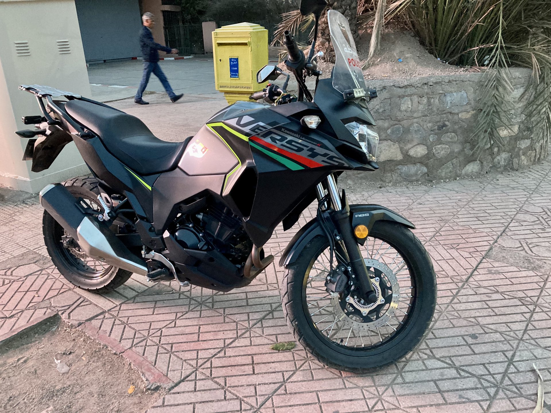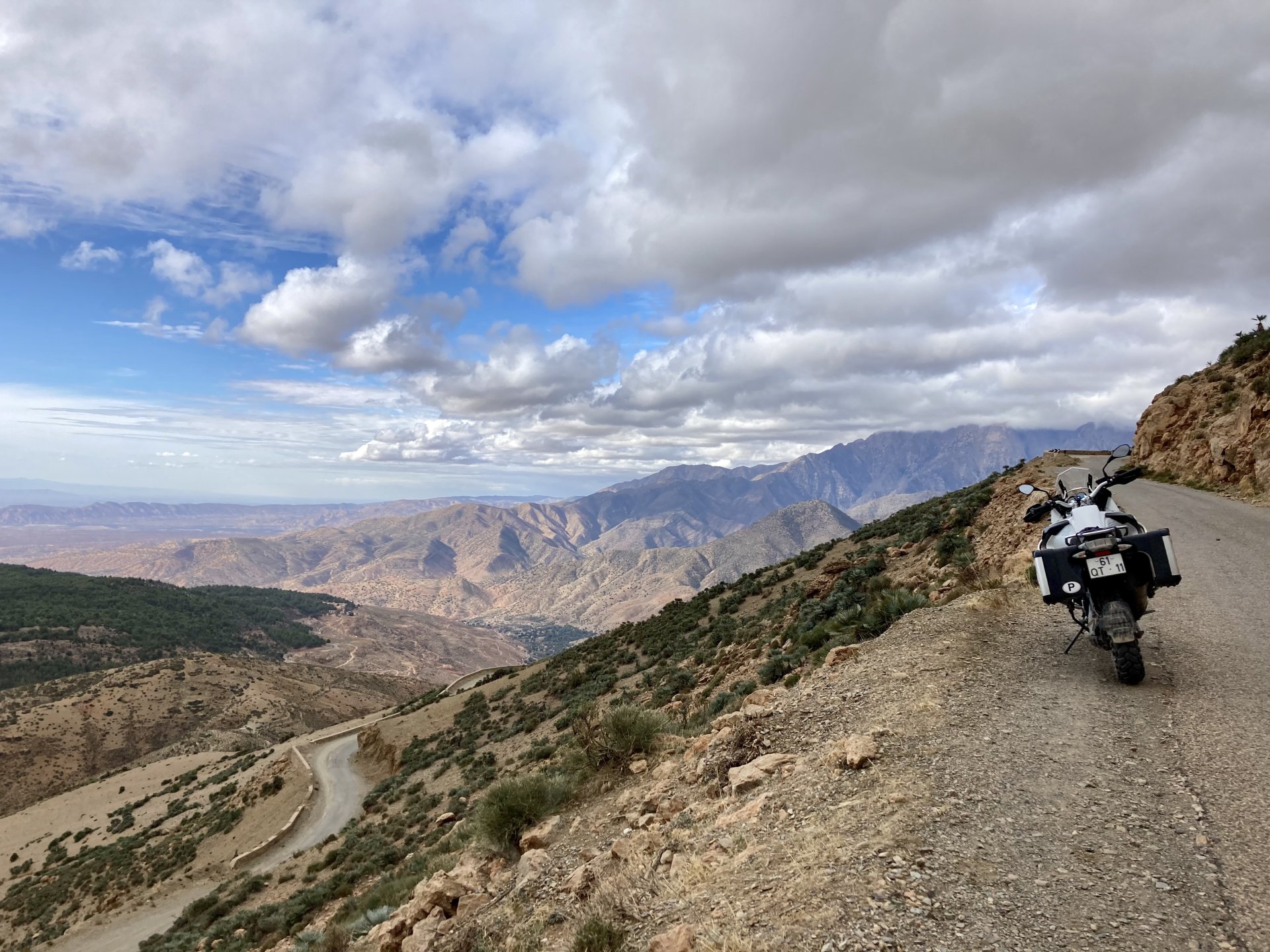 07th December, Wednesday It was the coldest night since I've been in Morocco, snow covered mountain tops were in sight of where I slept. I woke up with no alarm clock, as has been so for a couple of years except with unusually early work commitments. And since it was dark and still too cold, I laid in bed enjoying the warmth. Dawn was at a little past 8, this is 8:33, bike felt cold just from looking at it in the distance, minimum temperature that night had been 1ºC. It was the first time in this trip that it cranked slowly once before starting, maybe still sleepy! After slowly enjoying breakfast and double the usual amount of hot coffee to allow the sun to kill off some of the early morning cold, I get out and ride off with 4ºC showing on the dashboard. I am definitely heading north and back home, though, first heading is to Fes and then Tangier. Winter is firmly arriving and I am not equipped for it. A little later I stop on an open plain, this is the last wide open spot that I'll see on this trip, so decide to stop and enjoy it for a moment as I had done so before, in 2017. In 2017 it was decided that our next few trips wouldn't be to Morocco, and I distinctly remember passing this road, undergoing construction at the time, and realizing I wouldn't be doing this for a while. Fate proved cruel and I couldn't anticipate how right I was. The road to Sefrou is great, sometimes it almost feels European in a good way. My phone demanded my attention and I stopped for a while, right on the middle of some twisties. Moroccan police is strict with speed limit enforcements, they have just the few fixed cameras around major cities, but all around the country you can expect to find the odd police stopping point armed with a speed gun. For European vehicles some of the 60kmh seem too low, but they really aren't considering the state of some of their vehicles and the loads they carry. A little after the previous picture was taken I was warned by an oncoming car about the radar, and after it stopped by a couple having a cigarette by their motorcycle. They were a very cool couple, spaniards in their 60s, riding a grey and red R1250GSA also with Vario cases, the dude was surprised to see mine on the GSA and like geeks we bonded over how bikes look shit with the tubes required to carry aluminum cases when the cases are off. They frequently ride all over the Iberian Peninsula and Morocco, it was a nice meeting and one of those sort of short contacts with people that warm up your day. Cool bike they had, too! Street dog pack in Sefrou: I made it to Fes quite early, and decided to stay. The couple from before had told me that I would be facing rain storms in Spain and Portugal, and north Morocco as well, and that I should spend a couple of days to wait them out before going if not in a hurry. I'm no good in just waiting around like that and seemed to me I was going to ride through the rain regardless, it was a matter of choosing to do it in one or two days of heavy rain or 4 or 5 days of shit weather. I chose the least time regardless of intensity. Arriving at Fes I got hit with a big time nostalgia, having spent a few nice days here before. Fes gets really hot in the summertime and most of the year it's warmer than you would think considering it's almost northern location. Stoplights sometimes have little sun beaks to make lights easier to see in bright sunshine, here sometimes they melt over the lights from the heat! It's also a place where revolving outdoor publicity signs have airconditioning systems attached, so they don't burn out in summertime. I arrived sometime around after midday, and the temperature made me comfortable compared to the early morning cold. I went looking for a shop where I bought a carpet previously, they had reasonable prices and acted like a cooperative, the selection was immense and they had friendly people there. That shop was now extinct and replaced by a place that now works on the third story of an office building and sells mostly custom carpets to big hotels. They only had one Kilim rug there, it was pretty but the dude wanted 3200 dirhams for it, and I think that was too much, so didn't take it. He was immovable on price, so he can keep it. My hotel of choice made me smile when I rocked up at 13:00 and asked for a room. The dude proved what southern Moroccans think of people from the big cities of Casablanca, Rabat and Fes by being an altive twat and telling me to come back later since they had no rooms ready yet. Since it isn't summertime and I wouldn't miss their amazing swimming pool space, I went across the street and 20 minutes later was having my shower and getting ready to go for a walk. Fes' main avenue, ending at the royal palace's gold leafed doors. I stopped for a snack somewhere where me and Maria used to have dinner at, still the same guy but he was in a bad mood that day, lunch was cheap but completely forgettable, and not worthy of a picture either, and that's saying something considering this ride report 's picture intensity. I walked to the medina borders to see if I could find a rug shop and to walk off some of the afternoon. Getting to the medina was a few kms walk, and the noise, smells and pollution of Fes got me before that. I felt miserable and intoxicated, people had no space for a friendly smile towards a foreigner unless asking for a coin or trying to attract you towards a stand selling something. Cafes showed no hospitality and overall my nostalgia towards Fes was not returned. Next time I'll treat it the same way. Stopped by the hotel for a little, to organize some of the luggage and sit in my bed to relax a little. Went out to find something to eat at night, and sat down to eat some pretty average rotisserie chicken, not on pair at all with what you get in smaller places. I did smile at the table next to mine as I watched three older ladies in traditional but couture level clothings eat their chicken breasts with their fingers, to me that mom