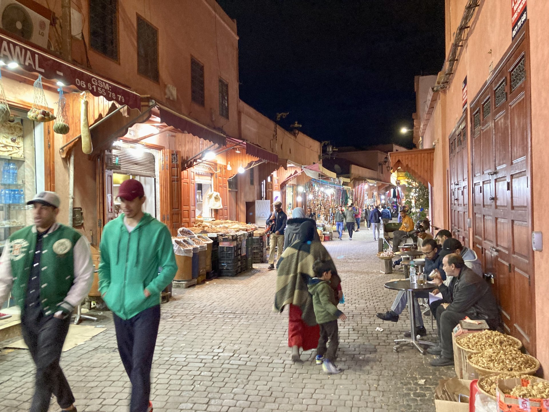 05th December, Monday During the night I felt like I heard the bike's alarm sound, it was parked outside but with video surveillance and very closely nudged between the hotel owner's suv and an old Land Rover, it wouldn't be moved without a commotion but anyway it did cross my mind. In the morning when I went to put the luggage on it the Landie had recently smashed windows, the bike was untouched so all's good and time to go. Such a nice place, I marked it on google maps to remind me where it is for next time I'm around, even if they thought I was German on account of the kind of motorcycle I rode in on. By 9 I was riding out. Starting the bike and heading out of Taroudant was a pleasure, warming it up slowly on still mostly sleepy usually very busy streets, There's kids playing football everywhere: I had a couple of calls to make, so by 10:15 it had just become office hours in Portugal so I stopped and got on with them. I stopped right in the middle of an amazing Argan tree orchard. While I did calls and waited for people to wake up back at home I got distracted and spent a while looking at trees. The darkness over the mountains in the distance? Yes, that's where I'm going. A little further on stopped for tea and to try and finally wrap up a couple of things back home, and got a little guy interested in my snack. And then, up the Tizi N'Test. It's a great piece of road, goes up to a little over 2000 meters and has been greatly improved since I was last here, it's hard to keep it safe with all the frequent rock slides, though, they smash through barriers like it's nothing. It's a shame, it's such a cool little road to climb that I really wish it went to 3000 meters and lasted longer, right when it's getting more and more interesting it reaches the top and you start descending on the other side. The other side of the mountain going down to Asni isn't as impressive. Usually, usually it isn't as impressive, today it was a little bit more dramatic than normal, winds were really very high and they had just had a lot of rock slides that were being cleared as I went past. The sort of thing that really blocks a road unless you're on a bicycle and can carry it over, or can REALLY mess up your day if they hit you. It's pretty countryside though. I stopped by a place I stayed at before, with Maria, it's a great looking hotel, with amazing modern Moroccan cooking, I stopped to have a look around but they were closed for season cleaning. I pondered on staying there, but just walked around for a little and then rode on to Marrakech, it was too early to stop anyway, and it really looked like the weather there in the mountains was going to turn quite nasty. Rains here mean muds and conditions that challenge my casual jeans and open faced helmet riding like an adventuring gentleman. It was good to go, spending a whole afternoon with nothing to do in bad weather would also be boring. At Tahannaout I saw a sign for a woman's cooperative and stopped as I still had a little shopping to do and felt like talking to someone. Women cooperatives are a way that Moroccan women found out of taking to market skills and labour that they traditionally do, like carpet making, argan oil products, spice preparations, all kinds of traditional stuff. Doing this via a cooperative it means they control their intake of household money instead of watching it being diverted to their husband's cafe lifestyle while kids go hungry. The ladies were very nice and one of them spoke perfect english, that's nice as my french isn't up to understanding a fast spoken conversation. I wanted to buy some saffron too, but they didn't sell spices there, traditional saffron is a great product, it's an expensive thing so it's a shame when you buy stale old strings, I was pointed to another place 45 minutes away, I made it in 30 There, as soon as I arrived the older lady, clearly the matriarch of the place quickly came and gave me a hug and said that I wasn't going anywhere until she got a ride in the bike of my bike, I told her that for that I needed a discount on spices and that she would be risking ending up in Portugal. Her reply was a big laugh, told me I could take her wherever, and a naughty wink! Moroccan women are cool sometimes. The whole place was full of pretty smiles, I did my shopping and then proceeded to give three rides through the village, each one with someone laughing along on the back. As we rode along the village I noticed that skies were turning properly dark above and that water was starting to flow on the sides of streets, coming from the mountain above. I resisted the will to linger around there and rode on to Marrakech. From there to Marrakech it was mostly flat straight roads, traffic meant a steady 60 to 80kmh, not fast but under that kind of weird traffic you're better sticking to slow. It's a road, but people turn around anywhere, bicycles share the road, kids cross it, people park half n the road, cafes have tens of scooters in front, all of them arriving and leaving like on a busy bee nest. I'm content to see the dark sky behind me I pick a hotel, book it within 1 minute, put it on the phone's navigation and easily ride into Marrakech. Sometimes we're spoiled by technology! This is the views and sounds of afternoon Marrakech traffic on a nice and organized avenue, from my hotel room window. Lets take a walk down to the main medina square, it was a half hour brisk walk to get there unless you get distracted or lost, I obviously did both. Police Kawasaki, they came running very distressed that someone took a picture of their bike. Cool tow truck! Bus station human mass on end of afternoon Marrakech And the Medina, Flavored with tomato, spices and onion sauce, it's great! I remember having it for 40 or 50 cents, 20 dirhams this time. A sign of times in bigger cities: The old Yamahas are a class act compared to the current 4 stroke chinese bikes. Motorcycle parking, zoom inside and you'll see hundred of them! Made my w