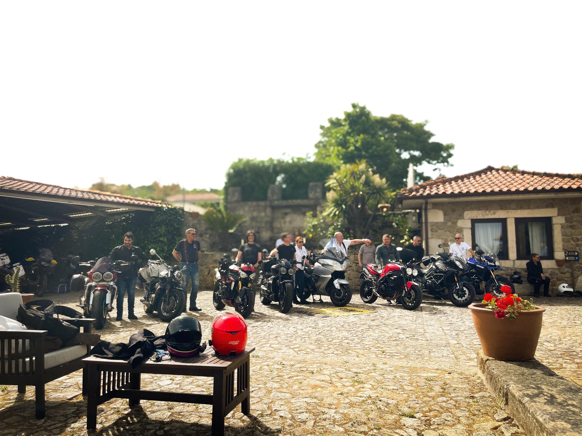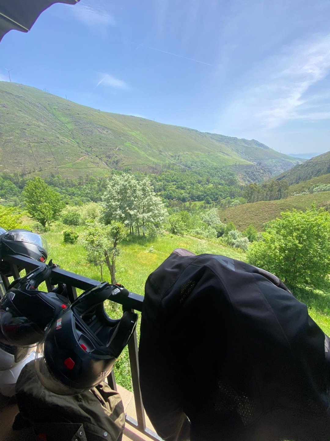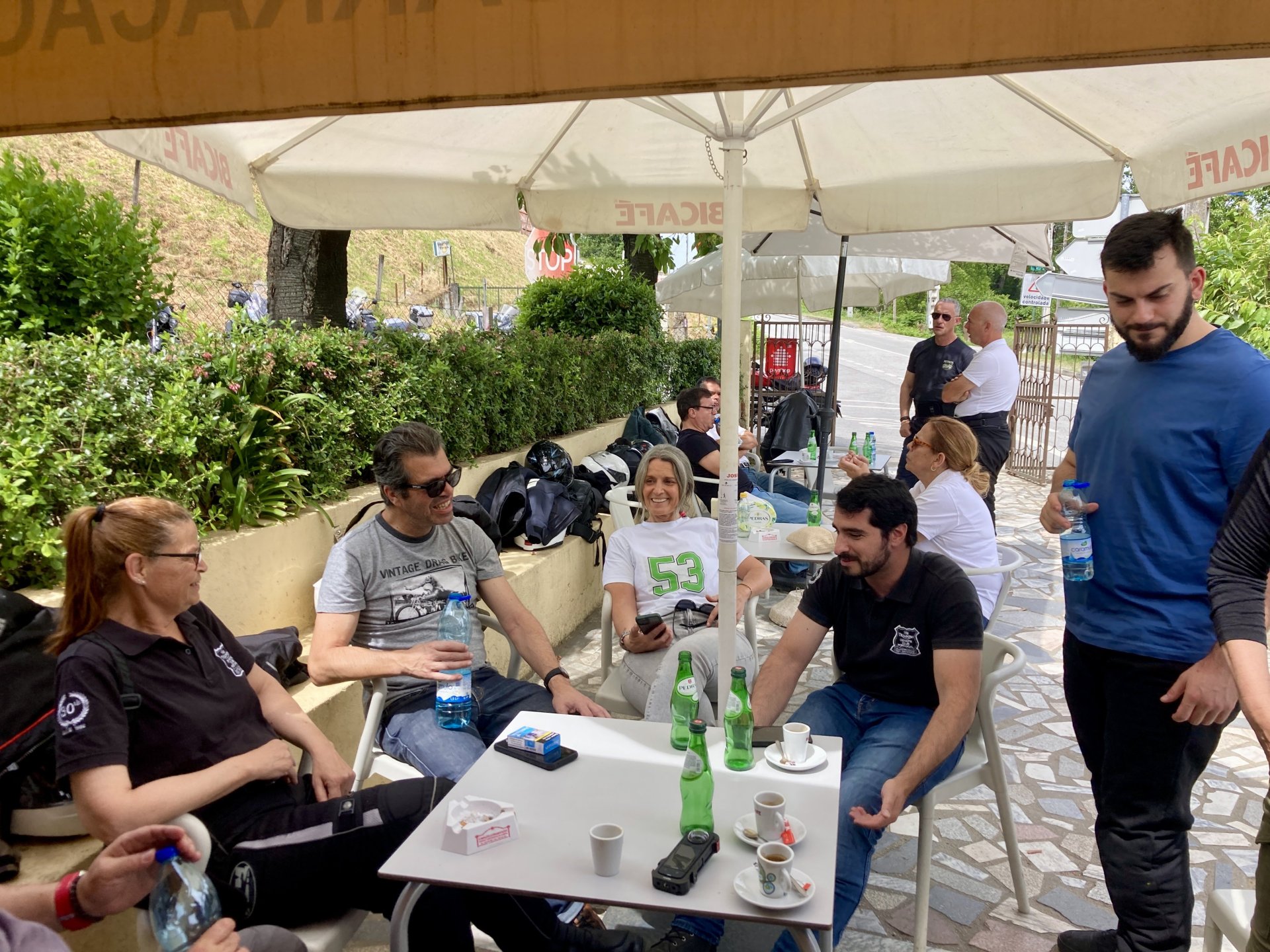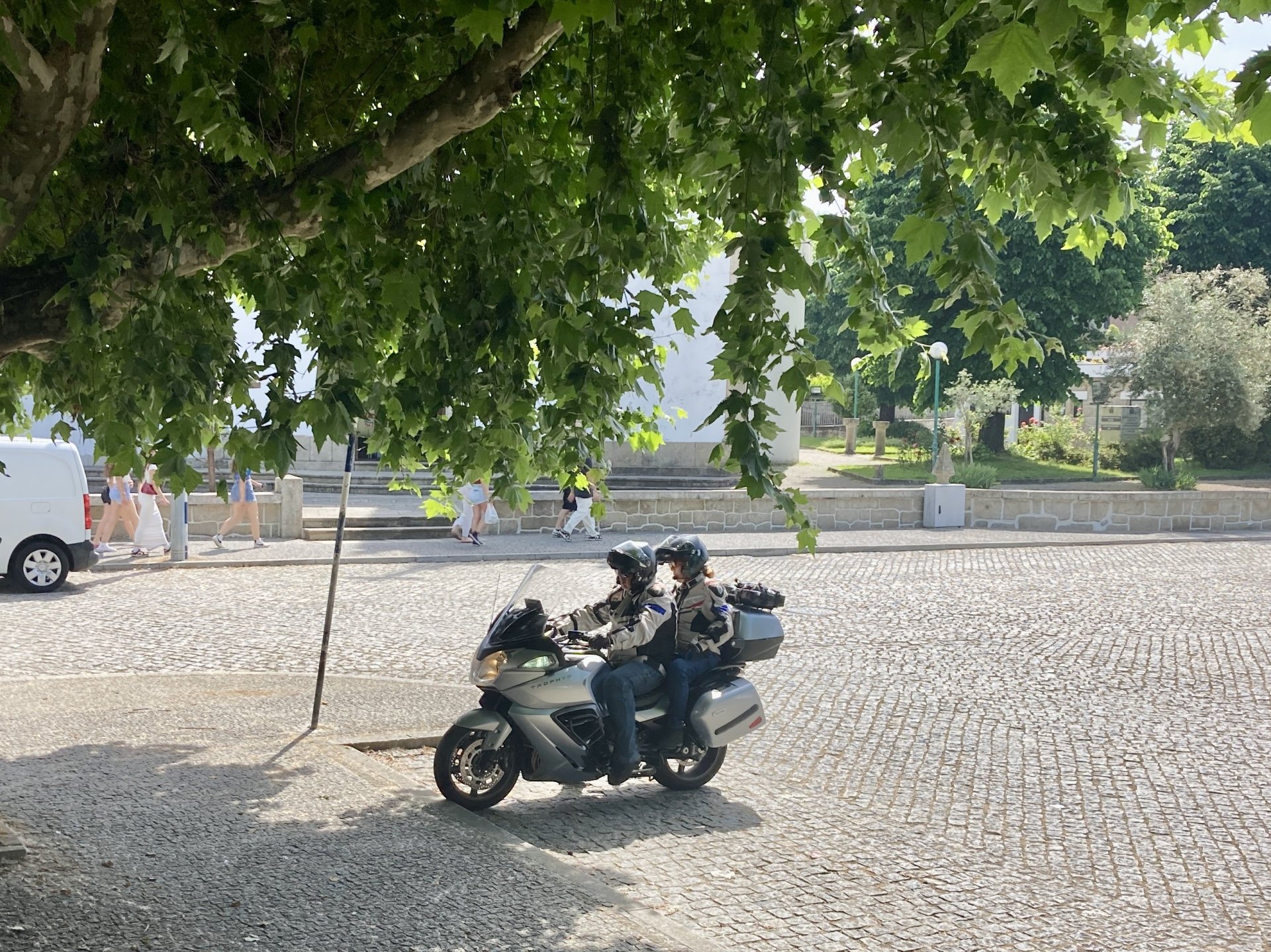 3. This is from a few weeks ago, I helped Sofia and her friends with guiding a meeting of the Triumph Moto Clube Portugal in the Douro. She is now president of the club and this would be her first meeting as such. There were a few people coming from different locations, and we'd ride up the Douro valley, stop for lunch and then ride to the hotel for Gins, swimming pool, and dinner. I waited under some shade, as it was about to be a really hot day. First one arriving: Then Sofia arriving with a few bikes from Lisbon, already 300/350km into the day for them: Most people have known each other for a while now, but I only knew a couple. Arriving from Viseu, Agostinho on a very pretty Rocket and João from the Algarve with a Speedmaster. Not everyone rode in on a Triumph though, it's a welcoming club. They would in fact be chasing my GS for the whole day and next morning Off we went and onto the restaurant for lunch. I am not used to guiding big groups, and the twisty roads with multiple chances for the group to be split and lost made it slower than I'd like, but we got there. João, who organized the trip was riding a Kove since his Triumph had fallen off a hill and still not fixed, and the Kove had a bright yellow headlight, which came in handy as he was closing the group and was very easy to spot in the distance. Even more people were joining us at the lunch stop, and I think in total it must have been 12 or 13 bikes. Here we are, before all bikes were together: https://youtube.com/shorts/-JwFELXx4Kw?si=doJFL1wjJ7N9cJQq Lunch stop, very scenic but the 36º made it hot out in the open balcony. Rideout after lunch was tricky, very hot and the group took forever to start moving. Eventually we made it to the hotel and I retired to the coolness of the AC in my room to recover a little from the pollen allergies that were driving me insane. Later, gin tonics by the swimming pool got the mood going, and dinner was enjoyed: After dinner it was still warm, made the gins flow easier and people were happy. Snooker started as serious but that didn't last for long In the morning, I packed up and while people were dragging themselves around I rode up to Armamar in Sofia's bike to fuel it up. Sunday morning in a rural town, and the dogs were coming to town There was posing for group pictures and all the Triumphs lined up, spirits were high. We rode out and within 30 minutes stopped for the morning espresso One of the Speed Triples suffered a broken alternator and had to be towed home, this meant the group was broken and while some went on to do some sightseeing a few of us stuck around waiting for the truck before meeting them later for lunch. Late sunday morning, it took a while to arrive but once there it was all very efficient. All but one bike in front of our lunch stop. Food was great, good laughs were had but I have no pictures of that. Eventually we said our goodbyes and we all headed home to different locations around the country, Sofia was very happy: 2 or 3 hours later, via country roads pestered with sunday afternoon traffic, we stopped for a cold water at the cafe we met the previous day: A good weekend was had, not much in the way of riding motorcycles but a lot of laughs and hanging around and socializing. Made a few friends, which was the highlight of the meet.