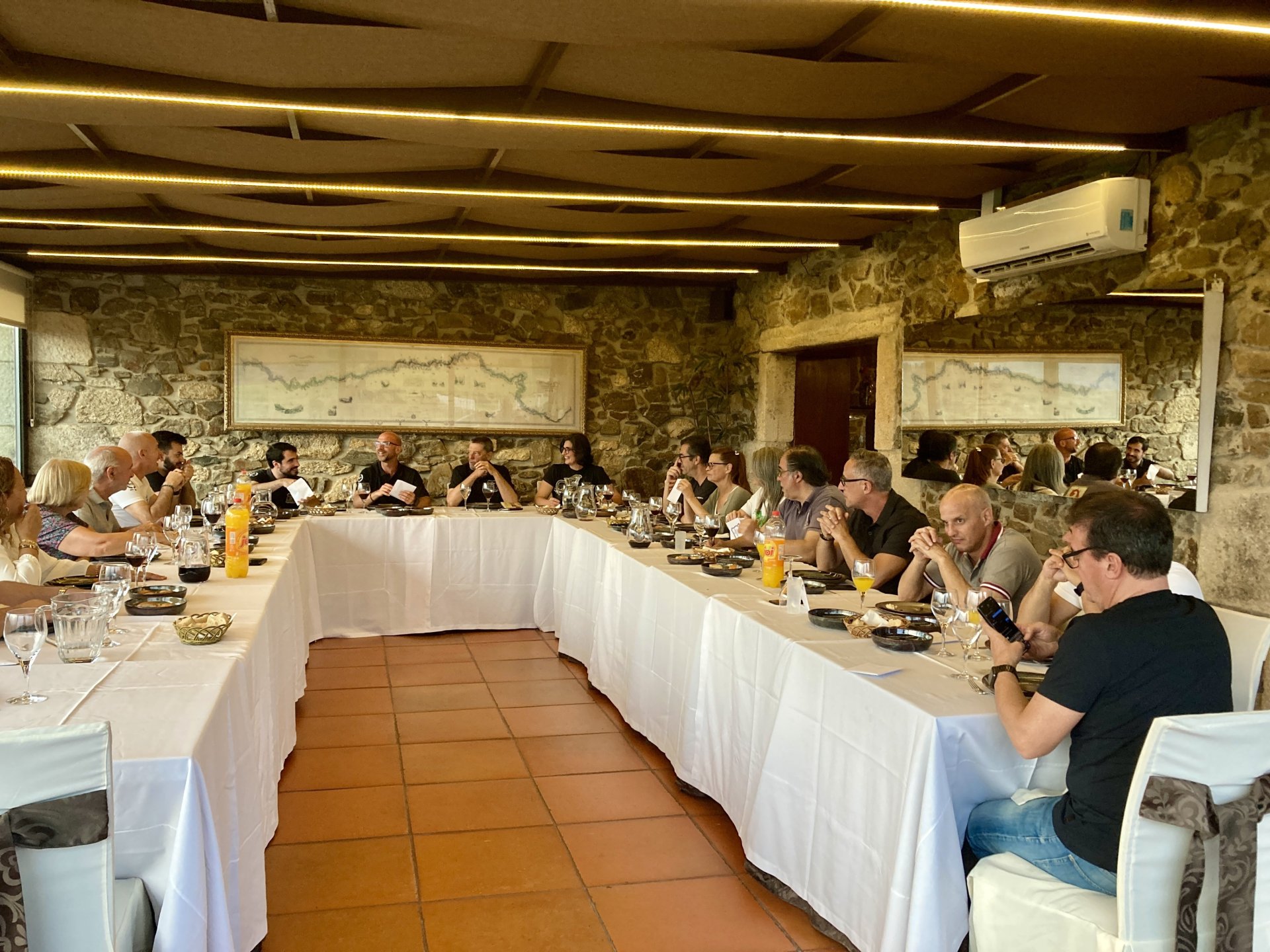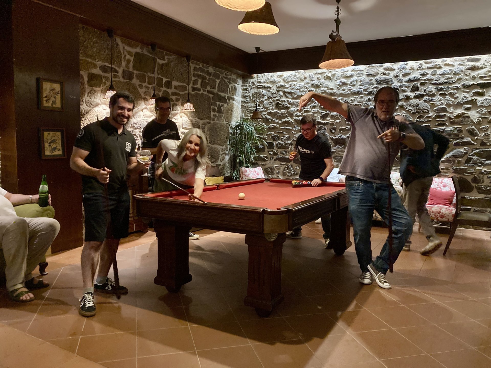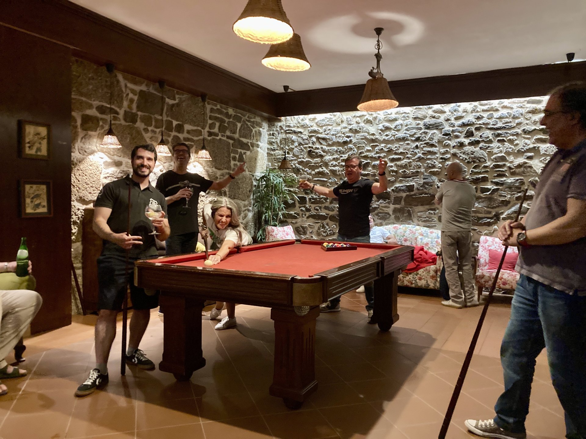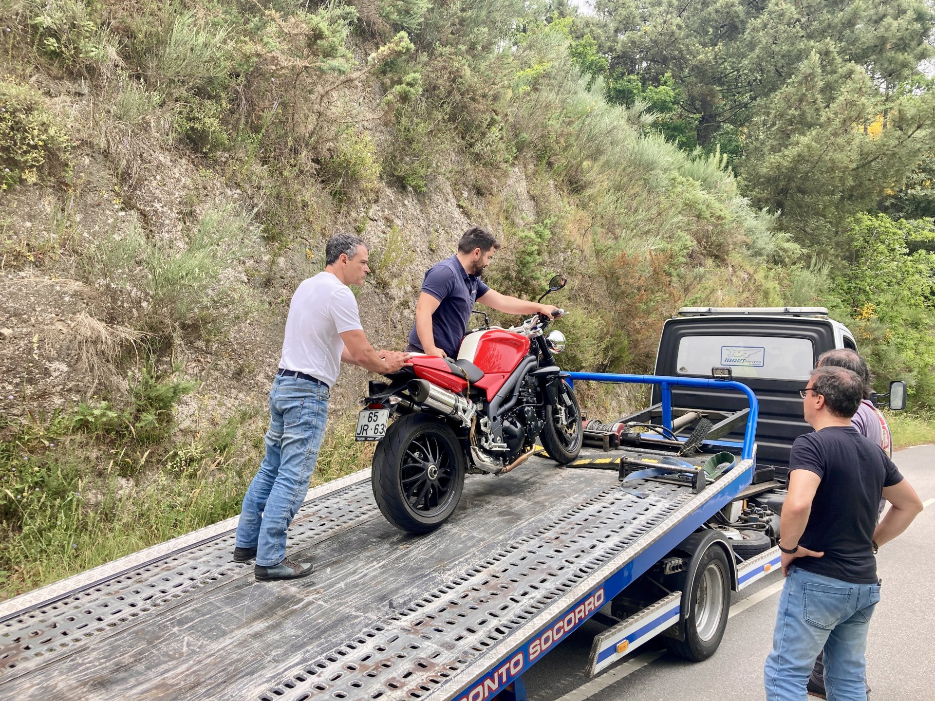 3. This is from a few weeks ago, I helped Sofia and her friends with guiding a meeting of the Triumph Moto Clube Portugal in the Douro. She is now president of the club and this would be her first meeting as such. There were a few people coming from different locations, and we'd ride up the Douro valley, stop for lunch and then ride to the hotel for Gins, swimming pool, and dinner. I waited under some shade, as it was about to be a really hot day. First one arriving: Then Sofia arriving with a few bikes from Lisbon, already 300/350km into the day for them: Most people have known each other for a while now, but I only knew a couple. Arriving from Viseu, Agostinho on a very pretty Rocket and João from the Algarve with a Speedmaster. Not everyone rode in on a Triumph though, it's a welcoming club. They would in fact be chasing my GS for the whole day and next morning Off we went and onto the restaurant for lunch. I am not used to guiding big groups, and the twisty roads with multiple chances for the group to be split and lost made it slower than I'd like, but we got there. João, who organized the trip was riding a Kove since his Triumph had fallen off a hill and still not fixed, and the Kove had a bright yellow headlight, which came in handy as he was closing the group and was very easy to spot in the distance. Even more people were joining us at the lunch stop, and I think in total it must have been 12 or 13 bikes. Here we are, before all bikes were together: https://youtube.com/shorts/-JwFELXx4Kw?si=doJFL1wjJ7N9cJQq Lunch stop, very scenic but the 36º made it hot out in the open balcony. Rideout after lunch was tricky, very hot and the group took forever to start moving. Eventually we made it to the hotel and I retired to the coolness of the AC in my room to recover a little from the pollen allergies that were driving me insane. Later, gin tonics by the swimming pool got the mood going, and dinner was enjoyed: After dinner it was still warm, made the gins flow easier and people were happy. Snooker started as serious but that didn't last for long In the morning, I packed up and while people were dragging themselves around I rode up to Armamar in Sofia's bike to fuel it up. Sunday morning in a rural town, and the dogs were coming to town There was posing for group pictures and all the Triumphs lined up, spirits were high. We rode out and within 30 minutes stopped for the morning espresso One of the Speed Triples suffered a broken alternator and had to be towed home, this meant the group was broken and while some went on to do some sightseeing a few of us stuck around waiting for the truck before meeting them later for lunch. Late sunday morning, it took a while to arrive but once there it was all very efficient. All but one bike in front of our lunch stop. Food was great, good laughs were had but I have no pictures of that. Eventually we said our goodbyes and we all headed home to different locations around the country, Sofia was very happy: 2 or 3 hours later, via country roads pestered with sunday afternoon traffic, we stopped for a cold water at the cafe we met the previous day: A good weekend was had, not much in the way of riding motorcycles but a lot of laughs and hanging around and socializing. Made a few friends, which was the highlight of the meet.