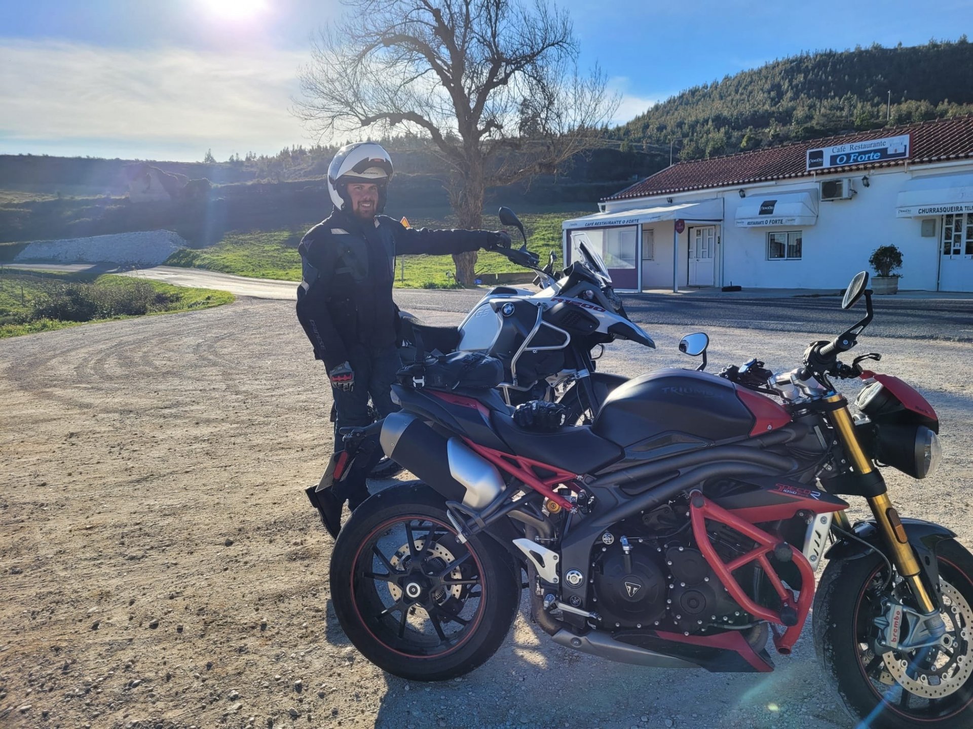 13. Above there’s a video for the ambiance. someone let a Jack Russel sort of dog loose, and he was running around like an arrrow all over the place, managed to take a shot of him as he’s branding a monument It is a pretty place: Felt like eating something, but the local restaurant was pretty full, and didn’t feel like being in a closed space with lots of people, so rode off to meet Sofia for lunch. The road heading out, about to get on it on the white Thruxton is a brazilian lady wearing the tightest “look at my butt” pants ever, you can even see the roundness from here Traffic heading out was pretty silly and two bikes went down on the single corner with a little water running across the tarmac, so I decided to opt for the quiet and slower way out: Back on tarmac, and you can see why people like to scratch on these roads: Passed a couple of really pretty small towns, but didn’t stop for pictures, too much hassle with sunday lunch crowd arriving at scenic locations. 20 minutes later, and I stop on a cafe and order a pair of sandwiches for Sofia’s arrival: No more pictures as the traffic turned to sunday afternoon and that means annoying and slow, so went home.