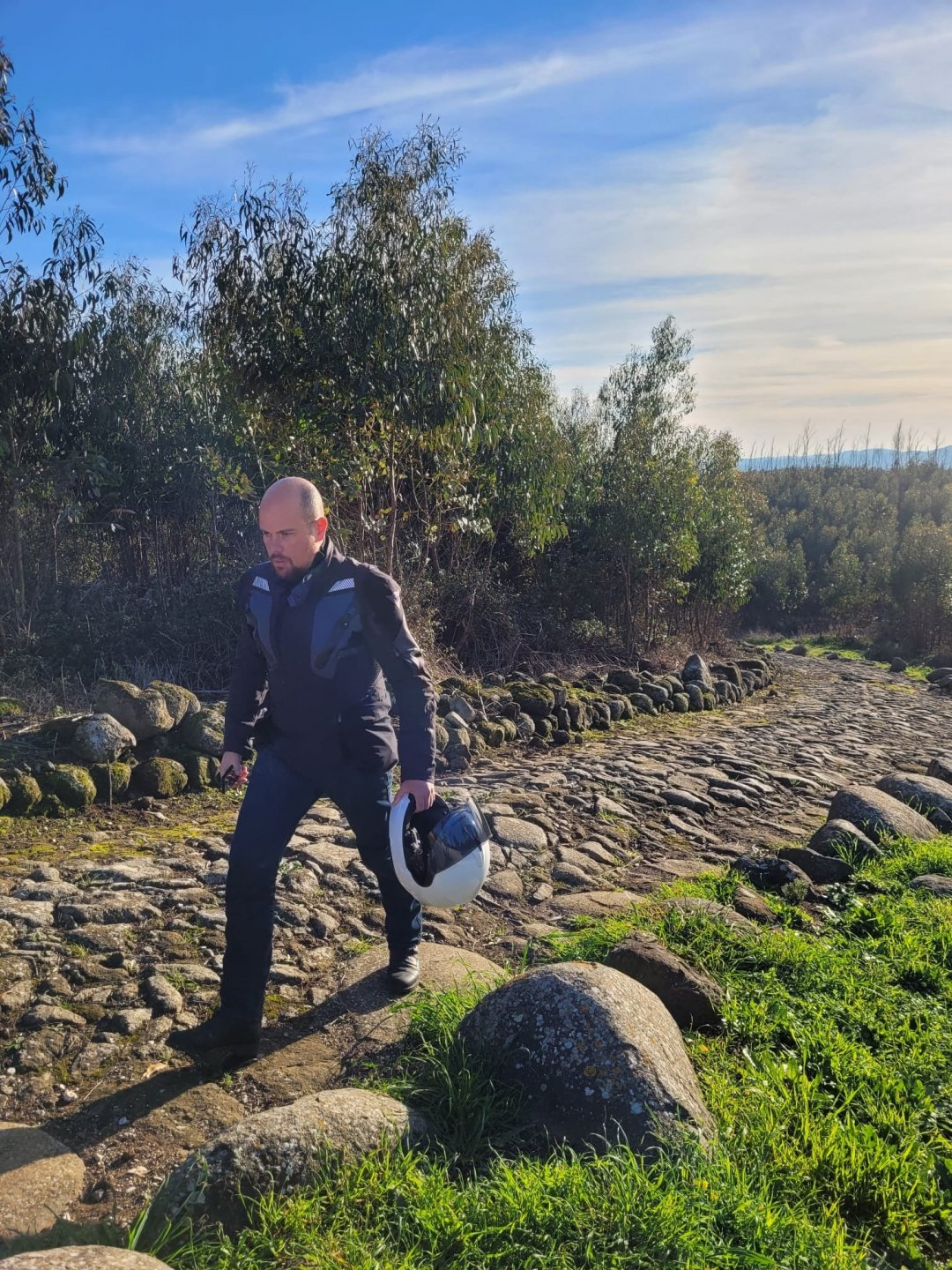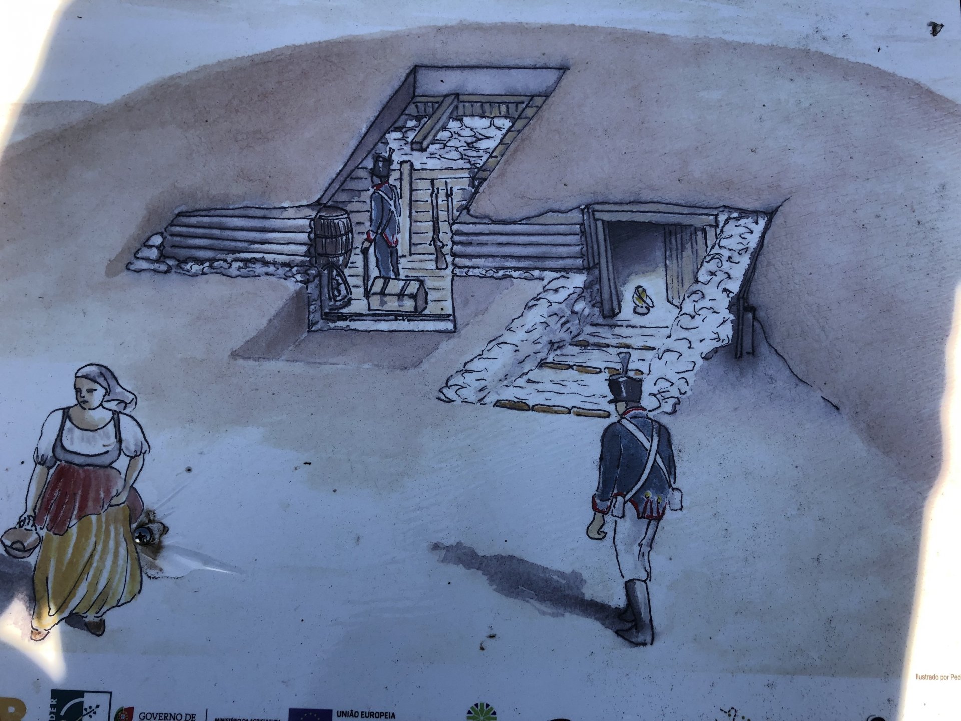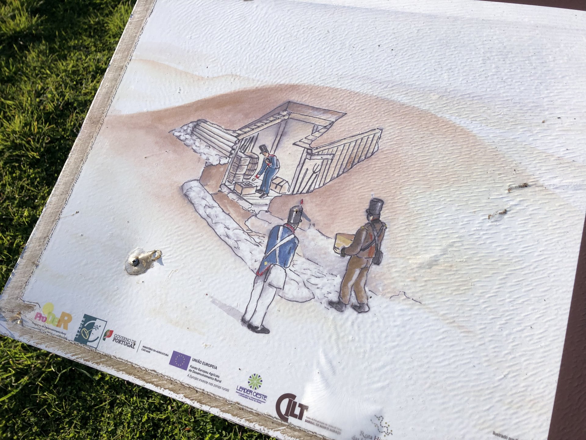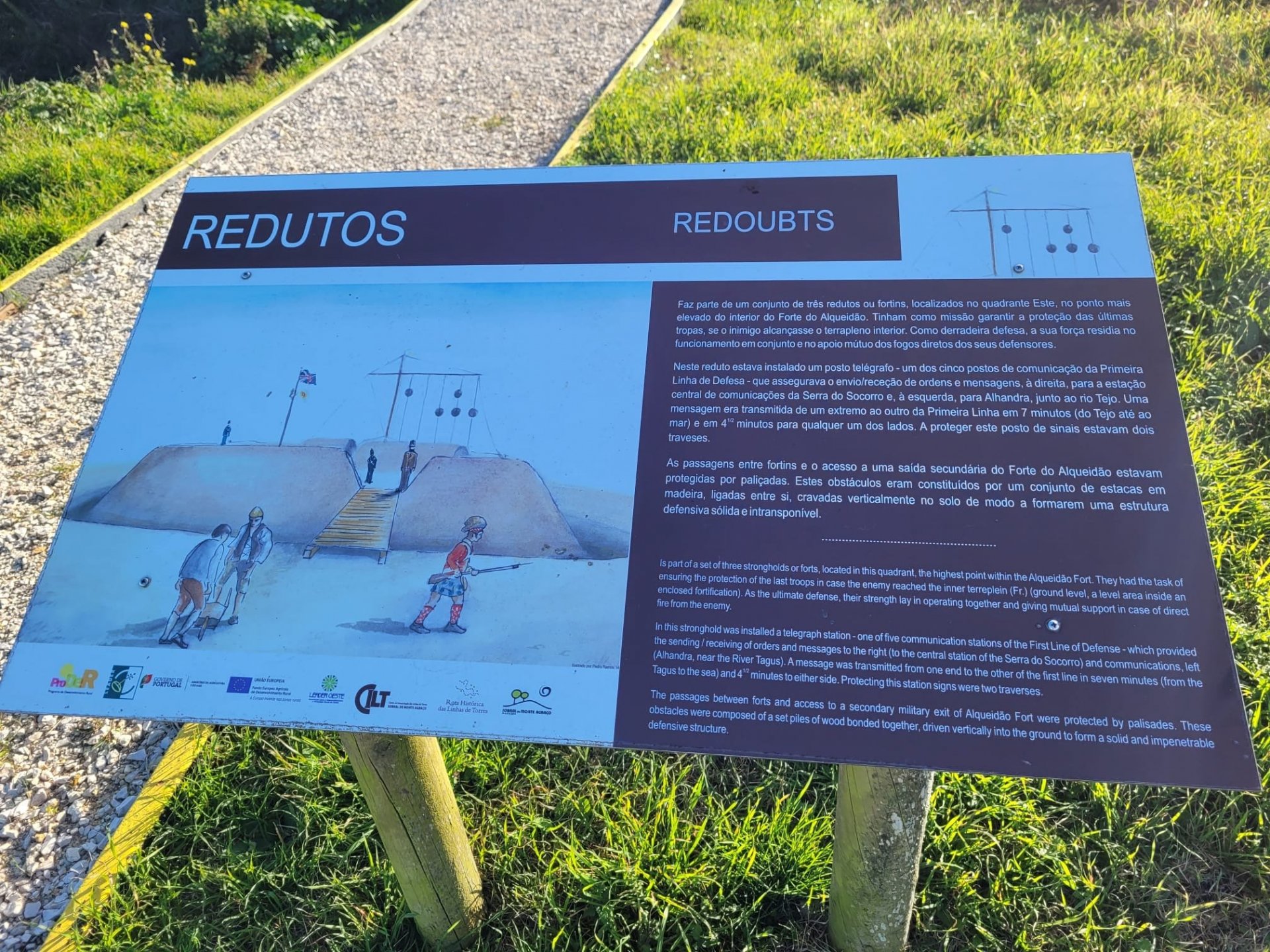 8. Went for a little ride with @Sofia today, to check out the biggest fortification on the Lines of Torres, which is quite close to her home. It was a pretty awesome winter day today, the weather was perfect and we took no pictures of the ride itself because we were running out of day light, but it's a little gem of an area with rolling green hills that doesn't seem to belong to center Portugal but still within the great Lisbon area. I realize this report has too many pictures of embankments and of myself, but bare with it, I'm not one for spending too much time looking at historic things and this really peaked my interest, more so as I didn't really know what to expect nor where we were going at first. The Forte Grande (Big Fort) or Forte do Alqueirão was the biggest fort in the Lines of Torres used by the Portuguese / British army to hold back the French, led by General Wellington. They built two lines of fortifications along the hills from Torres Vedras to Vila Franca de Xira, this is the most important if not only by being the biggest. (I think, look it up if you're interested, I know very little History) There's a couple of kms of sort of loose gravel with a couple of ruts climbing from the road to the fort, so Sofia left the Speed Triple and it's Supercorsa tires down below and rode up with me. Here I am annoyed on a work call, she made herself entertained exploring my different moods through the whole event We rode up next to the old stone road, probably built along with the fort, I was happy to have nice smooth dirt and not those bumpy big rocks, me examining the old road on foot and not really caring much for it: Wouldn't want to ride up this, as always the rocks look bigger in reality than they do in Pictures, bringing supplies on horse carts up this must have been a chore. Give me the right smooth road anytime: Parked right by an embankment There is a geodesic mark inside the fort, and on top of that they built a cool viewpoint from which you get reference point to all the other forts as well as a great view. And then a walk around checking out the defense structures and ruins: Cannon embrasures, and how they look now: To me, the most impressive thing about the Lines of Torres, is how quick they could transmit a message over a long distance: I got a kick out of the drawings, they really made it easy to imagine how the ruins looked back when in use, so I tried to take a picture of some of the ruins from the same angle as the drawing was made, like the below one of a Powder Magazine: Or this one: And my favorite one, the "Governor's House", which was a small house used as an office, with a division for supposedly storing maps and charts, and a room for meetings. I made a point of standing in Wellington´s meeting room, nobody showed up Afternoon was getting on, and we rode back before the sun started to go down, stopping on the way to buy dog medicines by the vet pharmacy. Good little ride, it was today!