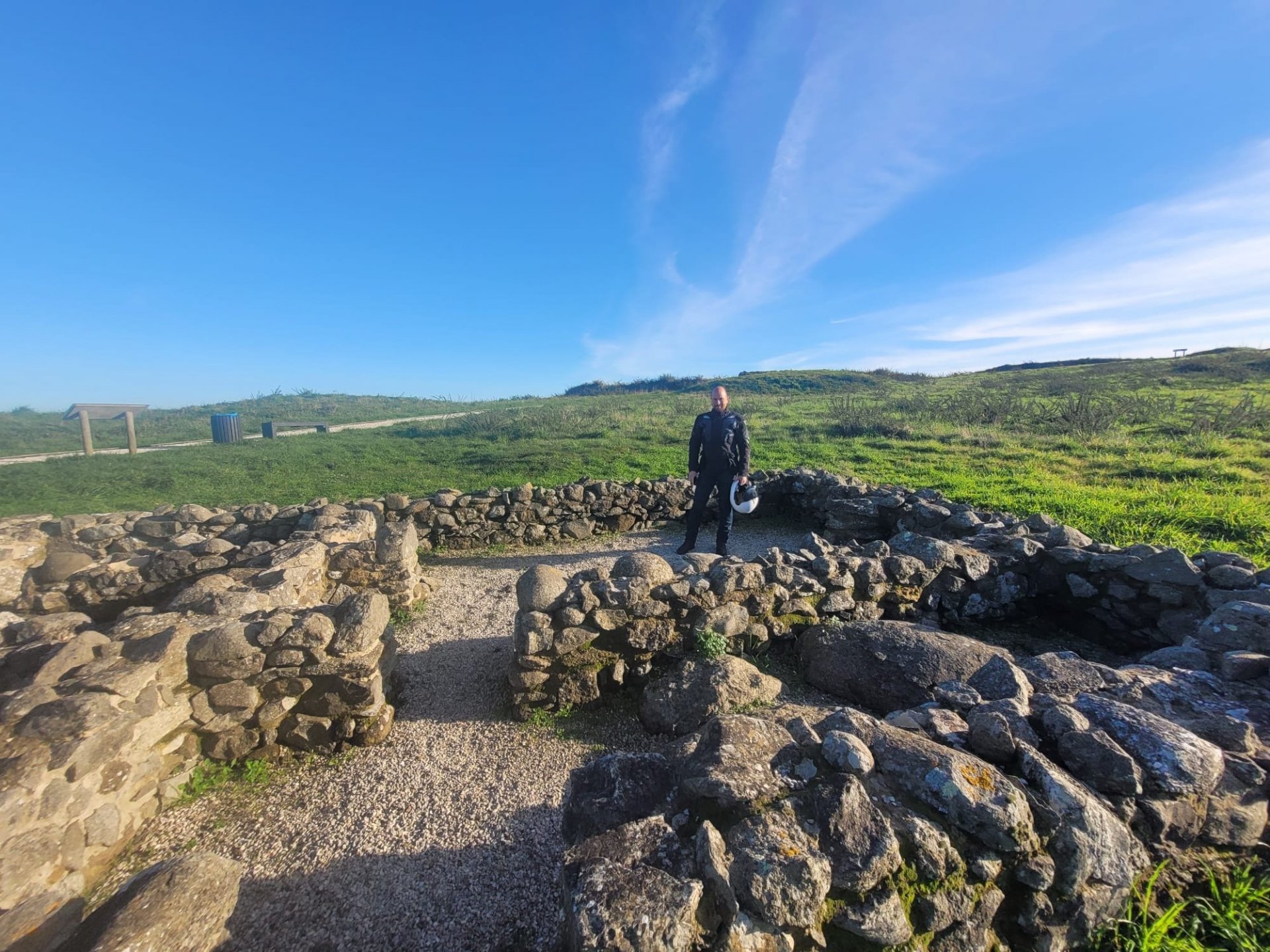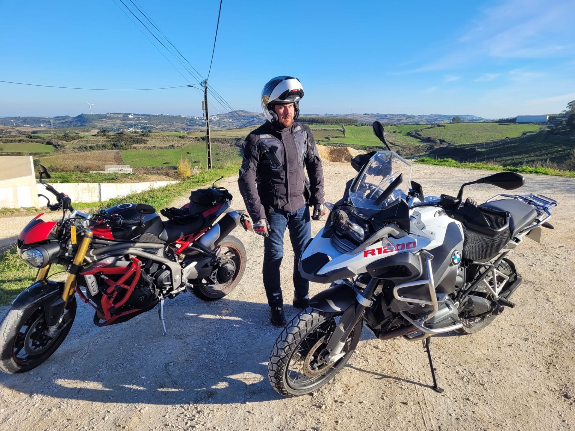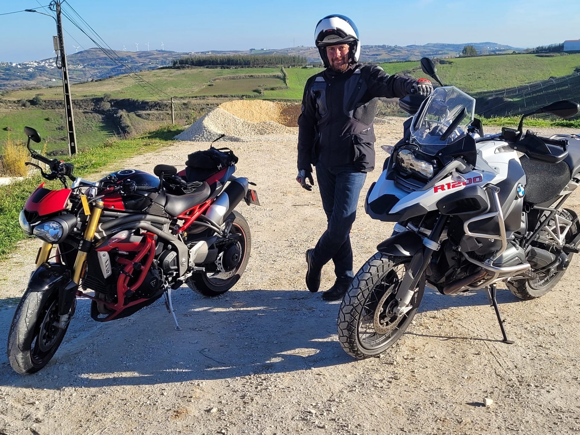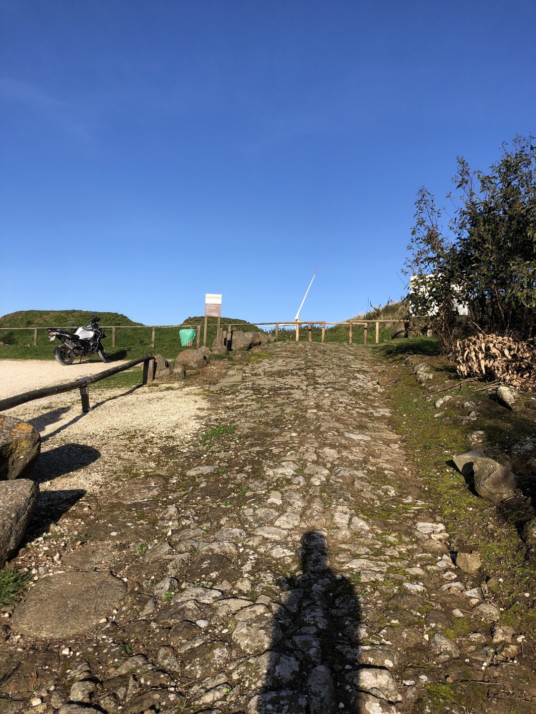 8. Went for a little ride with @Sofia today, to check out the biggest fortification on the Lines of Torres, which is quite close to her home. It was a pretty awesome winter day today, the weather was perfect and we took no pictures of the ride itself because we were running out of day light, but it's a little gem of an area with rolling green hills that doesn't seem to belong to center Portugal but still within the great Lisbon area. I realize this report has too many pictures of embankments and of myself, but bare with it, I'm not one for spending too much time looking at historic things and this really peaked my interest, more so as I didn't really know what to expect nor where we were going at first. The Forte Grande (Big Fort) or Forte do Alqueirão was the biggest fort in the Lines of Torres used by the Portuguese / British army to hold back the French, led by General Wellington. They built two lines of fortifications along the hills from Torres Vedras to Vila Franca de Xira, this is the most important if not only by being the biggest. (I think, look it up if you're interested, I know very little History) There's a couple of kms of sort of loose gravel with a couple of ruts climbing from the road to the fort, so Sofia left the Speed Triple and it's Supercorsa tires down below and rode up with me. Here I am annoyed on a work call, she made herself entertained exploring my different moods through the whole event We rode up next to the old stone road, probably built along with the fort, I was happy to have nice smooth dirt and not those bumpy big rocks, me examining the old road on foot and not really caring much for it: Wouldn't want to ride up this, as always the rocks look bigger in reality than they do in Pictures, bringing supplies on horse carts up this must have been a chore. Give me the right smooth road anytime: Parked right by an embankment There is a geodesic mark inside the fort, and on top of that they built a cool viewpoint from which you get reference point to all the other forts as well as a great view. And then a walk around checking out the defense structures and ruins: Cannon embrasures, and how they look now: To me, the most impressive thing about the Lines of Torres, is how quick they could transmit a message over a long distance: I got a kick out of the drawings, they really made it easy to imagine how the ruins looked back when in use, so I tried to take a picture of some of the ruins from the same angle as the drawing was made, like the below one of a Powder Magazine: Or this one: And my favorite one, the "Governor's House", which was a small house used as an office, with a division for supposedly storing maps and charts, and a room for meetings. I made a point of standing in Wellington´s meeting room, nobody showed up Afternoon was getting on, and we rode back before the sun started to go down, stopping on the way to buy dog medicines by the vet pharmacy. Good little ride, it was today!
