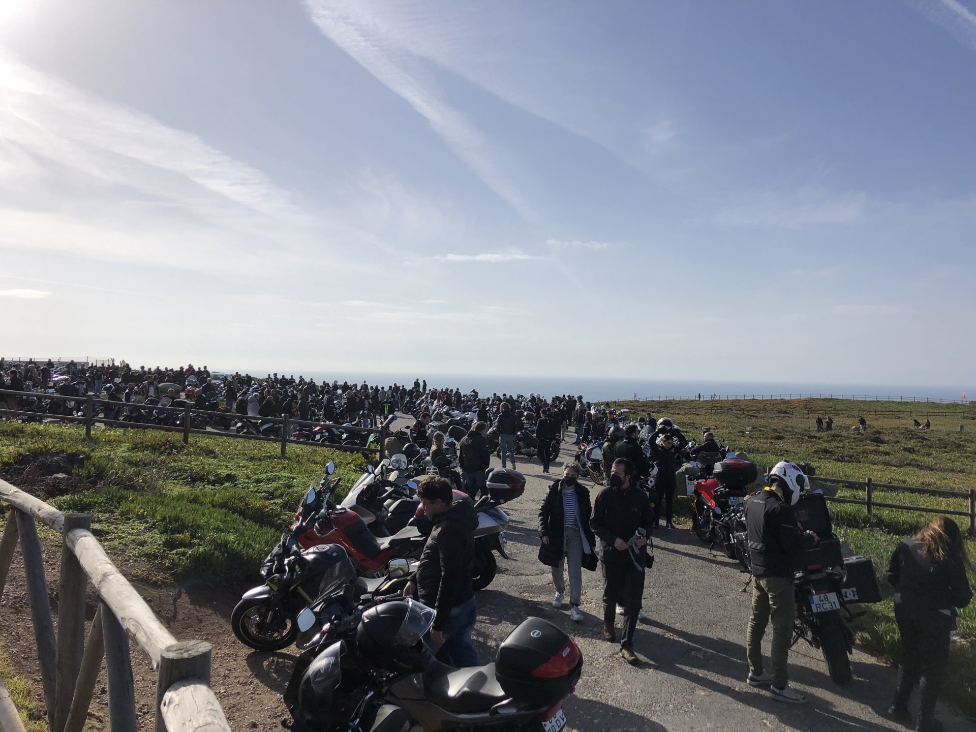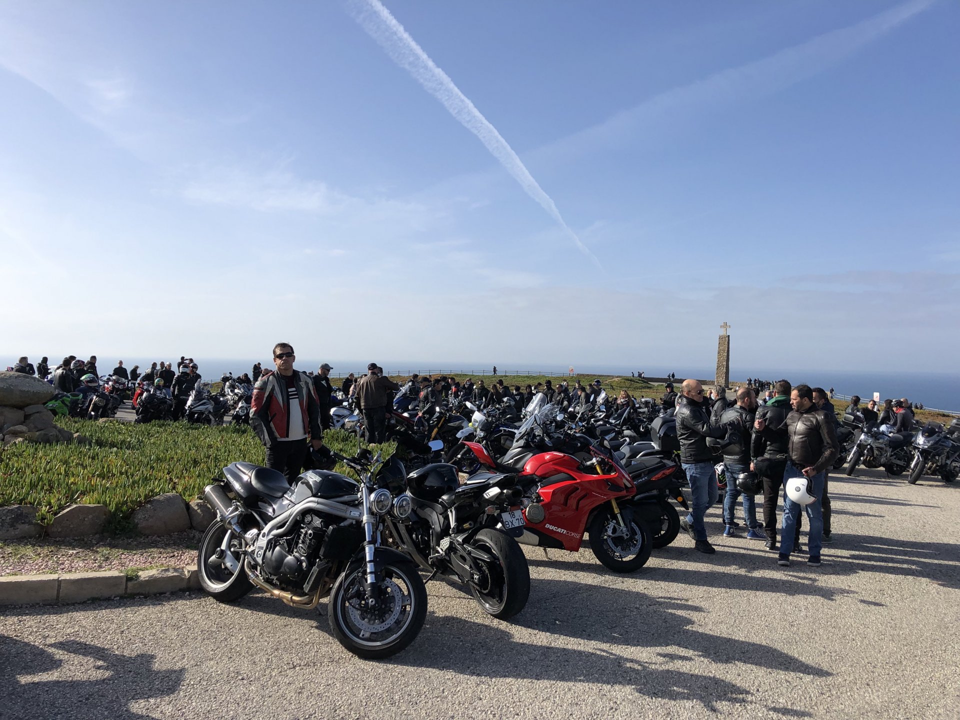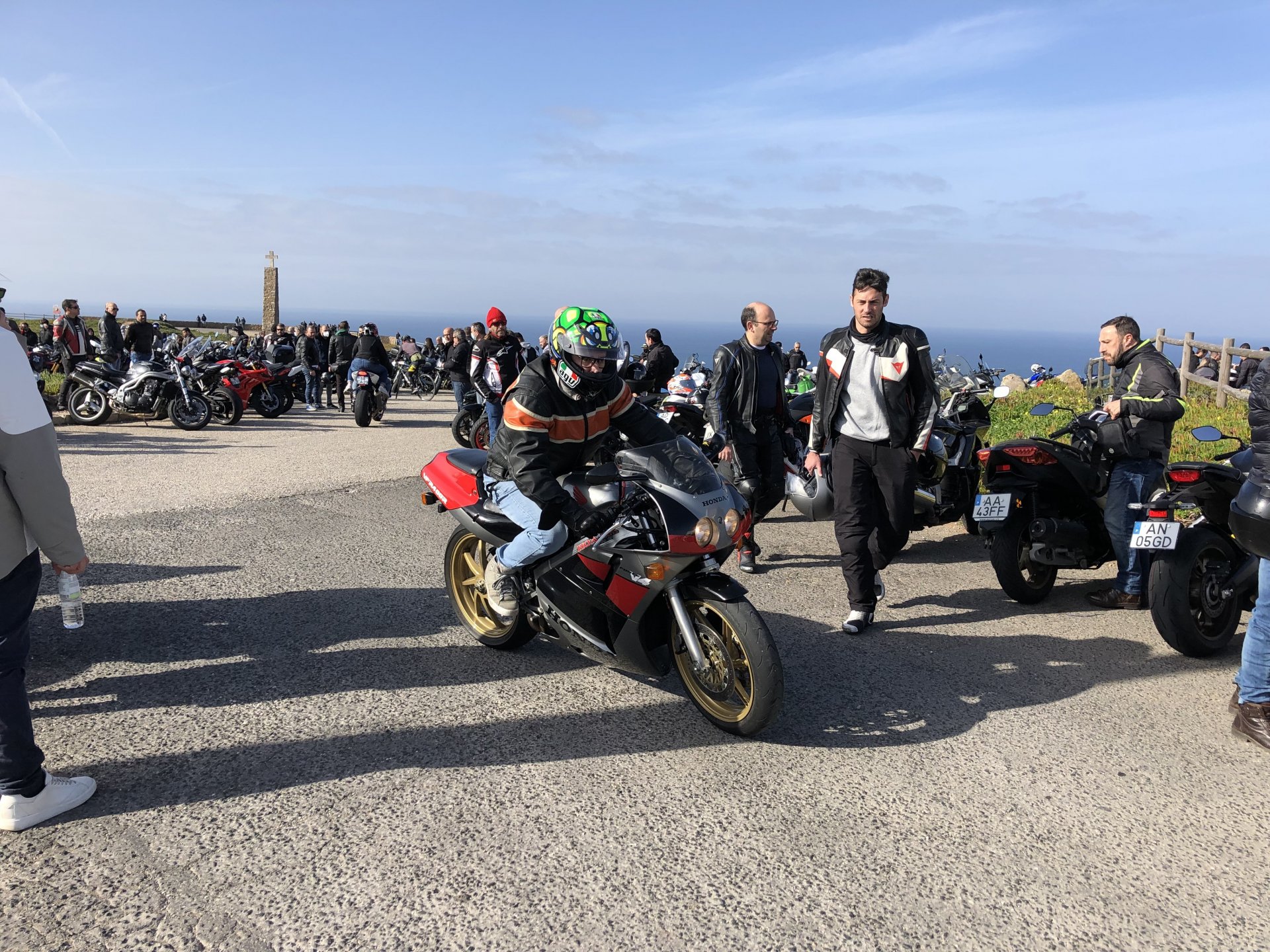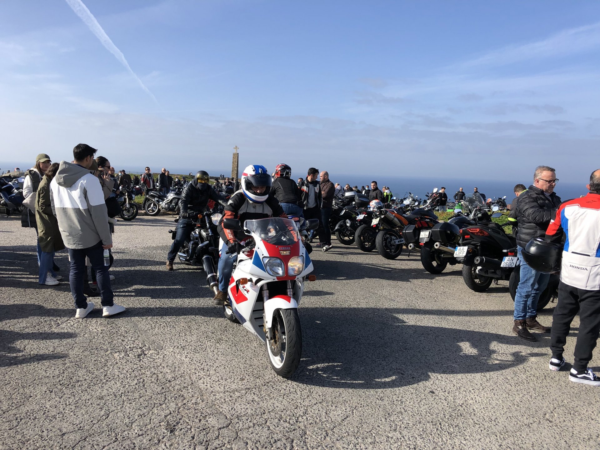 14. Today the morning was bright and sunny, even though a little chilly at about 8 or 10° at breakfast. I had been to the Cabo da Roca a few times before but never on a Sunday, and felt like checking the place out, it’s a very pretty area and the roads leading up to it from Lisbon are twisty with great surface, so it’s one of two places the hordes of bikers from Lisbon flock to, I made my way from Ericeira to check it out, with a plan to explore a couple of places out of the busy “biker’s road”. It’s only a short 45 minute ride from Ericeira but I decided to make it last longer, from the praia da Adraga I spotted a couple of look out points on google maps and the dirt roads were good enough to show up on maps so I went to check it out. A couple of photo stops for you guys: Quite the drop, with an almost straight rock face to the water, which looked amazing today: As always, rocks look like nothing and inclines look flat once you step off the bike and take a picture. in the distance, you can see the lighthouse building in Cabo da Roca: Getting off the cliffs, which I’m not sure was exactly legal, there’s a couple of kms of nice dirtroads up to the cape: Quiet road but if you look up to where the tarmac road passes you’ll see plenty of bikes: The actual road on the cape is a very pretty place, and an amazing place to gather if you’re into crowds: Parked right next to the lighthouse since lighthouses are for some reason my favourite buildings, and walked down to the crowd of bikes: Now I’ll show you a few pictures of portuguese motorcycling, quite diverse and something for anyone, away from the common GS of which there were only a couple: A lightweight Silverdream for the lightweight freaks: Oldschool YZF is such a pretty sportsbike: NC30, classy: Easy rider himself, styling it up with his eight ball helmet: One of Portugal’s more liked current bikes, Honda is a cult brand here and the old 750 Africa Twins were loved, as soon as they released the 1000 it was an instant hit: Oldschool Speed Triple near some italian bling: Some spots it felt like going back 20 years: For @Buckster, complete with rolled up picnic blanket for complete cowboy styles, pretty bike though: For @Catteeclan: Young girl arriving in a clean pink DT50LC, oldschool cool: was going to take a picture of the class act that is a red 1200GS when someone rode past in a new Norden: Always some twat that insists on squeezing past rows of bikes in a car, there’s a car park 50 meters behind there, who still insists on taking a van? Uploads are now failing, and I’m doing this on my phone so will post just a couple more pics in a bit