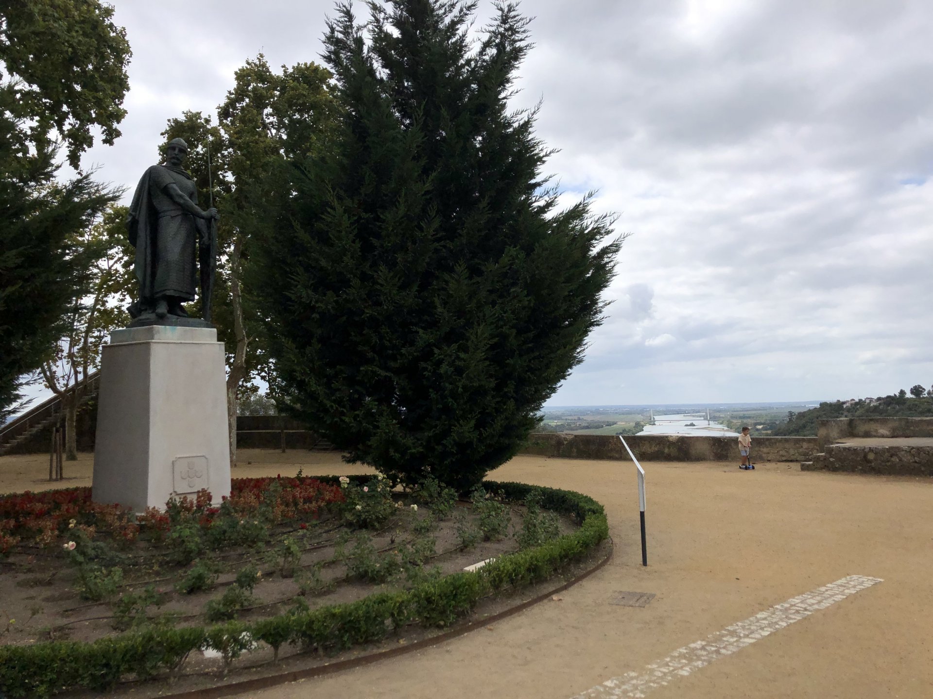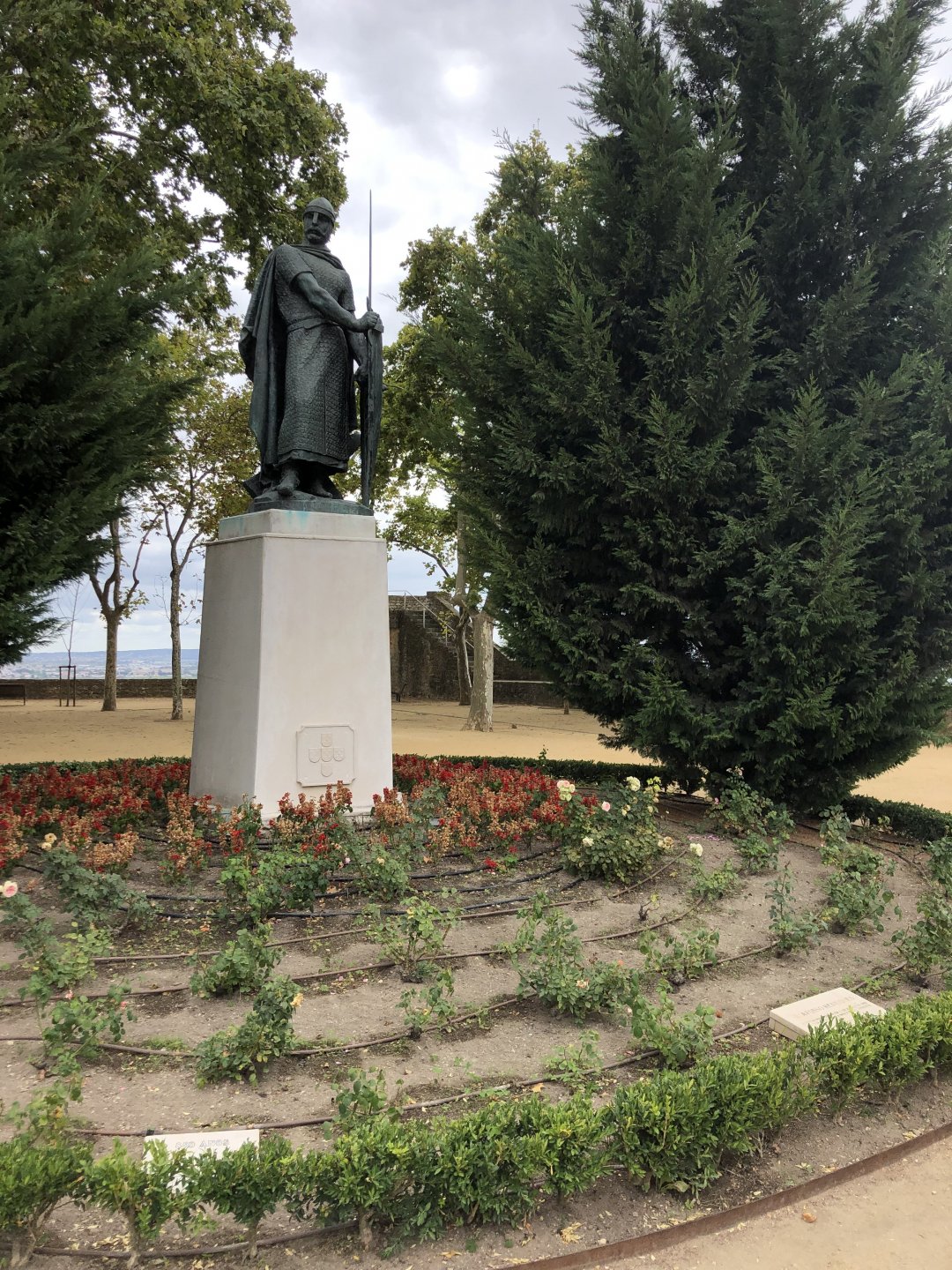 Morning coffee next to a statue of D.Afonso Henriques, Portugal'l first king who conquered these lands and further south from the Moors.