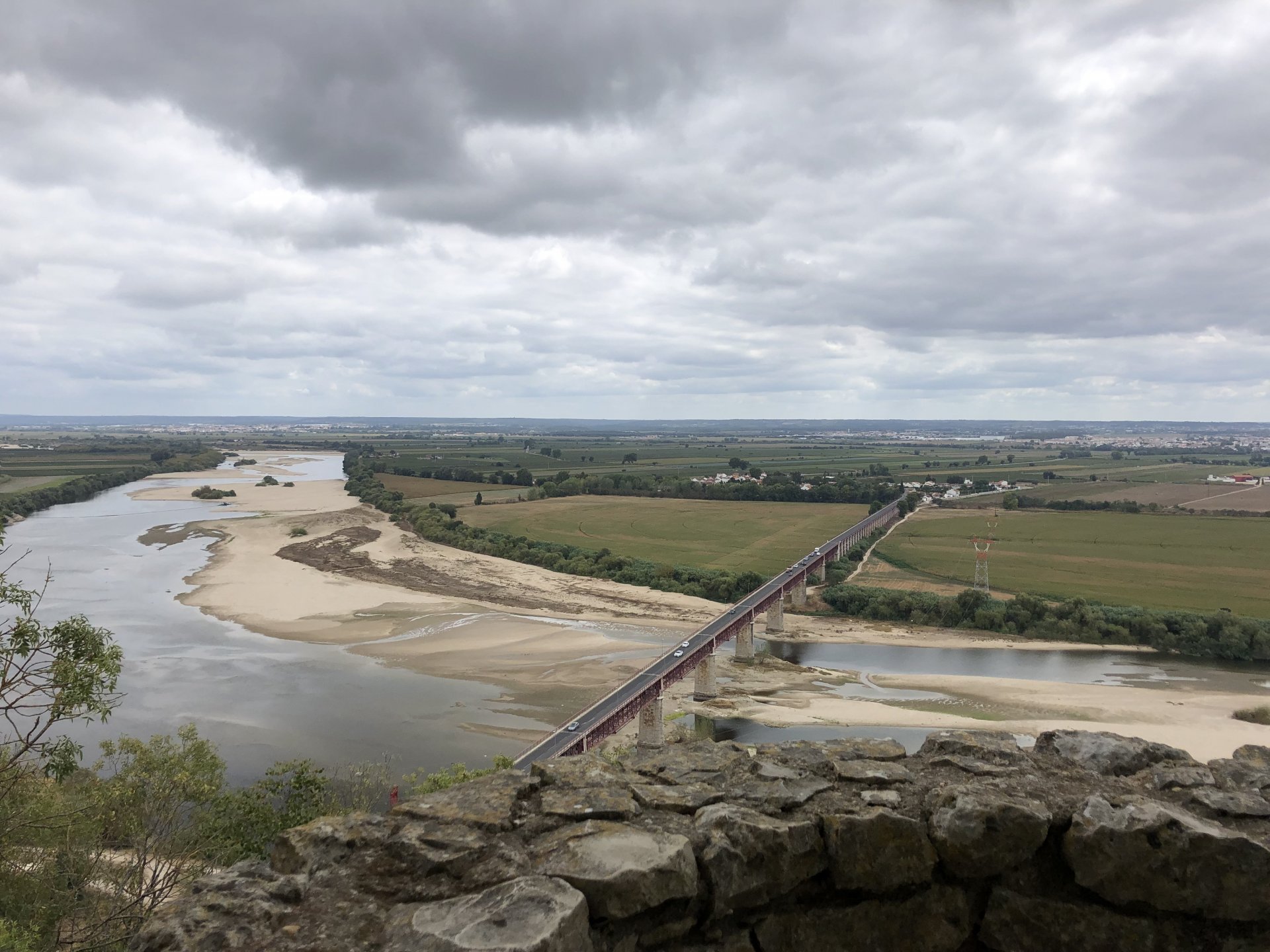 First day, a day ride near my home, left mid morning and came back mid afternoon, only about a 100km roundtrip. First stop was in Santarem, for a coffee at the "Portas do Sol" (Gates to the Sun) old fortification walls overlooking the Tejo river and the Leziria.