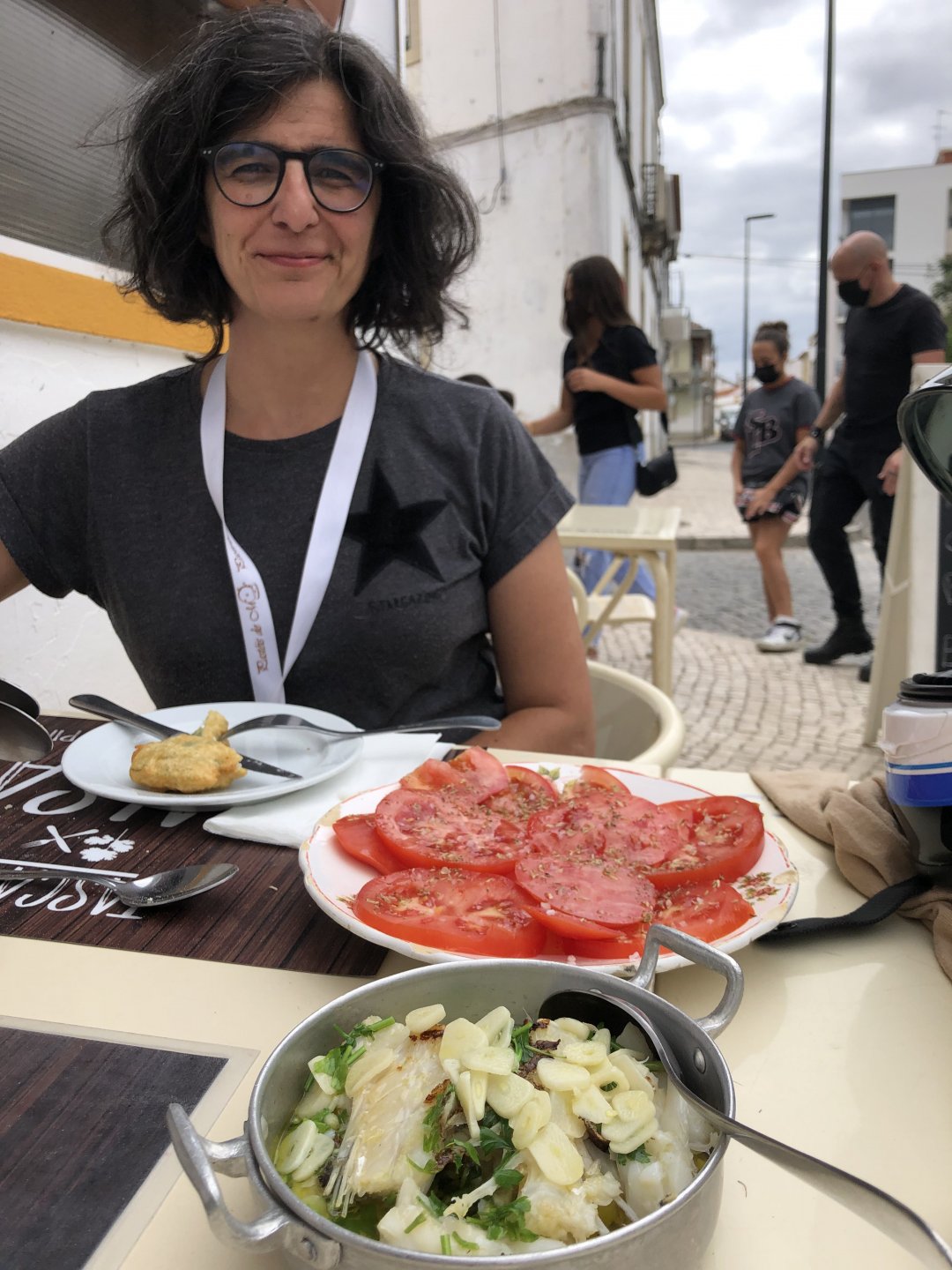 Lunch was mainly coal grilled codfish with garlic and olive oil, and a tomato salad. It was quite great.