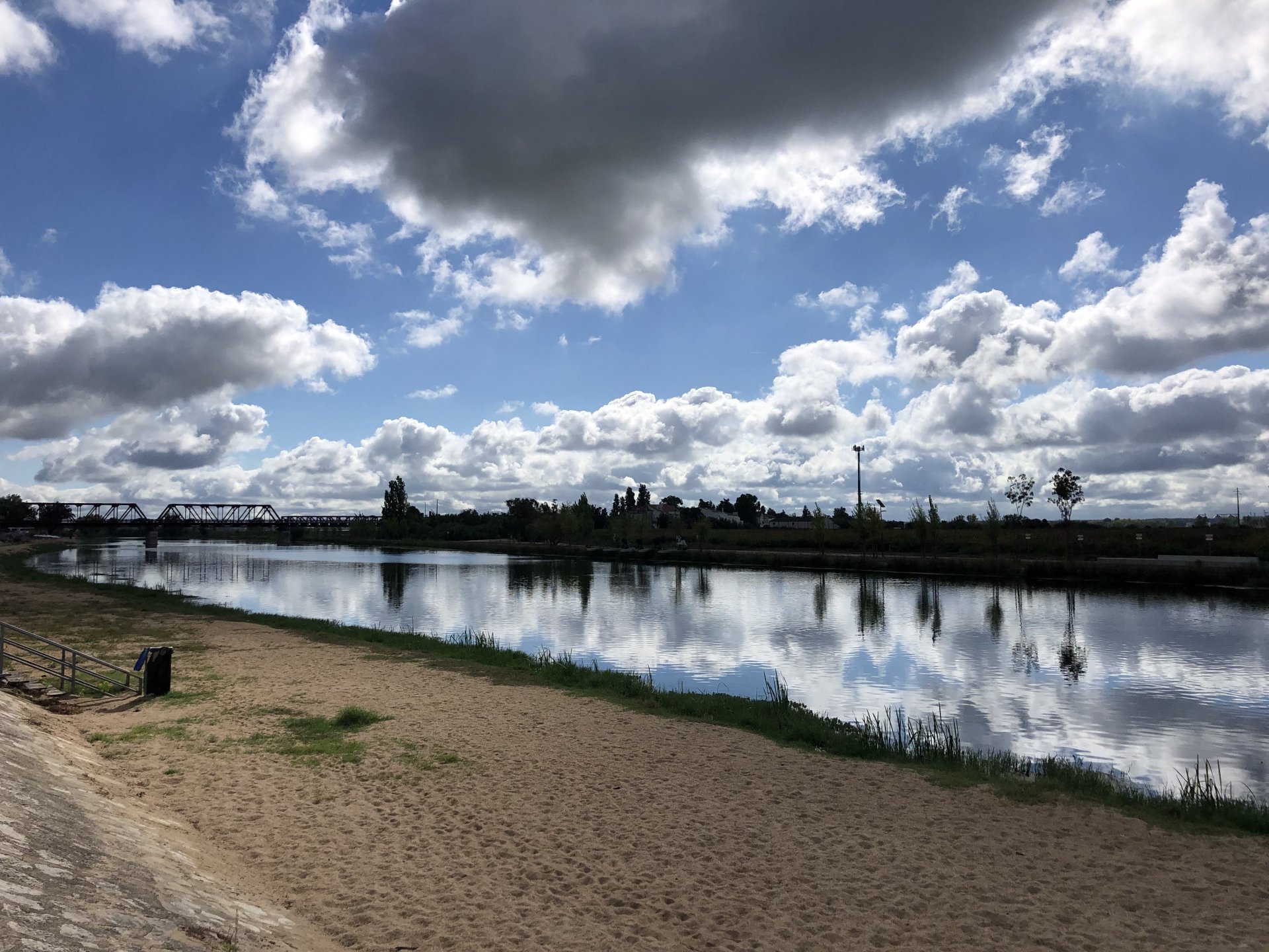 And onwards, we stopped for a few phone calls and while Sofia was busy I took a few pictures of the riverside in Coruche. We had amazing skies that day, and plenty warm enough.