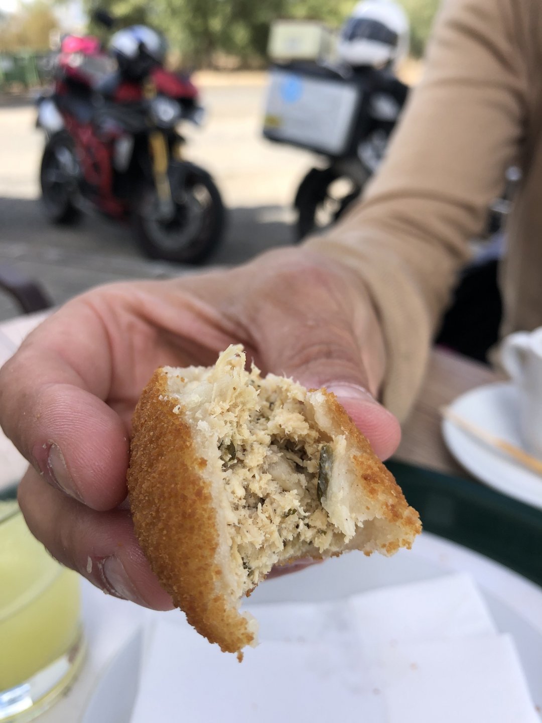 Carrying on inland, casually cruising on a national road I spotted a secret spot that makes the best "Empadas" ever, which is some sort of small pastry usually filled with chicken. Sofia is a fan and I made an emergency exit to go have some along with coffee for breakfast. The lady that makes the famous pastries was on holiday so no Empadas, instead a delicious sort of Rissol complemented the expresso perfectly. Took these pictures to remember where the place is, I stopped by once with Maria and never can remember where it is except when passing by chance, now I now.