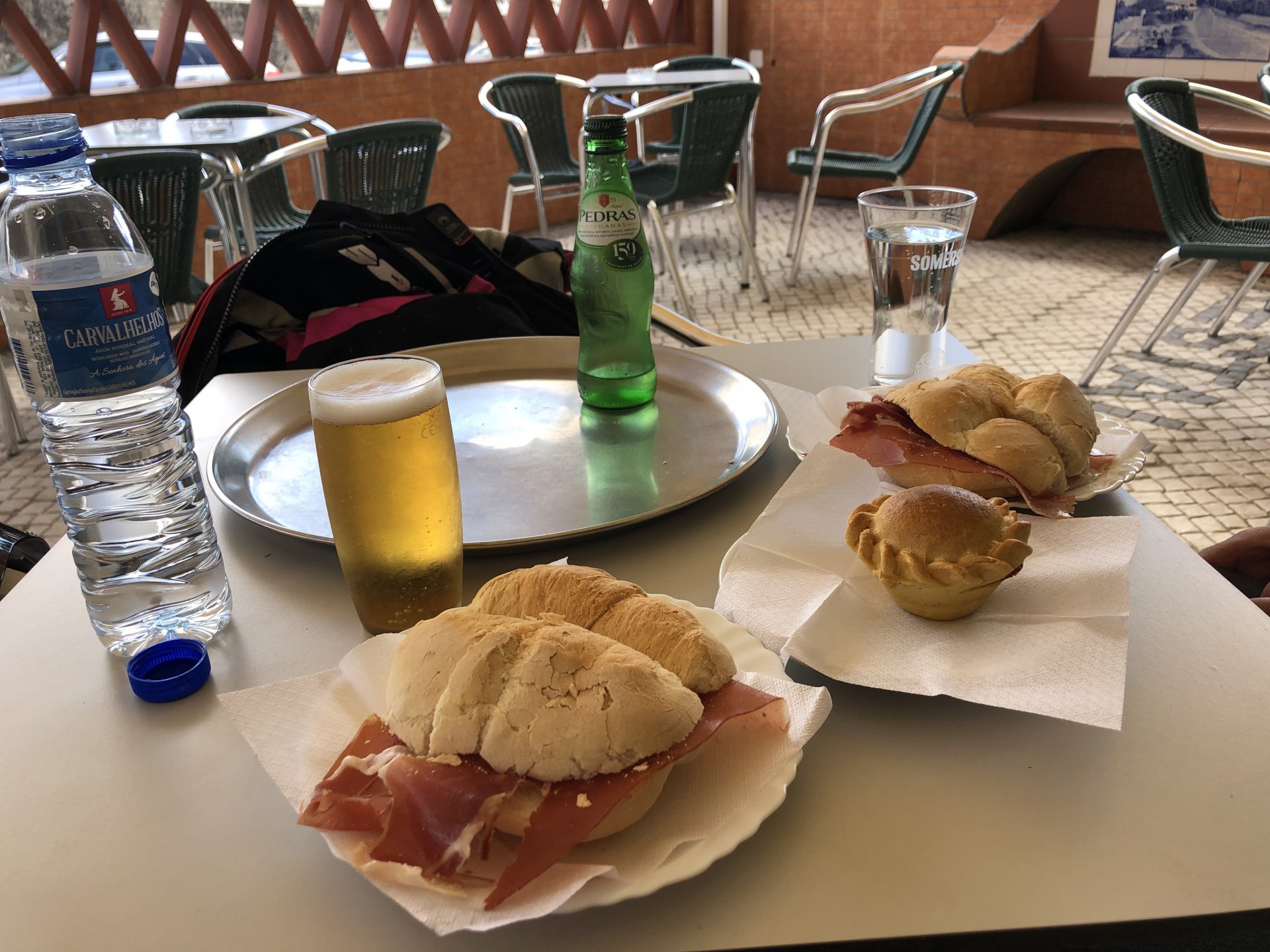 Stopping for lunch at the small town of Fronteira, we sheltered from the heat under some shade outside a cafe/restaurant and had some ham sandwiches and an "empada"