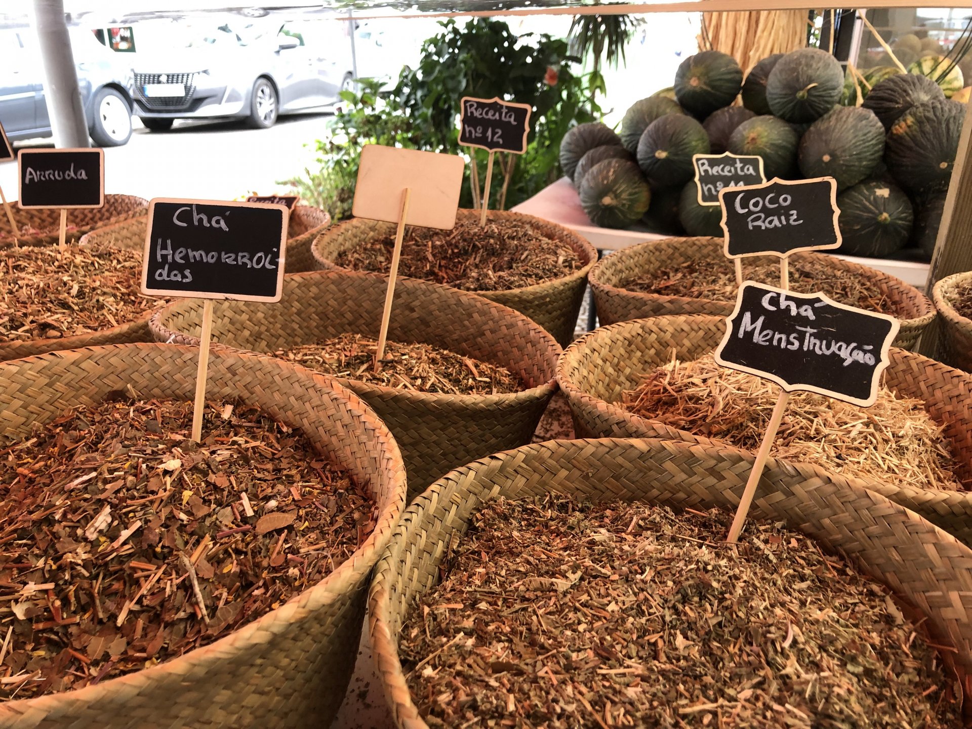 Translation to the two teas closer to the camera: "Tea for Hemorrhoids" and "Tea for Menstruation"