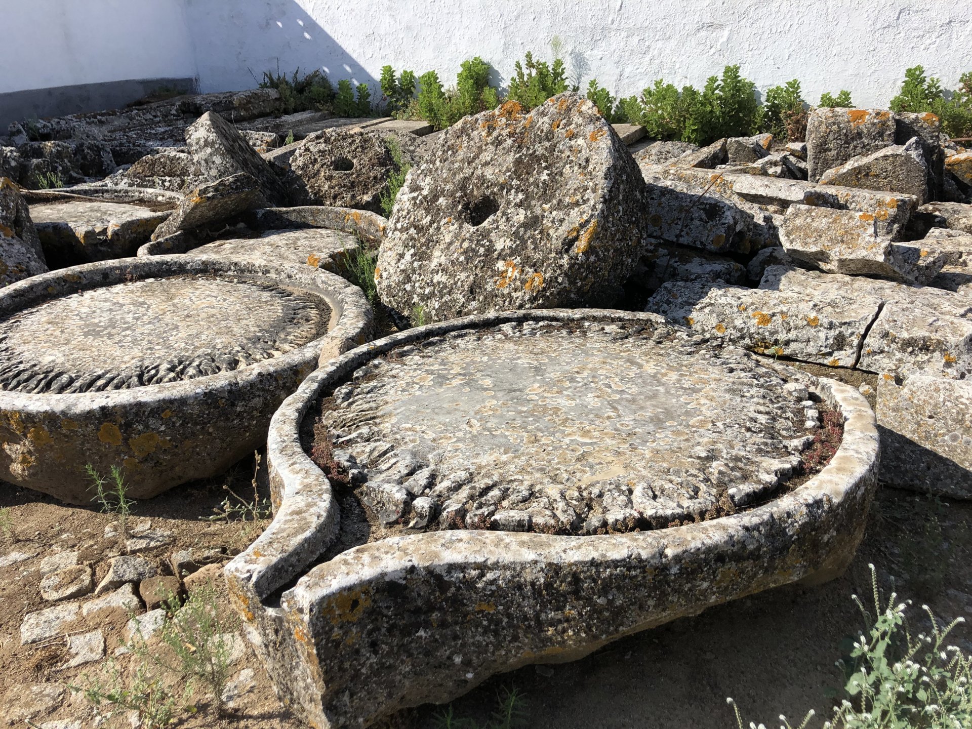 After a really great hotel stay, we headed off on a cool Alentejo morning, first stop was on a Roman bridge, the bridge over the Ribeira de Odivelas was firstly built in the first century, with future add ons on the V and XI, it's currently 120 meters long and still open to traffic. It used to be over 5 meters tall but has been slightly buried and currently little water goes under it. I suppose they might be waiting for the Romans to come back and fix it up again instead of getting on with it ...