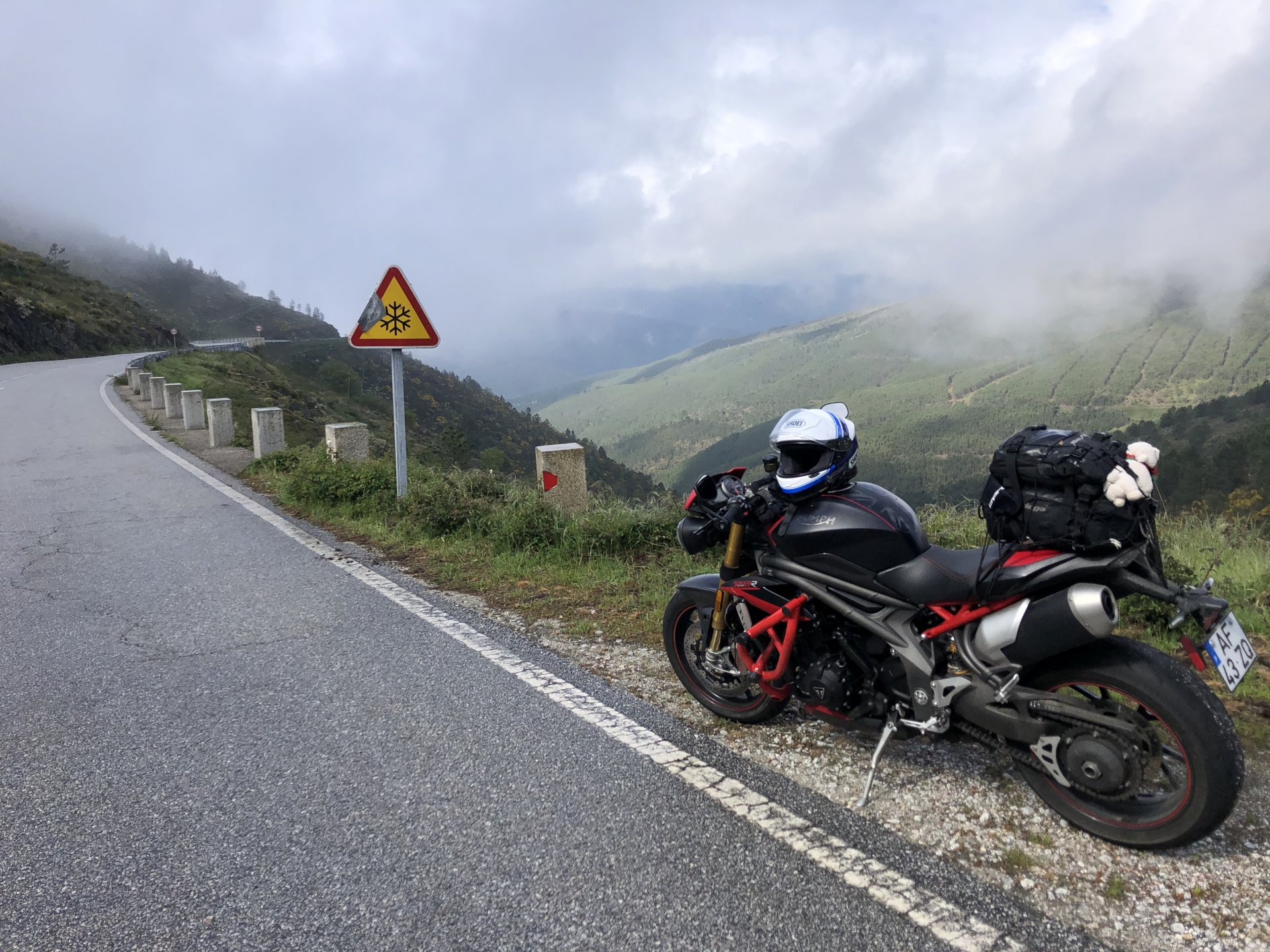 Today I drove to Galicia for a business meeting, and thought of taking a couple of pictures of a part of Spain completely different than what appears on reports from our members living in Southern drier Spain: Spain in the distance Driving from Orense to Lugo and back: On top of the road you see on the previous picture, from where I took the picture, I found a memorial saying "in memory of deceased bikers", the previous part is harder to translate as it means "a breath to the sky", or something like a blast to the sky, or to the heavens. There, a drive report