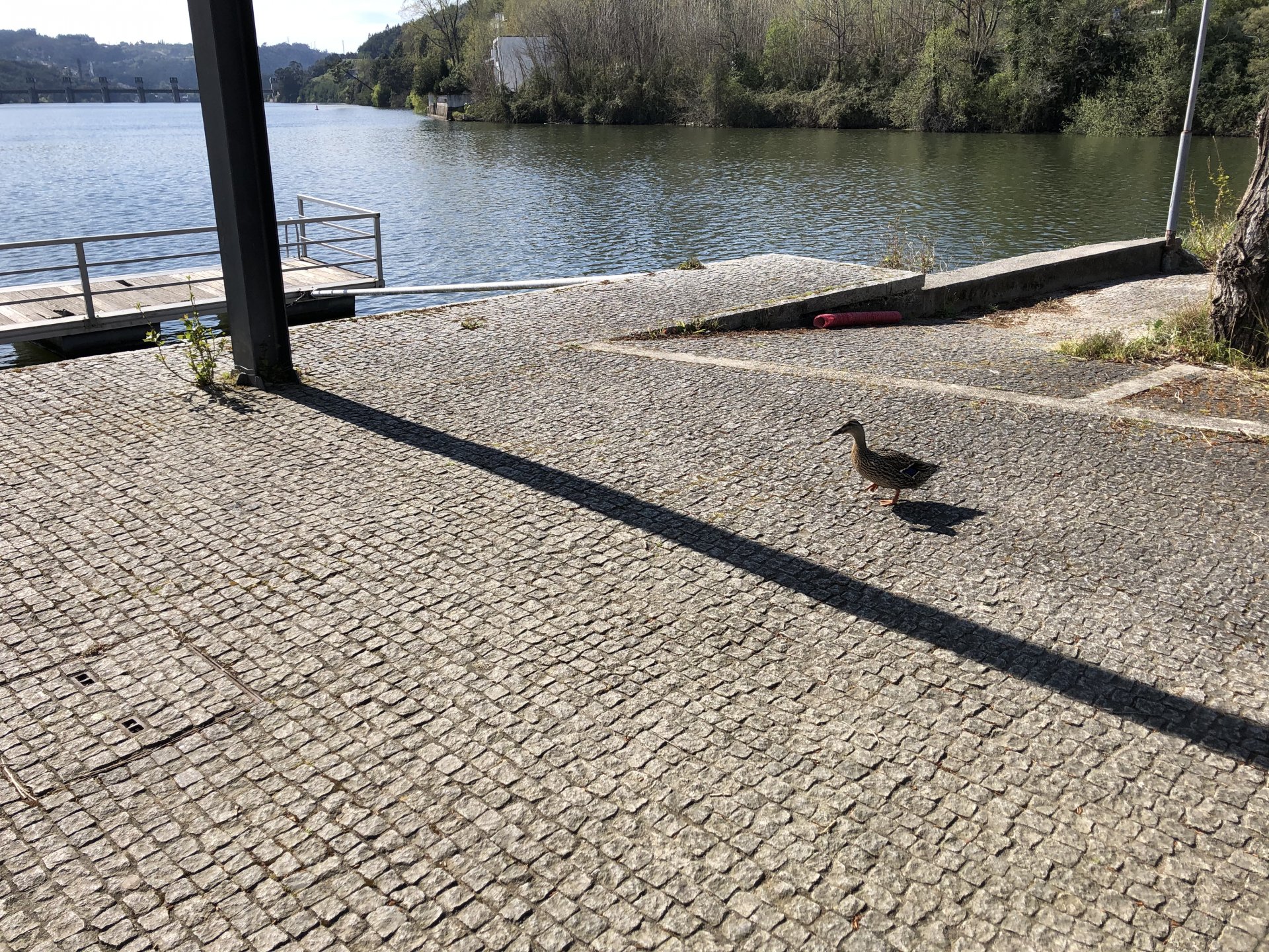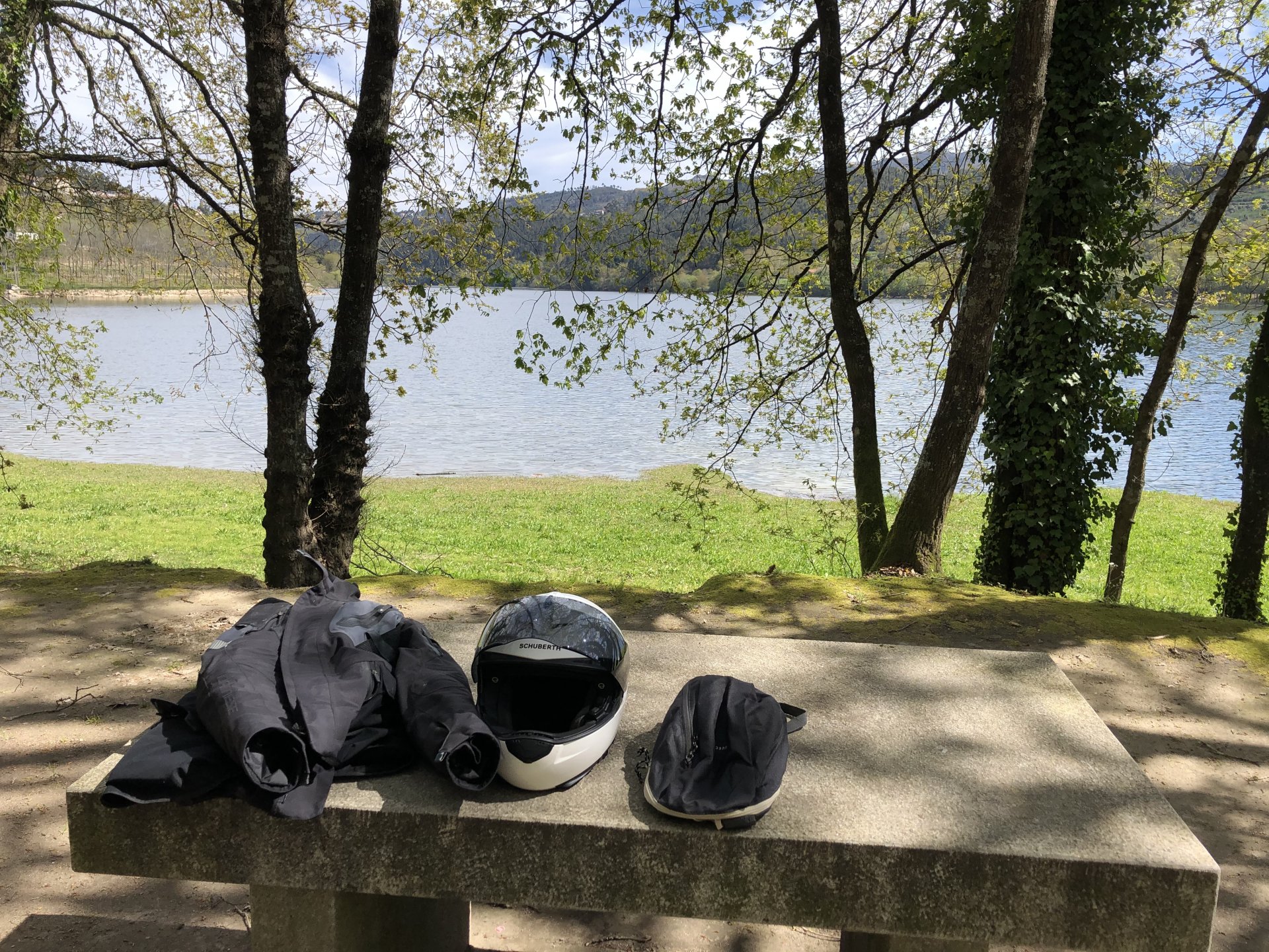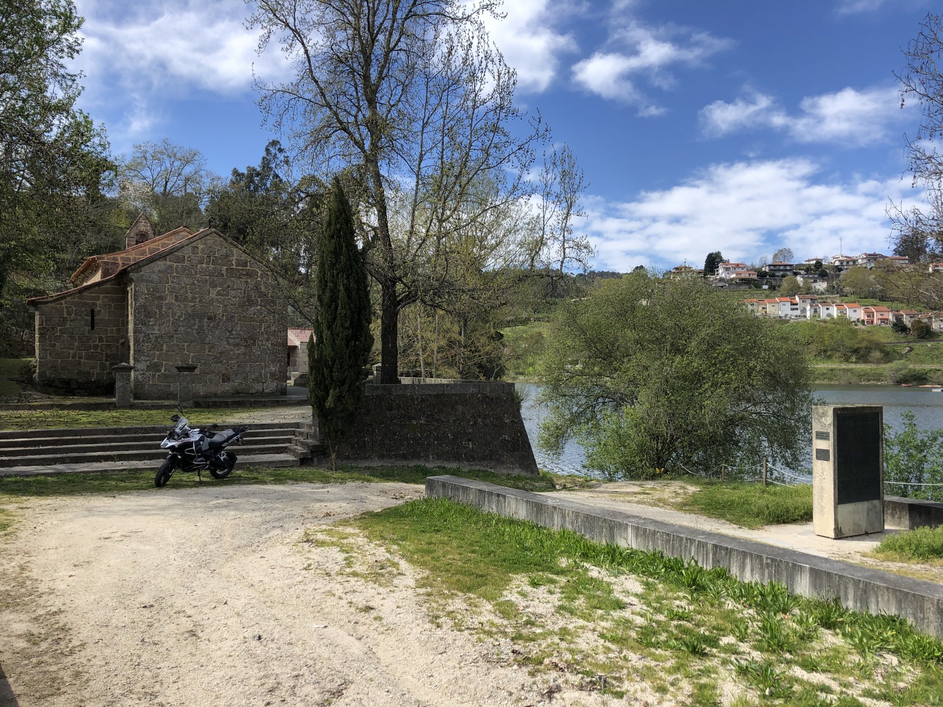 The Tamega River flows from it's origin in Galicia through Portugal in Chaves to end up in the Douro River about 40km from Porto. Having made the trip up the Douro a few times, and having had a few coffees in Entre os Rios ("Between the Rivers"), I have never been to the Tamega near where it joins the Douro, so today I did. This ride only covers the last 30 or so km before the Tamega ends. Work was pestering me so left a little later than I wanted, and very annoyed so didn't feel like taking the gopro nor stopping for pictures a lot. Honestly I don't think you missed out on much, it was pretty uninspiring. It was amazing weather to be riding, a few lovely spots to stop, but overall pretty uninspiring roads. First stop, to answer a work call that tried hard to ruin my day. Stopped on a dam access road with a nice view. After a little more I started looking for a place to have my light lunch, and found the perfect location. When I planned on going for a ride today, I wanted to stop someplace with a majestic view and mountains, it wasn't to be but I loved this: Before I ate I had another call, which sort of put me in a better mood and helped my spirits, I enjoyed lunch better that way. Birds singing, great weather to ride, could have been better with a nicer sandwich but you can't have everything. I was really missing having a nice expresso after lunch, but cafes are still closed, and the places serving takeaway I spotted open weren't inviting enough to risk contact with the people outside. So braved on without my expresso. A few kms further on I was riding on a quite bad old cobblestone road and decided it was a nice chance to adjust my suspension a little, so stopped in front of this great old farm house to do it. It reads: They did not pass! To the brave defenders of the old romanic bridge, who under the command of Captain António Serpa Pinto, of Soalhães and Canaveses (a local), managed to heroically hold back the charge of the french invaders on the 31th of March and 01st of April 1809, saving the populace of the Douro from the curses of war. Signed: the peoples of the region A little closer to home stopped by a cafe by the Douro with just one person outside to see if they were serving my expresso, but had no luck. As I was hanging up the phone a duck came to say hello. From there, a quick 15 or 20km on the motorway and I'm home. Funny thing that shows how different fuel mileage on my bike is when riding on small roads and motorways. Last ride was a 300km motorway ride with the sidecases at 130 to 140 average. Fuelled up just a little before arriving home, and today the autonomy indicated 400km as I was leaving home with an almost full to the brim tank. At around 75km into this ride it was showing 525km, and now 150 into the tank it's back at 400km