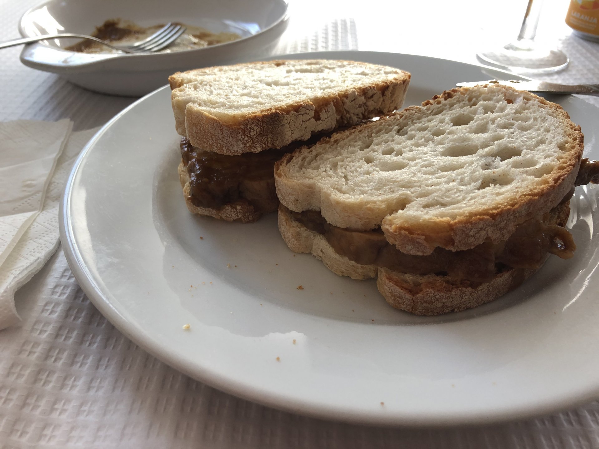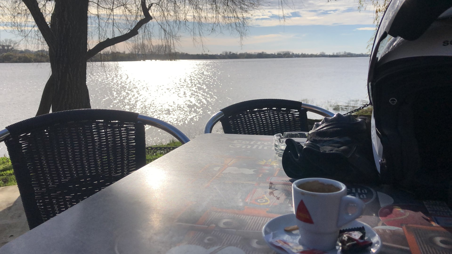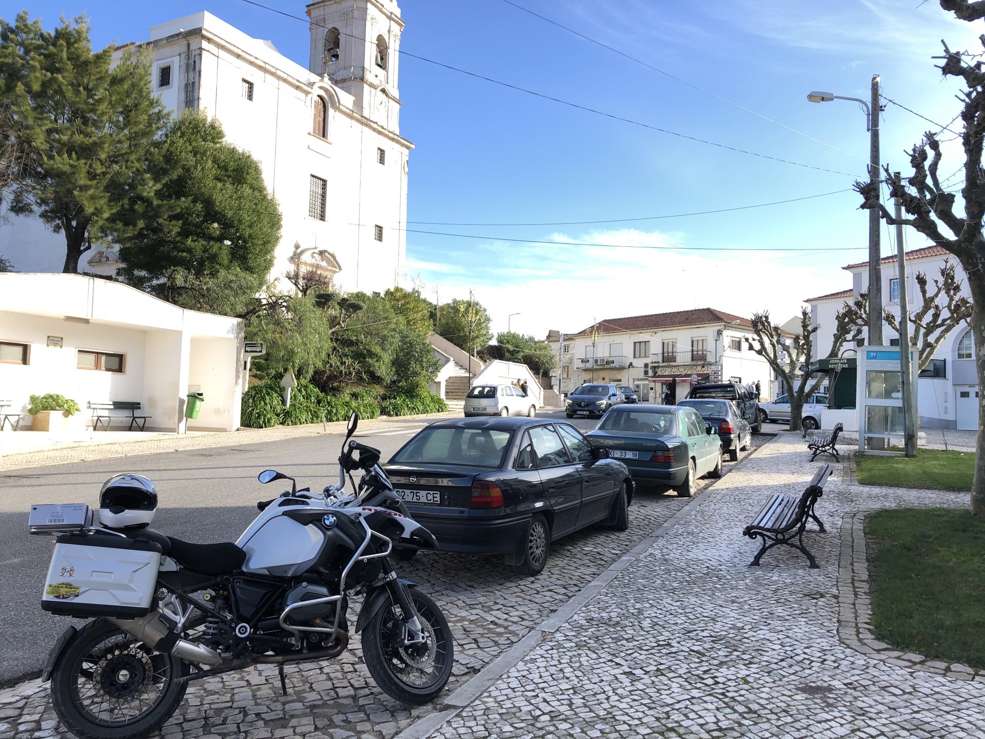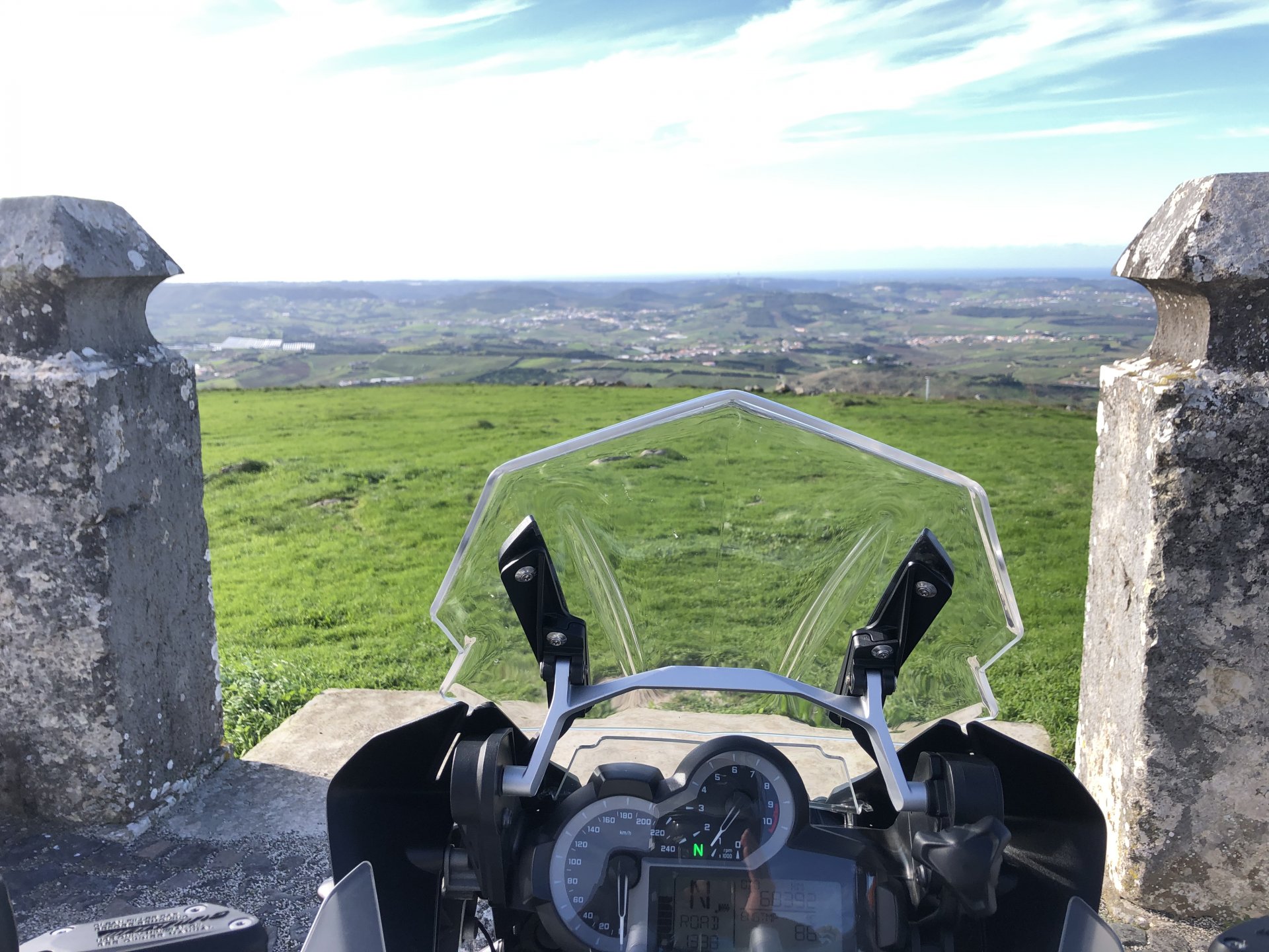 So, weather today was pretty cool, I rode from home to Ericeira to meet Sofia for an officially non christmas christmas dinner tonight, and took the chance to test a different position on the GoPro. Weather varied from a 6ºC minimum on the hills to a 12ºC on most of the trip, pretty sunny so I was very comfortable on my woolen socks and new boots First stop was by the Tejo river for a coffee on my favourite spot near home Rode up and over my favourite hill, all my ideal lunch spots were closed. They would normally only be open for lunch on weekends, but being the 24th December I thought I'd catch a break, I didn't. Stopped by a local wine producer's shop and bought a couple, or three, nice bottles of wine, a white "Alvarinho", a red "Syrah", and a red reserve with a three cast mix of Syrah, Cabernet Sauvignon and Touring Nacional. If you're going to pack something where a top case would go, might as well be wine. On the previous picture you also see the GoPro on top of the side case, position is nice but the angle is a little off, not too happy with how it turned out. Also filmed with a low and forward angle, in front of the engine head with a view to the front wheel, but hated that view. Will post a video later. Brief stop at an old monastery which is part of the Torres Lines, for a cockpit view picture. A brief stop on a short dirt road through Lisbon's wine country, pretty awesome weather today, it'd be freezing had it been cloudy. Was pretty hungry by 14:00, stopped at a small town for something warm to eat. Lunch had already been finished at this small cafe, so I ate the last remaining slices of pork roast with a little gravy as a sandwich. It was pretty unassuming, but tasted great and as the meat was hot it was very comforting. No more pictures, this was about 30 minutes before making it to Ericeira, it was a pretty cool ride. Rode without any agressiveness or sporty handling, just a nice winter cruise on top of the bike. Video won't come out today, I think, am too disappointed with the pictures to feel like editing right now.