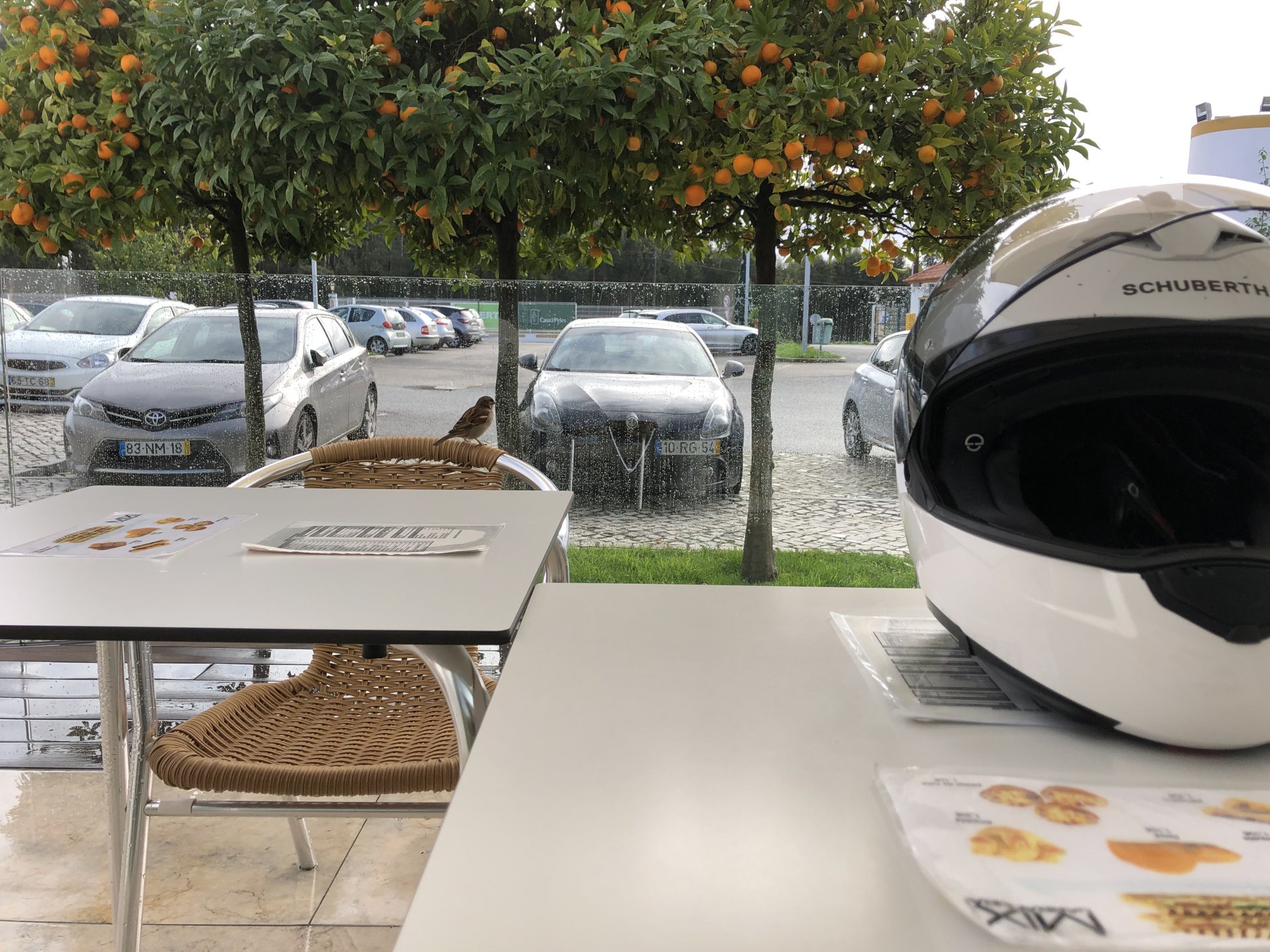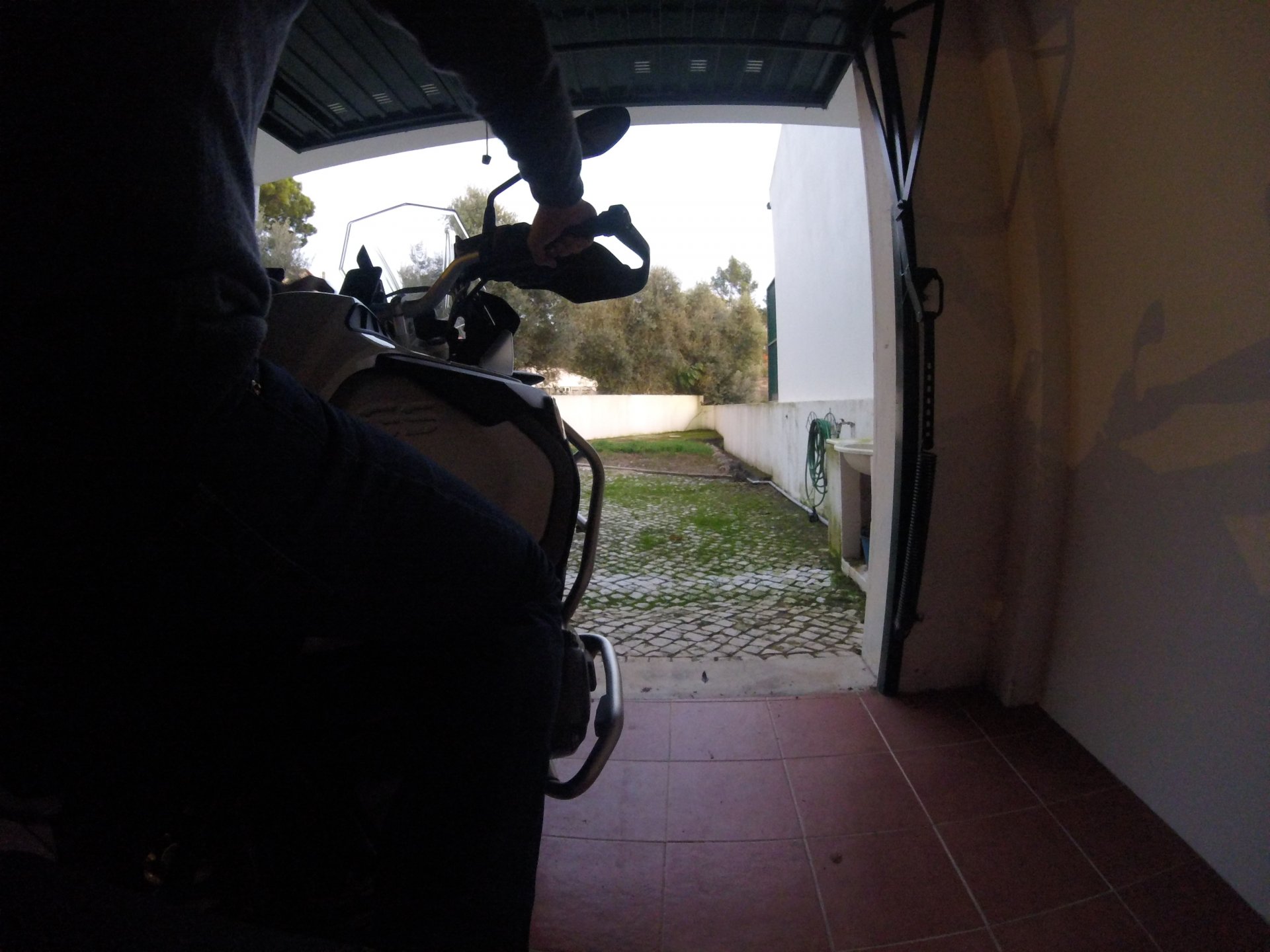 So today I rode home, from home. Wasn't too cold even though it was pretty cold between 12 and 14º for most of the trip, with hardly any direct sunshine, I know most of you think that's almost too warm to ride in but I'm designed for a different climate Only got a few minutes of rain, but arrived pretty dry, my jacket bought last spring works great in the rain. My jeans are still jeans, though Arrived for a short lived ray of sunshine while I had a deserved coffee in the company of a sparrow. Rode for 250km and only say another bike, that's not common for Portugal on a saturday. Had lunch with my neighbors, who are the only two other people I have met socially in a month, and enjoyed a piece of codfish and plenty of chilled rose, like you do. Then, afternoon, just fixed a couple of GoPro supports on my bike, one on the sidecase which I think works quite well: And another for tomorrow morning's ride, attached to the rear luggage rail, I think it looks quite nice too, no?