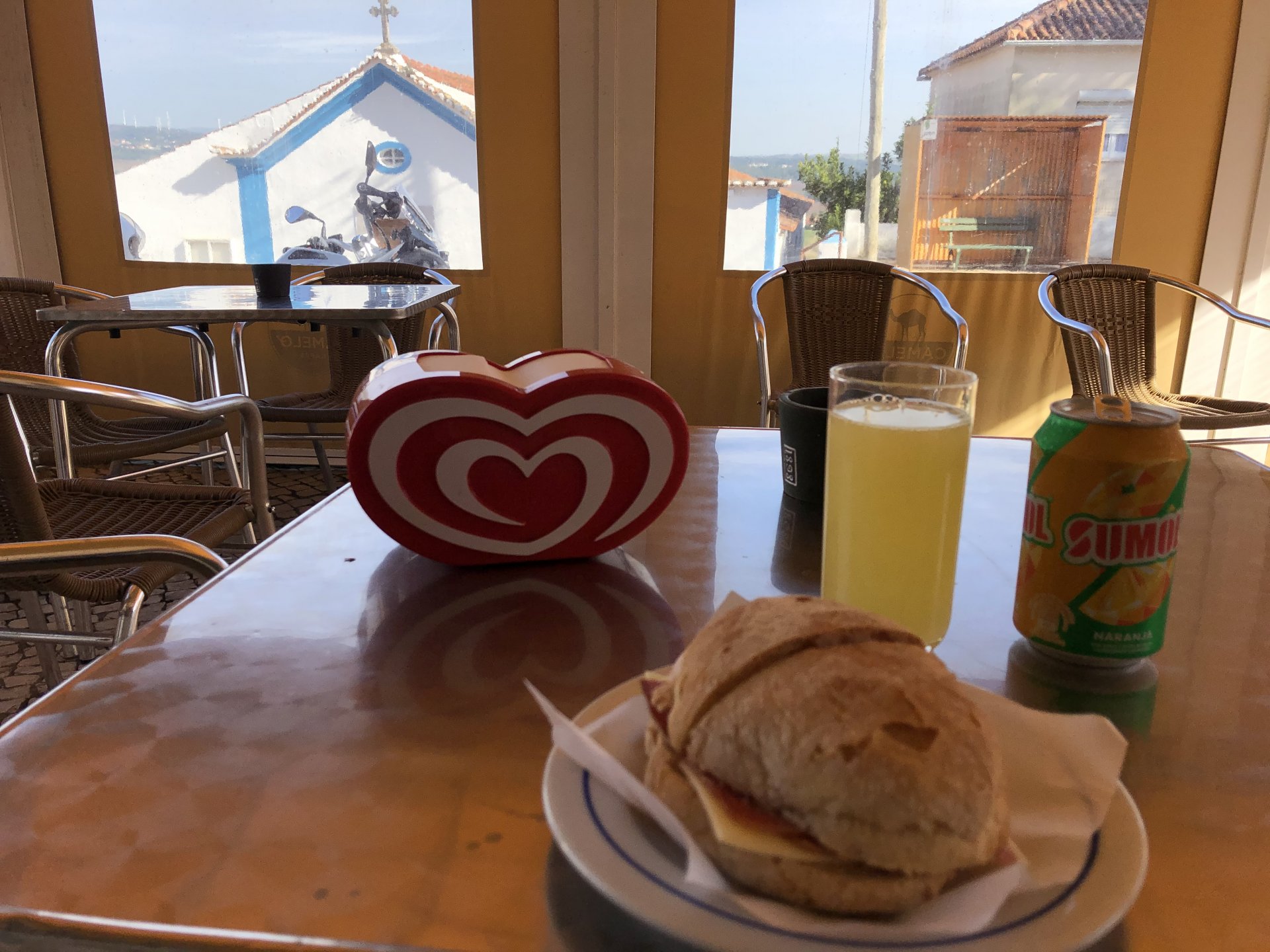 Rode from home to the seaside today, this is a cool enough area considering it’s a stone’s throw away from Lisbon and some areas which aren’t so cool. It’s also near Ericeira which is a world surf reserve. Lunch was had at a small countryside cafe, no other clients when I arrived, was even left alone taking care of the place It’s a shame we are in winter time, weather is too good for night to arrive so early. After lunch I noticed a sign to some fortification ruins and went to check them out, following some wind farm service roads. Really like these kinds of roads, am eager to go back to some better tires though. Sign doesn’t say when it was built, it was around 1810 to defend against France and Napoleon with help from the Brits. No walls to be seen though, but it was cool to be there anyway. Half an our later through small back roads and arrived at the seaside Nice ride, today, am posting this from @Sofia’s waiting room while being used as a pillow at the same time ?