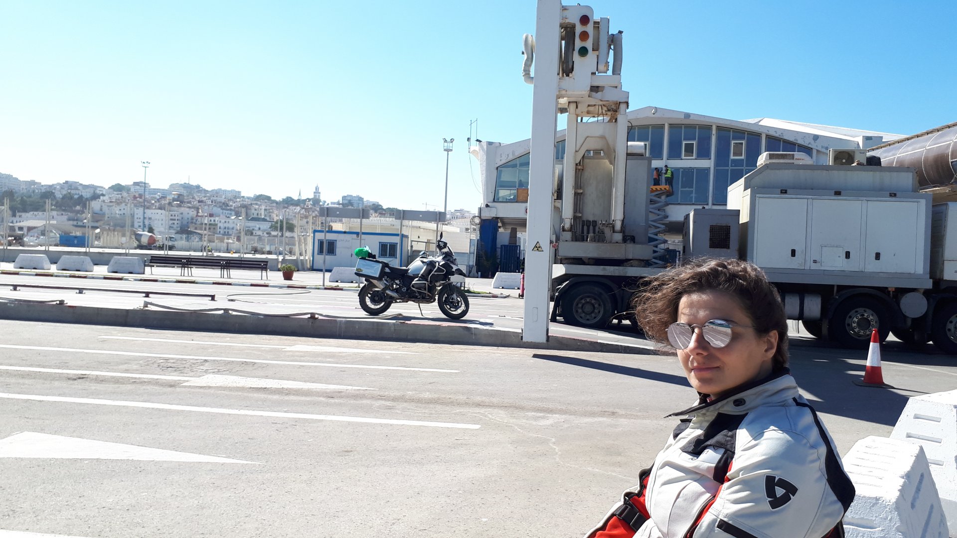 Leaving Fes was uneventful, cool enough in the morning, easy traffic, and we just comfortably made our way towards Tangier via good easy roads A stork's nest is a very good use of a minaret, although I don't know how much the storks appreciate their early morning calls to payer. Having bought a rug for our living room in Fes (I know, the cliché!), Maria was now enjoying a little backrest. We stopped in Tetouan for some light lunch. Tangier was about an hour away, or less, and our plan was to sleep there. At our arrival in Tangier, we are way ahead of schedule, so without even stopping we decide to head for the ferry and see how much the wait is for the following crossing. Turns out we waited for half and hour of 45 minutes, and boarded headed for Spain. It was windy and the Mediterranean was choppy. Maria looking cool while the GS waits to be checked by the X-ray machine. Although the catamarans making this cross are really competent boats, fast and smooth, I felt sick since the moment I sat down inside. Fortunately we were joined by another portuguese couple of were just returning for a few days as well, on a Honda NC750. I forgot their names, and forgot to take pictures as well, but fortunately I accomplished my goal of not throwing up halfway through the trip Getting off the boat in Spain was quick and easy, as always, you´re usually just waved by if you're European. I stop immediately after exiting the harbor, in search of a cafe with a nice firm chair for me to get my land legs back. It's still early, so we decide to ride to Faro and have a rest day there instead of splitting the trip between two days. Sunset was spent on the road, and we arrived at Faro well into the night, having enjoyed a night ride with temperatures as high as 30º through Sevilla. The next day we woke up late, and went to the beach, we did have, after all, a day or two to spare, so spent them wisely before going back home. This had just been my best trip ever, and I was sad it had come to an end. I will treasure these memories forever.