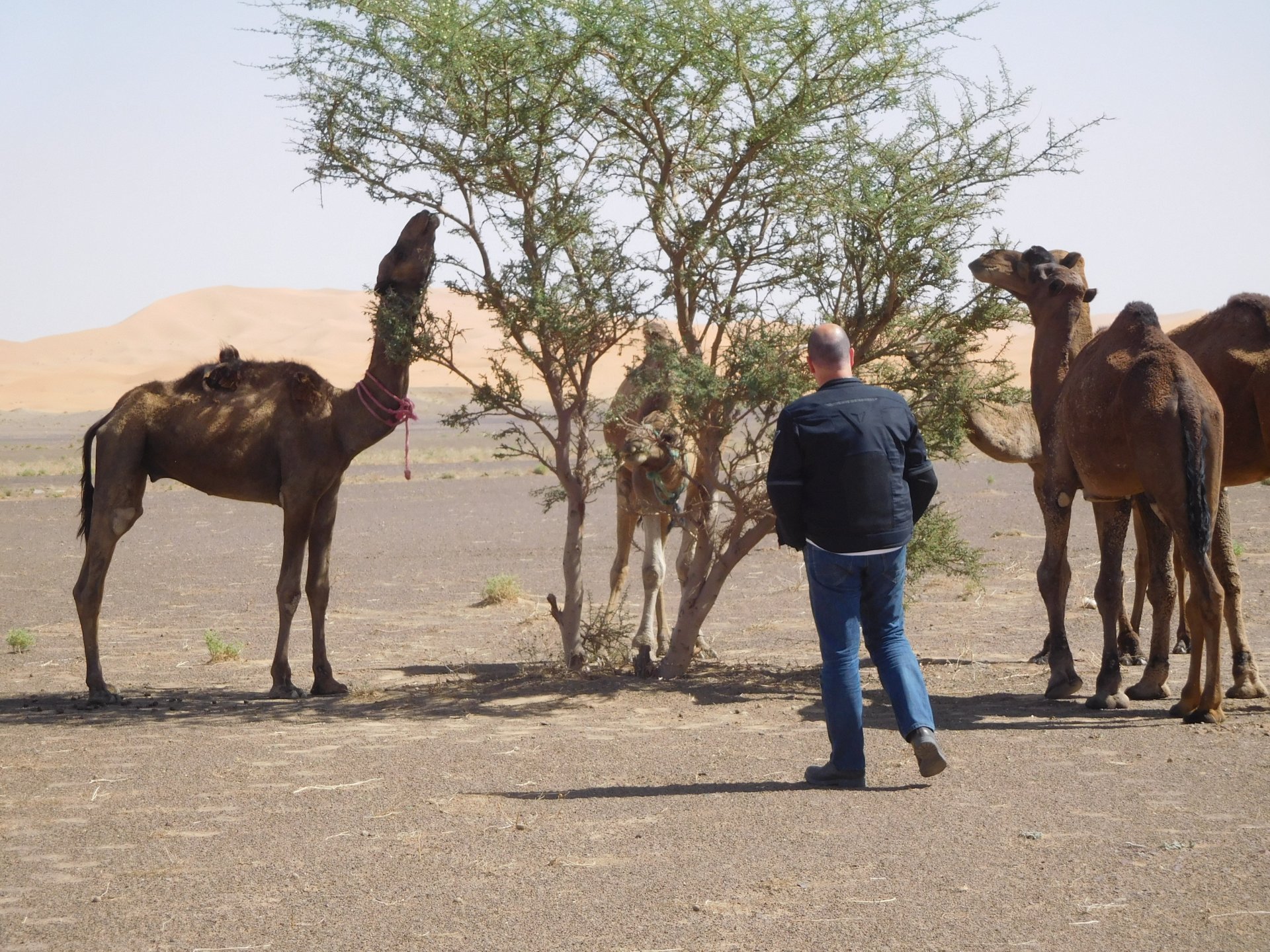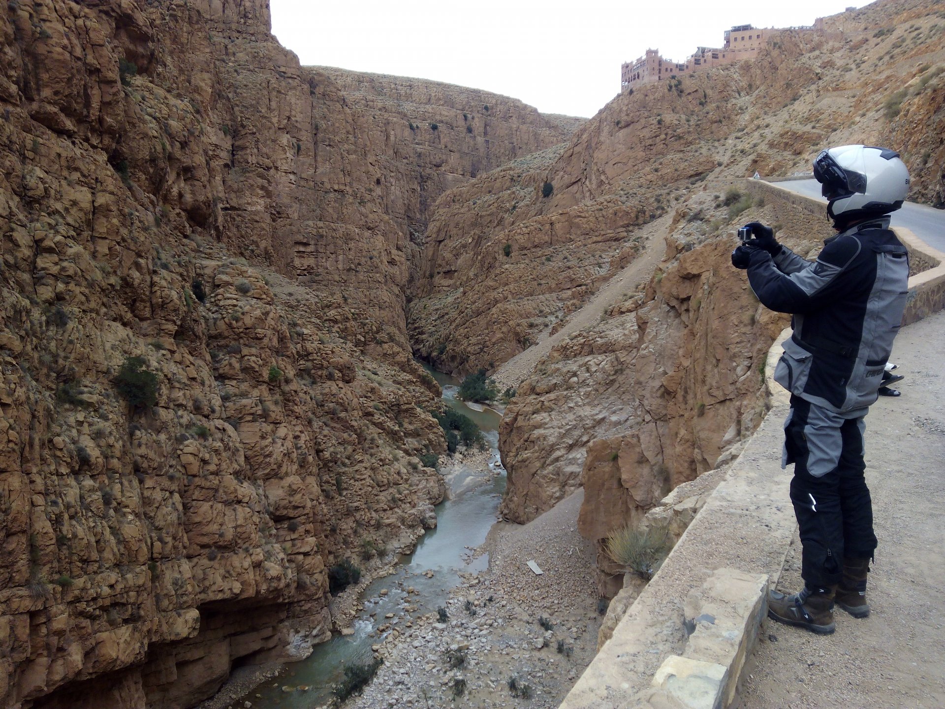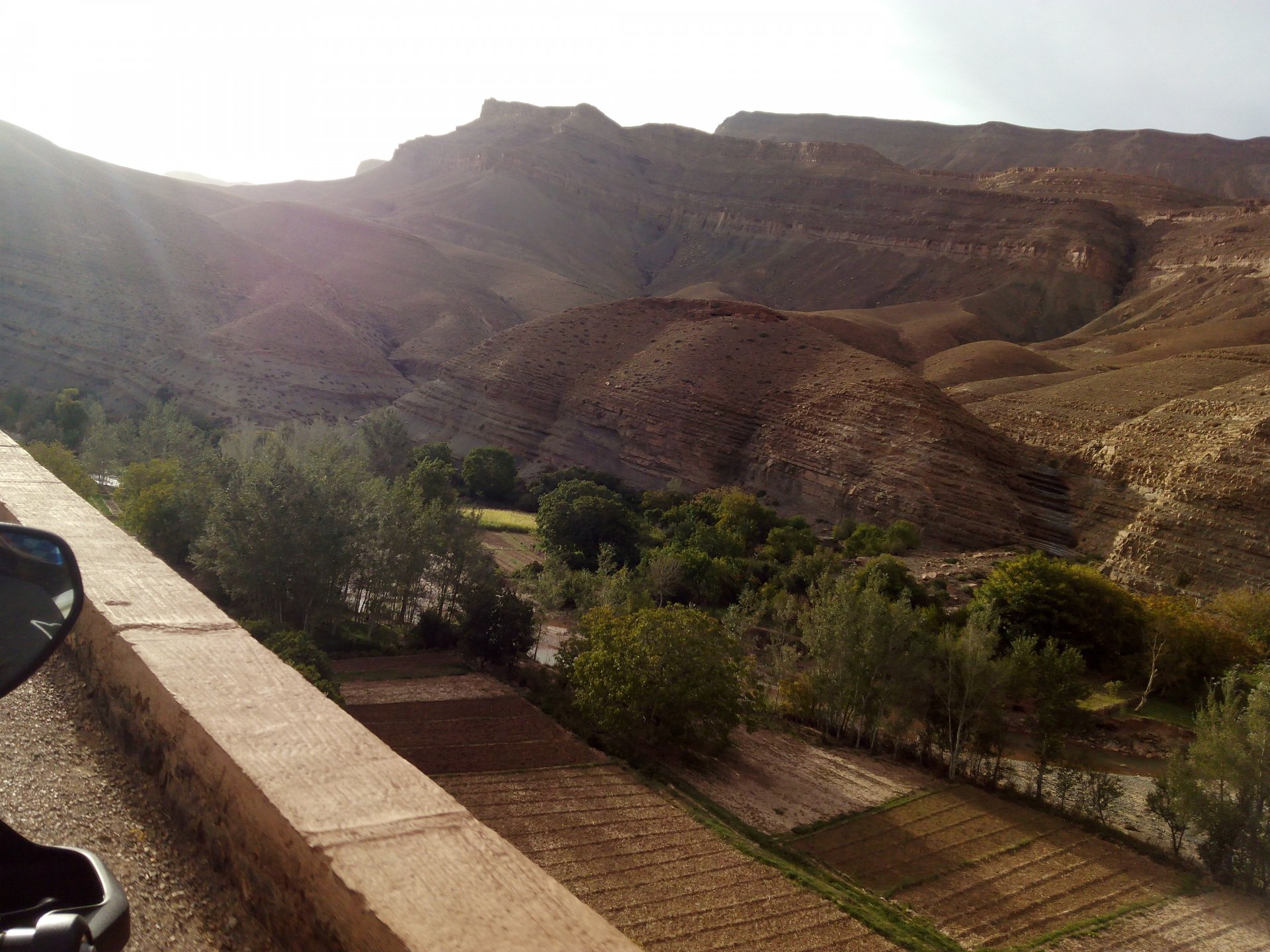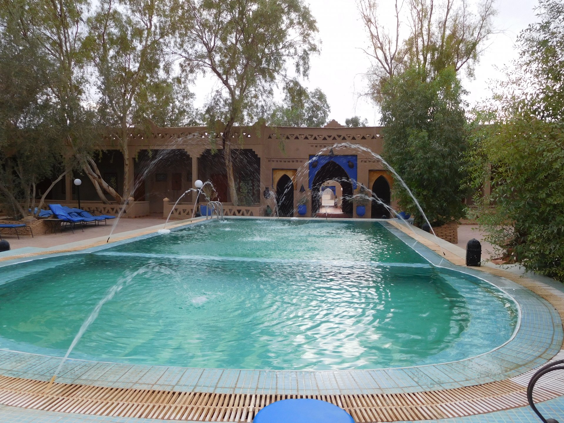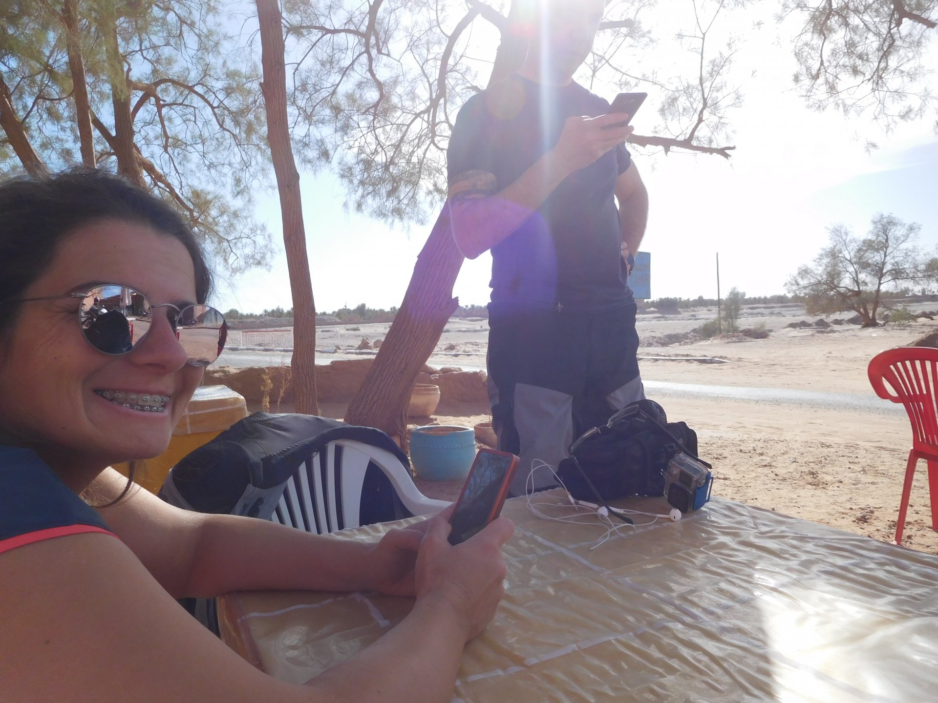 We slept like babies, on a room on the rooftop of the kasbah, a net for mosquitoes on the window, woke up to birds getting busy and singing at dawn We lingered around a little before breakfast Breakfast was to my liking I'll return, for sure: But the road is calling: There's a gas refinery in Errachidia and plenty of army around, for simple security I assume. We aren't that far away from Algeria. You get used to big views I think I put some poor quality fuel the day before on the bike, so as soon as I got an Afriquia station I fueled up, usually Afriquia stuff works well. We've come to Errachidia to buy Rui a sim card, for data and international calls. Administration done, time for some coffee And we're off to the Sahara! Scenery is really changing now We were headed to Merzouga and the golden dunes again, to stay at our favourite place. We were to spend two nights there, taking in the desert, a plan was forming in my head... stay tuned And finally arriving at out oasis, very hot and tired but with some time to kill before sunset. Inside one of Rui´s metal cases were a couple of aluminium flasks with some nice gin and vodka. We quickly ordered a few cold tonics and relaxed a little Tomorrow would be an extraordinary day...