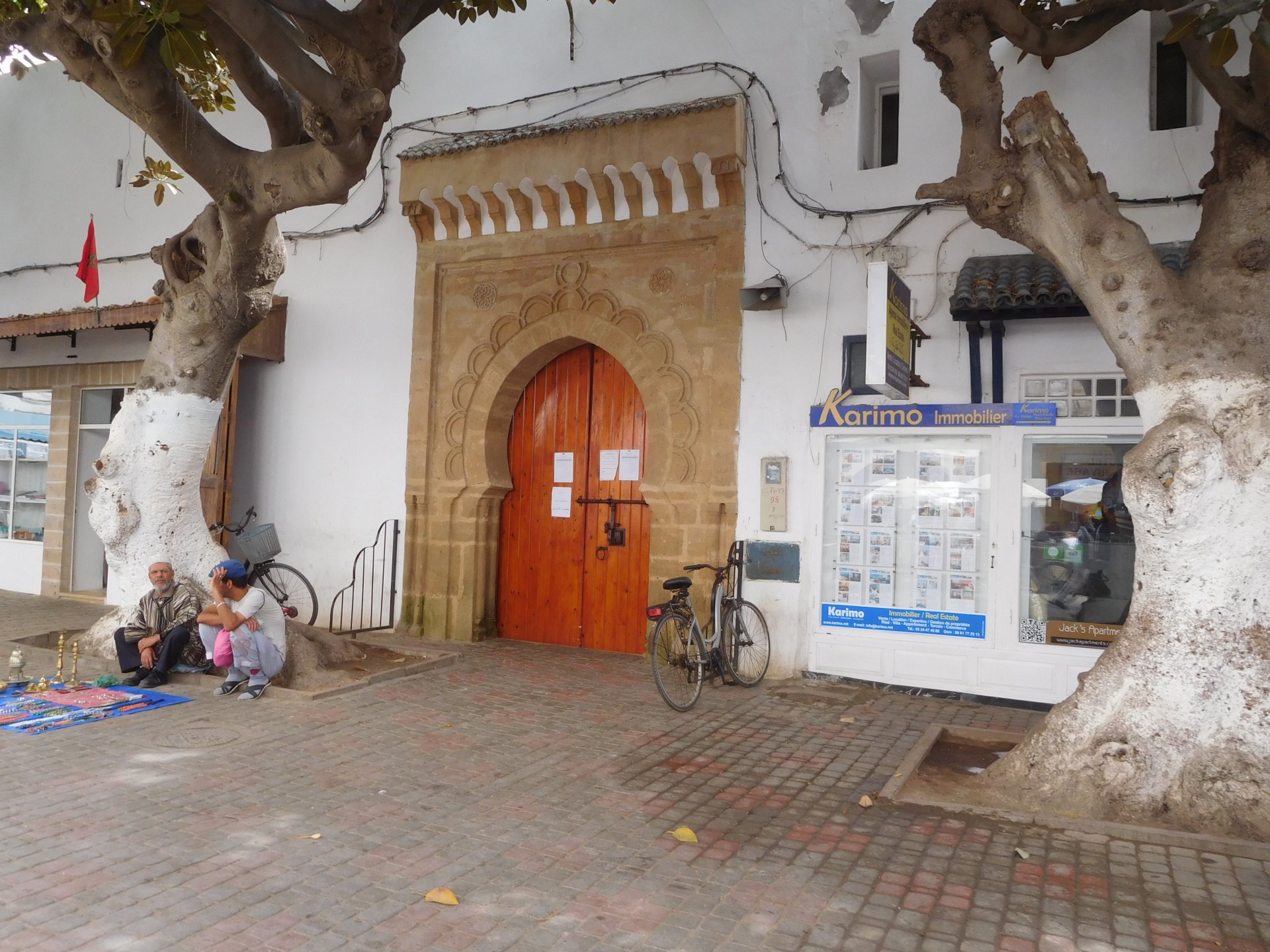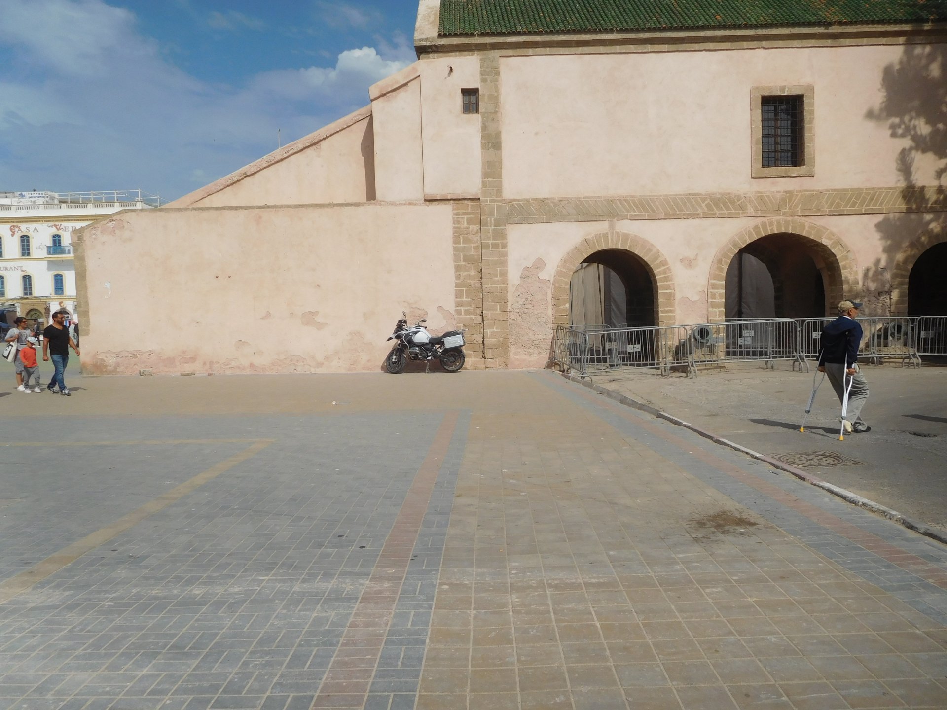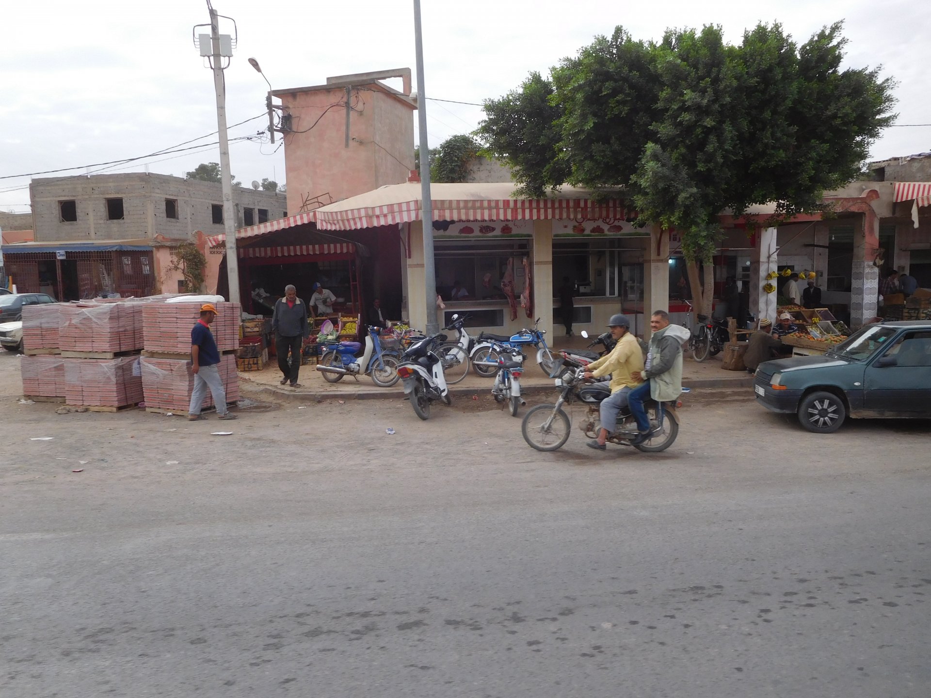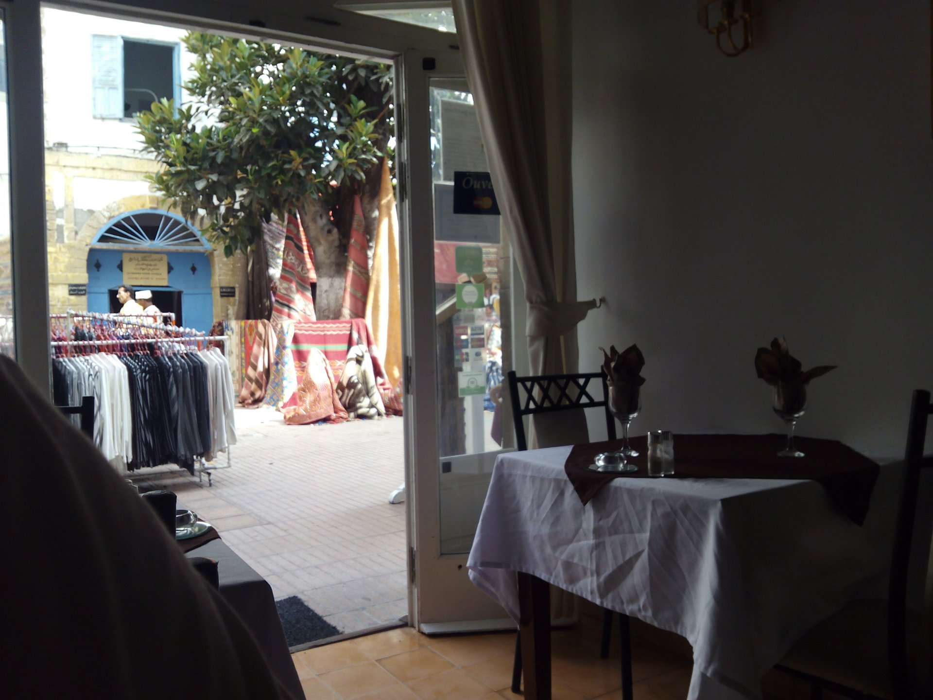 In the morning me and Maria were back on our own and moving at our own pace. This means that although not in a hurry we ended up doing things in less time, like a well oiled machine. One packs this while the other brushes his teeth, then one grabs this while the other does that, I go for the cases while she goes for the helmets, etc We have breakfast, pack the bike and leave and wave at Rui's bike. I can't lie and say there wasn't a lump in my throat as we left it there. Morning traffic in Marrakech isn't as bad just because the heat hadn't arrived yet, we just moved along with traffic heading out of the city onto the coast. As we move further away from touristy and "cosmopolitan" Marrakech: Lanes? Were were going we don't need lanes! The dial... Morocco is known for it's Argan trees, and with Argan trees come the famous goats that climb trees to eat the organ fruit, some moroccans being the clever dudes that they are, see this as a way to squeeze a couple of coins off tourists, and force goats up a tree and keep them there for tourists to snap pictures with them, while asking for a fee. This is the result, just a sad spectacle, the real thing doesn't compare to this, this is demeaning to the goats and to a proud people. A few kms further on we see the same thing but non orchestrated, but that still doesn't compare to what we saw the year after on the mountains. At the end of the morning we reached the coast at Essaouira The Portuguese had been here before, a long time ago We interrupt our walk for some lunch in a great little restaurant We had orange with cinnamon as starter and fish soup, it was tasty as it should in a fishing town. If you've never tried slicing an orange (a proper orange) and just sprinkling it with a healthy (more than this) amount of cinnamon, do it. It's exotic, very healthy, and will make you look like a chef. After our lunch we just sat inside sipping a little coffee and looking at life going about it's business outside, before carrying on with our walk back to the bike. And thus started our ride back north I don't think any of us enjoyed this part of the ride very much. We were coated with muckyness from the ocean, salty and moist, wasn't very pleasant at all. Eventually we found a place to stay, quite cheaply to be honest, with breakfast included and a swimming pool. Couldn't be any better so we stopped quite looking forward to have a swim and relax. This was is October 2016, yearlier that year Portugal had won the Euro football championship with a goal scored on the last minute, against FRANCE, and they had been pretty sore loosers. We had been getting compliments throughout this trip because football is very big in Morocco and there are few things a Moroccan likes more than to embarrass France. As soon as we presented our passports the reception guy came to hugg me and we were instantly treated like long lost relatives of his Our room's view: Our rooms view within seconds, before Maria could even find her bikini The downside to being treated as football allies against France was that in order to indulge us, the hotel staff simply went on youtube and put on portuguese folk music on a loop. We were tortured by that shit wherever we went, swimming pool, lobby, restaurant, and whenever we told them to turn it off all we got in return were big smiles, a thumbs up and an exclamation of "viva Portugal" They later confessed that Portugal beating France was celebrated on the streets with gunfire to the sky and fireworks, we should have been in Morocco that evening!